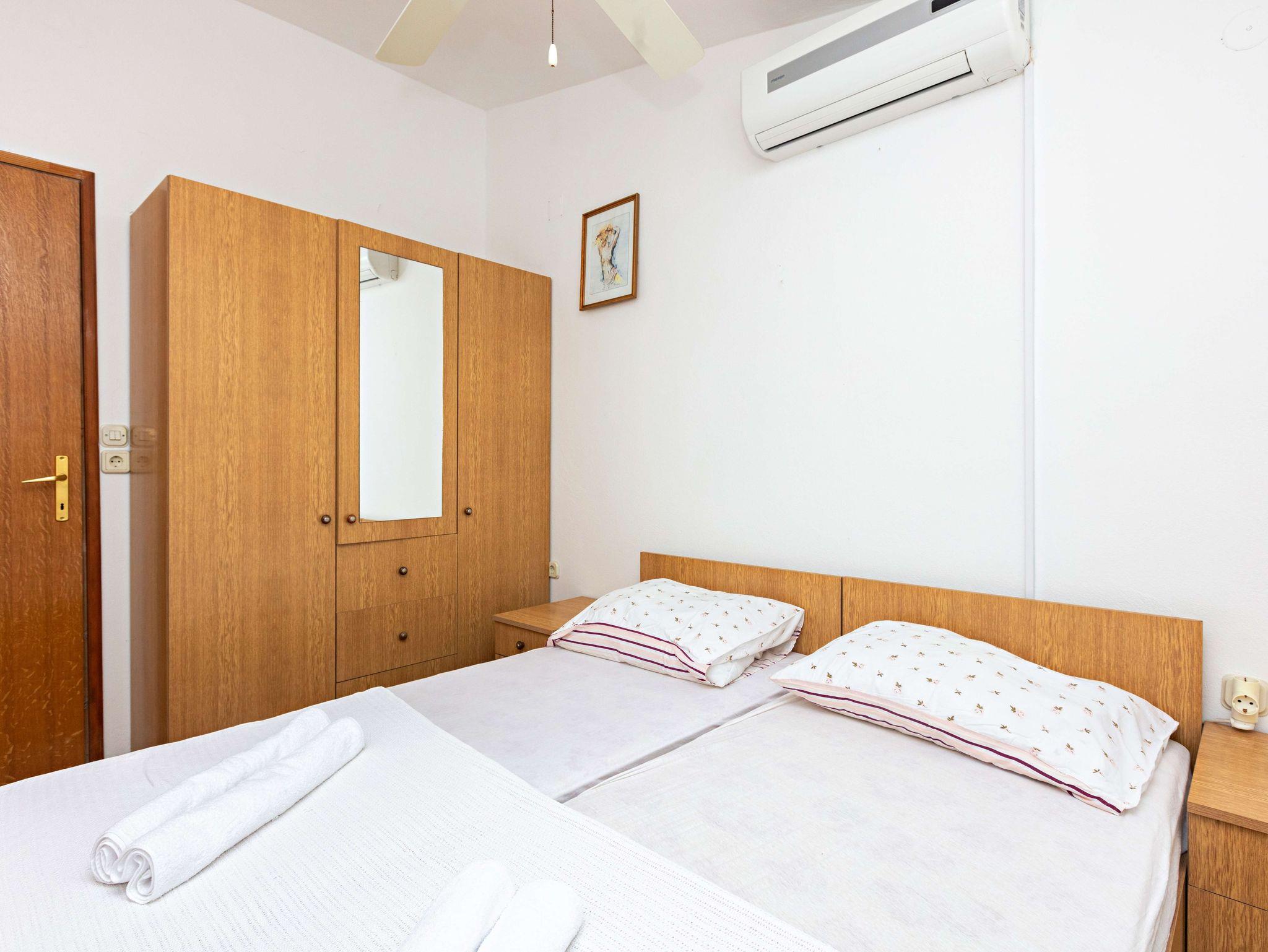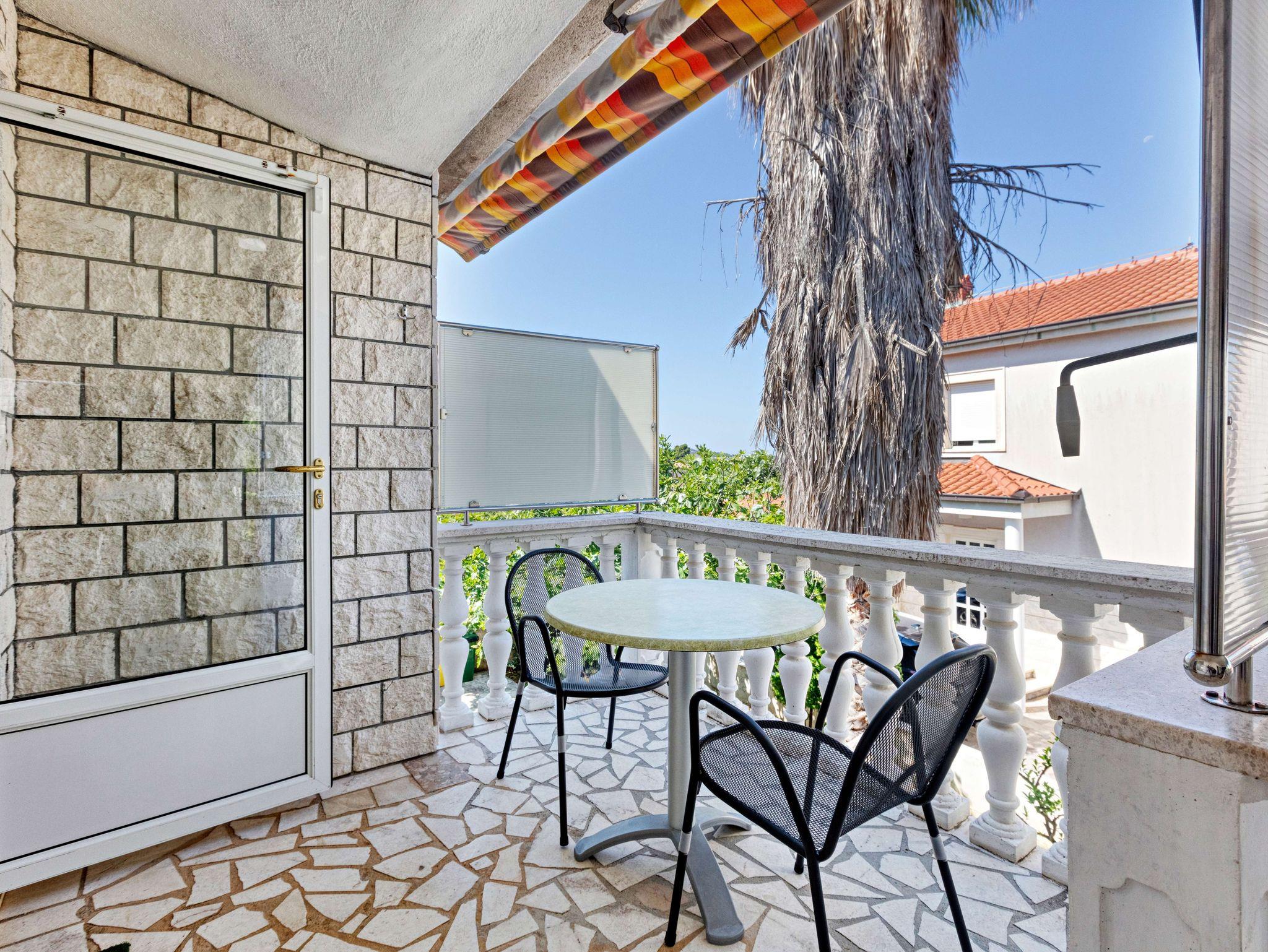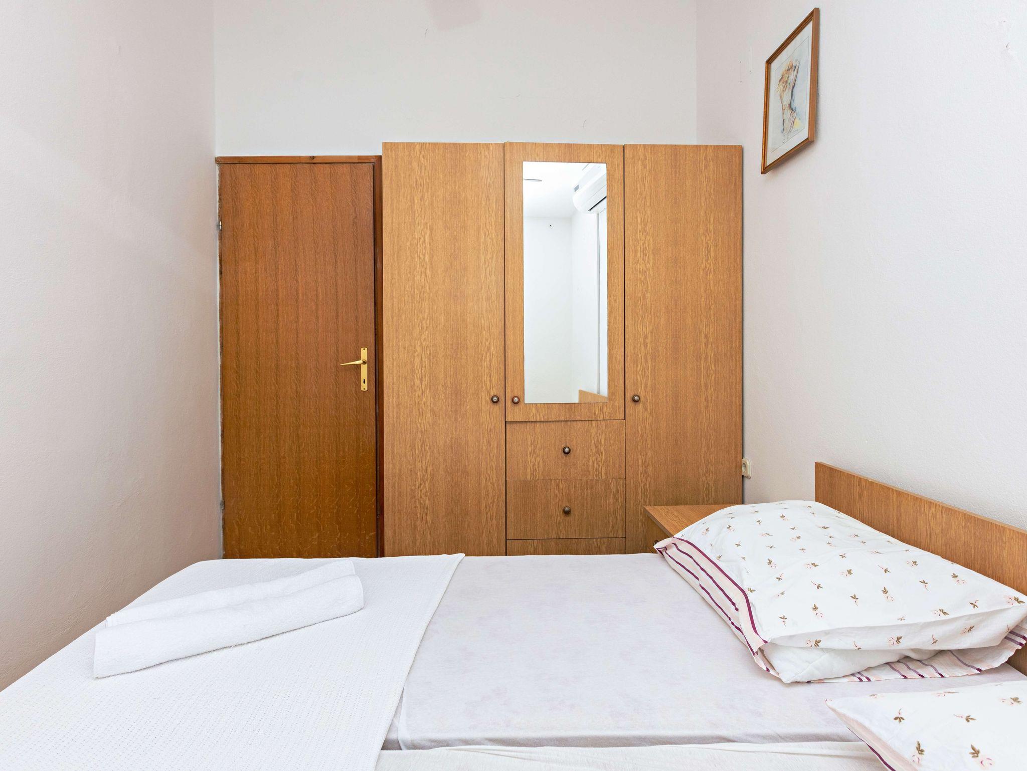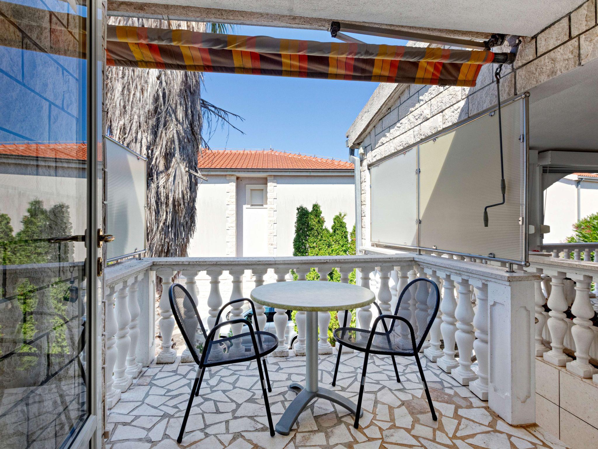 Ferienwohnung bietet Platz für 2 Gäste. Die Betten sind in Schlafzimmern, die es 1 gibt, innerhalb einer Gesamtfläche von 40m2, angeordnet. Die Gäste haben eine eigene Terrasse zur Verfügung, auf der sie in warmen Sommernächten genießen können. Das Apartment bietet Meerblick. IM PREIS INBEGRIFFEN: Kurtaxe, Endreinigung, Klimatisierung, Parkplatz, Internet, Kinderbett, Bügeleisen, Föhn. VERBINDLICHE ZUSÄTZLICHE KOSTEN: Aufzahlung für Kurzaufenthalte (prozentualer Zuschlag pro Nächtigungsanzahl: 30% - 1, 20% - 2, 10% - 3). Die Verfügbarkeit zusätzlicher Dienstleistungen in Ihrem reservierten Termin und die Preise derselben (falls nicht aufgeführt) müssen im Voraus überprüft werden. Zusätzliche Dienstleistungen die in der Zahlungsaufforderung nicht aufgeführt sind werden direkt beim Vermieter bezahlt, angenommen der Gast nutzt auch diese.