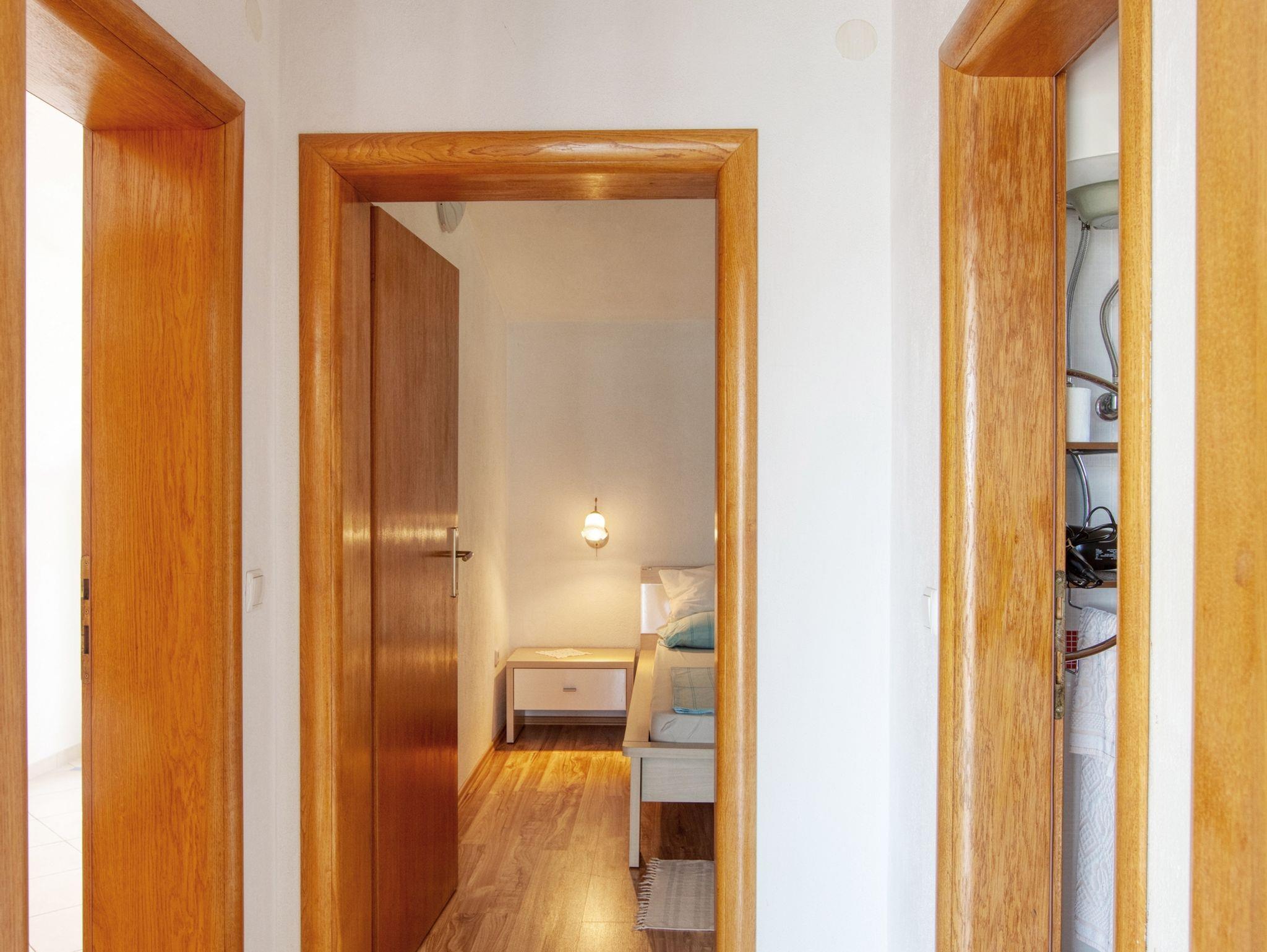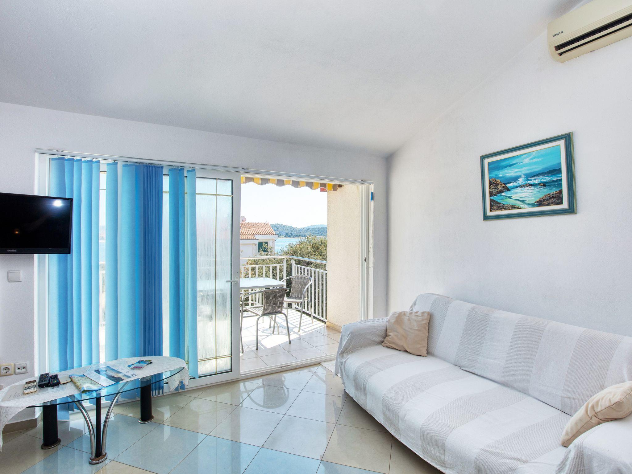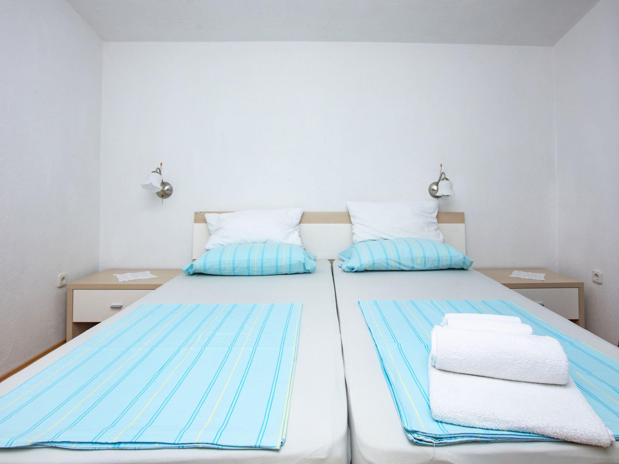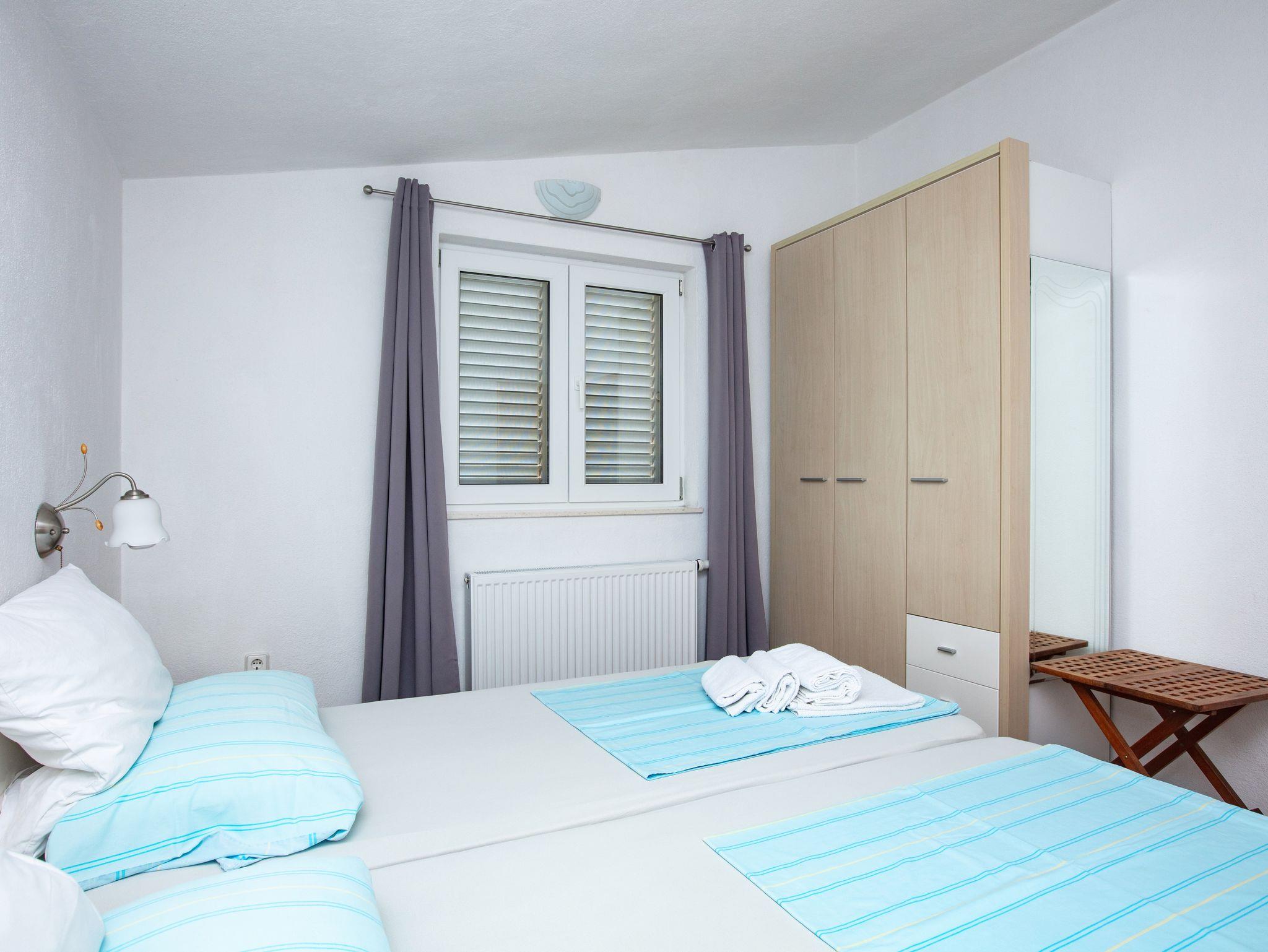 Ferienwohnung bietet Platz für 3 Gäste. Die Betten sind in Schlafzimmern, die es 1 gibt, und in Wohnzimmer, innerhalb einer Gesamtfläche von 35m2, angeordnet. Die Gäste haben eine eigene Terrasse zur Verfügung, auf der sie in warmen Sommernächten genießen können. Das Apartment bietet Meerblick. Es ist erlaubt, Speisen auf dem Gemeinschafts-Grill vorzubereiten. IM PREIS INBEGRIFFEN: Kurtaxe, Endreinigung, Klimatisierung, Zentralheizung, Parkplatz, Internet, Bügeleisen, Bügelbrett, Föhn. VERBINDLICHE ZUSÄTZLICHE KOSTEN: Aufzahlung für Kurzaufenthalte (prozentualer Zuschlag pro Nächtigungsanzahl: 30% - 1, 20% - 2, 10% - 3). UNVERBINDLICHE ZUSÄTZLICHE KOSTEN: Wäschewaschen (5,00 € Waschen), Bootsanlegeplatz (3,00 € pro Nacht). Die Verfügbarkeit zusätzlicher Dienstleistungen in Ihrem reservierten Termin und die Preise derselben (falls nicht aufgeführt) müssen im Voraus überprüft werden. Zusätzliche Dienstleistungen die in der Zahlungsaufforderung nicht aufgeführt sind werden direkt beim Vermieter bezahlt, angenommen der Gast nutzt auch diese.