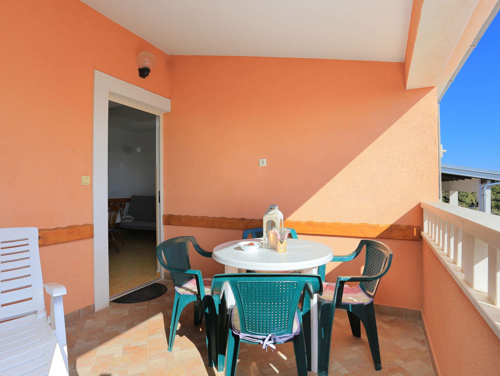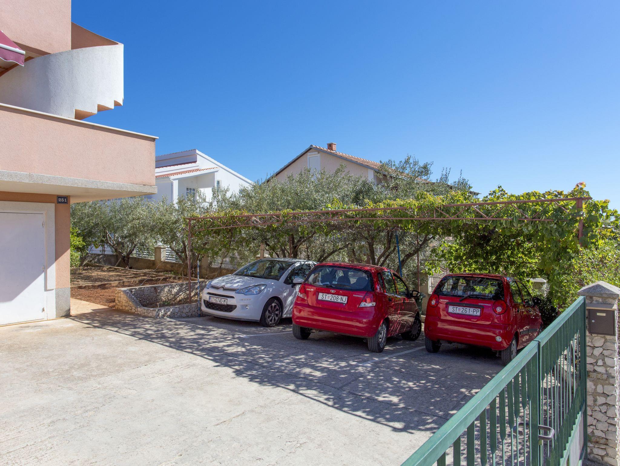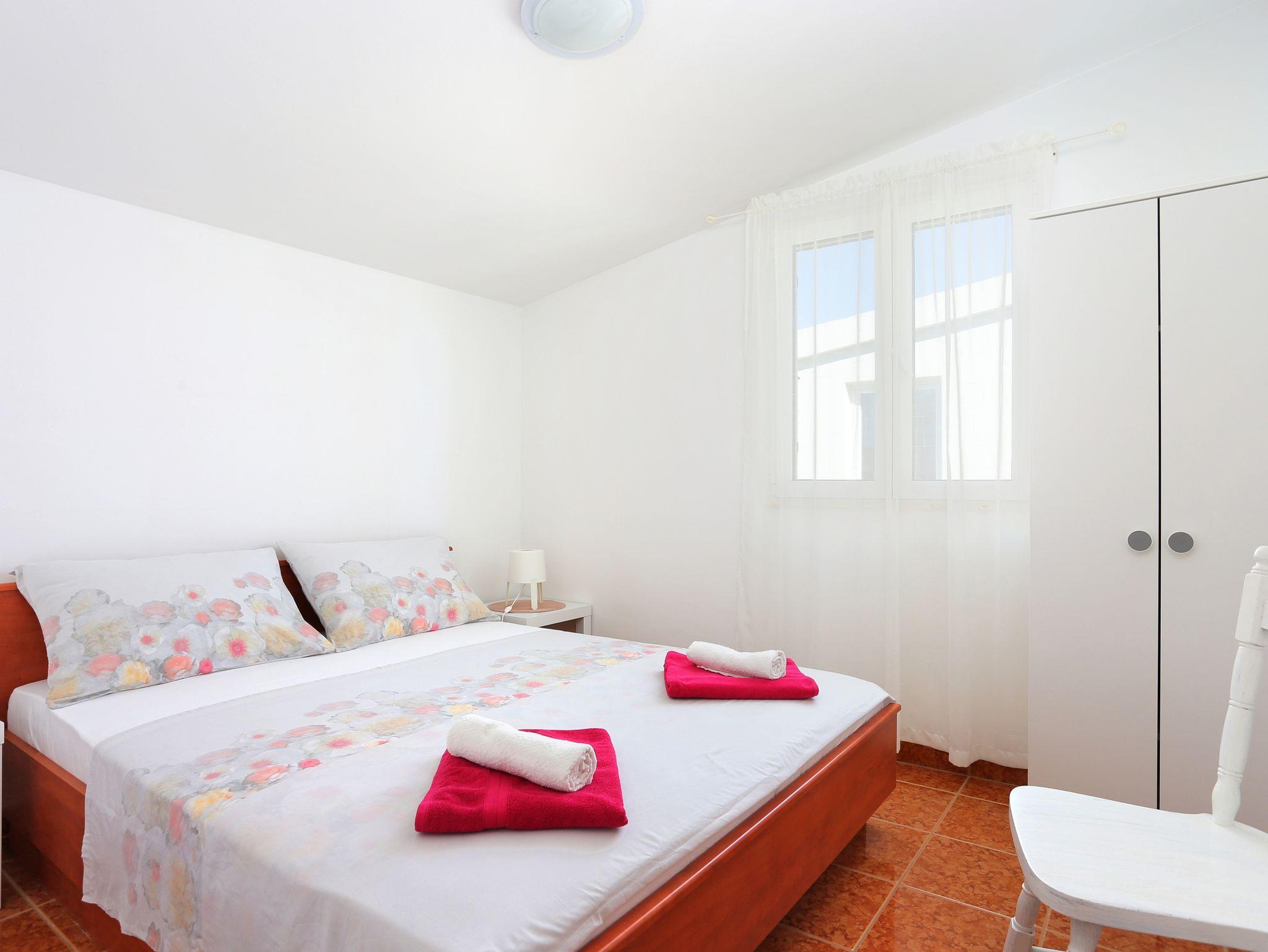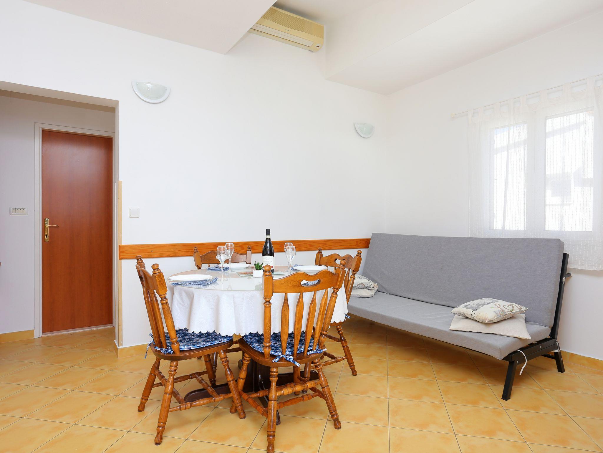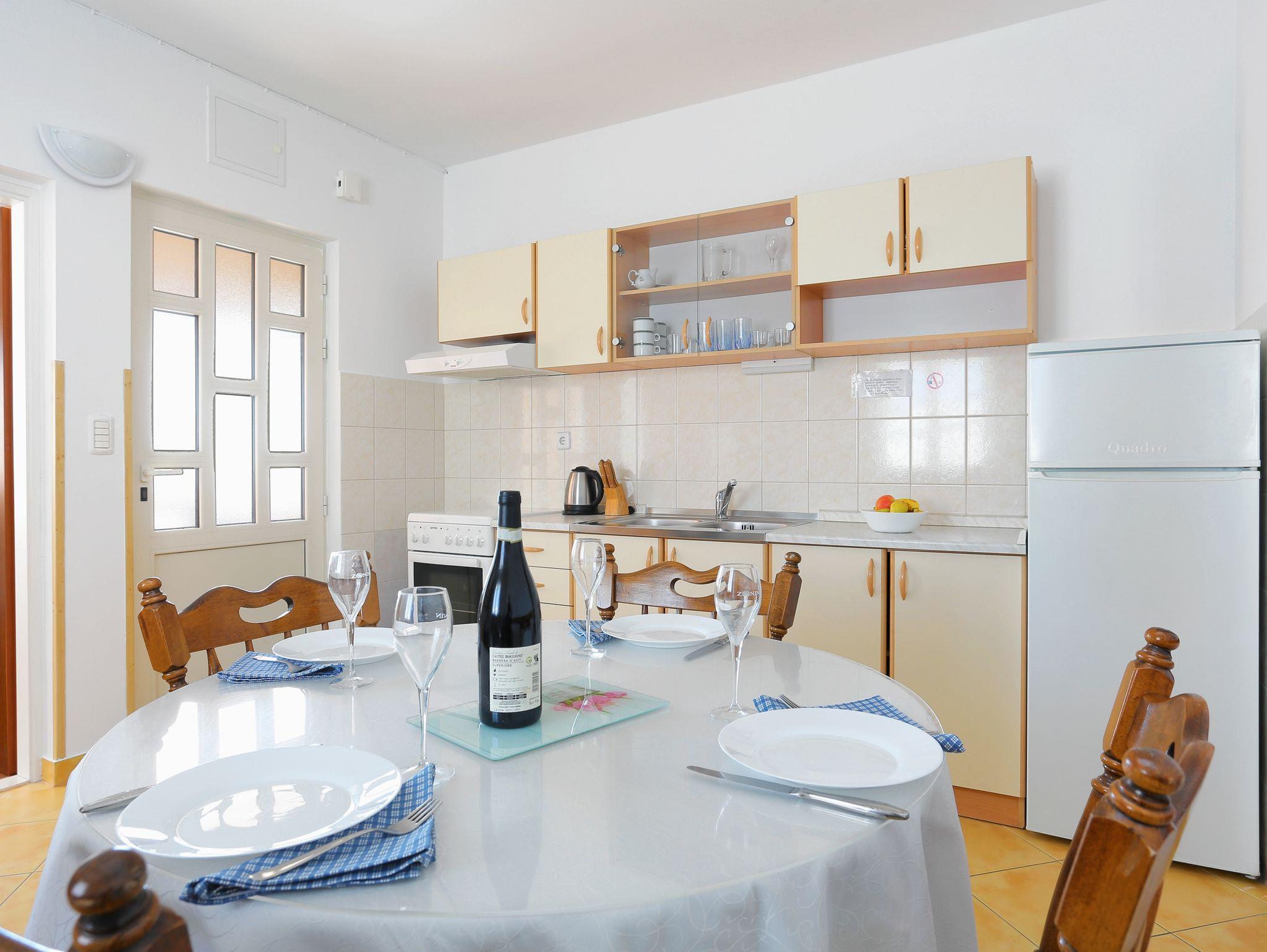 Ferienwohnung bietet Platz für 5 Gäste. Die Betten sind in Schlafzimmern, die es 2 gibt, und in Wohnzimmer, innerhalb einer Gesamtfläche von 36m2, angeordnet. Die Gäste haben eine eigene Terrasse zur Verfügung, auf der sie in warmen Sommernächten genießen können. Das Apartment bietet Meerblick. Es ist erlaubt, Speisen auf dem Gemeinschafts-Grill vorzubereiten. IM PREIS INBEGRIFFEN: Kurtaxe, Endreinigung, Klimatisierung, Parkplatz, Internet, Kinderbett, Bügeleisen, Föhn. VERBINDLICHE ZUSÄTZLICHE KOSTEN: Aufzahlung für Kurzaufenthalte (prozentualer Zuschlag pro Nächtigungsanzahl: 30% - 1, 20% - 2, 10% - 3). UNVERBINDLICHE ZUSÄTZLICHE KOSTEN: Wäschewaschen (5,00 € Waschen). Die Verfügbarkeit zusätzlicher Dienstleistungen in Ihrem reservierten Termin und die Preise derselben (falls nicht aufgeführt) müssen im Voraus überprüft werden. Zusätzliche Dienstleistungen die in der Zahlungsaufforderung nicht aufgeführt sind werden direkt beim Vermieter bezahlt, angenommen der Gast nutzt auch diese. Ermäßigung auf den Grundpreis: Gratistag 21=19 (bei einem Aufenthalt von 21 Tagen oder mehr erhalten Sie 2 Gratistage für den Aufenthalt bis 31.12.26).