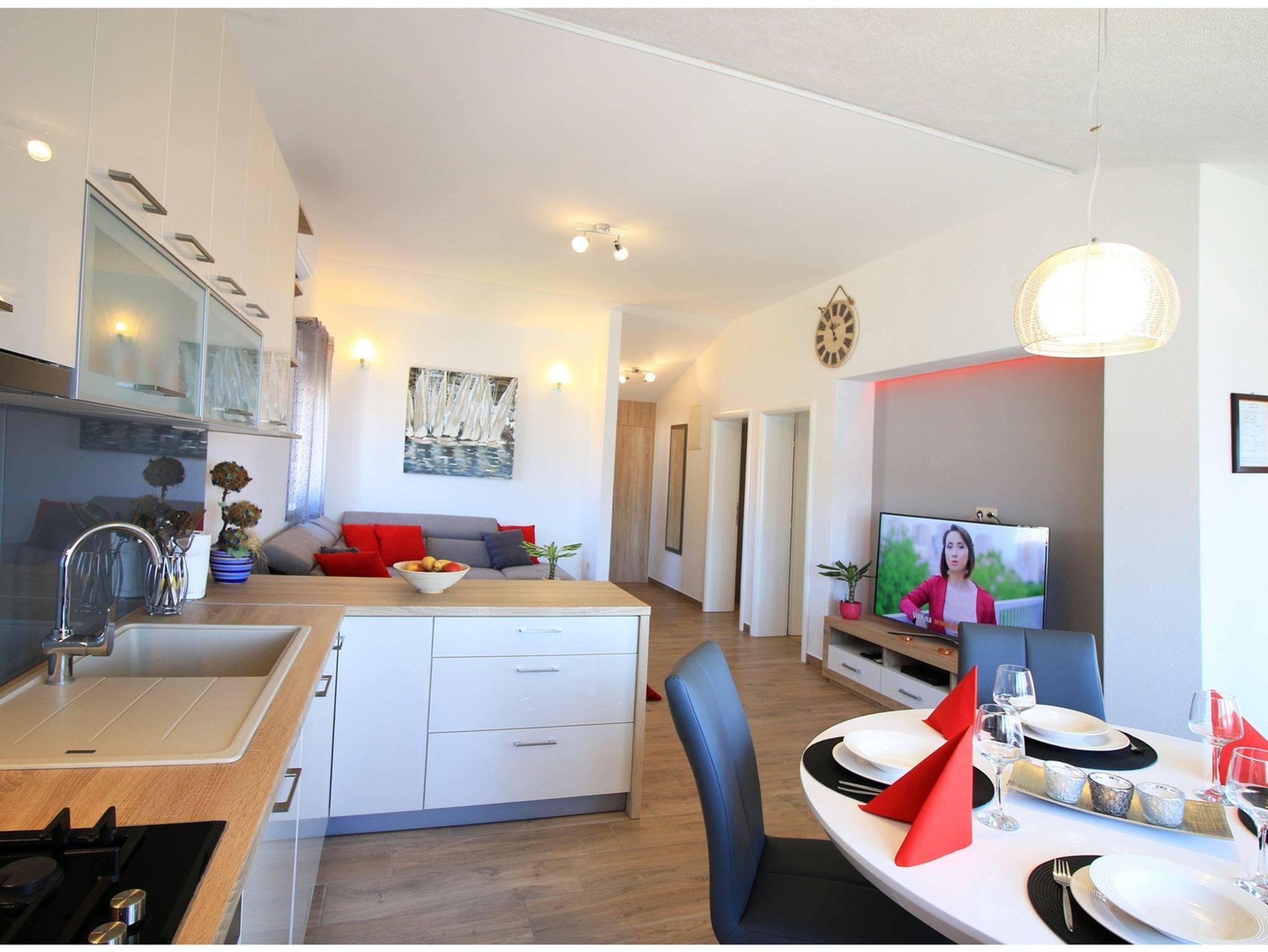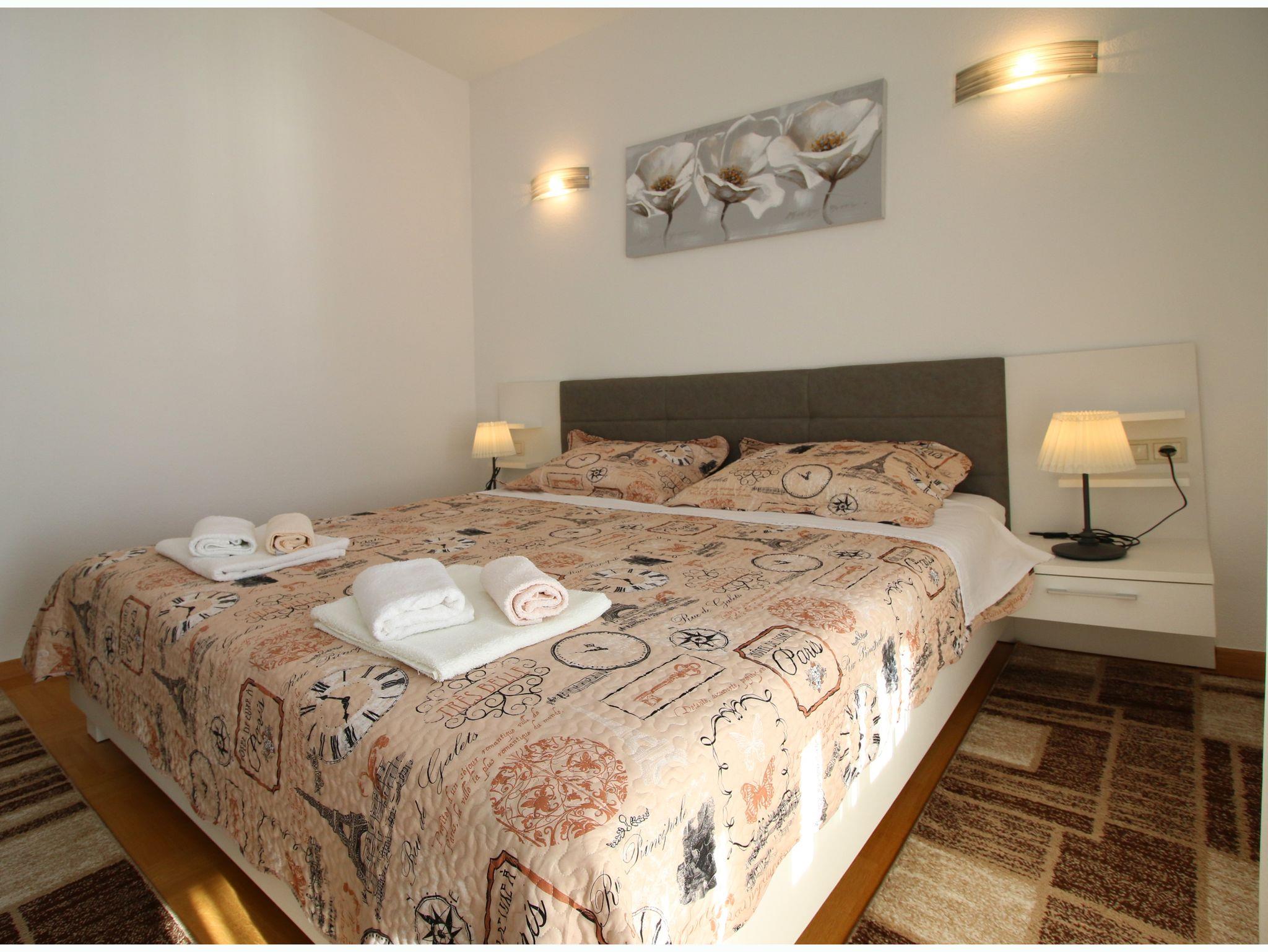 Ferienwohnung bietet Platz für 4 Gäste. Die Betten sind in Schlafzimmern, die es 2 gibt, innerhalb einer Gesamtfläche von 51m2, angeordnet. Die Gäste haben eine eigene Terrasse zur Verfügung, auf der sie in warmen Sommernächten genießen können. Das Apartment bietet Meerblick. Es ist erlaubt, Speisen auf dem Gemeinschafts-Grill vorzubereiten. IM PREIS INBEGRIFFEN: Kurtaxe, Endreinigung, Klimatisierung, Parkplatz, Internet, Kinderbett, Bügeleisen, Bügelbrett, Föhn. UNVERBINDLICHE ZUSÄTZLICHE KOSTEN: Wäschewaschen (10,00 € Waschen), Boot (50,00 € pro Nacht), Bootsanlegeplatz (10,00 € pro Nacht), Fahrrad (5,00 € täglich (pro Stück)). Die Verfügbarkeit zusätzlicher Dienstleistungen in Ihrem reservierten Termin und die Preise derselben (falls nicht aufgeführt) müssen im Voraus überprüft werden. Zusätzliche Dienstleistungen die in der Zahlungsaufforderung nicht aufgeführt sind werden direkt beim Vermieter bezahlt, angenommen der Gast nutzt auch diese.