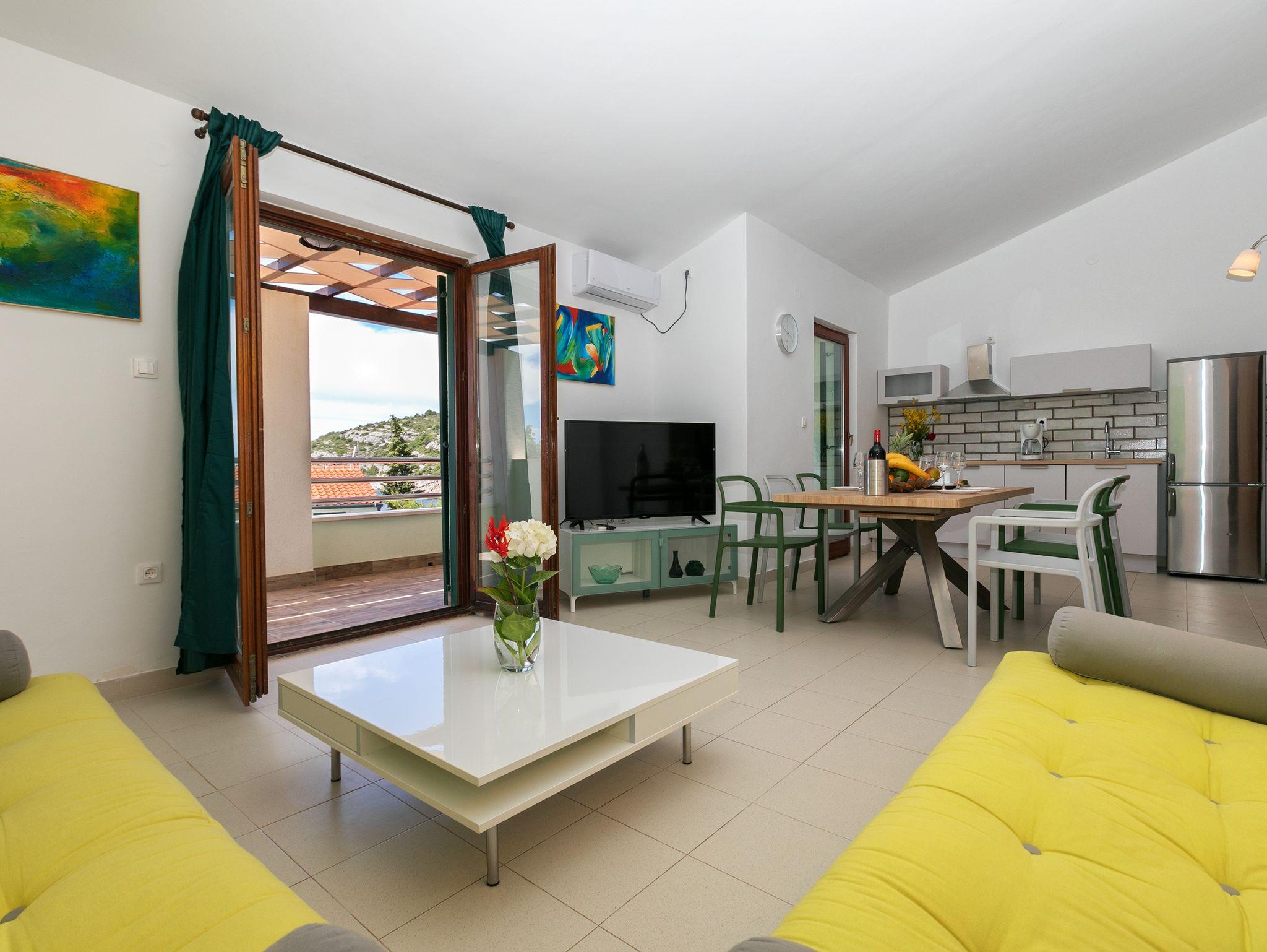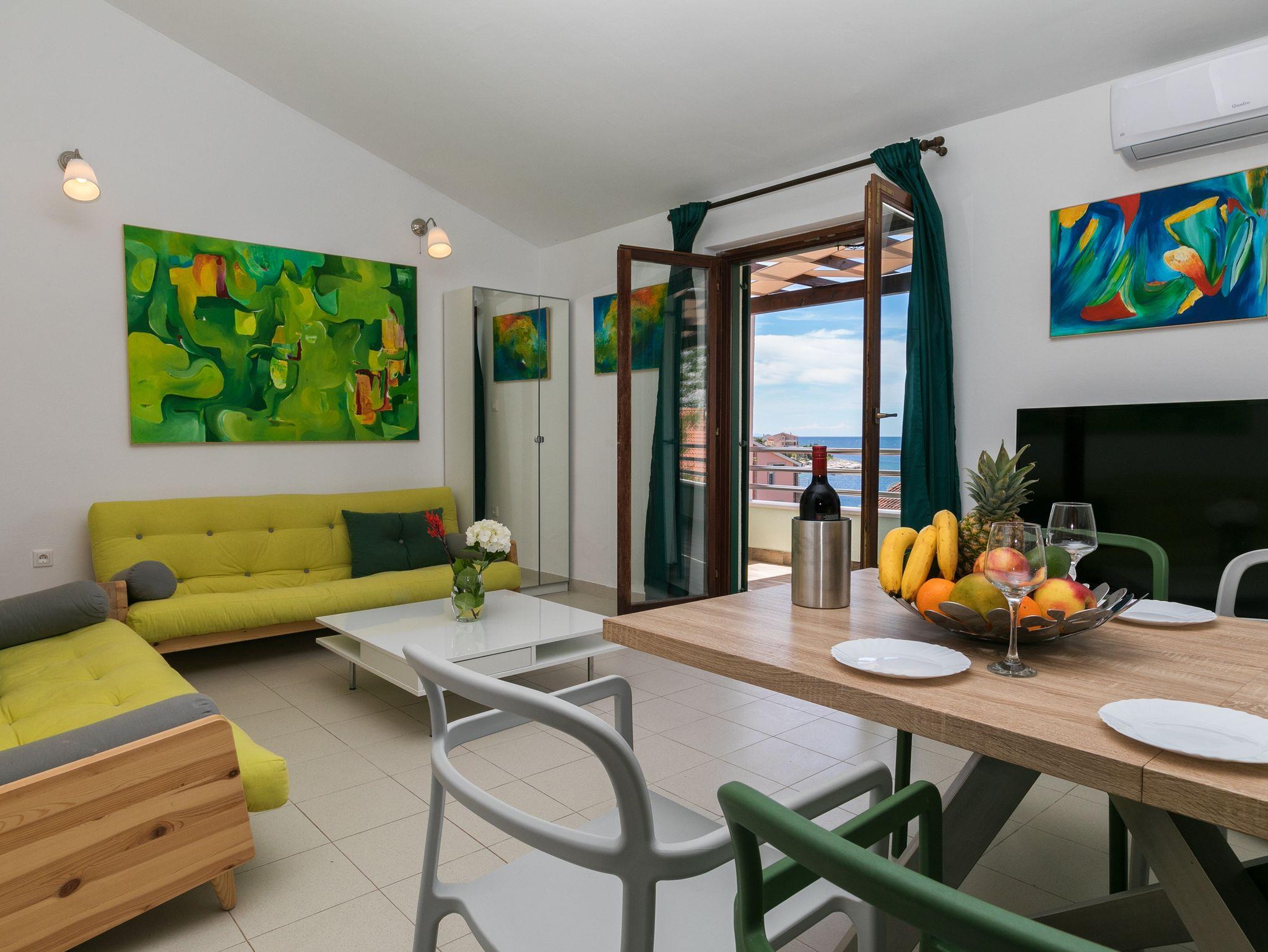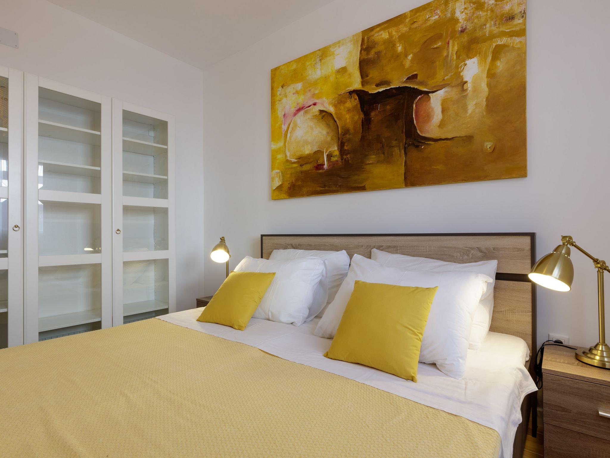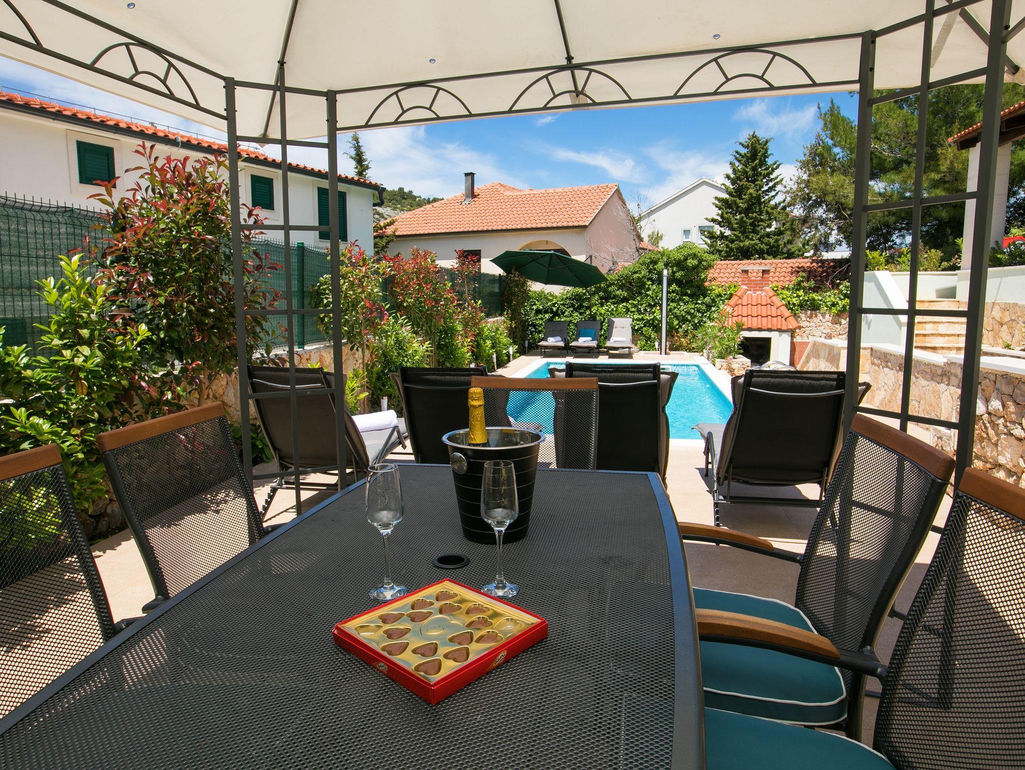 Haus bietet Platz für 10 Gäste. Die Betten sind in Schlafzimmern, die es 4 gibt, und in Wohnzimmer, innerhalb einer Gesamtfläche von 127m2, angeordnet. Die Gäste haben eine eigene Terrasse zur Verfügung, auf der sie in warmen Sommernächten genießen können. Das Haus bietet Meerblick. Für vollen Genuss und Entspannung gibt es einen privaten Grill für Gäste dieser Unterkunft. Während ihres Aufenthalts können sich Gäste im privaten Schwimmbad entspannen. In der Unterkunftseinheit besteht die Möglichkeit des Mitbringens von Haustieren, und die Dienstleistung ist im Preis der Unterkunft enthalten. Räume der gebuchten Unterkunftseinheit werden nicht in eine Ganze verbunden. IM PREIS INBEGRIFFEN: Kurtaxe, Endreinigung, Klimatisierung, Pool, Parkplatz, Internet, Haustiere, Bügeleisen, Bügelbrett, Föhn, tragbarer Grill. Die Verfügbarkeit zusätzlicher Dienstleistungen in Ihrem reservierten Termin und die Preise derselben (falls nicht aufgeführt) müssen im Voraus überprüft werden. Zusätzliche Dienstleistungen die in der Zahlungsaufforderung nicht aufgeführt sind werden direkt beim Vermieter bezahlt, angenommen der Gast nutzt auch diese. Ermäßigung auf den Grundpreis: Gratistag 21=19 (bei einem Aufenthalt von 21 Tagen oder mehr erhalten Sie 2 Gratistage für den Aufenthalt bis 31.12.26).