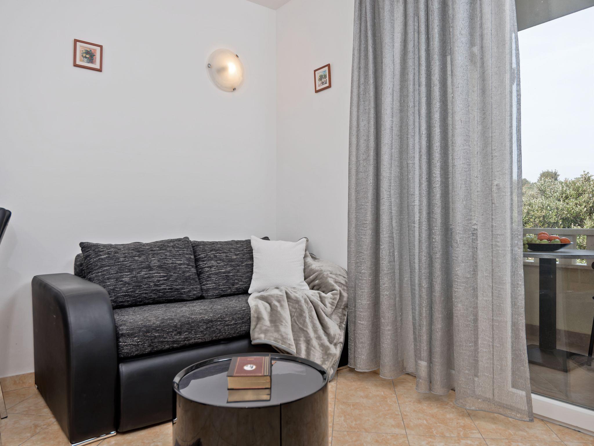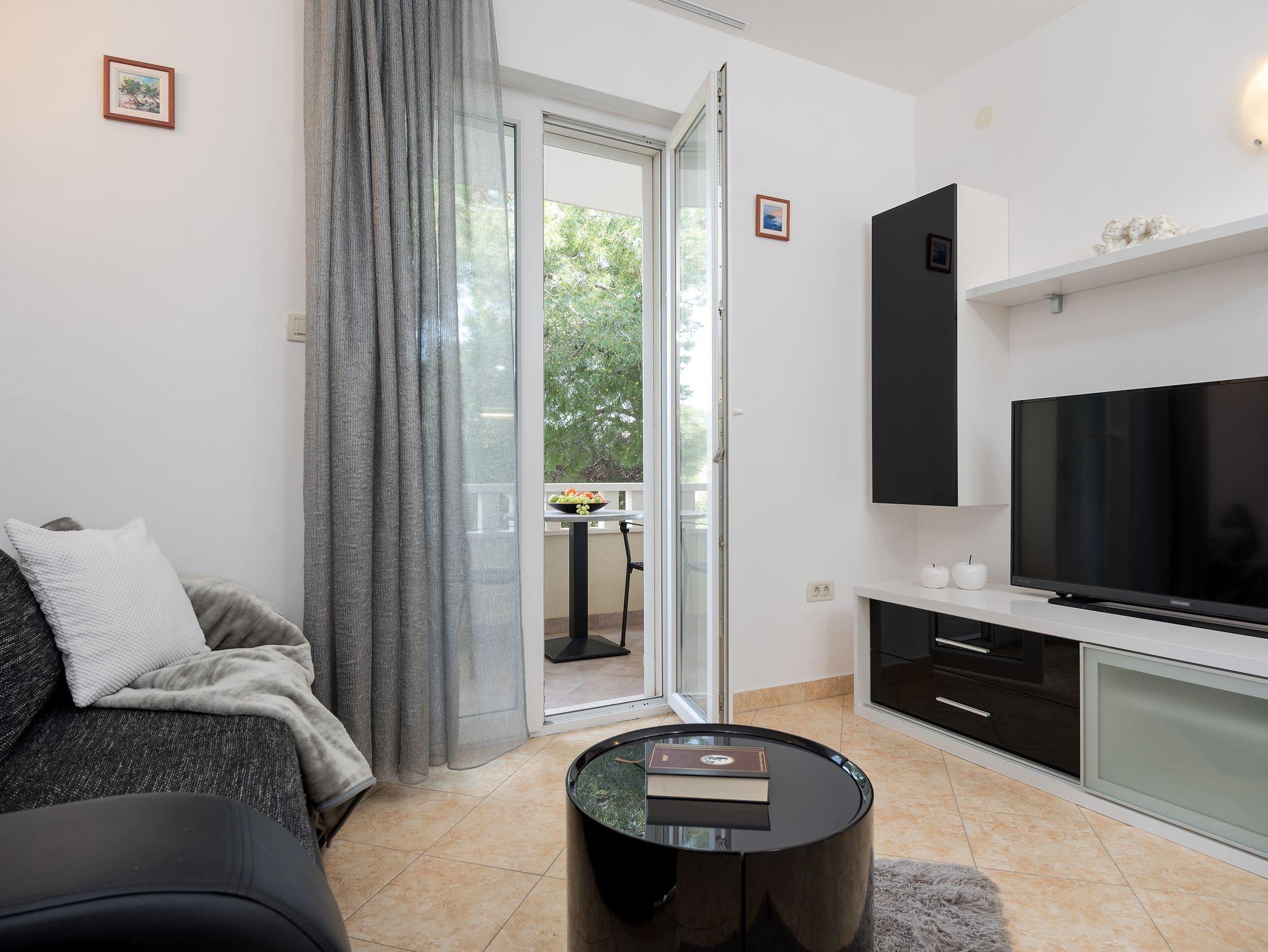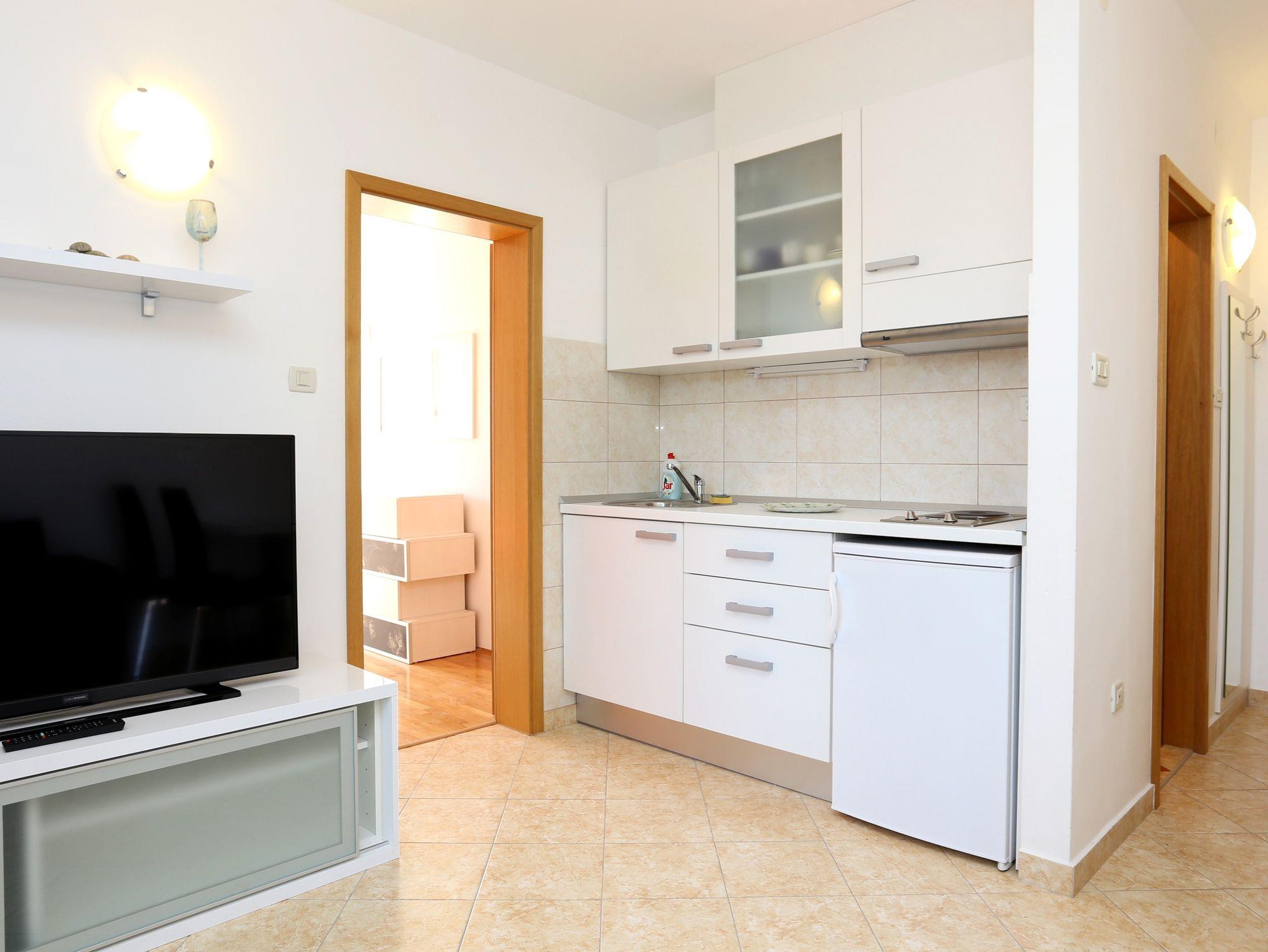 Ferienwohnung bietet Platz für 3 Gäste. Die Betten sind in Schlafzimmern, die es 1 gibt, und in Wohnzimmer, innerhalb einer Gesamtfläche von 29m2, angeordnet. Die Gäste haben eine eigene Terrasse zur Verfügung, auf der sie in warmen Sommernächten genießen können. Das Apartment bietet Meerblick. IM PREIS INBEGRIFFEN: Kurtaxe, Endreinigung, Klimatisierung, Parkplatz, Internet. VERBINDLICHE ZUSÄTZLICHE KOSTEN: Aufzahlung für Kurzaufenthalte (prozentualer Zuschlag pro Nächtigungsanzahl: 30% - 1, 20% - 2, 10% - 3). Die Verfügbarkeit zusätzlicher Dienstleistungen in Ihrem reservierten Termin und die Preise derselben (falls nicht aufgeführt) müssen im Voraus überprüft werden. Zusätzliche Dienstleistungen die in der Zahlungsaufforderung nicht aufgeführt sind werden direkt beim Vermieter bezahlt, angenommen der Gast nutzt auch diese.