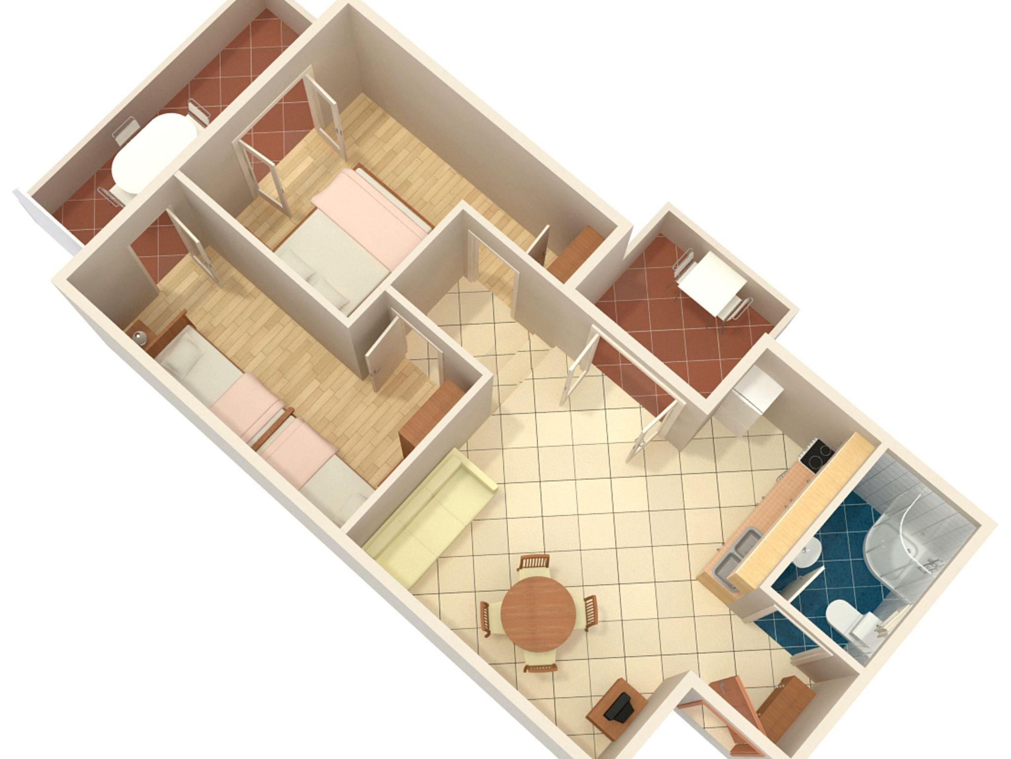 Ferienwohnung bietet Platz für 4 Gäste. Die Betten sind in Schlafzimmern, die es 2 gibt, innerhalb einer Gesamtfläche von 44m2, angeordnet. Die Gäste haben eine eigene Terrasse zur Verfügung, auf der sie in warmen Sommernächten genießen können. Das Apartment bietet Meerblick. Es ist erlaubt, Speisen auf dem Gemeinschafts-Grill vorzubereiten. IM PREIS INBEGRIFFEN: Kurtaxe, Endreinigung, Klimatisierung, Parkplatz. VERBINDLICHE ZUSÄTZLICHE KOSTEN: Aufzahlung für Kurzaufenthalte (prozentualer Zuschlag pro Nächtigungsanzahl: 30% - 1, 20% - 2, 10% - 3). Die Verfügbarkeit zusätzlicher Dienstleistungen in Ihrem reservierten Termin und die Preise derselben (falls nicht aufgeführt) müssen im Voraus überprüft werden. Zusätzliche Dienstleistungen die in der Zahlungsaufforderung nicht aufgeführt sind werden direkt beim Vermieter bezahlt, angenommen der Gast nutzt auch diese.