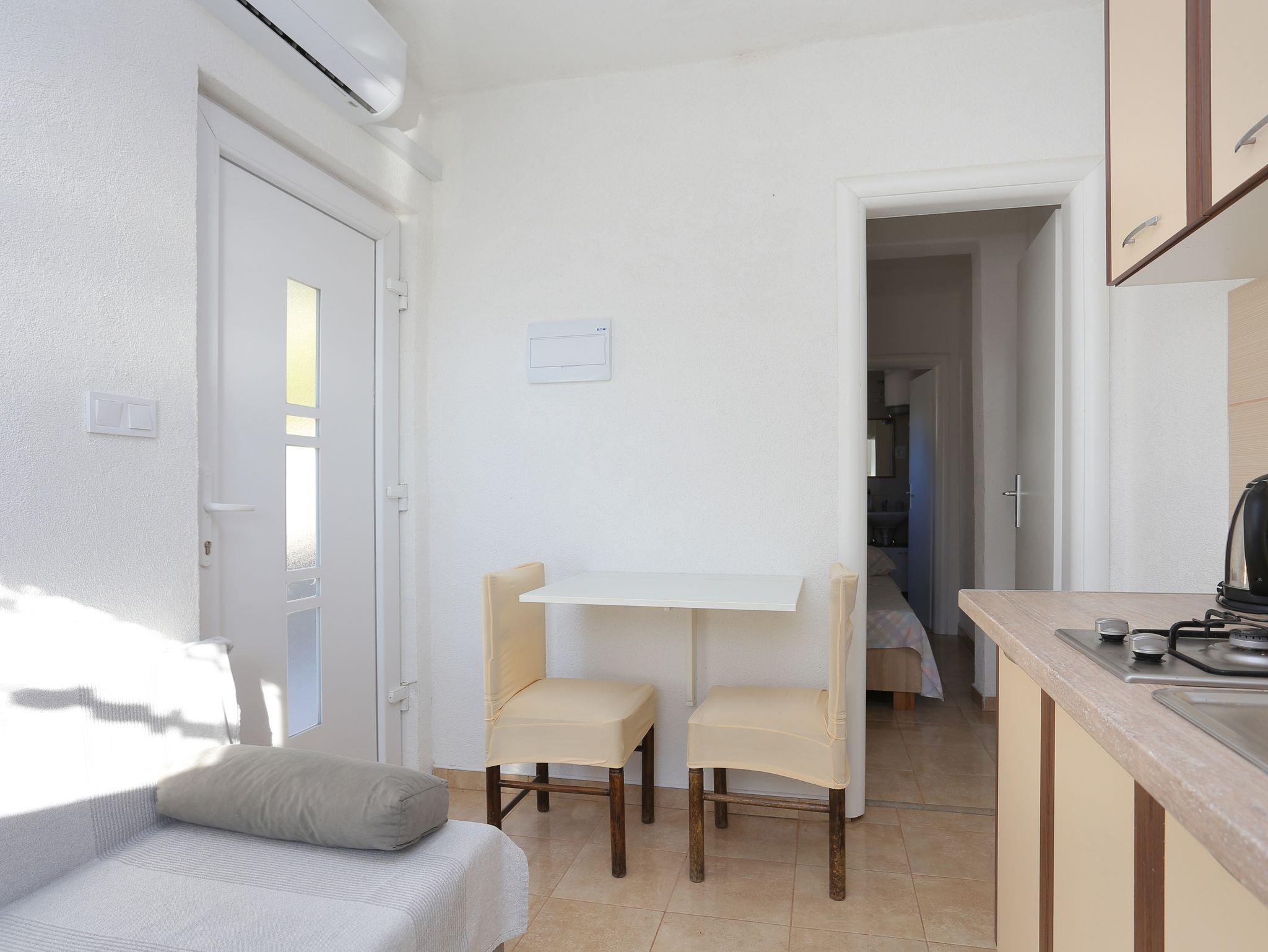 Ferienwohnung bietet Platz für 2 Gäste. Die Betten sind in Schlafzimmern, die es 1 gibt, innerhalb einer Gesamtfläche von 16m2, angeordnet. Die Gäste haben eine eigene Terrasse zur Verfügung, auf der sie in warmen Sommernächten genießen können. Das Apartment bietet Meerblick. Für vollen Genuss und Entspannung gibt es einen privaten Grill für Gäste dieser Unterkunft. IM PREIS INBEGRIFFEN: Kurtaxe, Endreinigung, Klimatisierung, Parkplatz, Internet, Bügeleisen, Bügelbrett, Föhn. Die Verfügbarkeit zusätzlicher Dienstleistungen in Ihrem reservierten Termin und die Preise derselben (falls nicht aufgeführt) müssen im Voraus überprüft werden. Zusätzliche Dienstleistungen die in der Zahlungsaufforderung nicht aufgeführt sind werden direkt beim Vermieter bezahlt, angenommen der Gast nutzt auch diese.