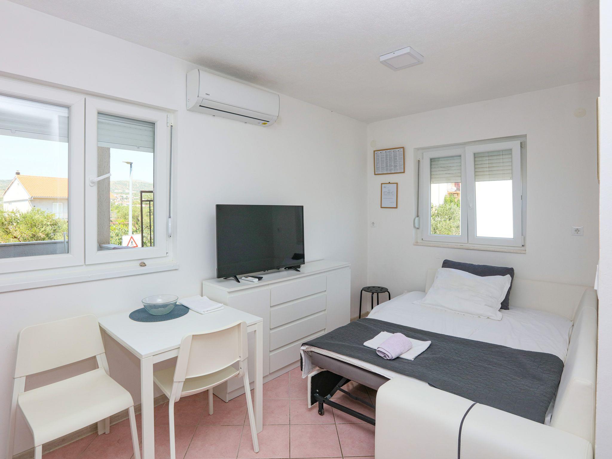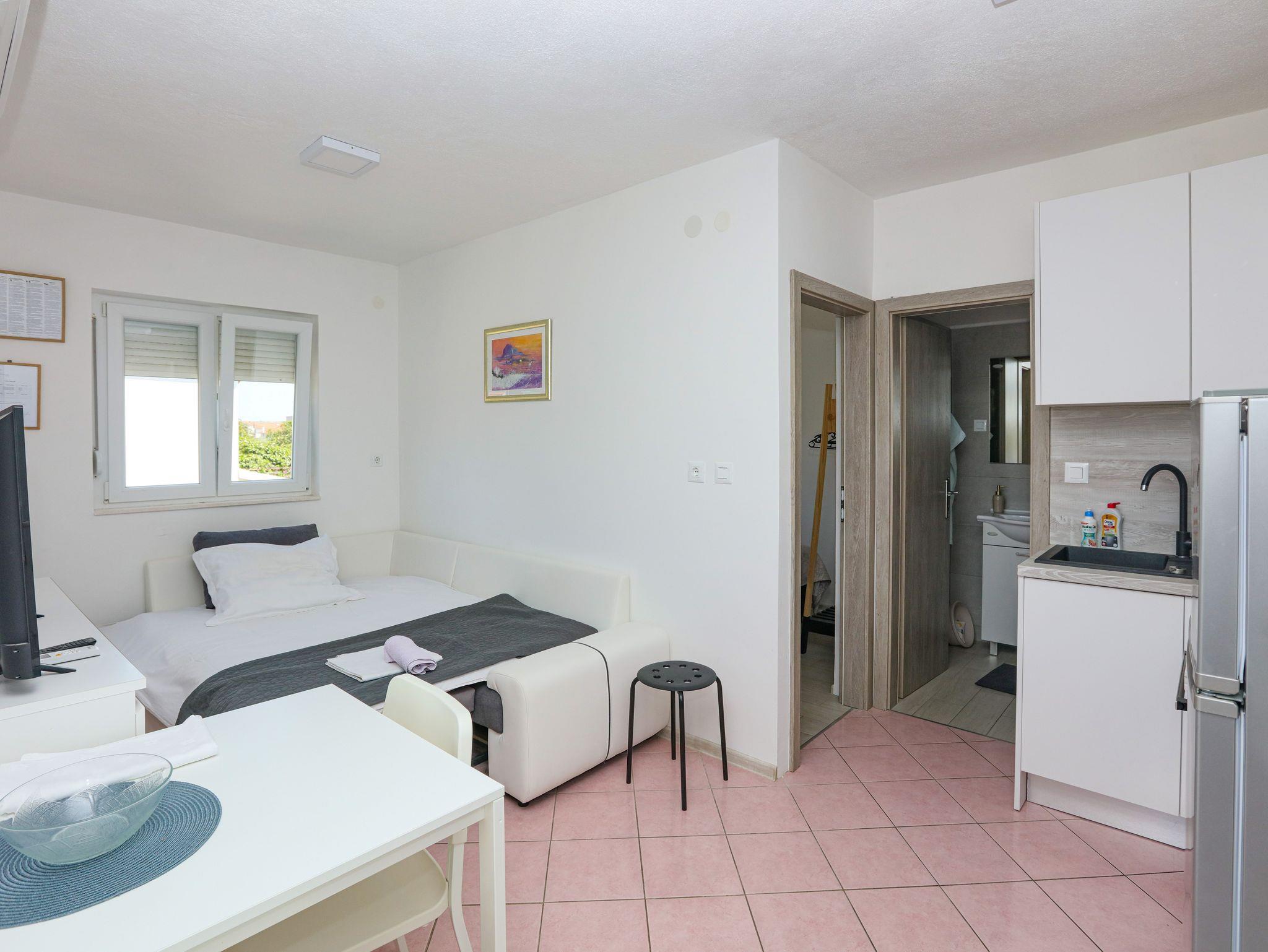 Studio bietet Platz für 4 Gäste. Die Betten sind in Schlafzimmern, die es 1 gibt, und in Wohnzimmer, innerhalb einer Gesamtfläche von 26m2, angeordnet. Die Gäste haben eine eigene Terrasse zur Verfügung, auf der sie in warmen Sommernächten genießen können. Es ist erlaubt, Speisen auf dem Gemeinschafts-Grill vorzubereiten. Durch die Terrasse der gebuchten Unterkunftseinheit gehen auch andere Gäste oder Vermieter. IM PREIS INBEGRIFFEN: Kurtaxe, Endreinigung, Klimatisierung, Parkplatz, Internet, Bügeleisen, Bügelbrett, Föhn, tragbarer Grill, Sonnenschirm. Die Verfügbarkeit zusätzlicher Dienstleistungen in Ihrem reservierten Termin und die Preise derselben (falls nicht aufgeführt) müssen im Voraus überprüft werden. Zusätzliche Dienstleistungen die in der Zahlungsaufforderung nicht aufgeführt sind werden direkt beim Vermieter bezahlt, angenommen der Gast nutzt auch diese. Ermäßigung auf den Grundpreis: Gratistag 14=13 (bei einem Aufenthalt von 14 Tagen oder mehr erhalten Sie einen Gratistag für den Aufenthalt bis 31.12.26).