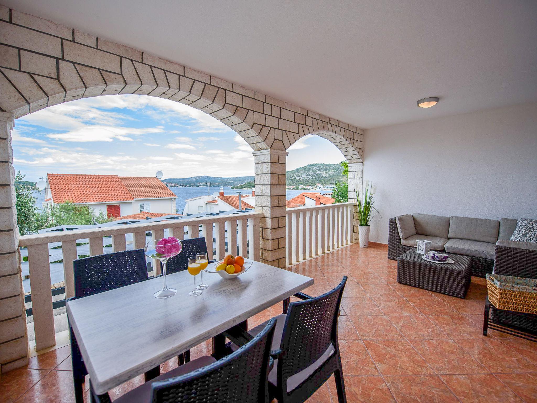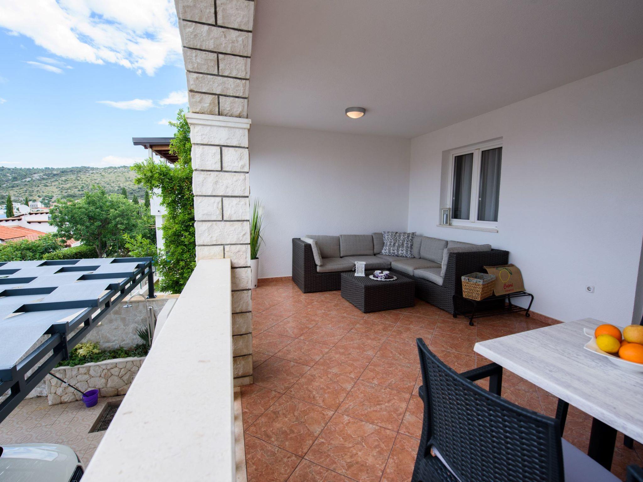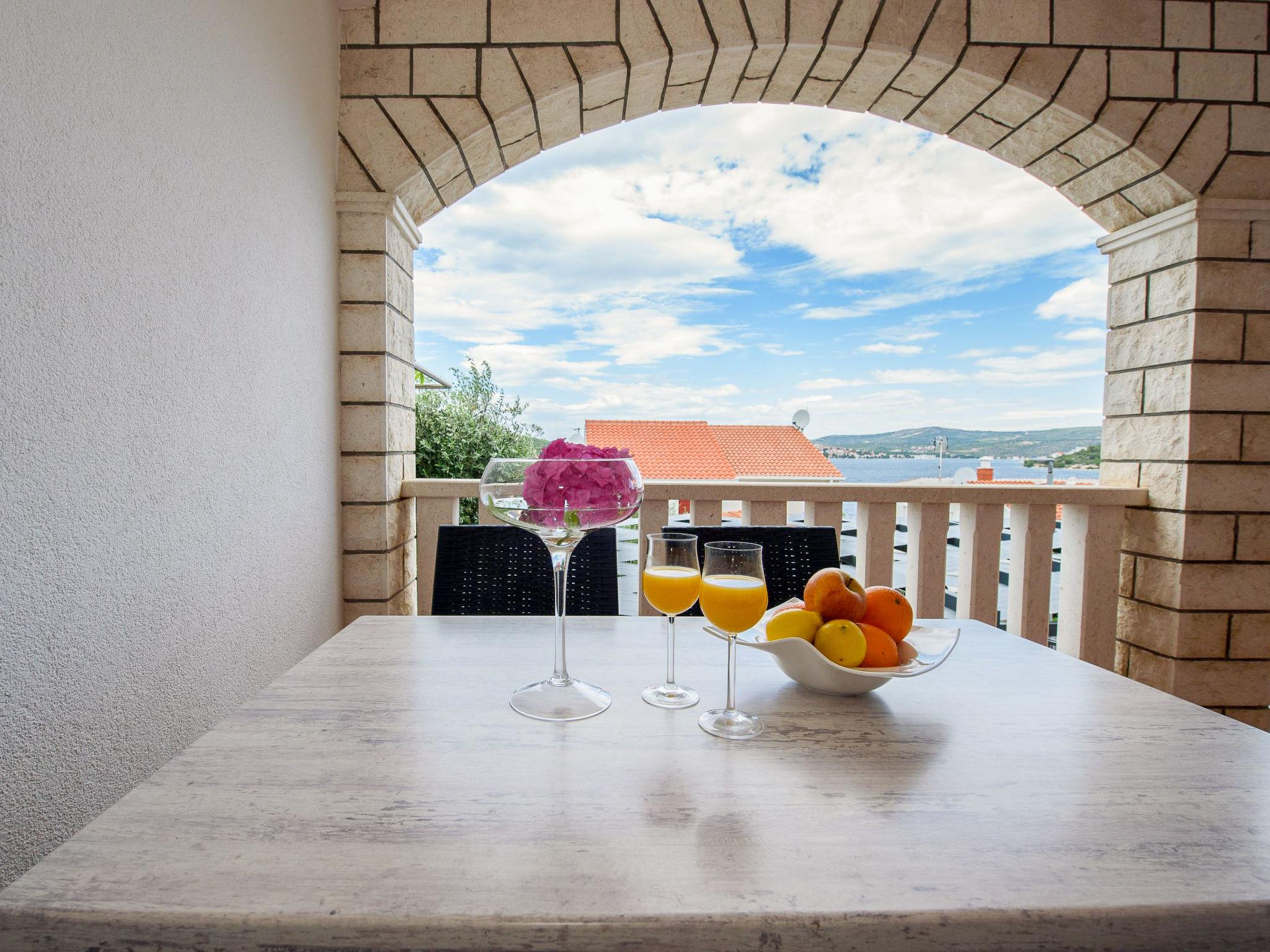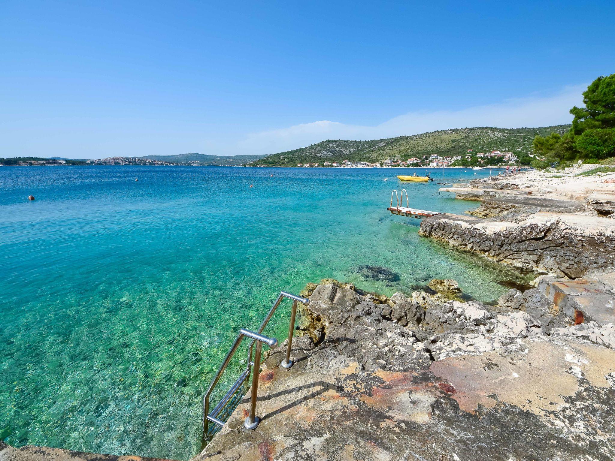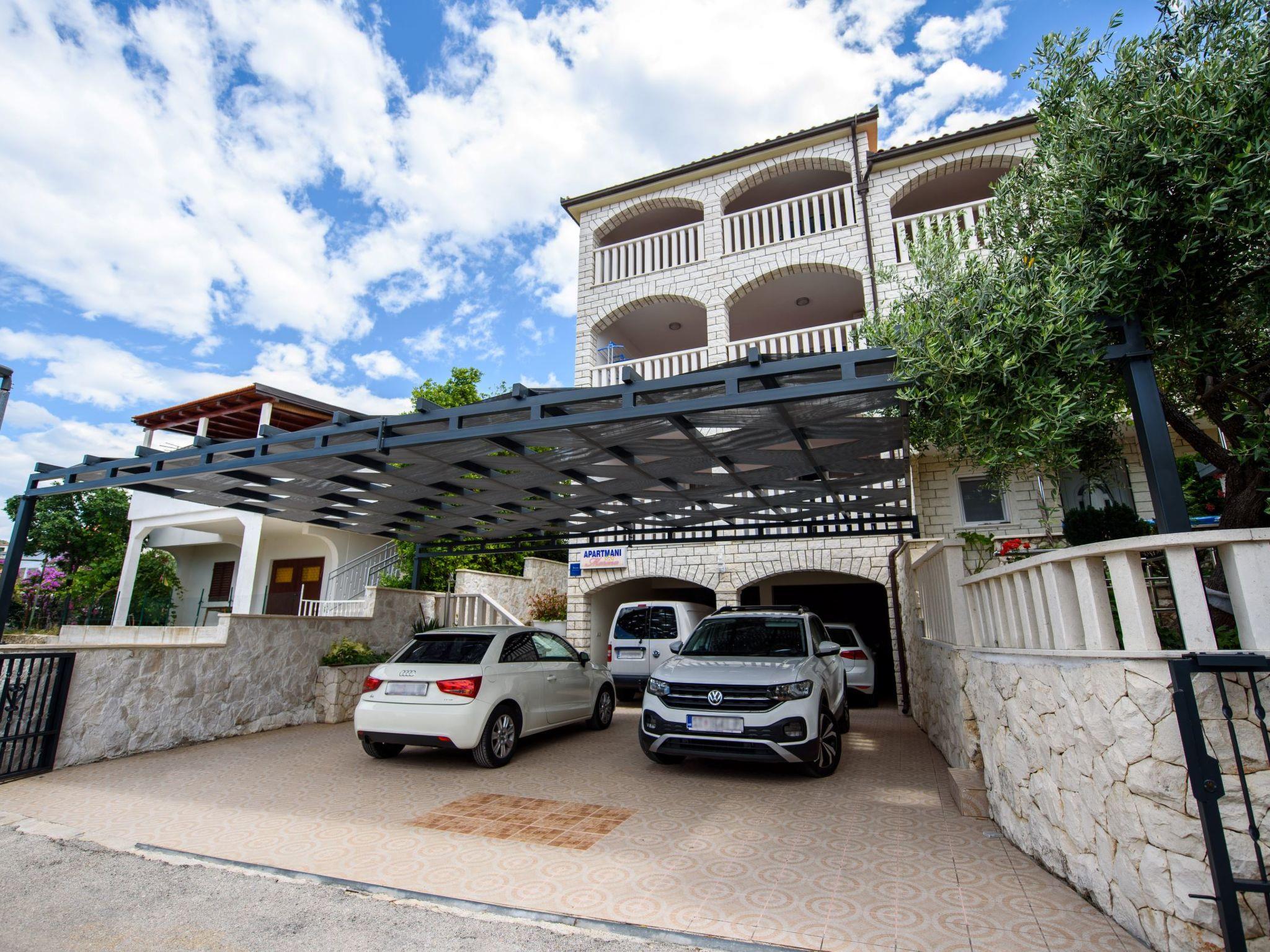 Razanj 10 km from Rogoznica: Beautiful apartment block "Marina". In the district of Ljoljinica, in a quiet, elevated position, 40 m from the sea. For shared use: outdoor shower, terrace, garden furniture, barbecue. In the house: internet access. Roofed, parking at the house on the premises, communal covered parking. Shop, restaurant 200 m, bus stop 5.1 km, rocky beach 40 m. Please note: Additional accommodations can be booked.