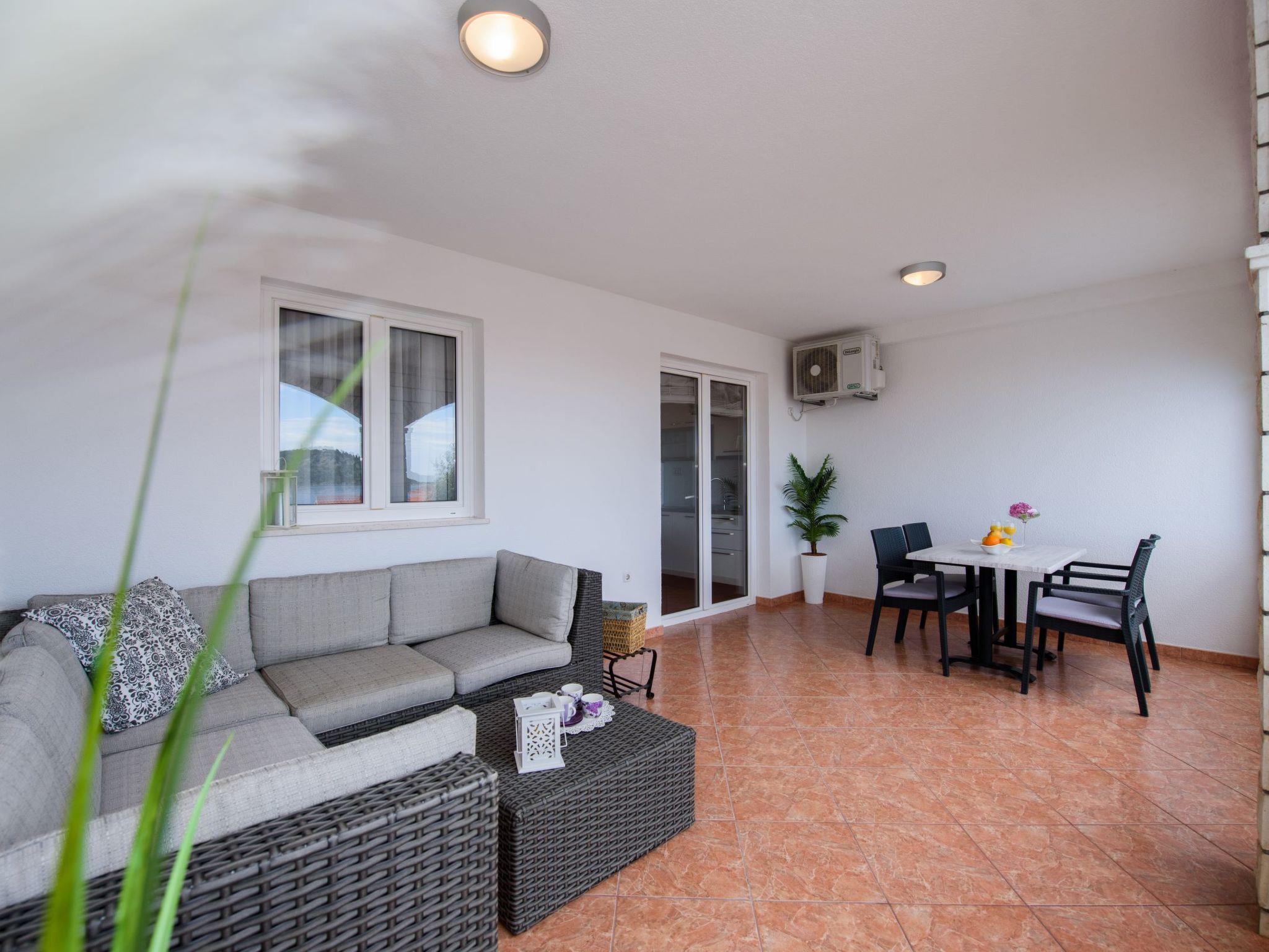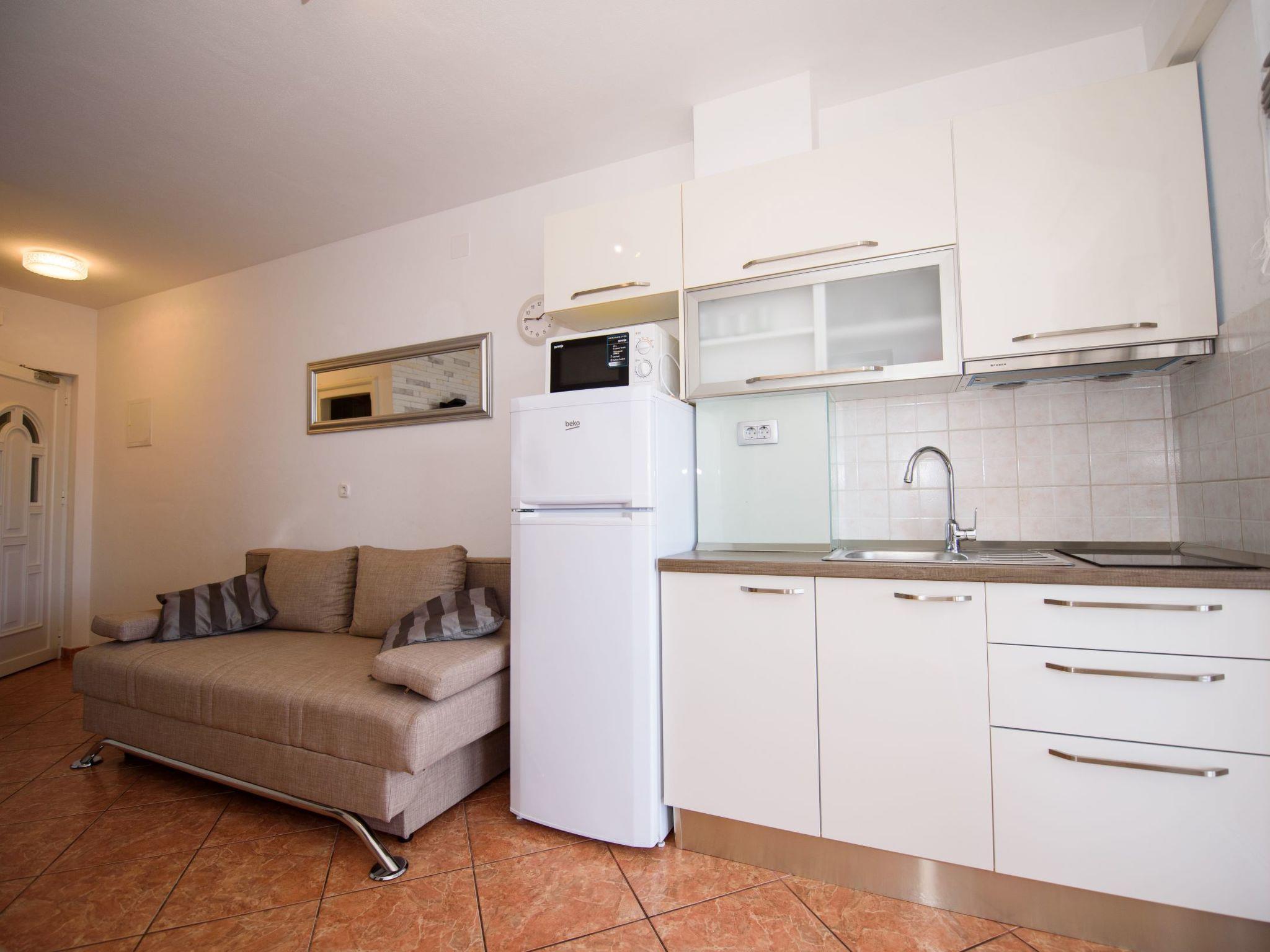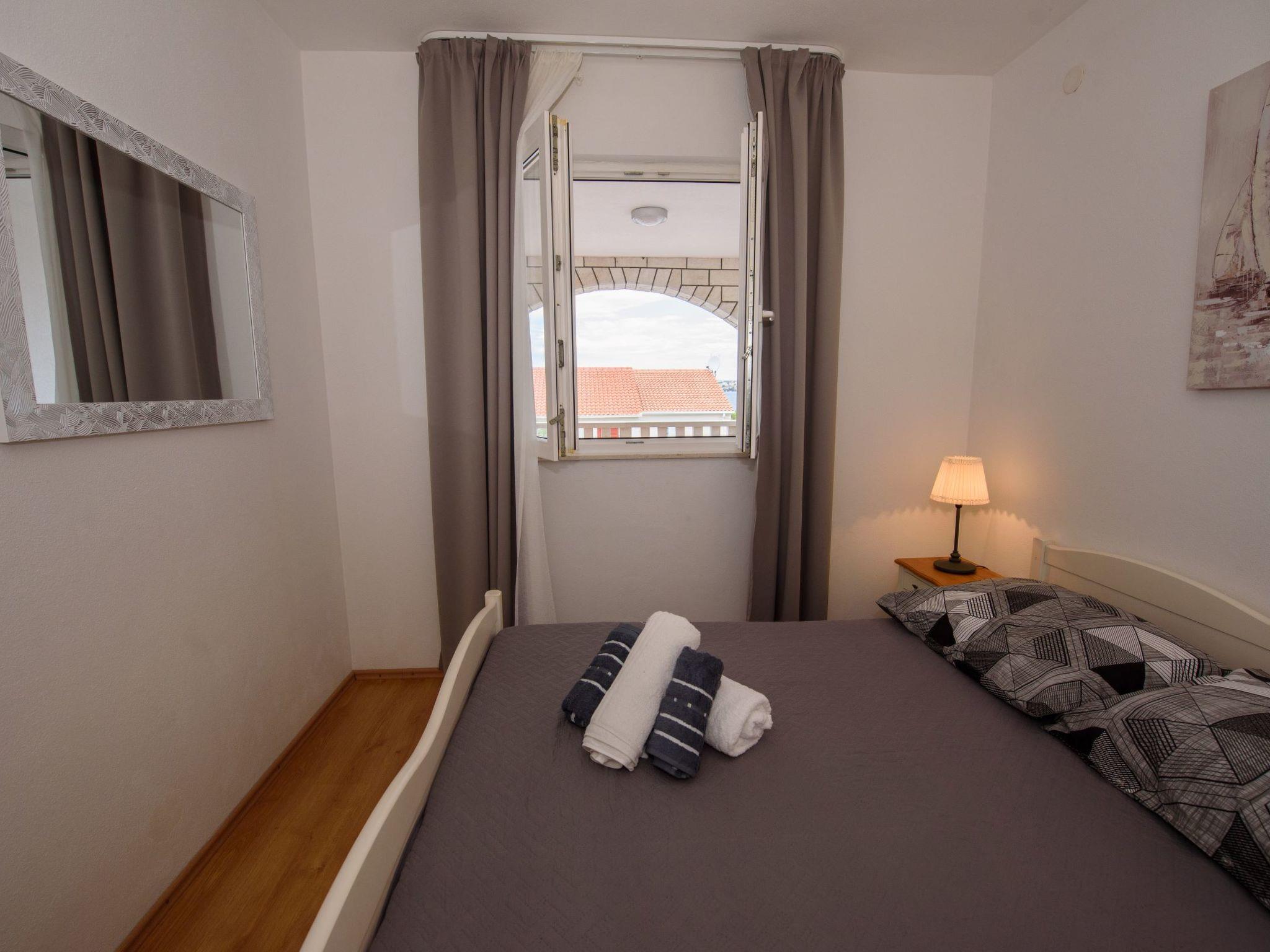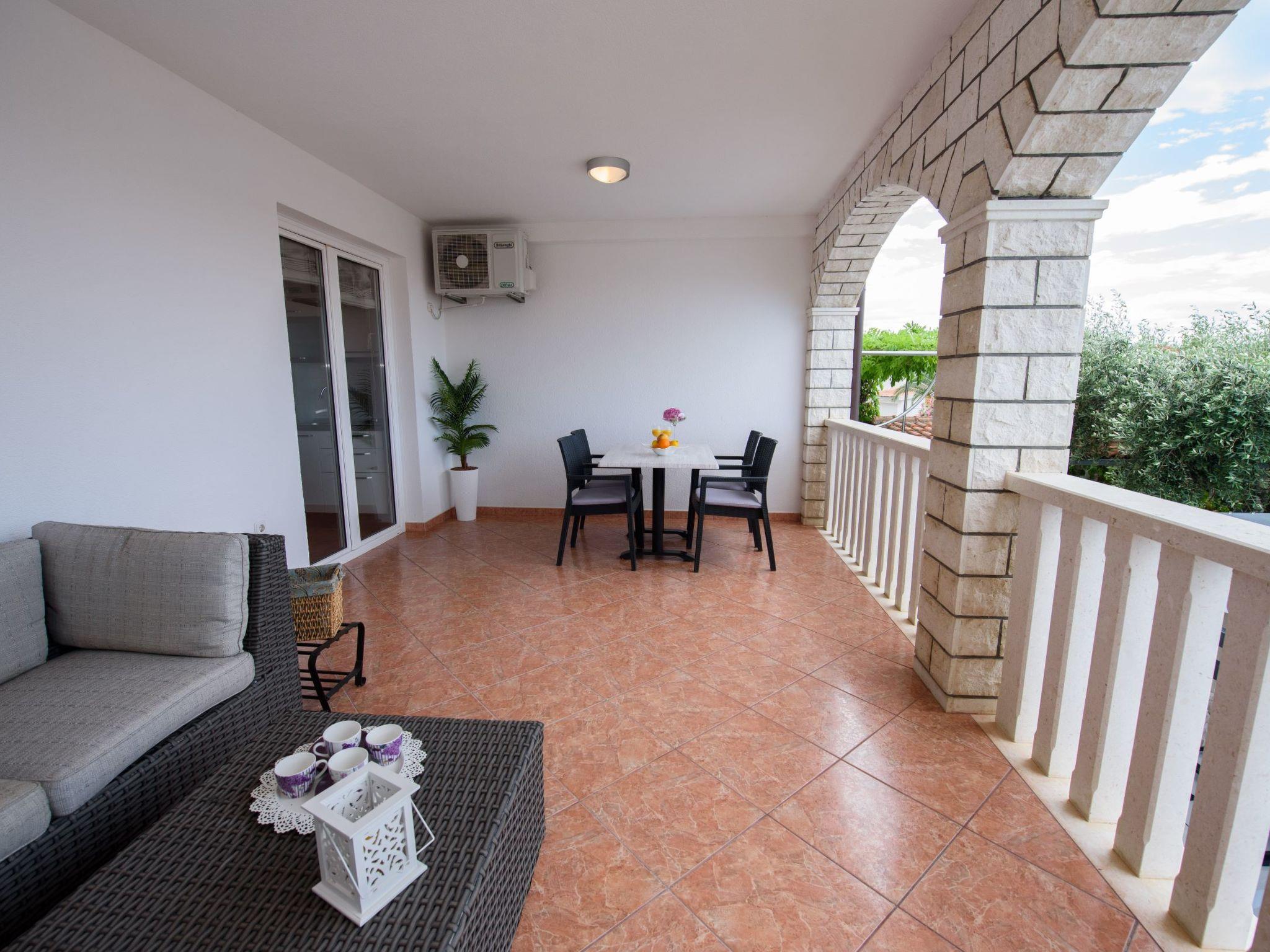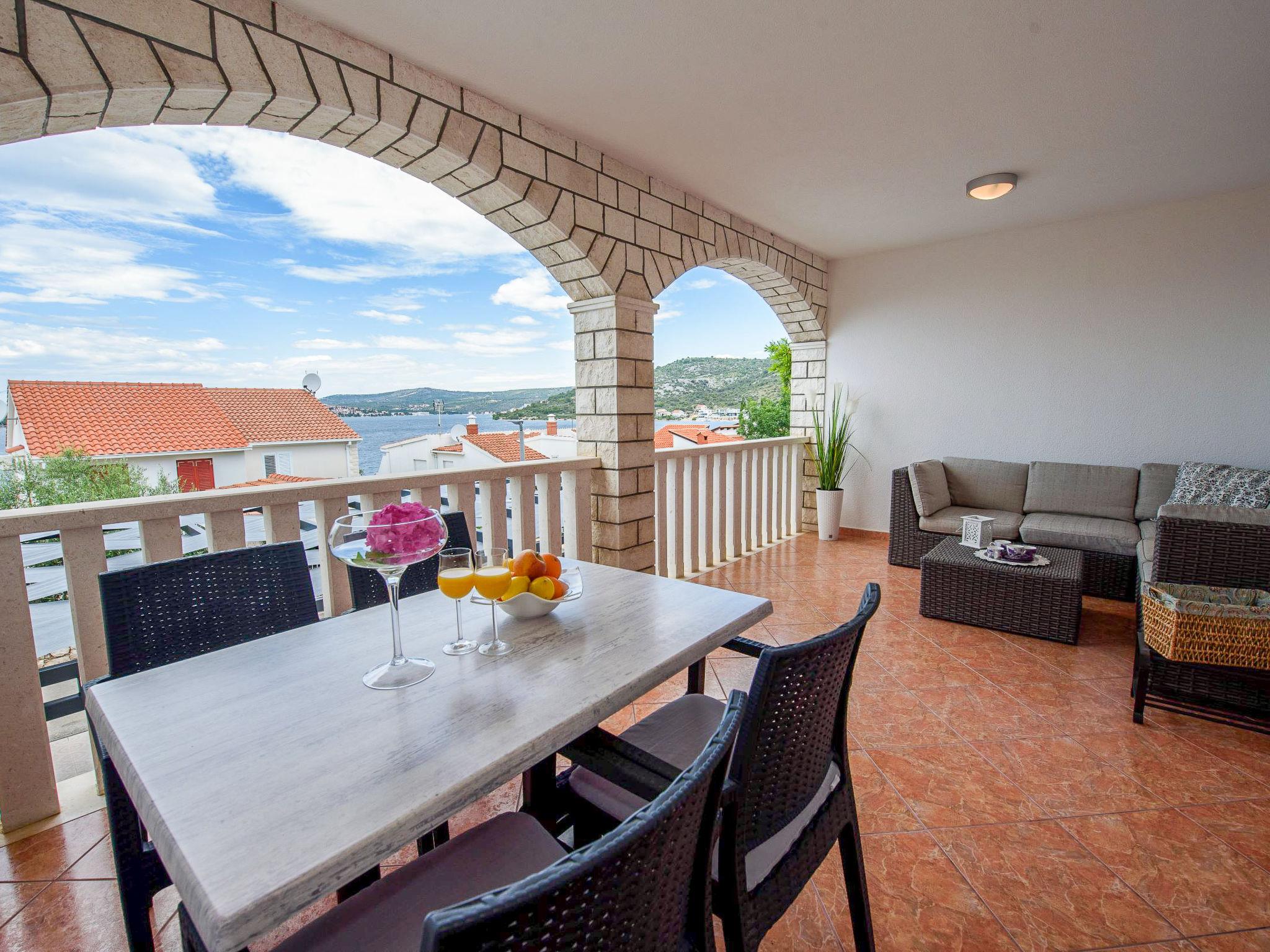 Razanj 10 km from Rogoznica: Beautiful apartment block "Marina". In the district of Ljoljinica, in a quiet, elevated position, 40 m from the sea. For shared use: outdoor shower, terrace, garden furniture, barbecue. In the house: internet access. Roofed, parking at the house on the premises, communal covered parking. Shop, restaurant 200 m, bus stop 5.1 km, rocky beach 40 m. Please note: Additional accommodations can be booked.