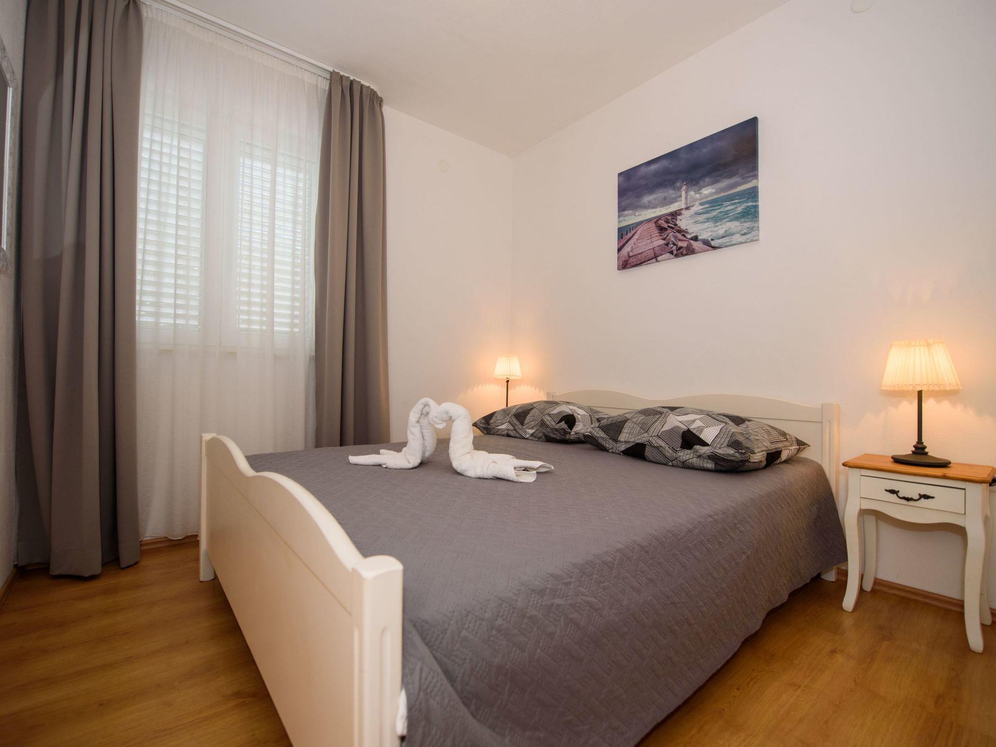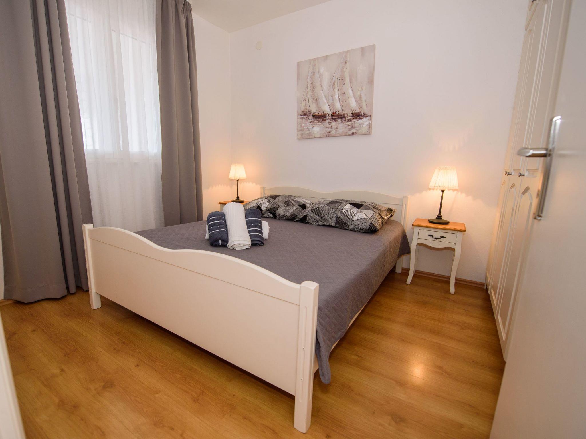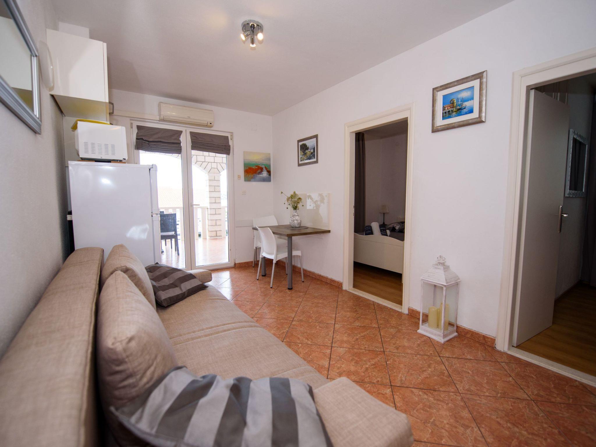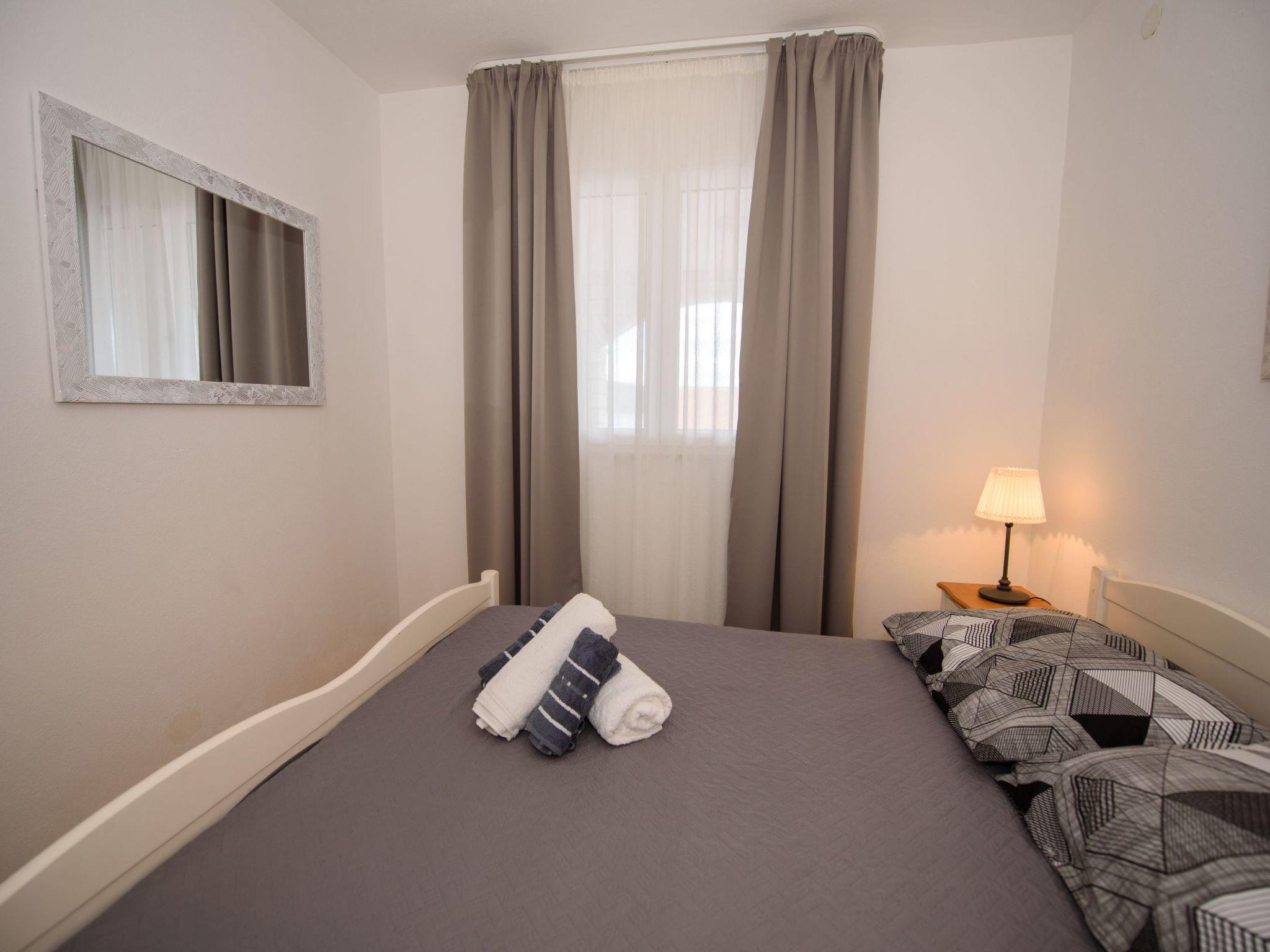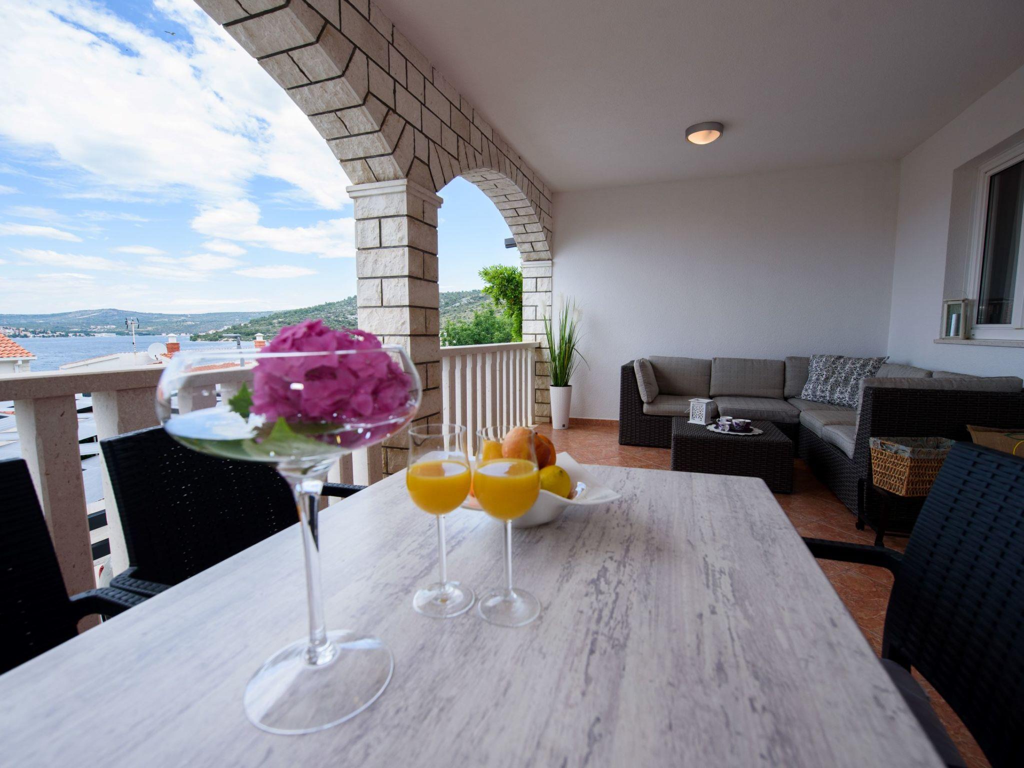 Razanj 10 km from Rogoznica: Beautiful apartment block "Marina". In the district of Ljoljinica, in a quiet, elevated position, 40 m from the sea. For shared use: outdoor shower, terrace, garden furniture, barbecue. In the house: internet access. Roofed, parking at the house on the premises, communal covered parking. Shop, restaurant 200 m, bus stop 5.1 km, rocky beach 40 m. Please note: Additional accommodations can be booked.