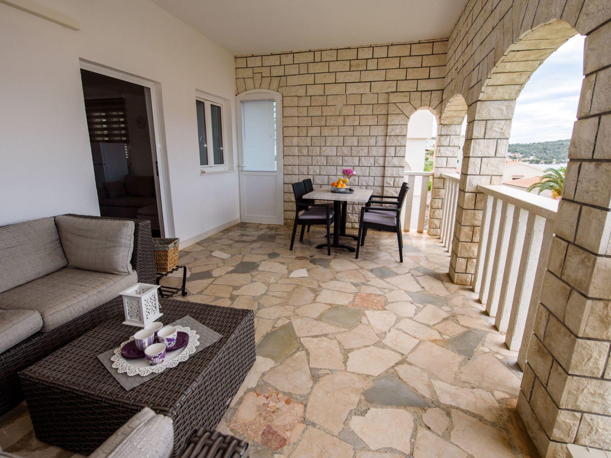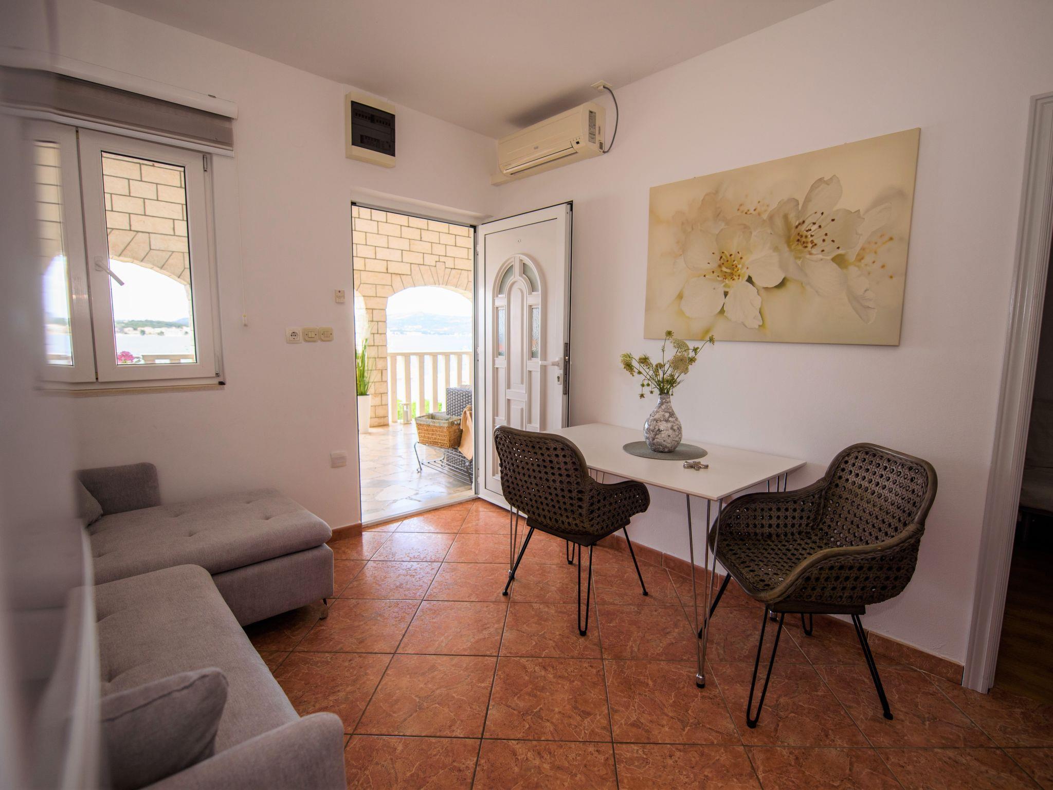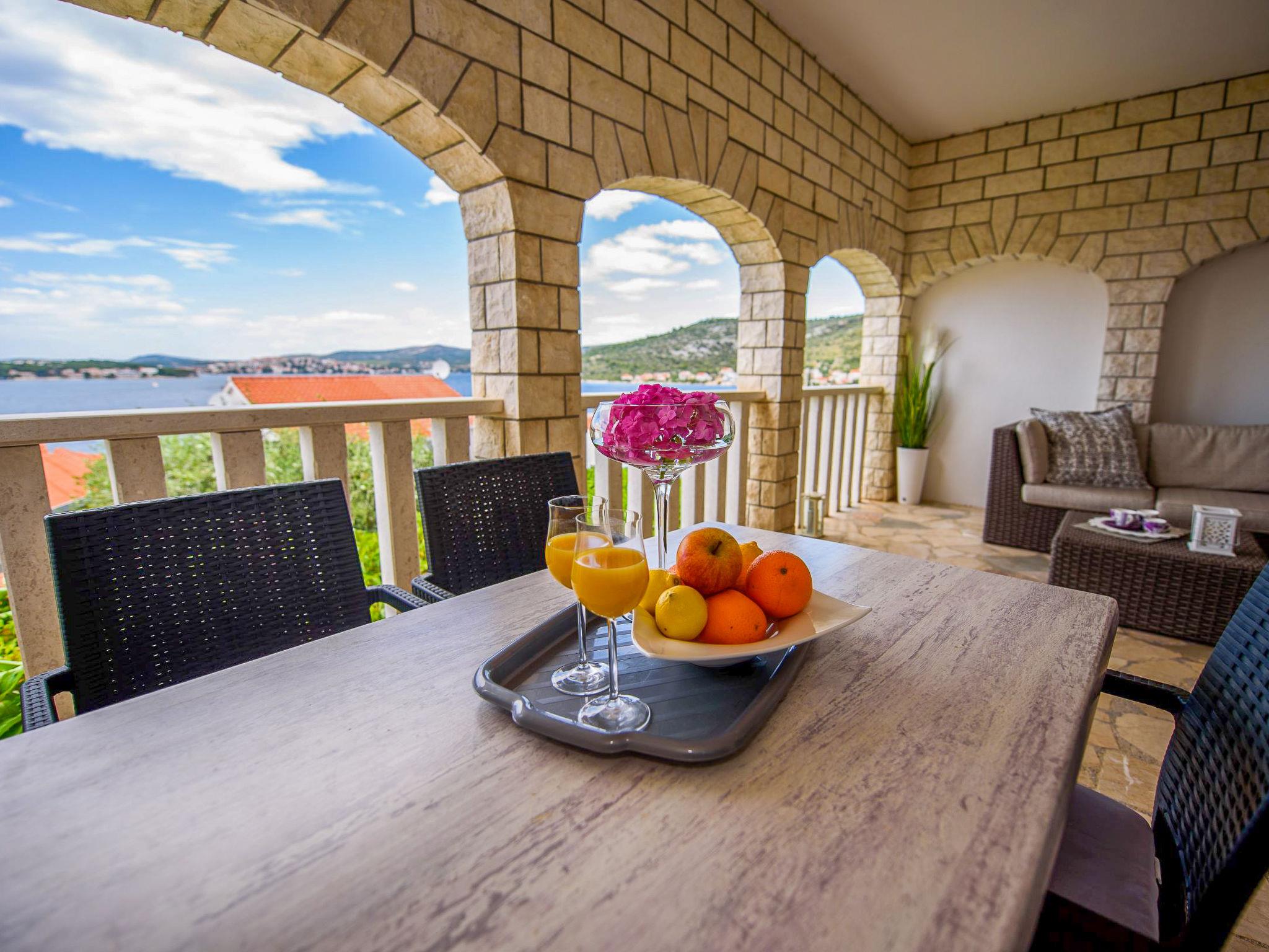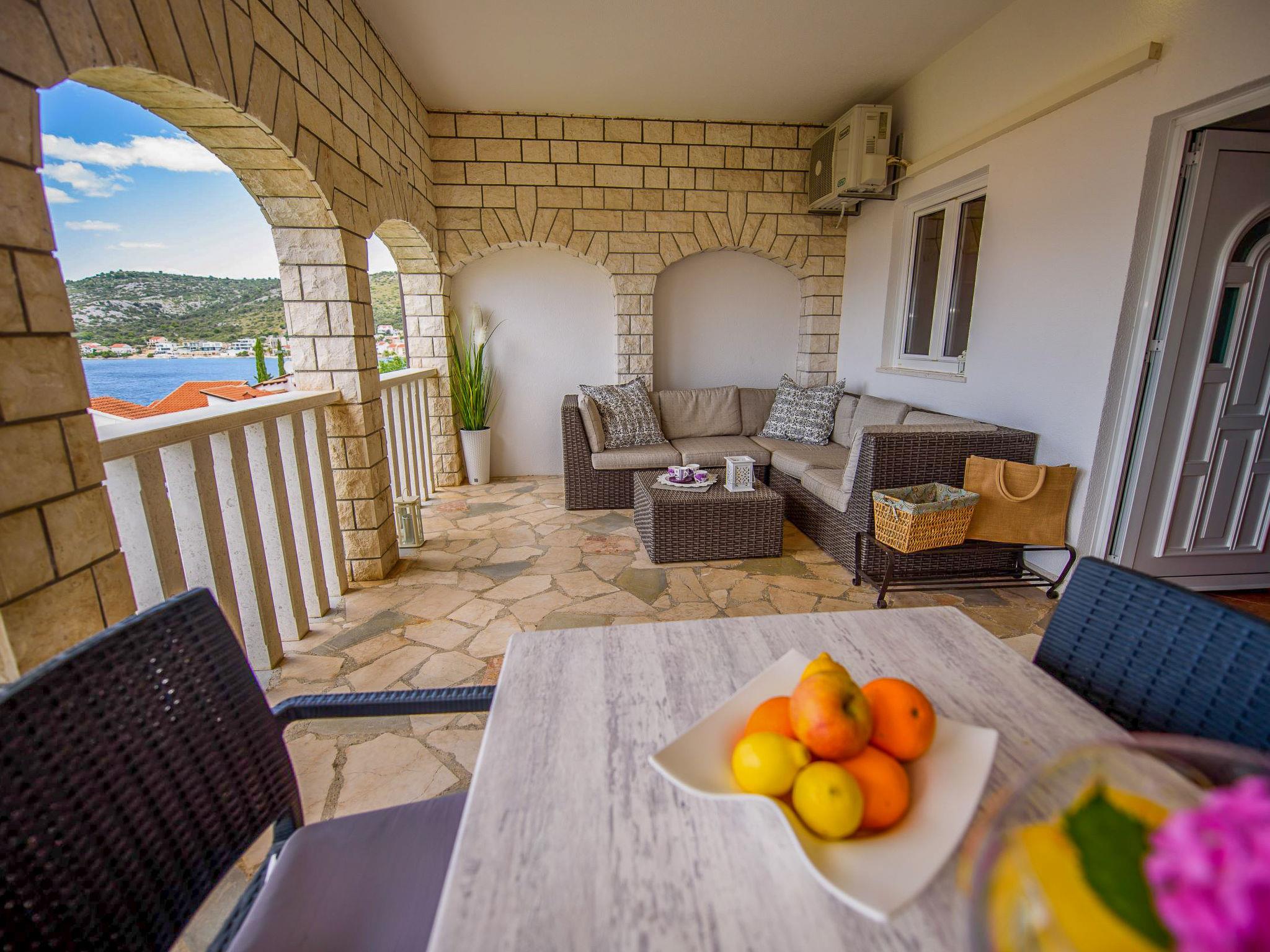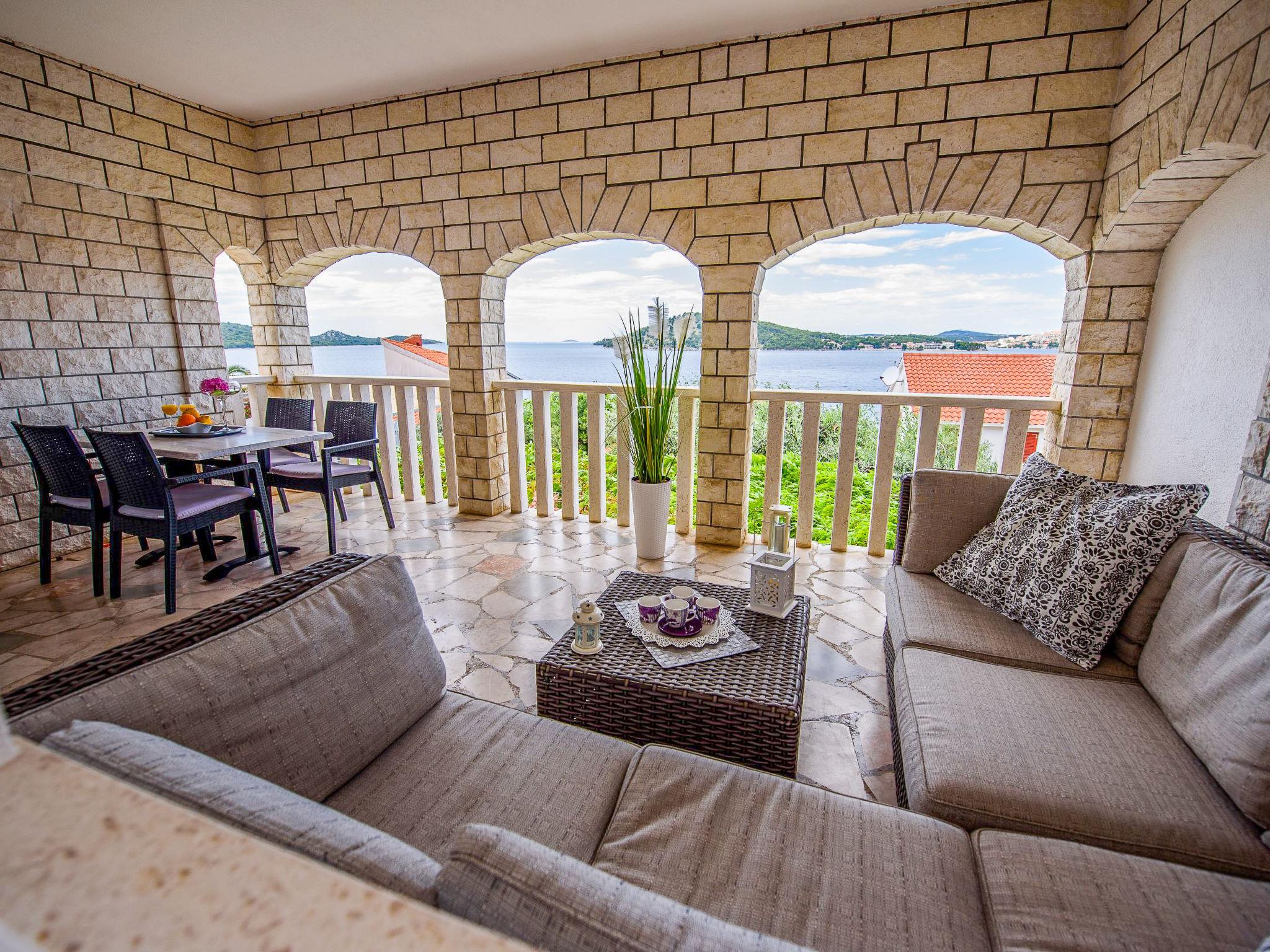 Razanj 10 km from Rogoznica: Beautiful apartment block "Marina". In the district of Ljoljinica, in a quiet, elevated position, 40 m from the sea. For shared use: outdoor shower, terrace, garden furniture, barbecue. In the house: internet access. Roofed, parking at the house on the premises, communal covered parking. Shop, restaurant 200 m, bus stop 5.1 km, rocky beach 40 m. Please note: Additional accommodations can be booked.