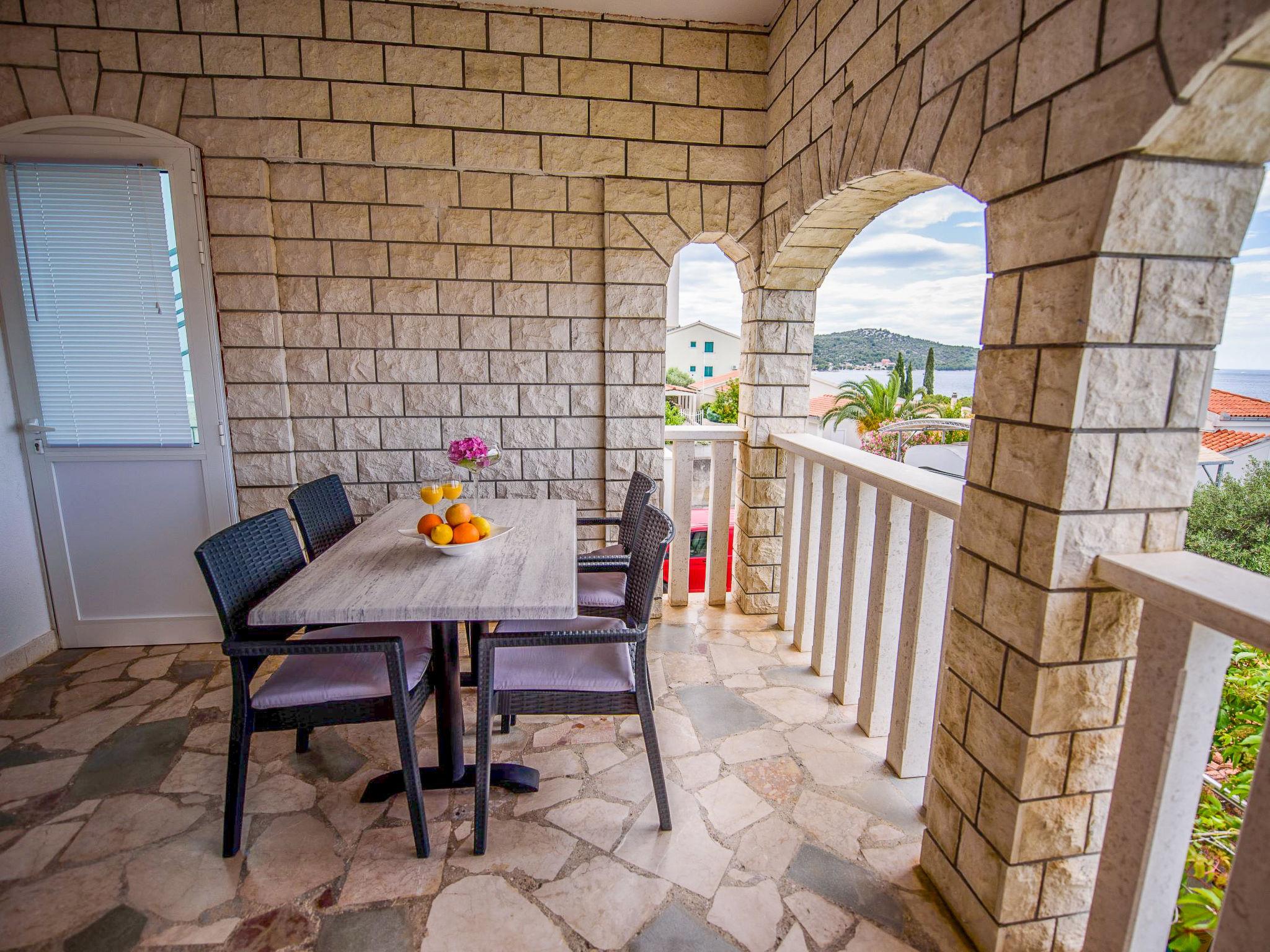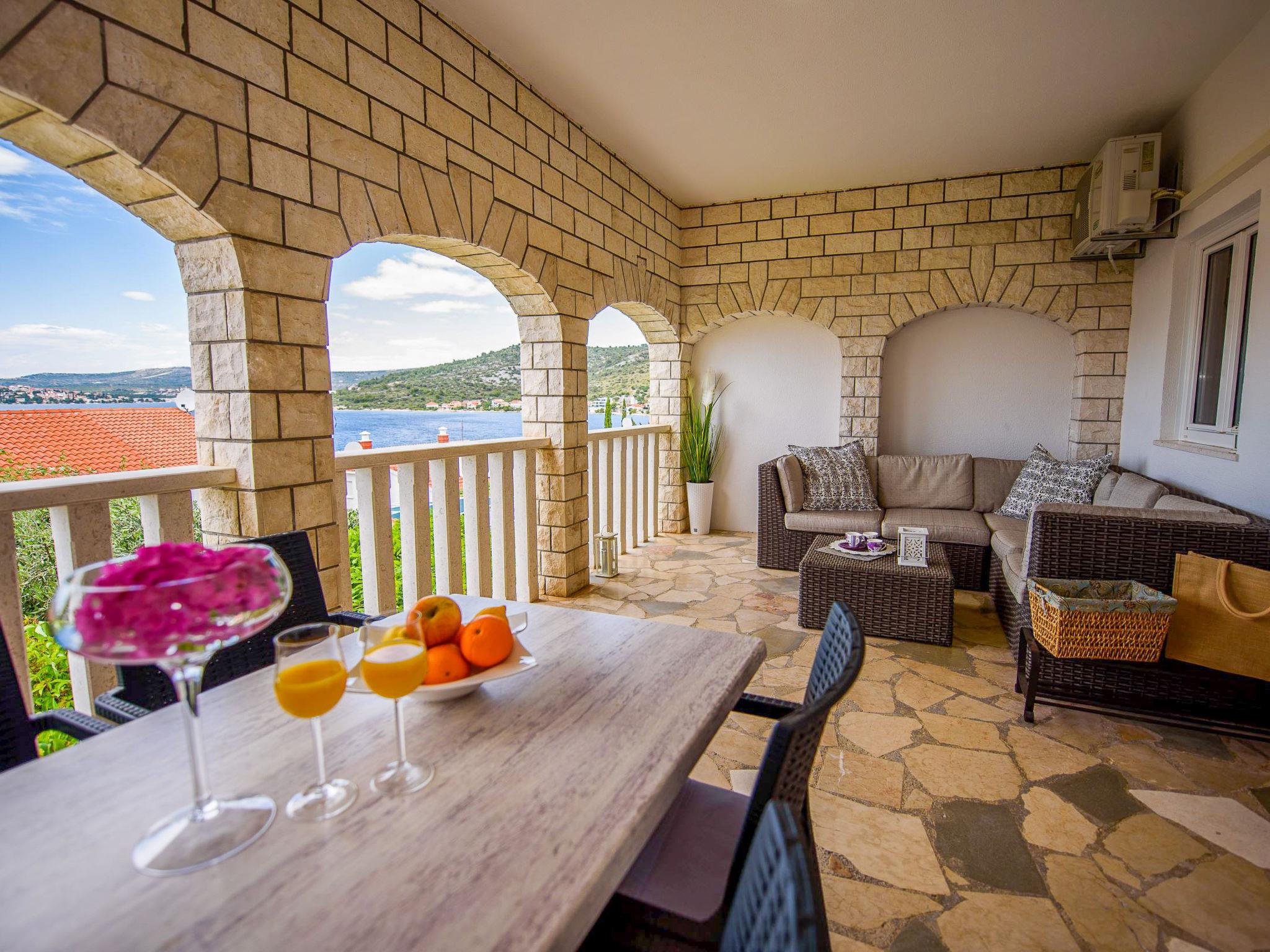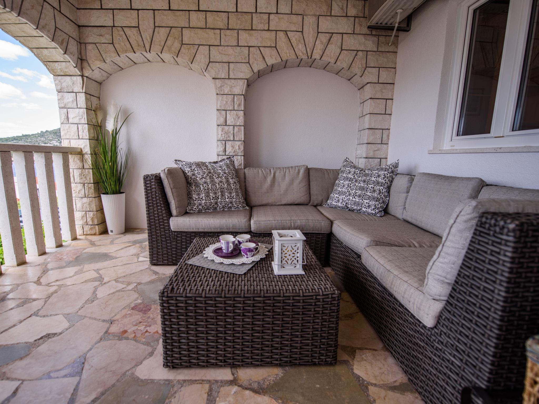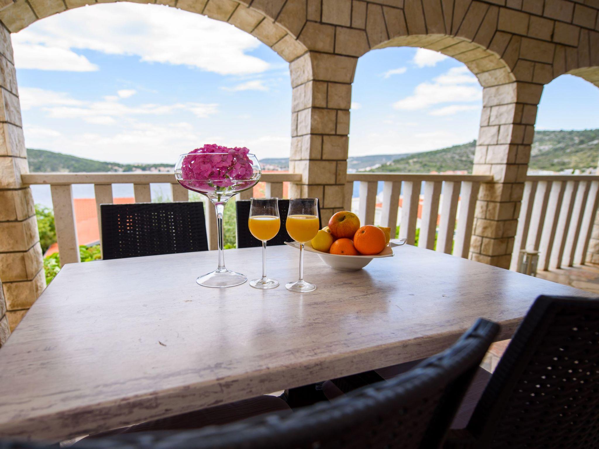 Razanj 10 km from Rogoznica: Beautiful apartment block "Marina". In the district of Ljoljinica, in a quiet, elevated position, 40 m from the sea. For shared use: outdoor shower, terrace, garden furniture, barbecue. In the house: internet access. Roofed, parking at the house on the premises, communal covered parking. Shop, restaurant 200 m, bus stop 5.1 km, rocky beach 40 m. Please note: Additional accommodations can be booked.