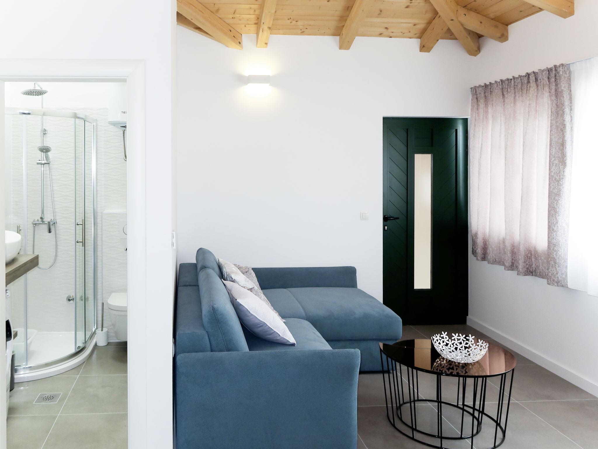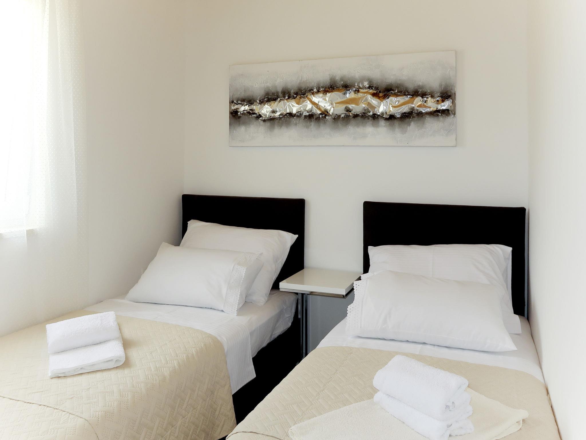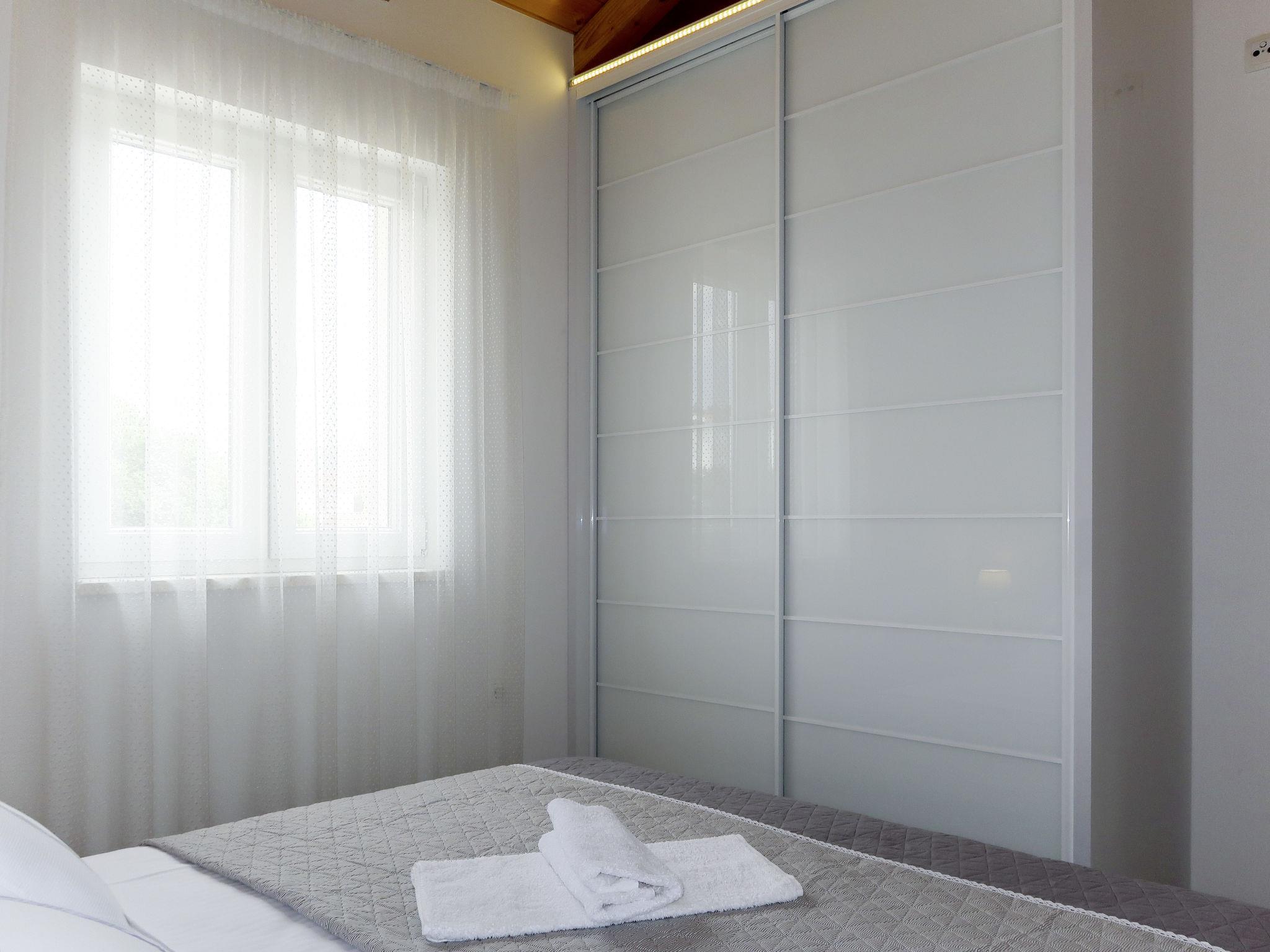 "Camp Marko", 3-room apartment 38 m2 on 1st floor. Living/dining room with satellite TV and air conditioning. Exit to the balcony. 1 room with 1 french bed (160 cm, length 200 cm). 1 room with 2 beds. Open kitchen (oven, dishwasher, 4 ceramic glass hob hotplates, toaster, kettle, electric coffee machine). Shower/WC. No heating option. Balcony 4 m2. Balcony furniture. Facilities: Internet (WiFi, free).