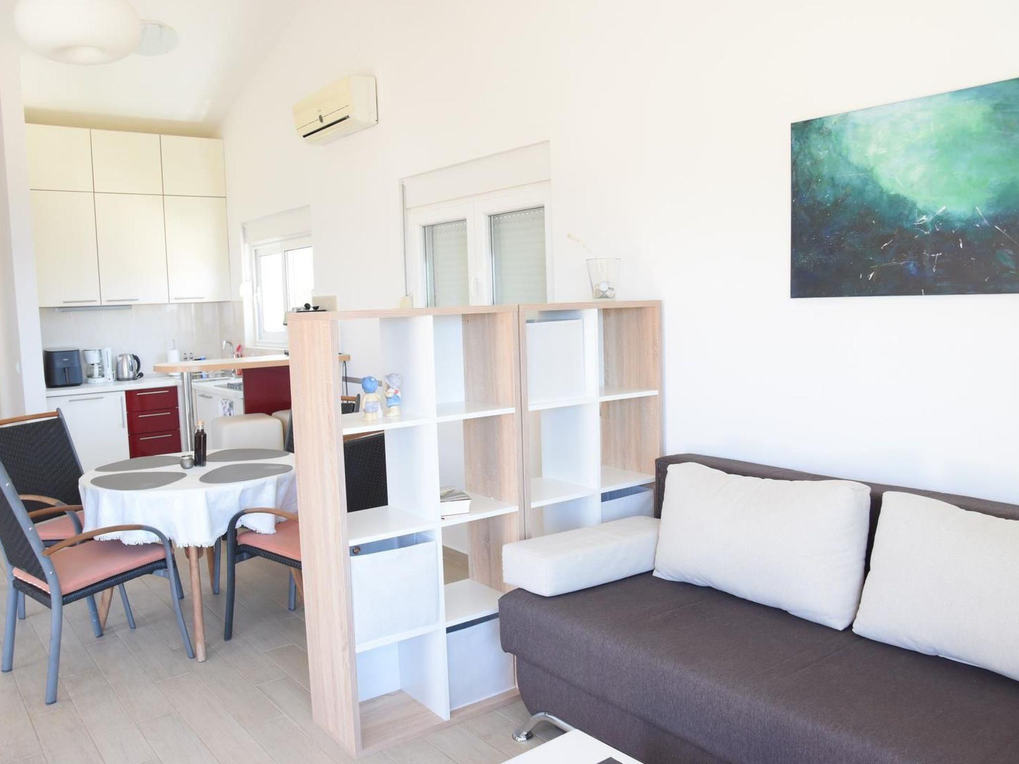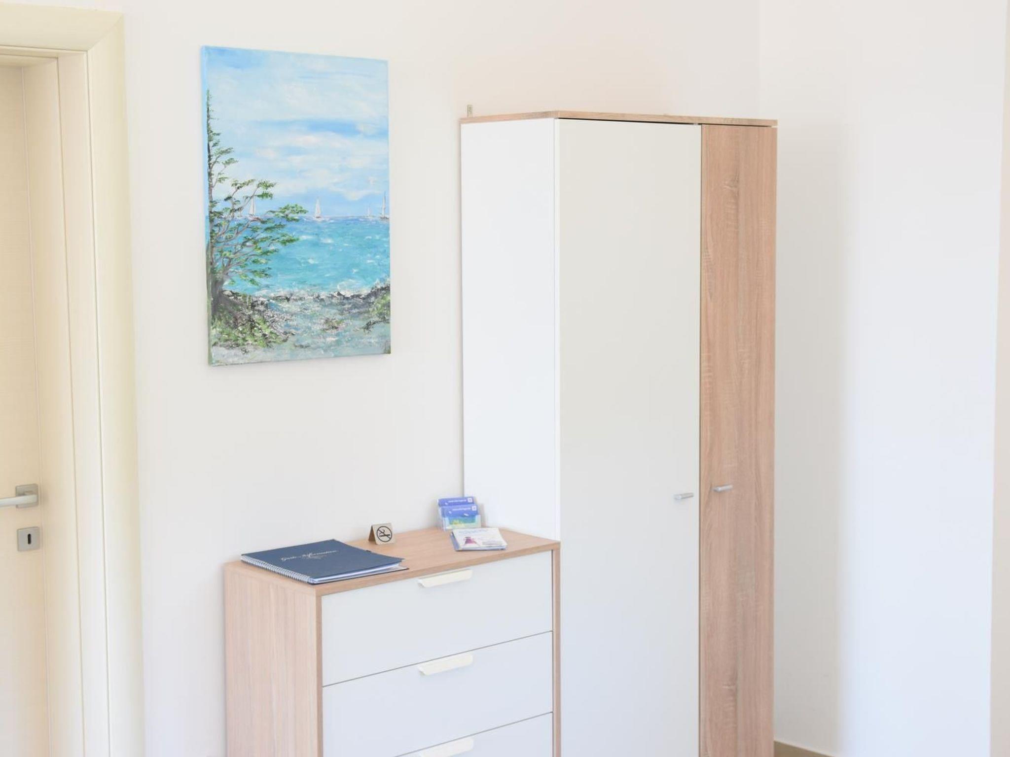 The loft is located on the first floor of the villa and is therefore the top flat. In the large living room, a sofa with TV invites you to linger. The comfortable sofa can also be used as a sofa bed for two guests or children. The high quality of the couch makes you feel as if you are lying in a bed. The open-plan modern kitchen with a counter is also located in the living area. In addition to all the important kitchen utensils, you will also find a dishwasher, a toaster, a kettle and an electric cooker. A dining table invites you to eat together after preparing and cooking. Next door is the separate bedroom with a double bed. From both the bedroom and the living room, you can enjoy an excellent sea view through full-sided panoramic windows as you get up and have breakfast. The entire flat can be cooled via the new air conditioning system with remote control (2015). A large, spacious bathroom with an equally spacious shower completes the offer in the holiday flat.