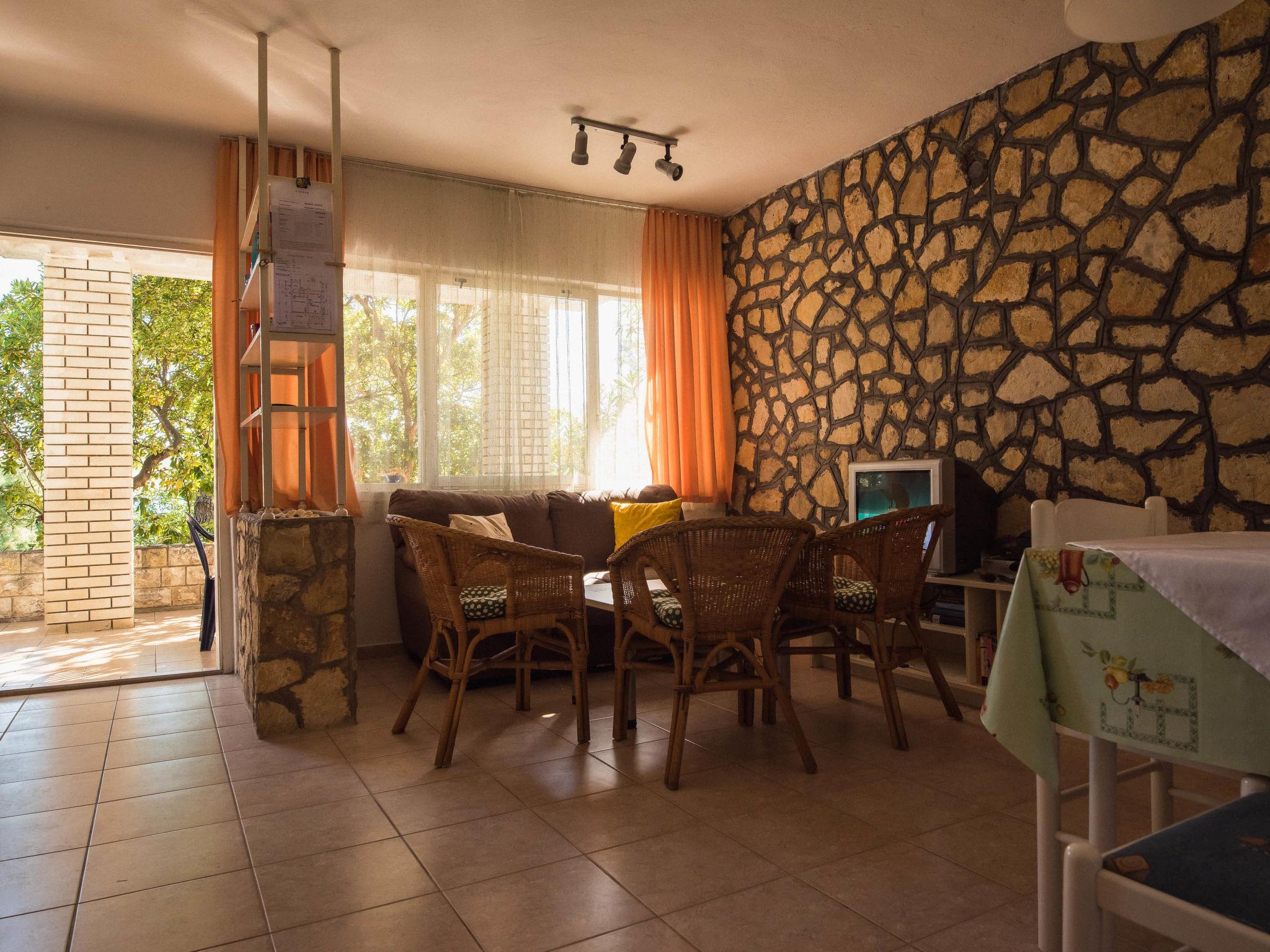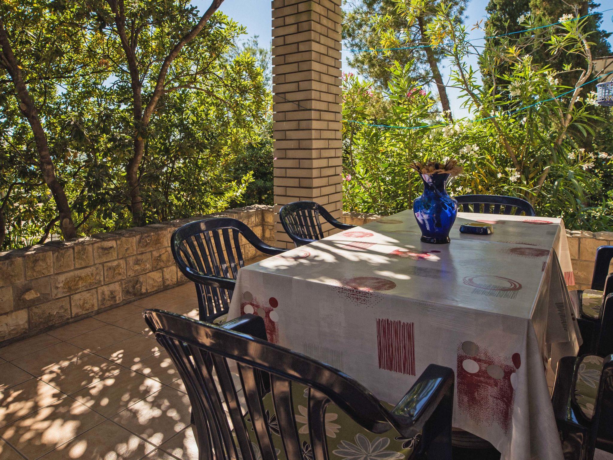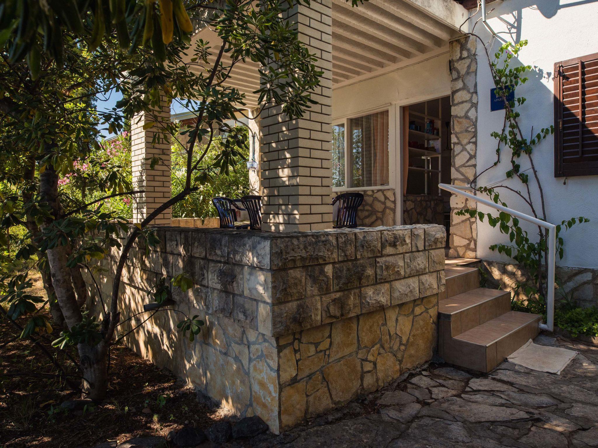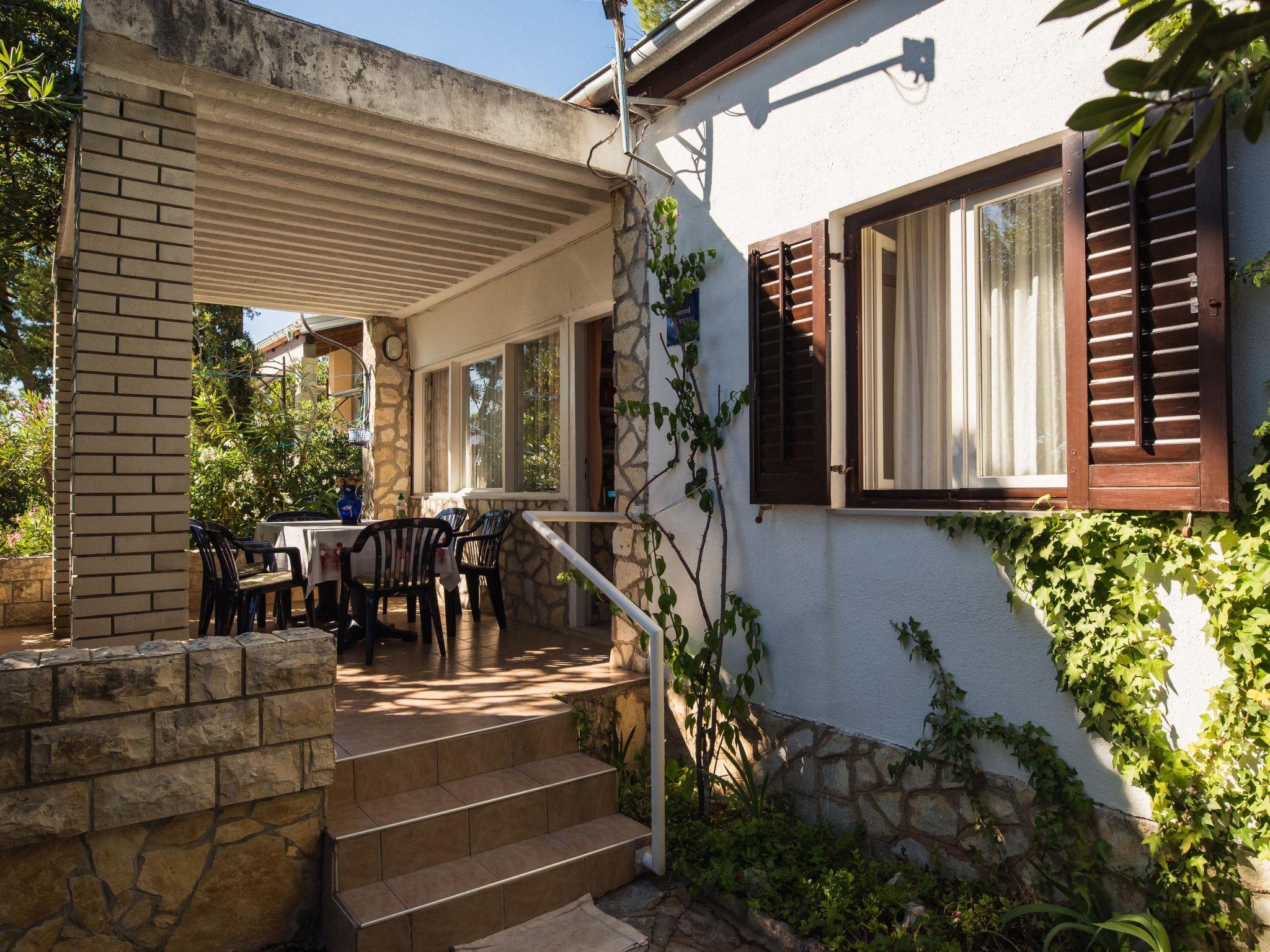 Single-family house "Dada", surrounded by trees. 15 m from the sea, road to cross, located by a road, in the countryside. Private: property 400 m2 (fenced) with wildlife garden and trees, natural garden. Outdoor shower. In the house: internet access. Parking at the house on the premises. Shop, restaurant 300 m, bus stop 450 m, shingle beach, rocky beach 15 m.