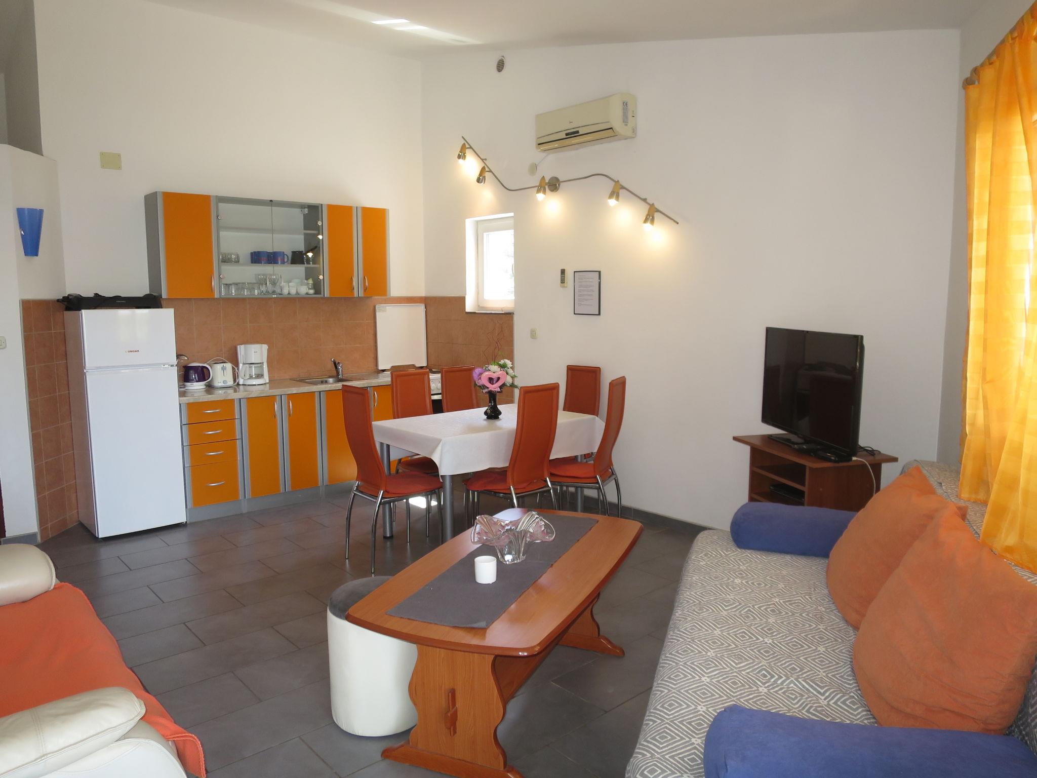 "Ivanka", 2-room apartment 50 m2 on 2nd floor. Living/dining room with 1 double sofabed (150 cm, length 190 cm), satellite TV and air conditioning. Exit to the balcony. 1 room with 1 bed (140 cm, length 200 cm), 1 french bed (150 cm, length 190 cm). Open kitchen (4 hot plates, oven, toaster, kettle, freezer, electric coffee machine). Shower/WC. No heating option. Balcony 20 m2. Balcony furniture. View of the sea. Facilities: Internet (WiFi, free). Parking (1 car). Please note: non-smoking house.
