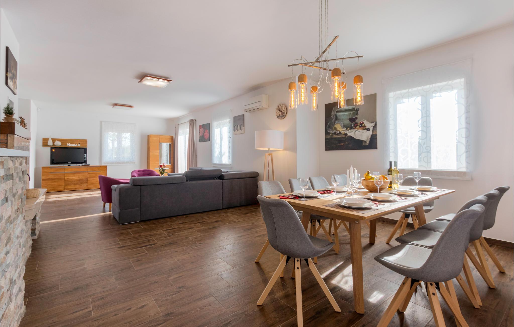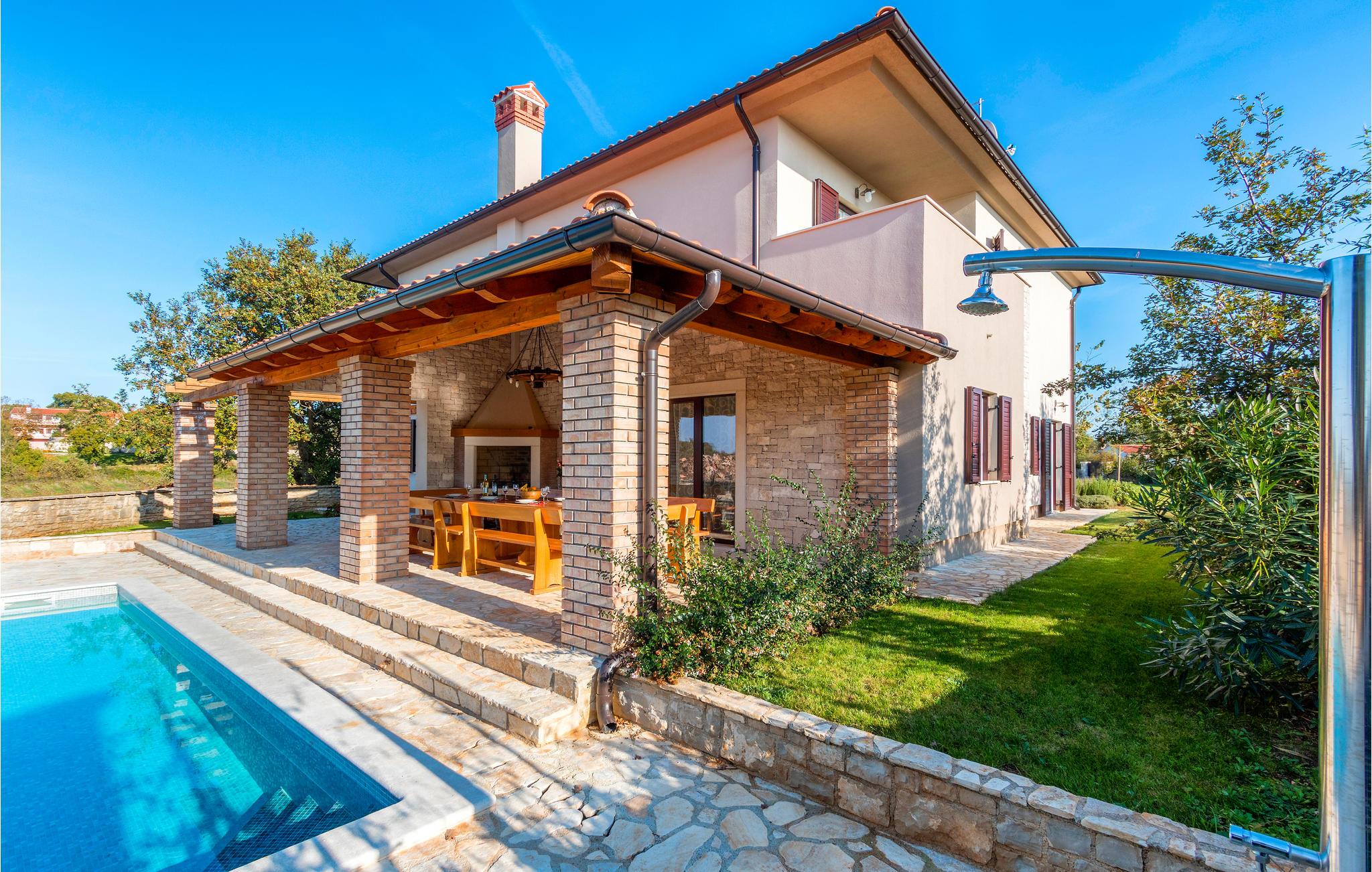 I en lille by, ikke langt fra landsbyen Bale, ligger dette vidunderlige feriehus med pool, der er velegnet til to eller flere familier, der geren vil holde ferie sammen. I husets rummelige stueplan er der køkken, spisestue og stue i et, samt en direkte udgang til den overdækkede terrasse, hvor der også står en muret kamin/grill. I stueplan er der også et soveværelse med eget badeværelse. Der er fire yderligere soveværelser med egne badeværelser og balkoner på første sal. Foran terrassen er der pool og område til solbad. Der er et ekstra wc på grunden. Under jeres ophold kan I tage en tur til den romantiske by Rovinj og gå ture i den gamle bydel til Hl. Euphemiakirken, der troner højt over byen, med en fantastisk flot udsigt over havet.