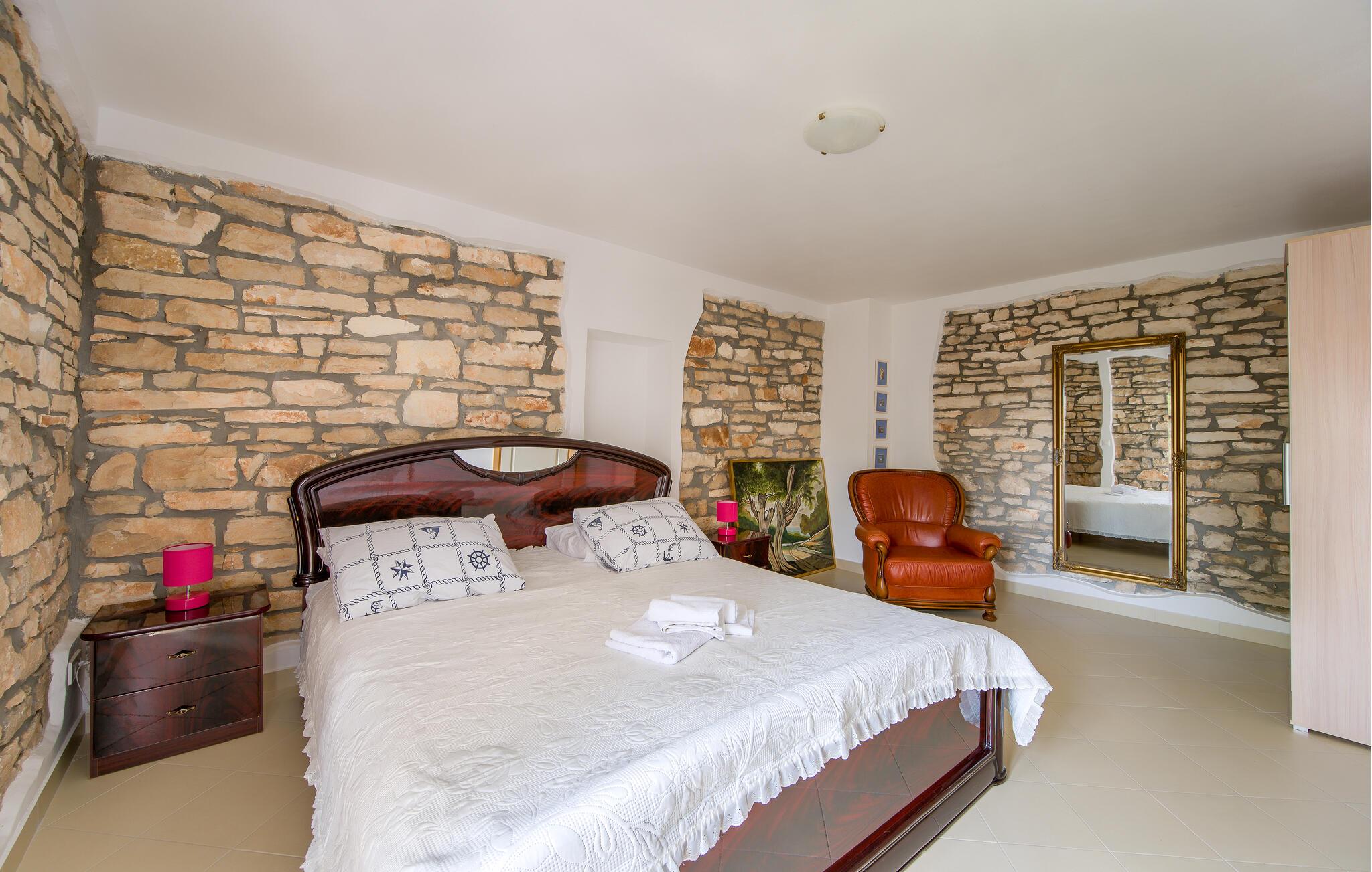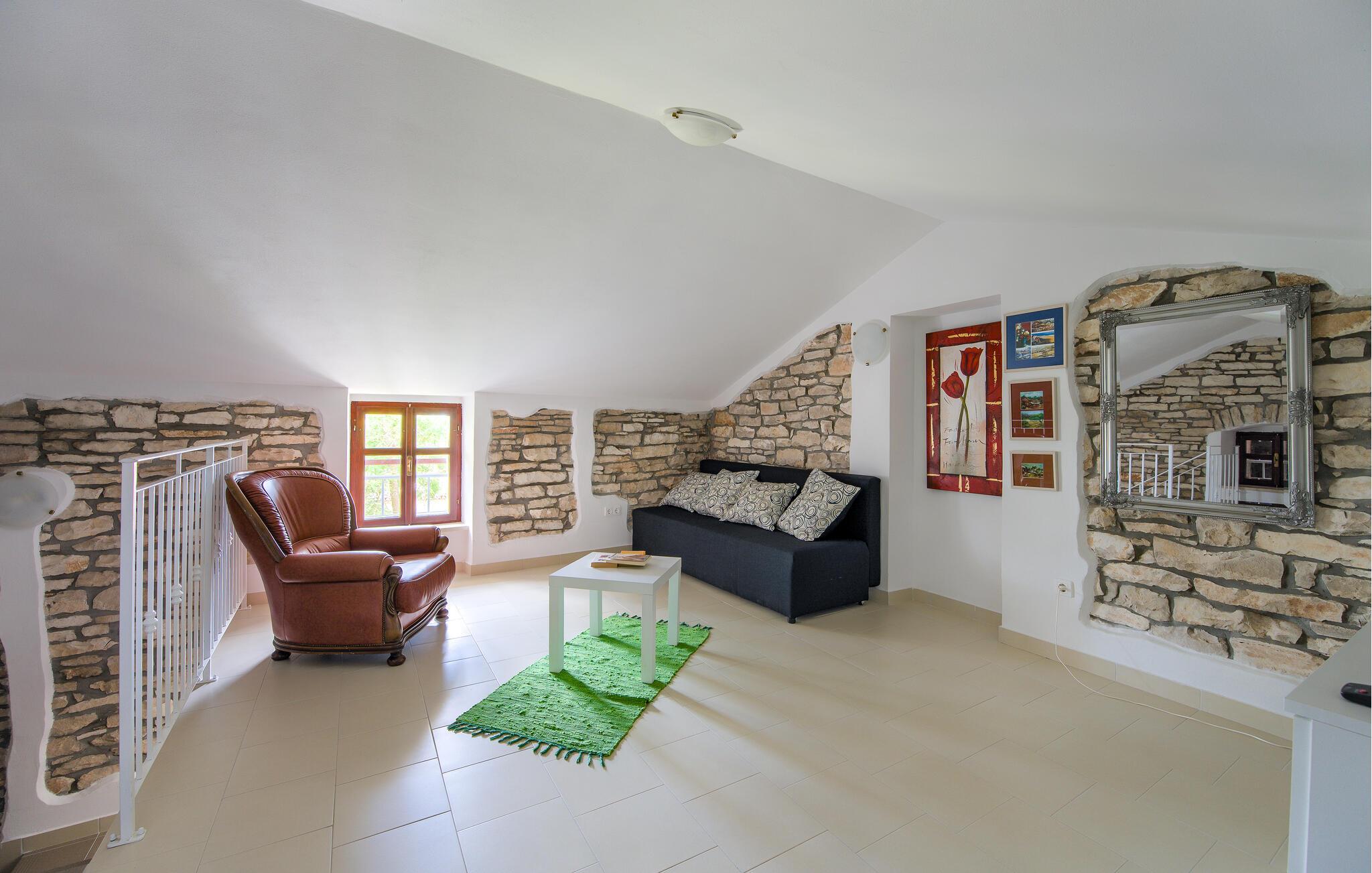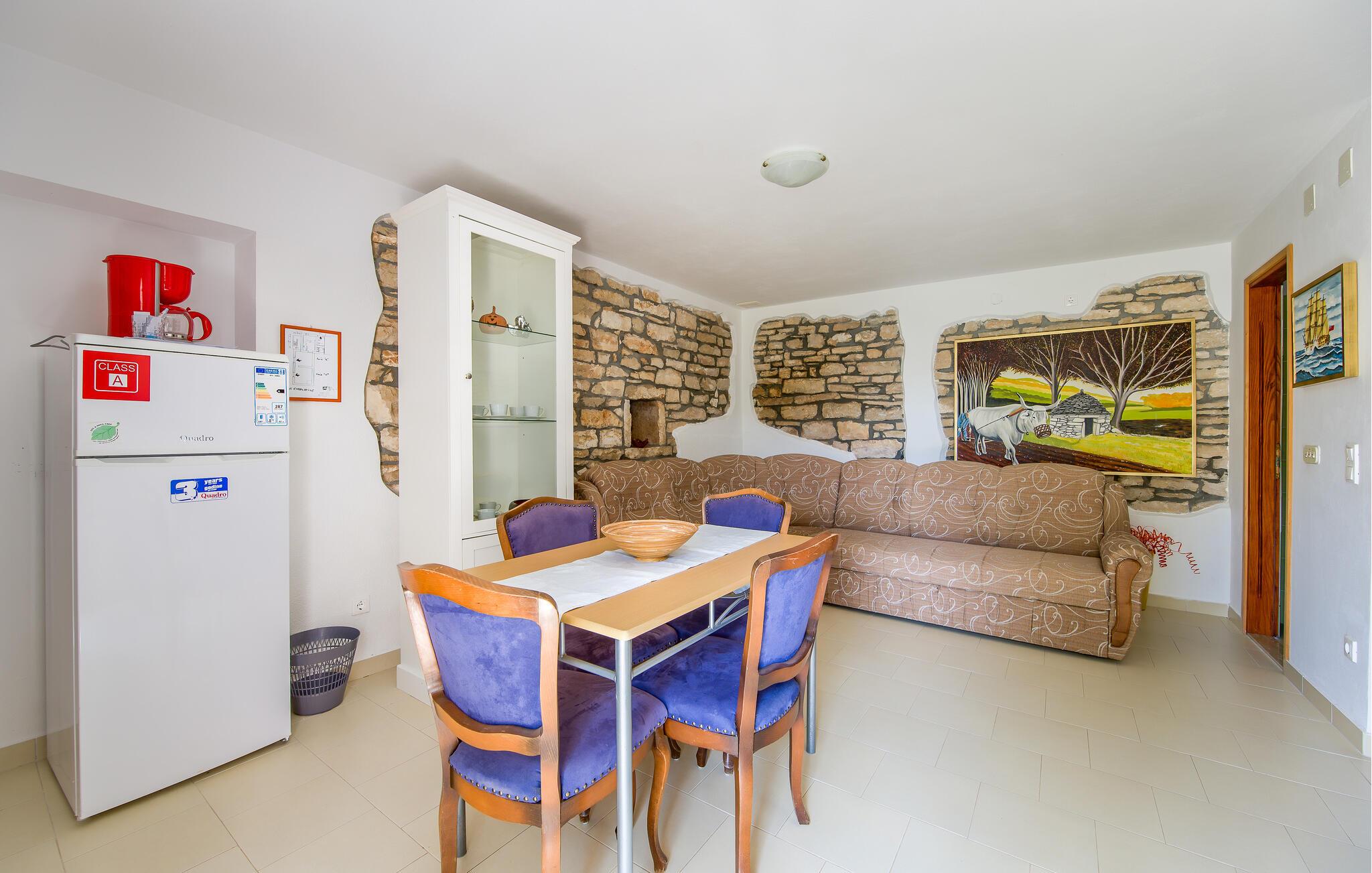 I kan slappe af på den store, indhegnet fælles ejendom, tilberede lækre måltider på den fælles grill og nyde jeres ferie til fulde. Kør herfra til en smuk stenstrand eller besøg den charmerende havneby Rovinj, der tiltrækker med en smuk gammel by og mange restauranter.