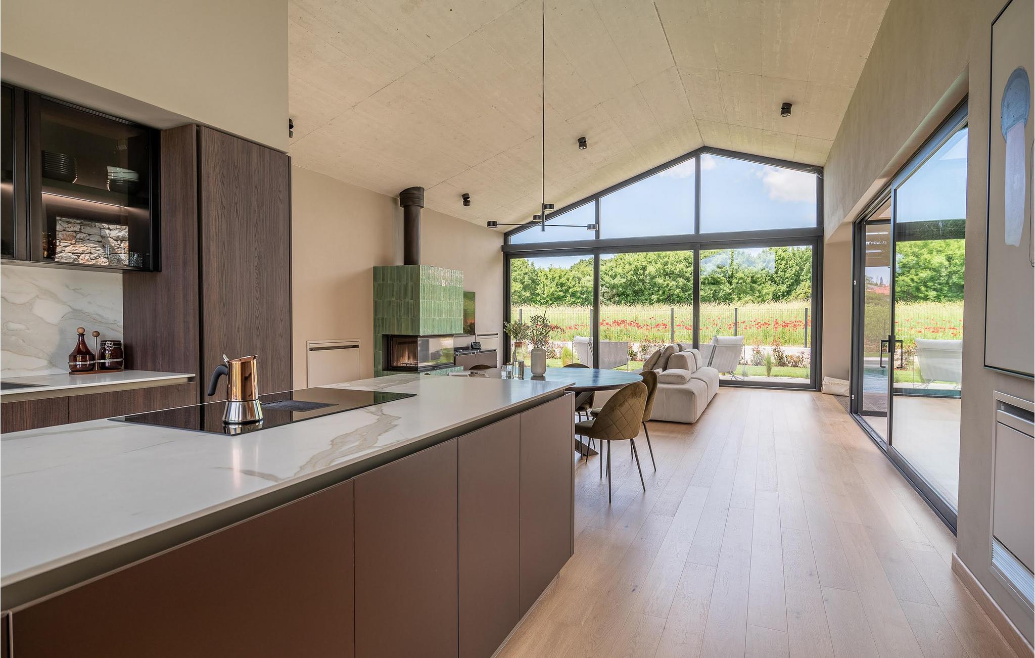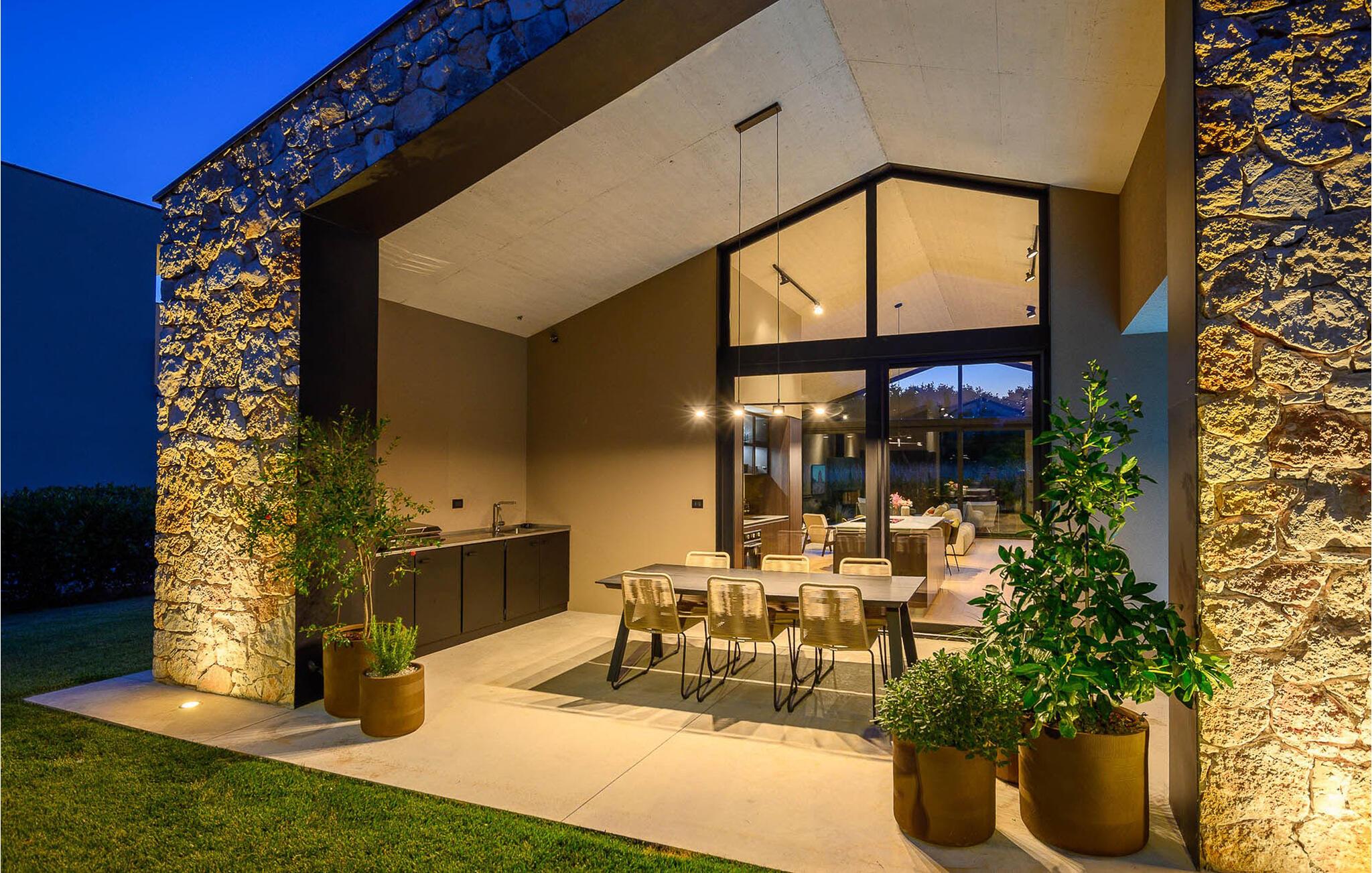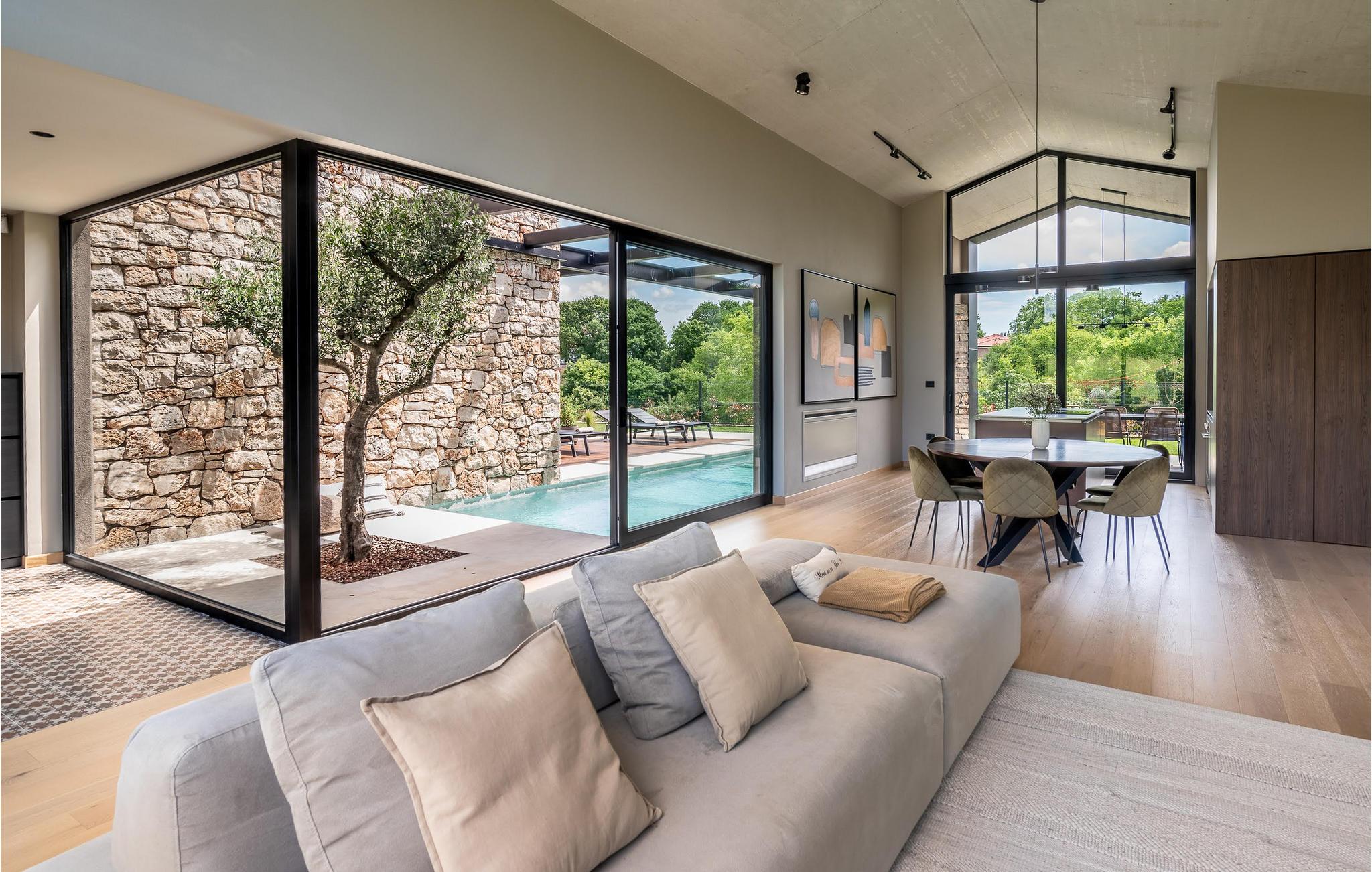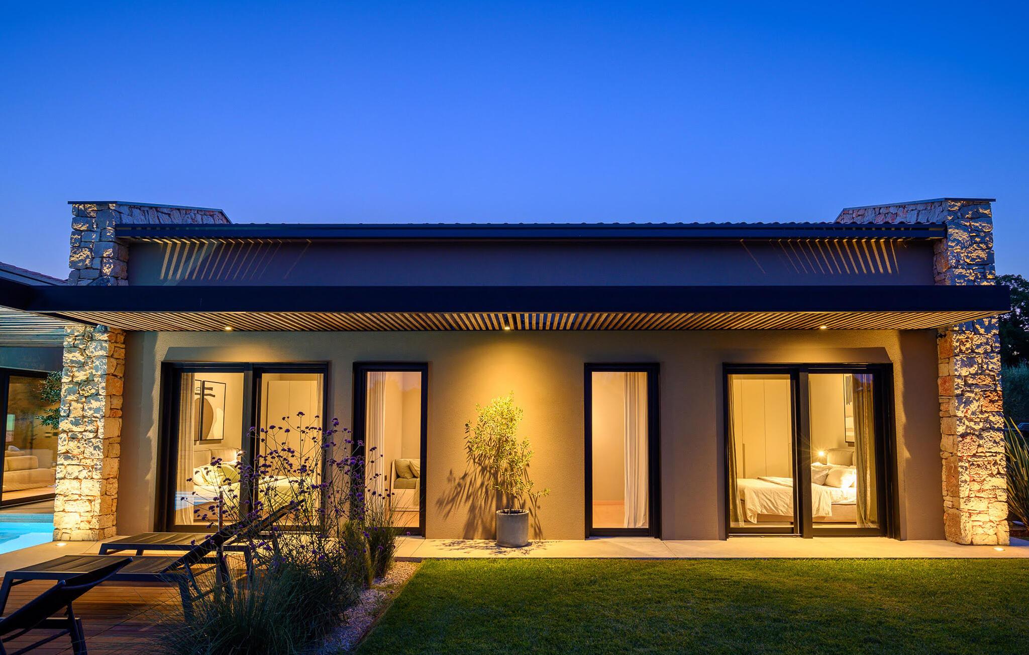 Luksusvillaen Silente ligger i Istrien, i den lille stenby Bale. Dette sted har titlen som en af ??de smukkeste juveler i Istrien og ligger på Istriens vestkyst. Istrien er en velkendt turistdestination for indenlandske og udenlandske gæster, der har besluttet at tilbringe en vidunderlig ferie i fred og ro og udforske historiske seværdigheder og naturlige skønheder. Hvis du ønsker at forkæle dig selv og din familie med en uforglemmelig ferie, er det nu! Villa Silente vil glæde dig ved første øjekast takket være sin vidunderlige moderne arkitektoniske stil. Det er bygget i 2023 og byder på et boligareal på 200 m2. Ejendommens samlede areal er 874 m2. Der er 7,7 km til det rene Adriaterhav, hvilket ikke er langt siden, du helt sikkert skal rejse i bil. Du bør bestemt ikke gå glip af et besøg på stenstranden i Colone, hvor du vil have det så meget sjovt, som hjertet begærer med dit yndlingsselskab. Det har to pænt møblerede soveværelser med dobbeltsenge (160 x 200). Villaen har desuden to badeværelser med bruseniche. Stuen er virkelig speciel, den indeholder en sofa, et sofabord og et fjernsyn. Der er også en romantisk pejs og lige ved siden af ??stuen er der direkte udgang til den udendørs terrasse med siddepladser. Du vil helt sikkert bruge morgentimerne der på at drikke kaffe og læse din yndlingsbog. En spisestue med spisebord og et moderne og fuldt udstyret køkken er blot en del af den luksus, der venter dig! Den udendørs terrasse byder på det bedste: forfriskning på varme sommerdage i en opvarmet pool på 27 m² og 1,4 meter dyb. Der er 4 liggestole på græsplænen, så du kan hvile og slappe af. Du kan bruge en grill, vaskemaskine og strygejern. En høj stol og en babyseng er til rådighed for børn. Yderligere tjenester, der tilbydes efter forudgående aftale og mod et gebyr, omfatter: kok, babysitter, rengøringsassistent, gartner, lufthavnstransport og private udflugter. Denne historiske stenby ligger på en bakke og er omgivet af olivenlunde og vinmarker. Den maleriske middelalderby i Istrien ligger kun 13 kilometer fra Rovinj og 20 kilometer fra Pula. Disse byer er også værd at besøge og udforske. Prøv de lækre gastronomiske tilbud i restauranterne og nyd som en konge! Velkommen til den smukke Villa Silente!