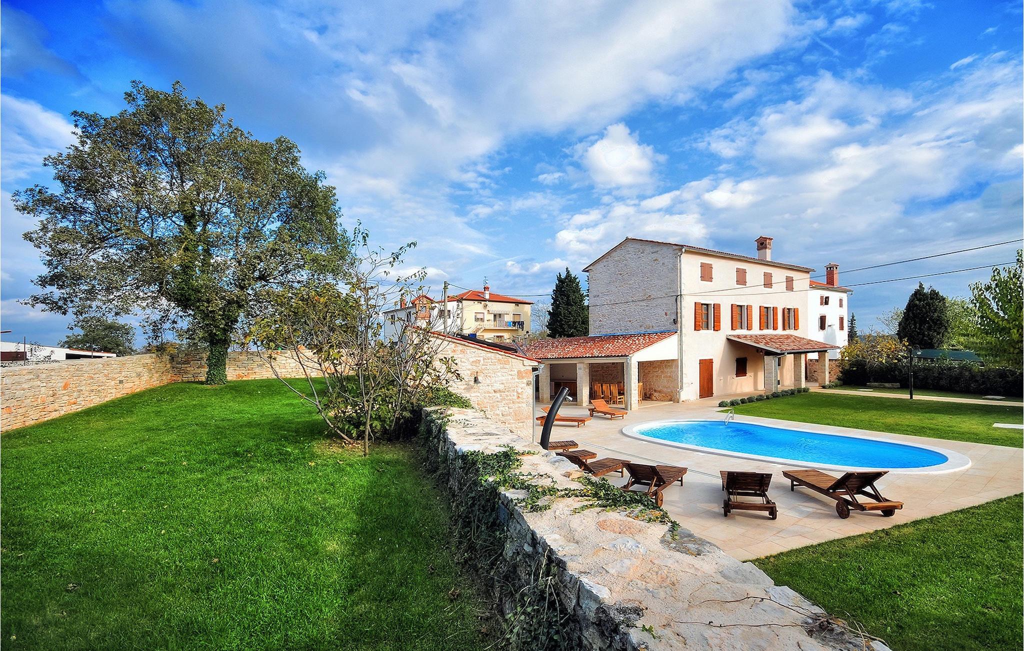 Denne smukke nyrestaurerede ejendom er beliggende i en rolig landsby i Istrien, kun en kort tur væk fra kystbyen Rovinj. Ejendommen er blevet restaureret med omhu, men også opdateret, så den giver alle fordelene ved en moderne livsstil som alle ensuite badeværelser, aircondition og Wi-Fi. Haven er helt lukket og giver privatlivets fred omkring den stenbeklædte pool. Udenfor er der også en stor overdækket spise- og opholdsstue med udendørs køkken. Den stenbyggede grill har en ekstra brød-/pizzaovn. Ejendommen består af to bygninger i samme have. En med soveværelse med dobbeltseng, badeværelse, køkken og opholdsstue, ideel, hvis et par i din gruppe kræver ekstra privatliv. Den store bygning har 4 soveværelser, et køkken og en stor stue med pejs. Alle soveværelser har separate ensuite badeværelser og klimaanlæg. Haven har et vandingssystem, så græsset altid vil være flot og grønt. Stranden i Limfjorden ligger kun en kort køretur væk (5 km), og der er en god restaurant i gåafstand. I 2019 blev Villa Moncalvo tildelt EcoDomus-certifikatet, som garanterer, at gæsterne bor i en miljøvenlig villa. EcoDomus er et mærkningsprogram udført af Istriens regions administrative afdeling for turisme med det formål at øge både den sociale og miljømæssige bevidsthed i turismen. Villaen er beliggende i den gamle landsby Golaš lige uden for den maleriske by Bale. Byen Bale, der udelukkende er lavet af sten, legemliggør Istriens tradition og har ifølge arkæologisk forskning eksisteret siden den romerske periode. Den 45. breddegrad går lige gennem den smalleste del af distriktet Bale, hvilket betyder, at distriktet er ideelt placeret i forhold til planeten – halvvejs mellem Ækvator og Nordpolen. Byen har i gennemsnit 2400 solskinstimer om året, hvilket har tiltrukket et stort antal turister til stedet. Der er et par meget gode restauranter der også. Byen Rovinj ligger kun en kort køretur væk (15 km). Det er det mest romantiske sted i Middelhavet! Byen Rovinj er den rigtige destination for alle jer, der søger en nostalgisk atmosfære fra tidligere tider. I Middelhavet kan du finde det her, i byen, der begyndte sit romantiske liv på en ø, og dets begrænsede område resulterede i overfyldte huse, smalle gader og små pladser, stadig uberørt af moderne urbanisme. Limfjorden, en af de smukkeste naturressourcer på halvøen Istrien, med rigtig gode fiskerestauranter og en dejlig strand ligger 10 km fra villaen.