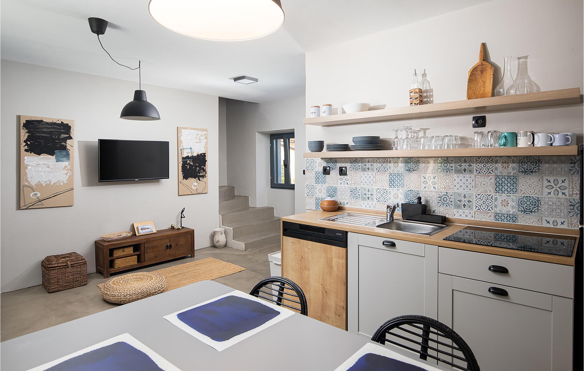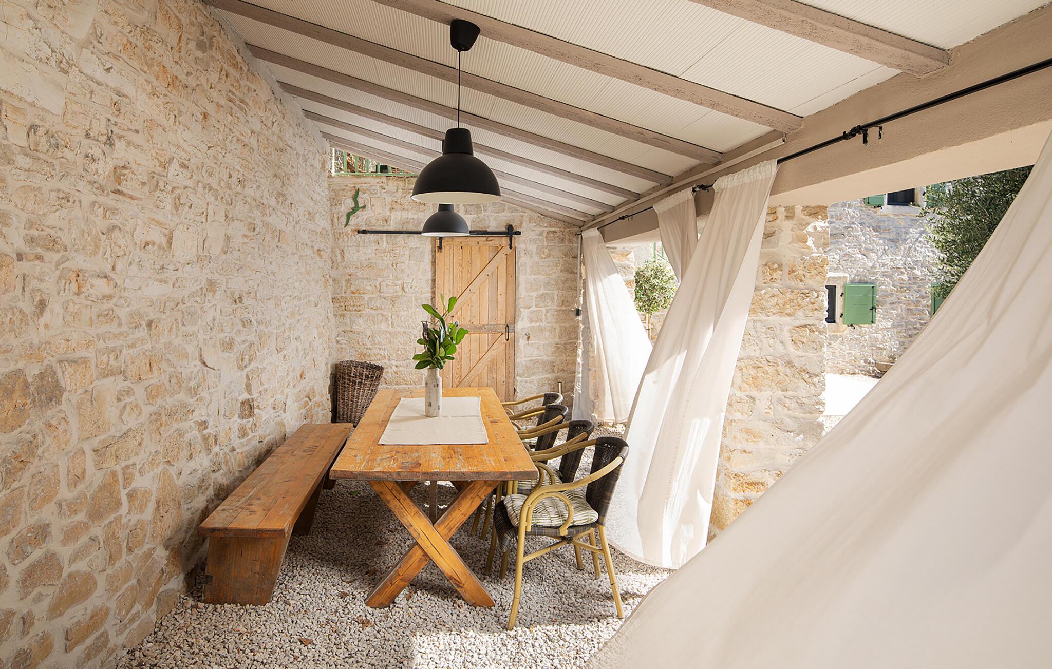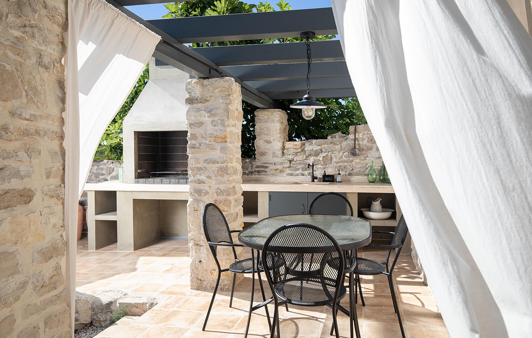 Alle fire huse har en lille spiseplads i hver af dem til fire gæster. I husets baghave er der en swimmingpool med liggestole ved siden af. Poolen vil tilbyde dig den forfriskning, du har brug for i sommerdagene, og du kan nyde solen på liggestolene, mens du læser din yndlingsbog og nipper til en kold drink. Der er en stor spiseplads i baghaven, der kan rumme 18 gæster, perfekt til de store familie- og venners måltider, og du har en grill til din rådighed for at vise de grillfærdigheder, du har arbejdet på. Der er et par loungeområder spredt rundt i haven, hvor du kan slappe af og nyde dine feriedage i fred og ro.