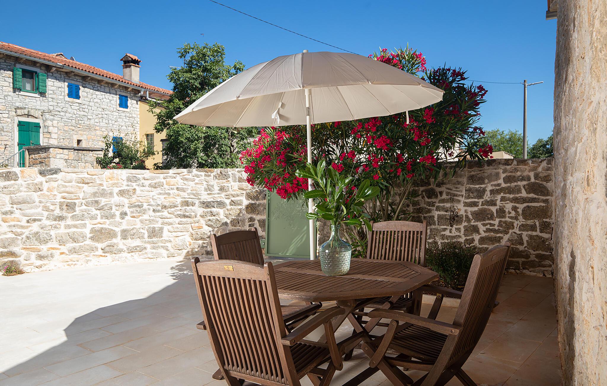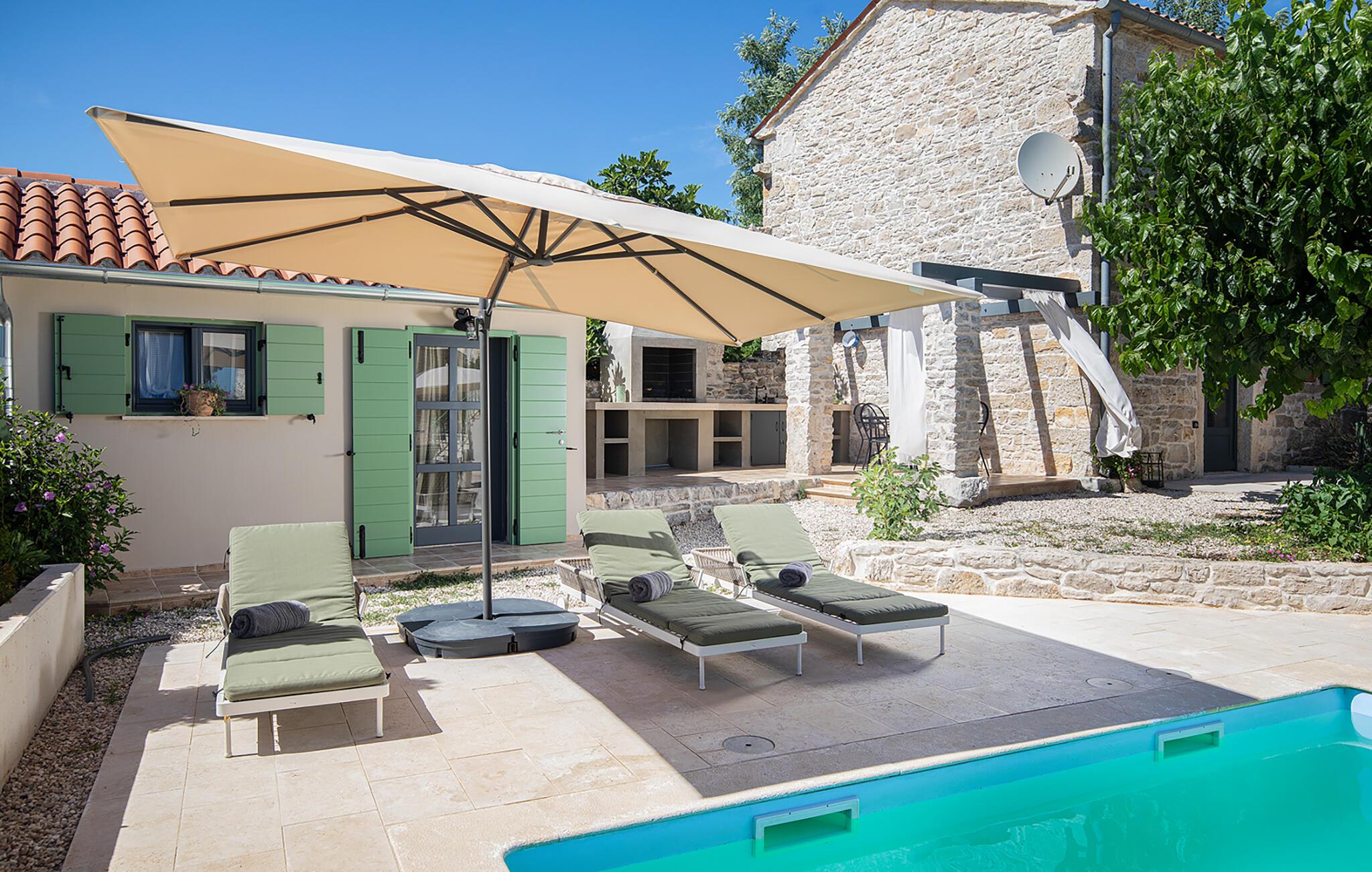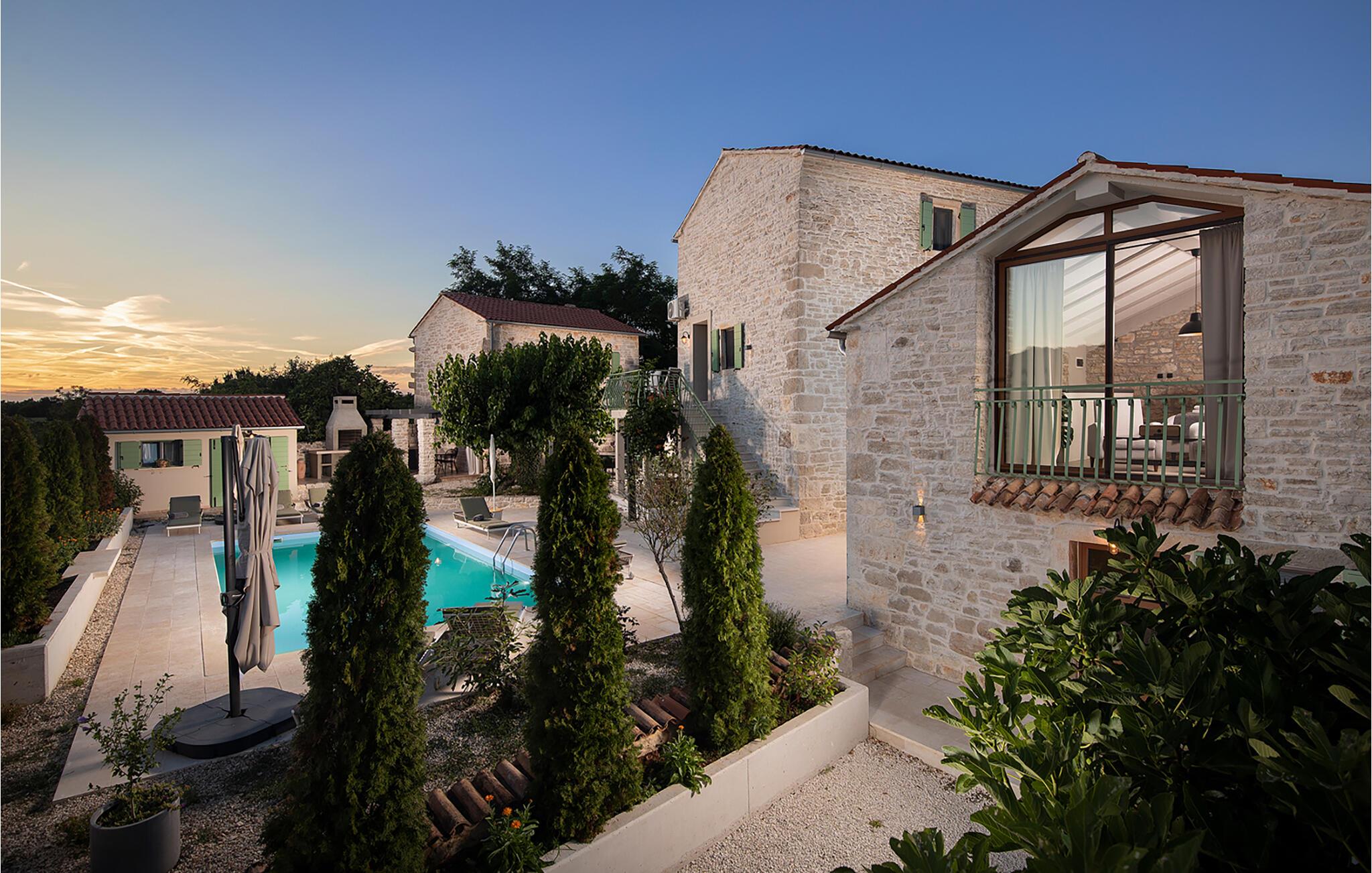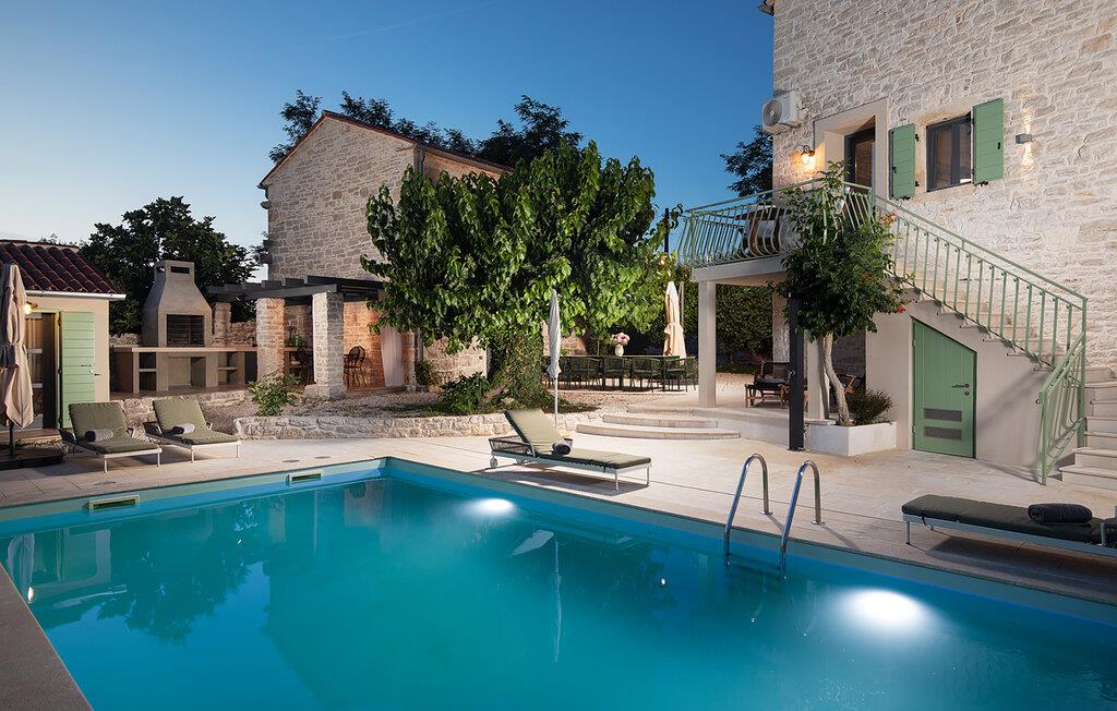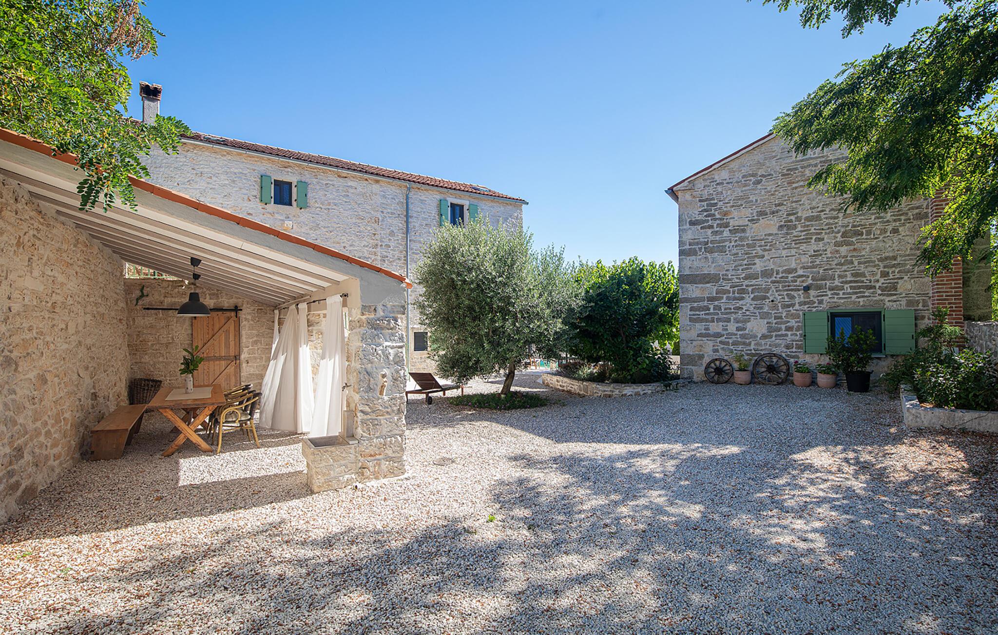 Villa Stanza Campitelli er en stor stenvilla nær Rovinj, der har en privat swimmingpool og består af fire separate huse lejet som en enkelt enhed. Huset er lyst og luftigt, en gammel restaureret ejendom indrettet med moderne møbler på en måde, der ikke strider mod dens oprindelse. Der er en masse synlige mursten og sten og gamle bjælker bevidst udeladt under ombygningen, og farvesammensætningen i interiøret er naturlig og afslappende. Et badeværelse og et soveværelse er placeret i stueetagen af det første hus, og et andet soveværelse og et lille tekøkken er på første sal. Stueetagen i det andet hus består af et soveværelse og et badeværelse, første sal i et køkken, stue og badeværelse og anden sal af to soveværelser. Det tredje hus har en stor stue i stueetagen, et køkken og badeværelse på første sal og to soveværelser på anden sal. Stueetagen i det fjerde hus består af køkken, opholdsstue og badeværelse og to soveværelser på første sal.
