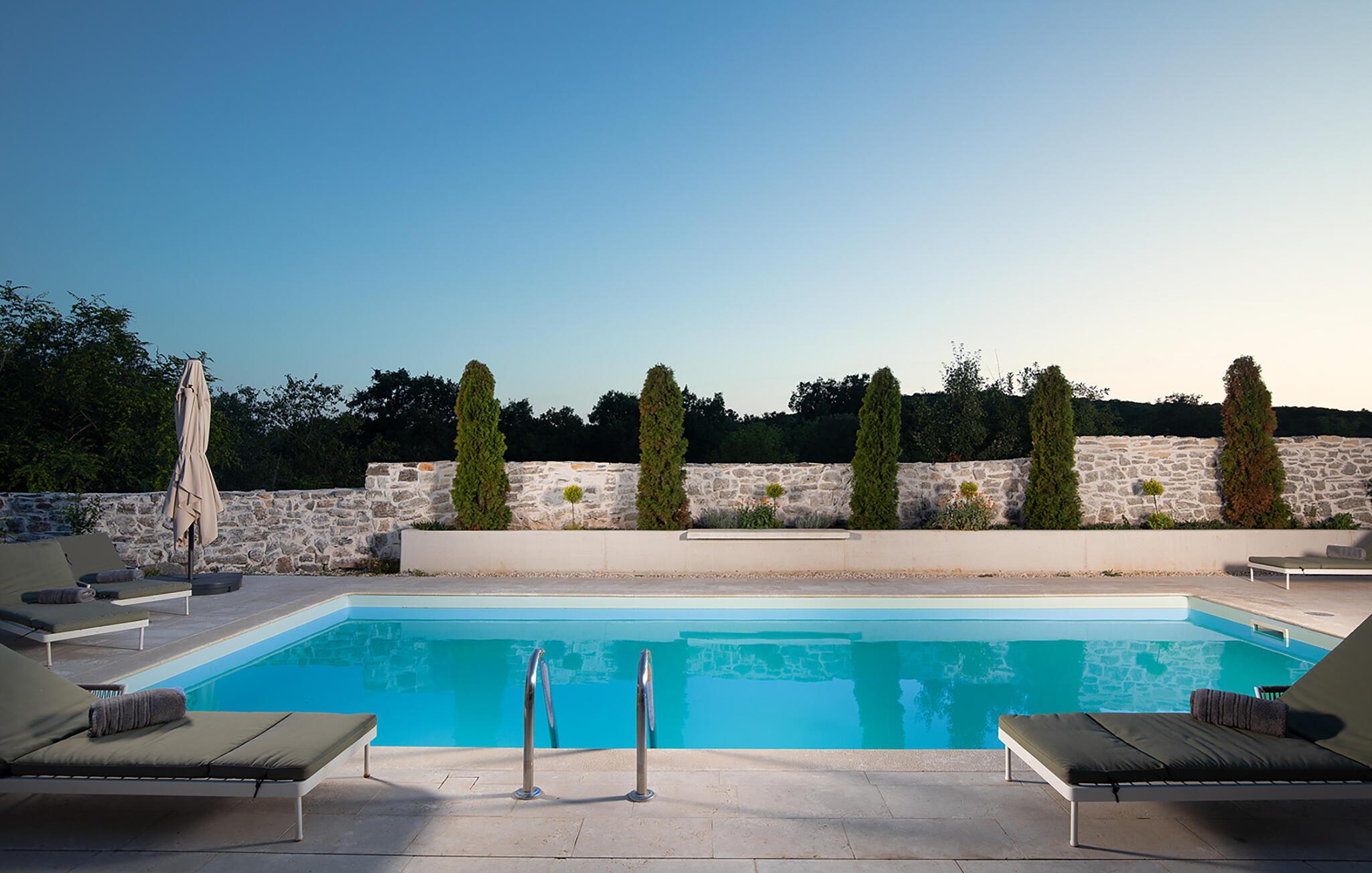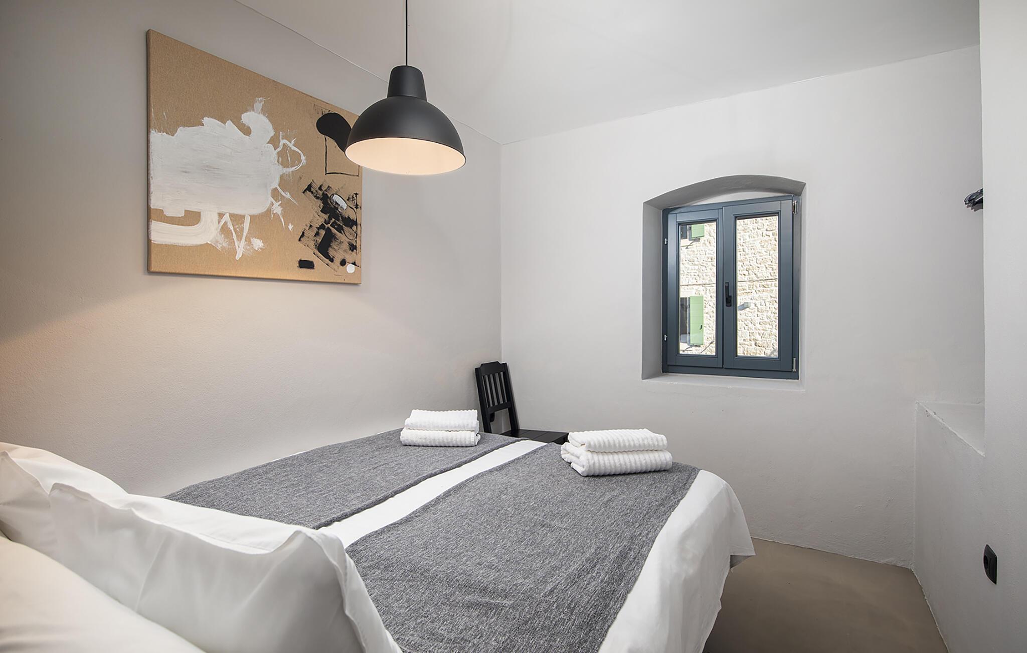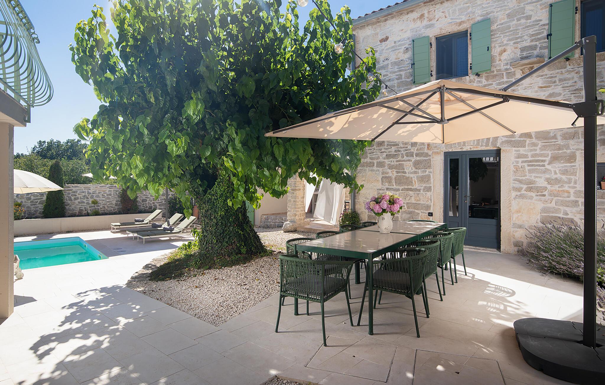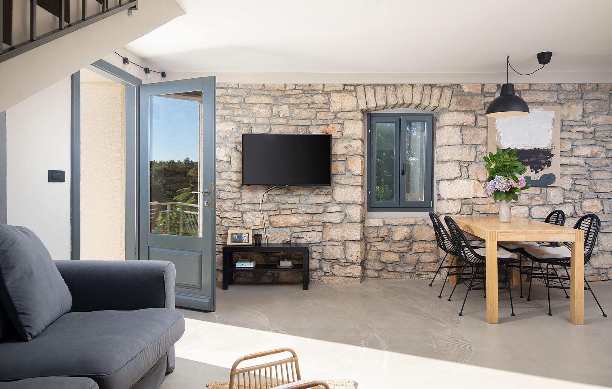 Villa Stanza Campitelli er en stor stenvilla nær Rovinj, der har en privat swimmingpool og består af fire separate huse lejet som en enkelt enhed. Huset er lyst og luftigt, en gammel restaureret ejendom indrettet med moderne møbler på en måde, der ikke strider mod dens oprindelse. Der er en masse synlige mursten og sten og gamle bjælker bevidst udeladt under ombygningen, og farvesammensætningen i interiøret er naturlig og afslappende. Et badeværelse og et soveværelse er placeret i stueetagen af det første hus, og et andet soveværelse og et lille tekøkken er på første sal. Stueetagen i det andet hus består af et soveværelse og et badeværelse, første sal i et køkken, stue og badeværelse og anden sal af to soveværelser. Det tredje hus har en stor stue i stueetagen, et køkken og badeværelse på første sal og to soveværelser på anden sal. Stueetagen i det fjerde hus består af køkken, opholdsstue og badeværelse og to soveværelser på første sal.