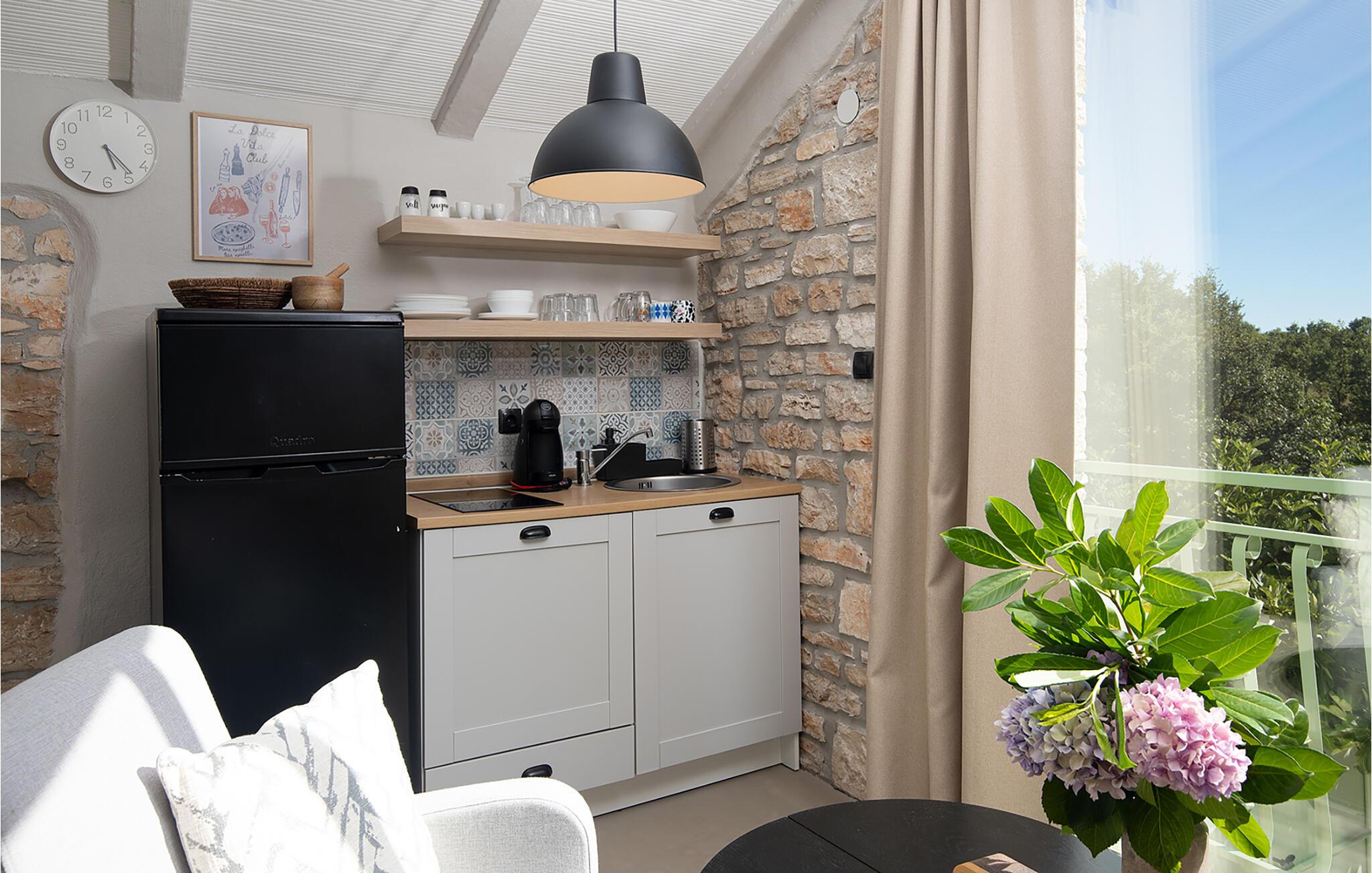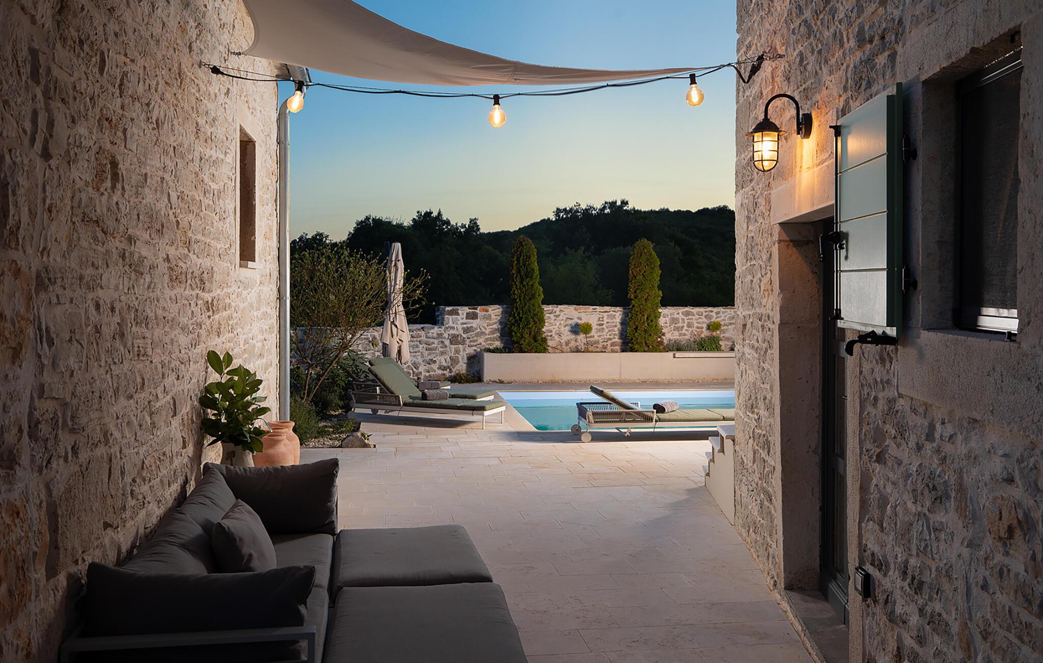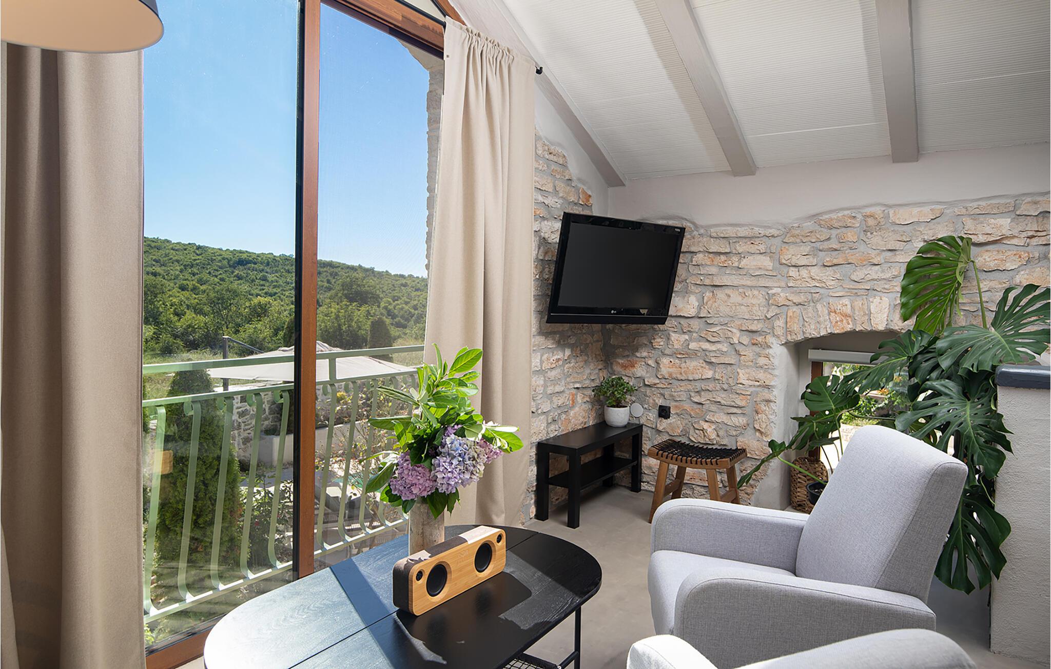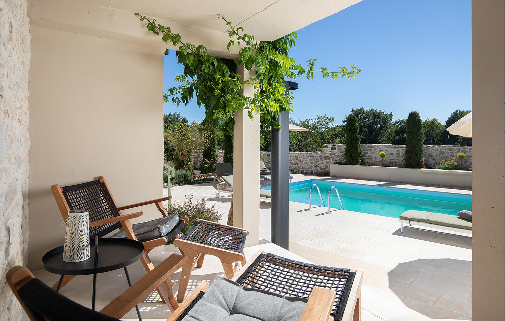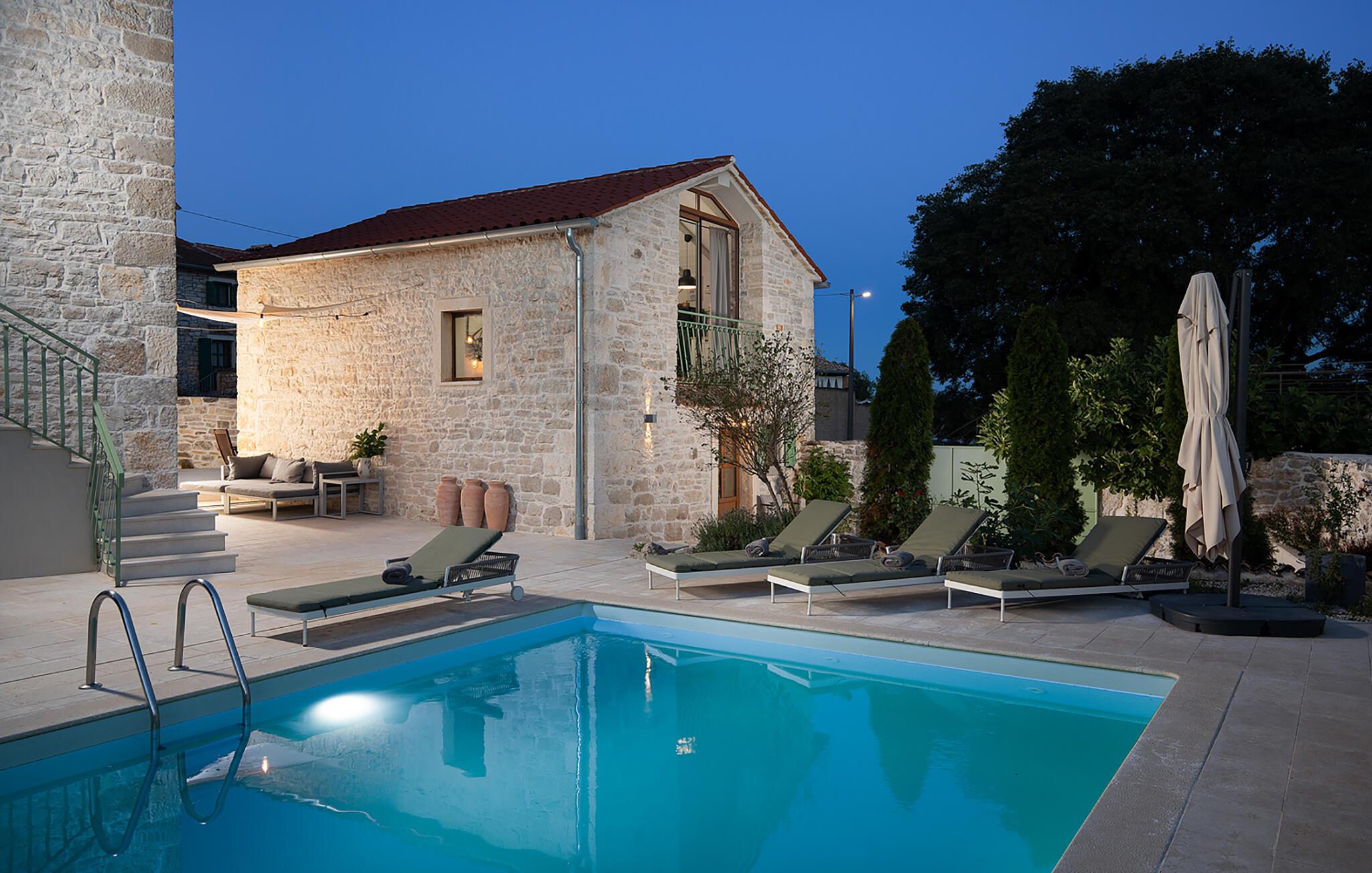 Villa Stanza Campitelli er en stor stenvilla nær Rovinj, der har en privat swimmingpool og består af fire separate huse lejet som en enkelt enhed. Huset er lyst og luftigt, en gammel restaureret ejendom indrettet med moderne møbler på en måde, der ikke strider mod dens oprindelse. Der er en masse synlige mursten og sten og gamle bjælker bevidst udeladt under ombygningen, og farvesammensætningen i interiøret er naturlig og afslappende. Et badeværelse og et soveværelse er placeret i stueetagen af det første hus, og et andet soveværelse og et lille tekøkken er på første sal. Stueetagen i det andet hus består af et soveværelse og et badeværelse, første sal i et køkken, stue og badeværelse og anden sal af to soveværelser. Det tredje hus har en stor stue i stueetagen, et køkken og badeværelse på første sal og to soveværelser på anden sal. Stueetagen i det fjerde hus består af køkken, opholdsstue og badeværelse og to soveværelser på første sal.