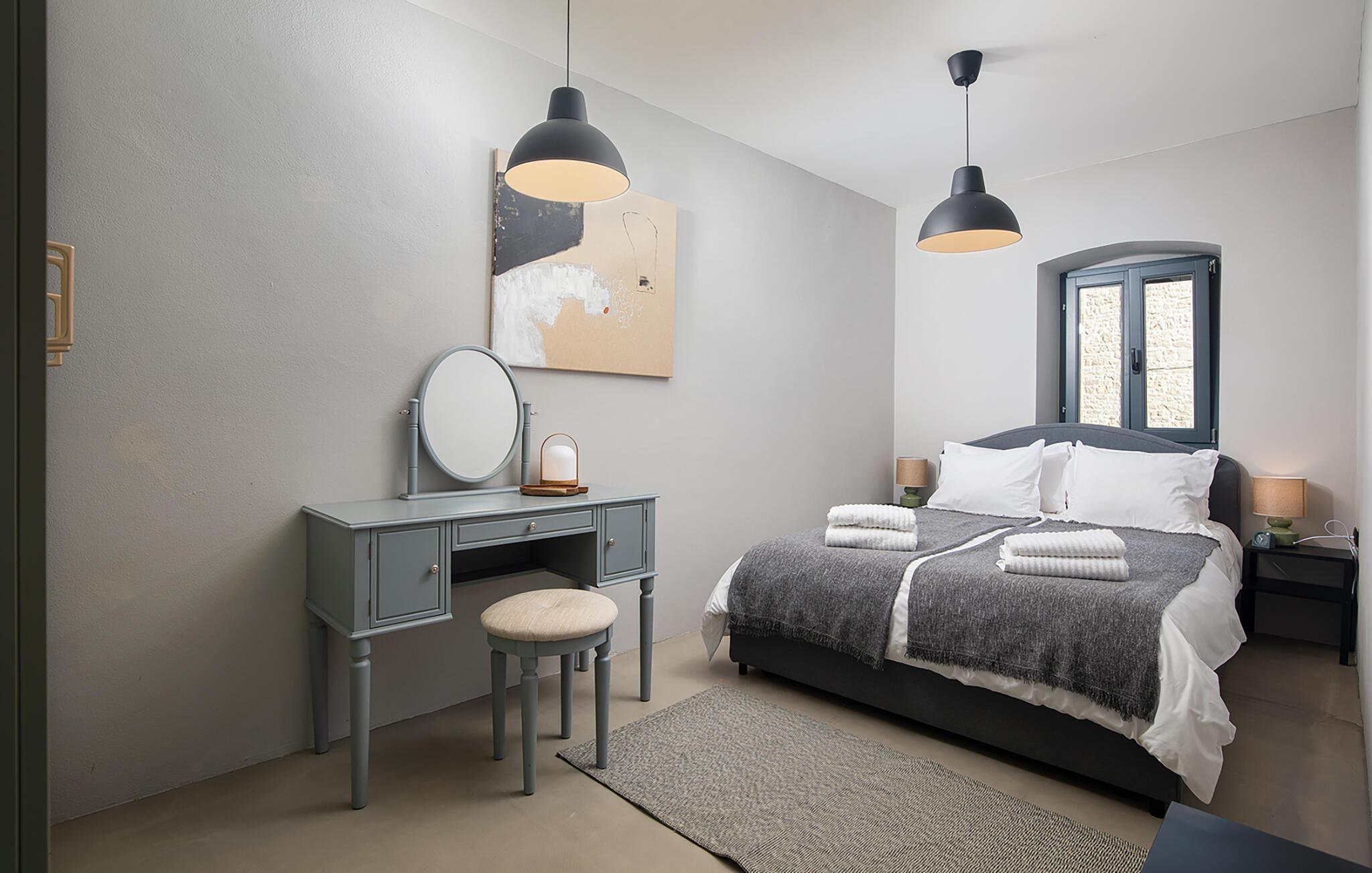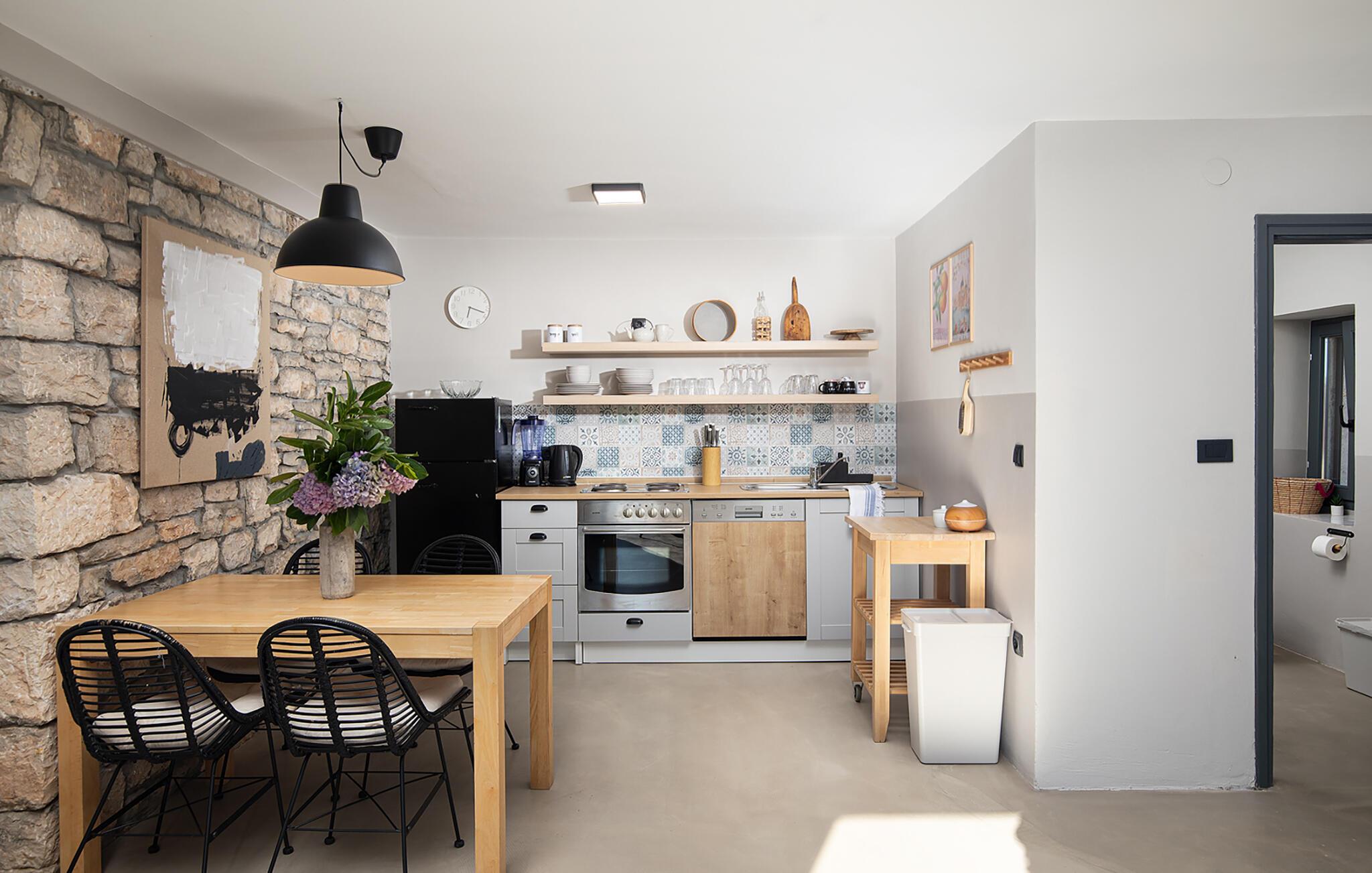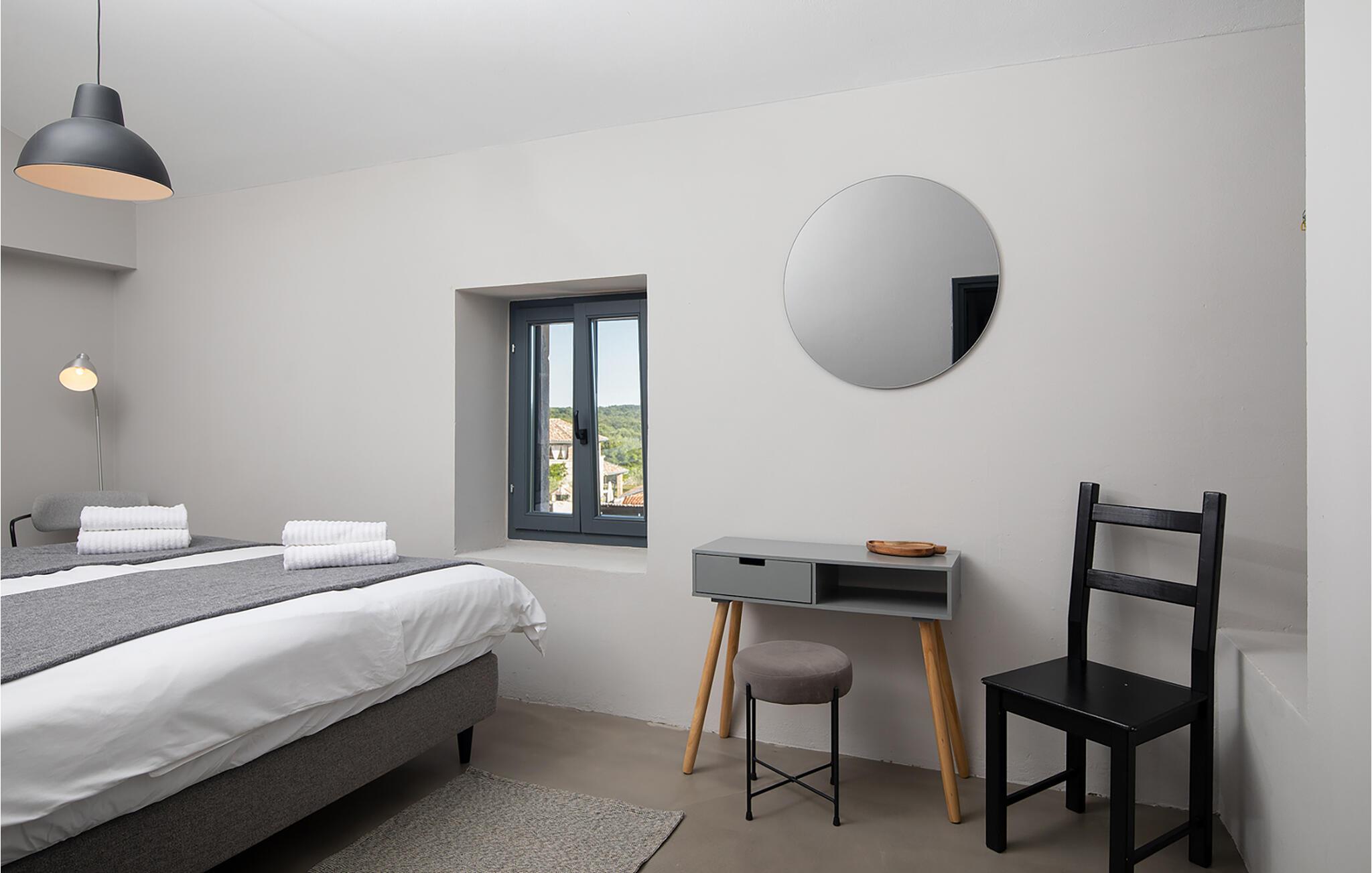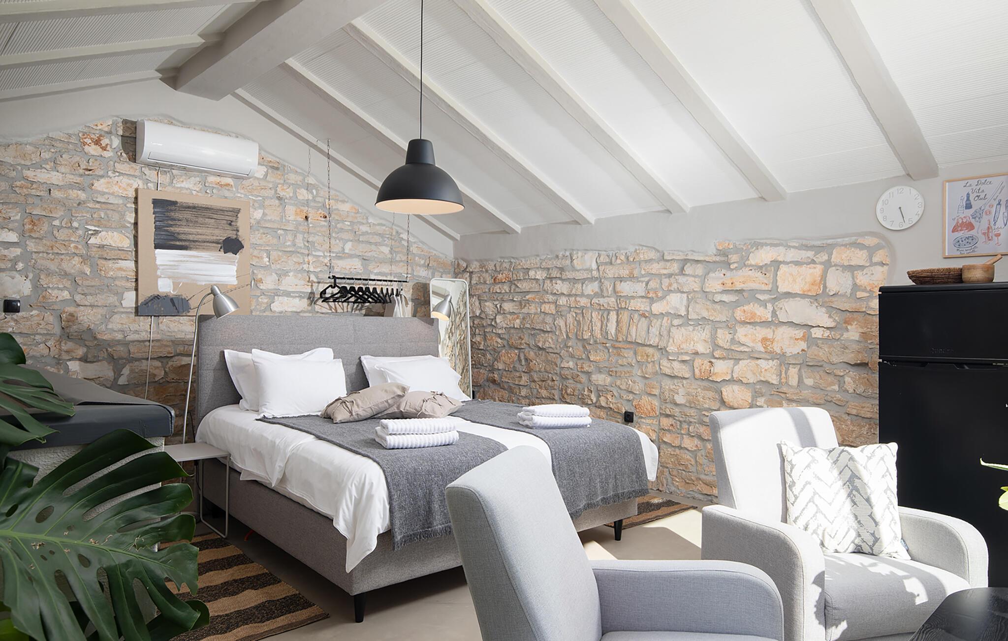 Villa Stanza Campitelli er en stor stenvilla nær Rovinj, der har en privat swimmingpool og består af fire separate huse lejet som en enkelt enhed. Huset er lyst og luftigt, en gammel restaureret ejendom indrettet med moderne møbler på en måde, der ikke strider mod dens oprindelse. Der er en masse synlige mursten og sten og gamle bjælker bevidst udeladt under ombygningen, og farvesammensætningen i interiøret er naturlig og afslappende. Et badeværelse og et soveværelse er placeret i stueetagen af det første hus, og et andet soveværelse og et lille tekøkken er på første sal. Stueetagen i det andet hus består af et soveværelse og et badeværelse, første sal i et køkken, stue og badeværelse og anden sal af to soveværelser. Det tredje hus har en stor stue i stueetagen, et køkken og badeværelse på første sal og to soveværelser på anden sal. Stueetagen i det fjerde hus består af køkken, opholdsstue og badeværelse og to soveværelser på første sal.