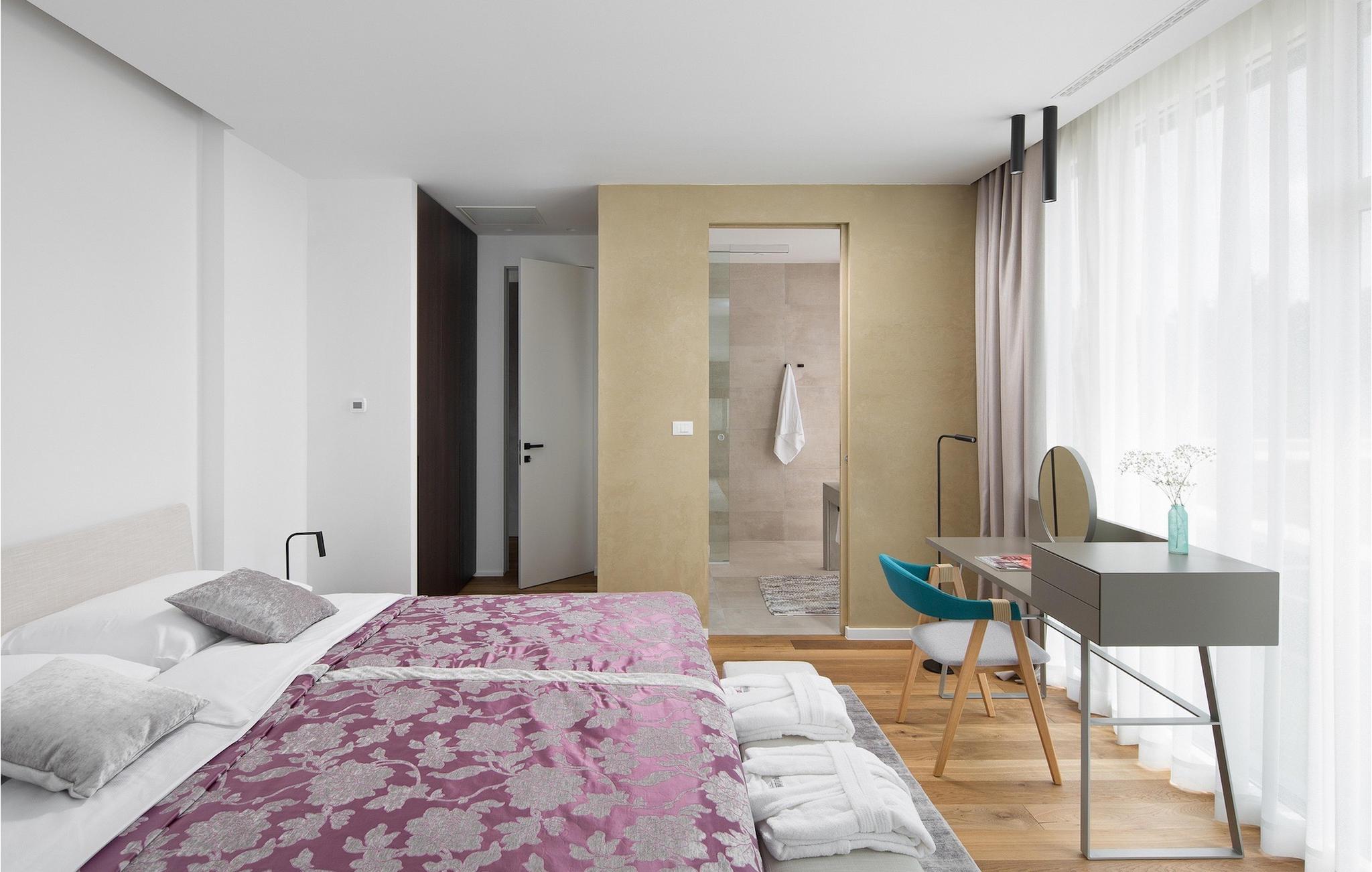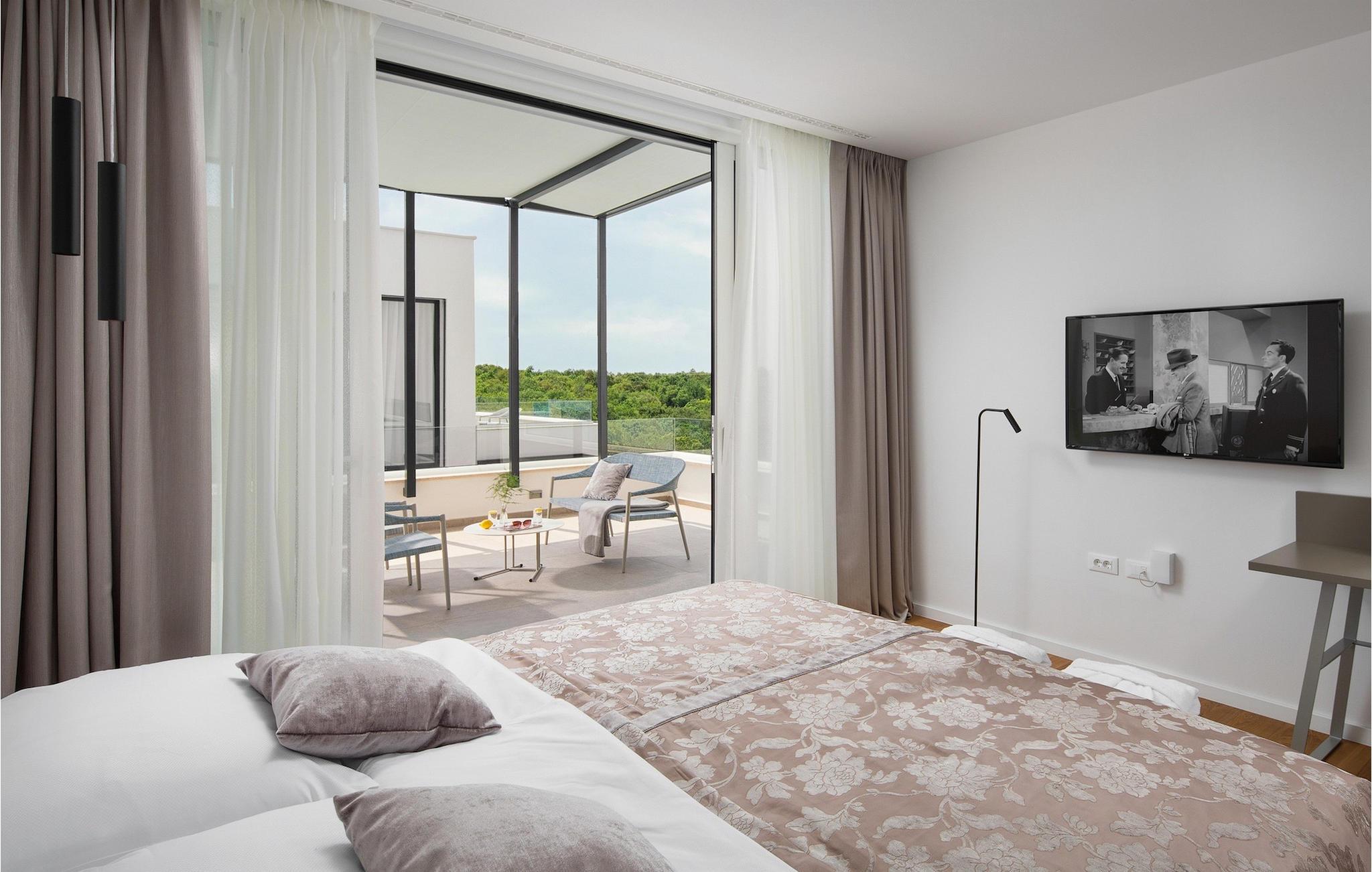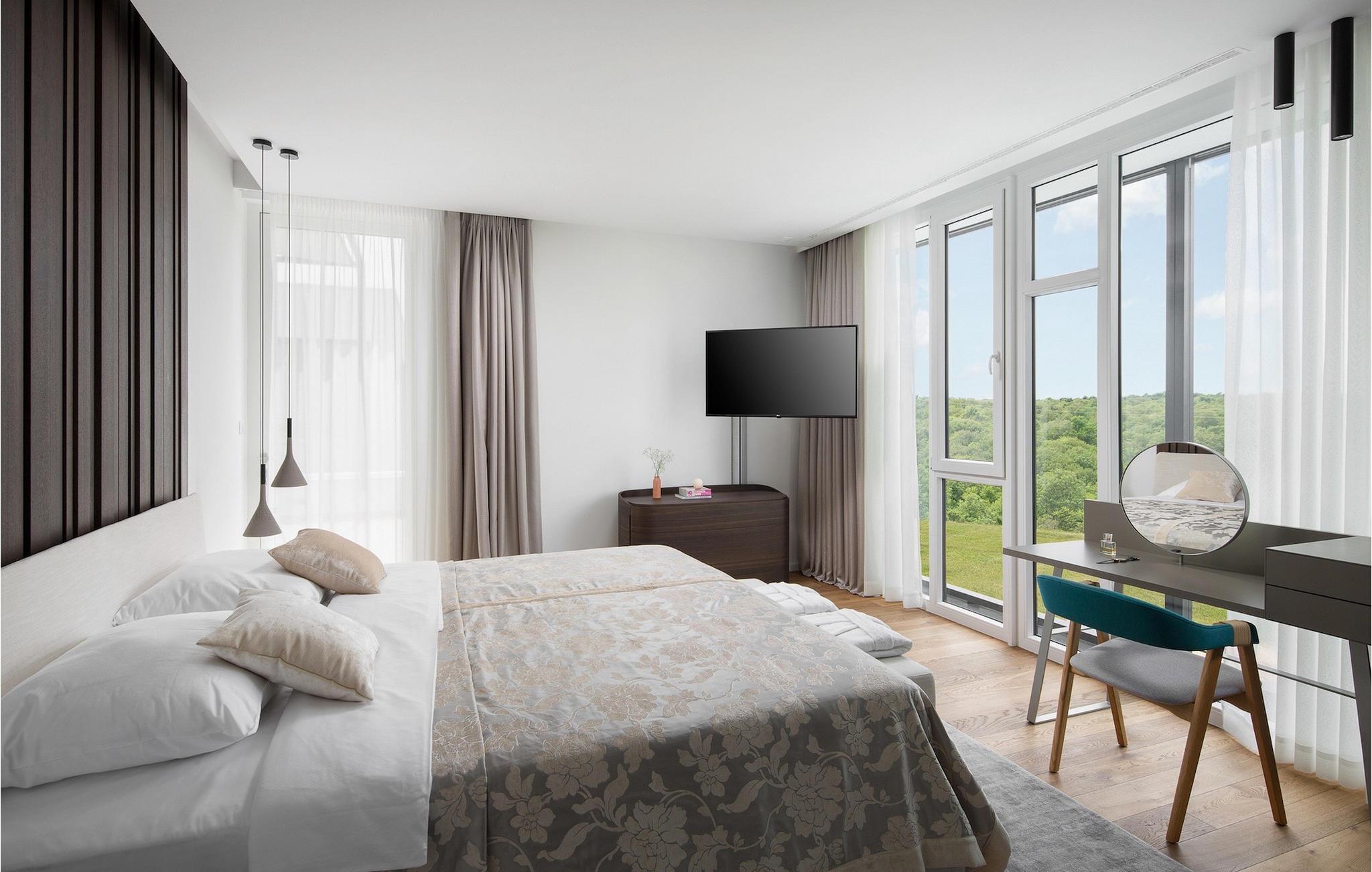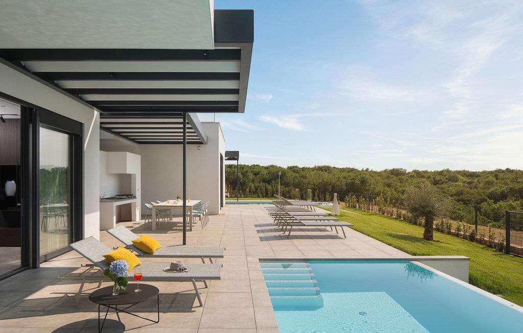 Der er indendørs pool med wellness spa-rum og sauna placeret i kælderen, samt udendørs pool. Hver morgen, når du vågner op og laver din første kop kaffe eller te med ønsket om at friske op og svømme i den udendørs pool, vil du blive mødt af en smuk udsigt over den omkringliggende natur og grønne områder. Stueetagen af villaen har en luksuriøs stue, spisestue og fuldt udstyret køkken med alt hvad du behøver for at lave fine måltider til din familie og venner. Førstesalen er indrettet som soveplads og består af 3 soveværelser med dobbeltsenge og private badeværelser. Grundet de store glasflader emmer villaen af friskhed og rummelighed. Udenfor har I en udendørs overdækket terrasse med grillplads til jeres rådighed, hvor I kan nyde middagen sammen. Der er også en ladestation til elbiler. Gæster i denne villa har gratis adgang til Paleo Water Park, samt Mon Perin Camping, dens strande og faciliteter. Der er også et panoramatog fra og til Mon Perin Camping. Book din luksus drømmevilla, hvor standarderne er høje, og kun himlen er grænsen. Lufthavnstransport fra Pula er inkluderet.