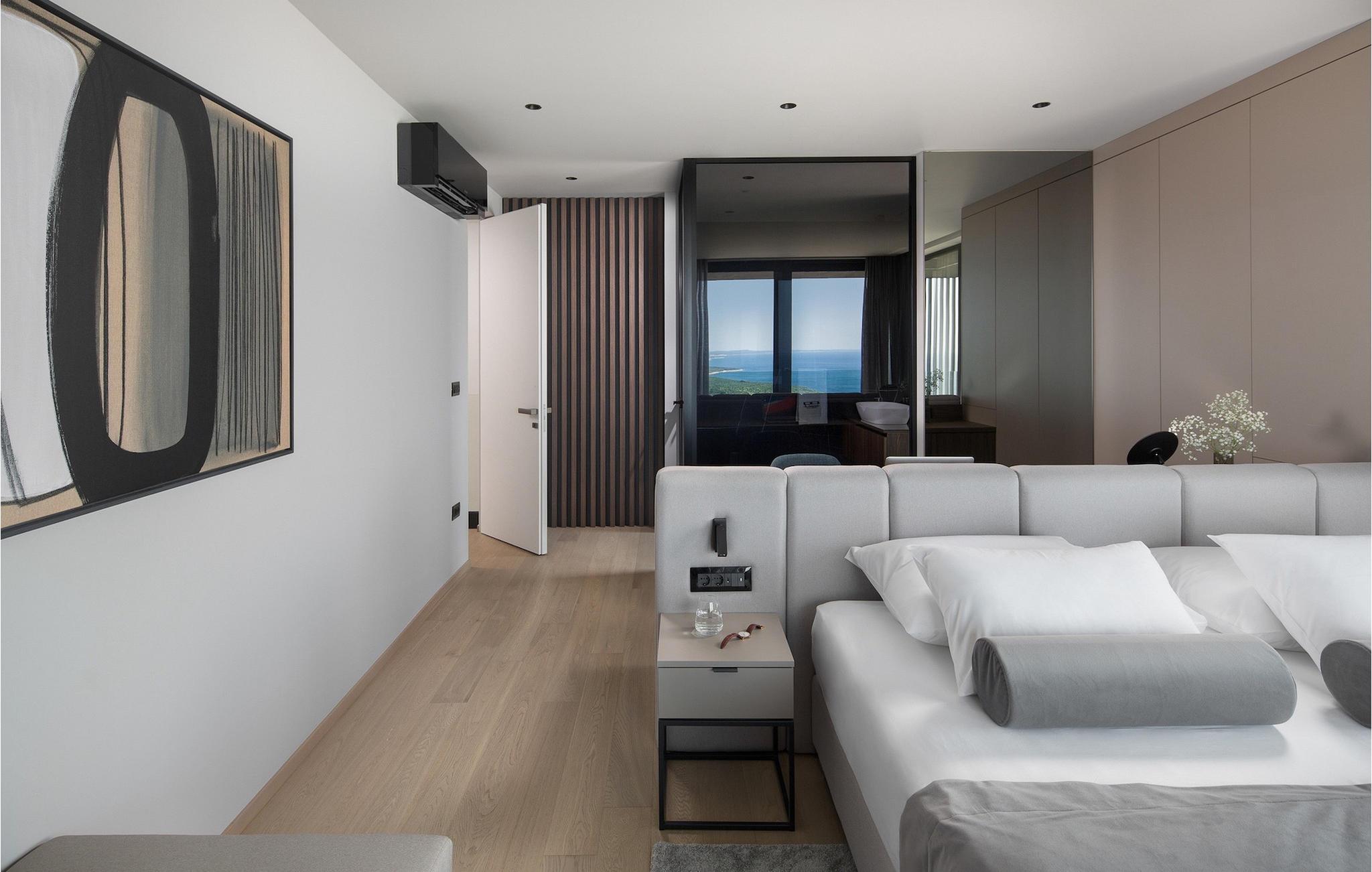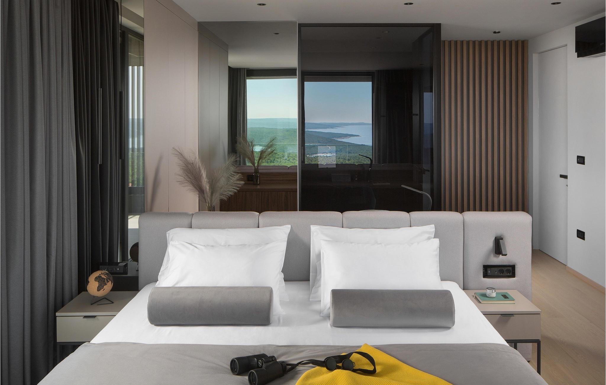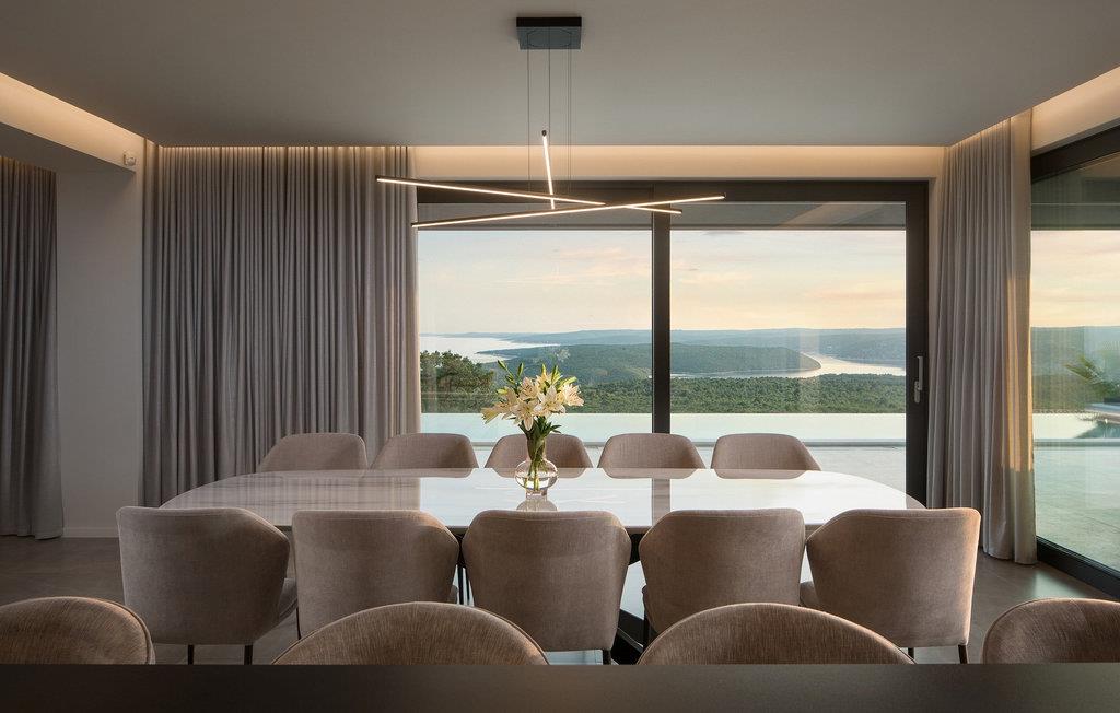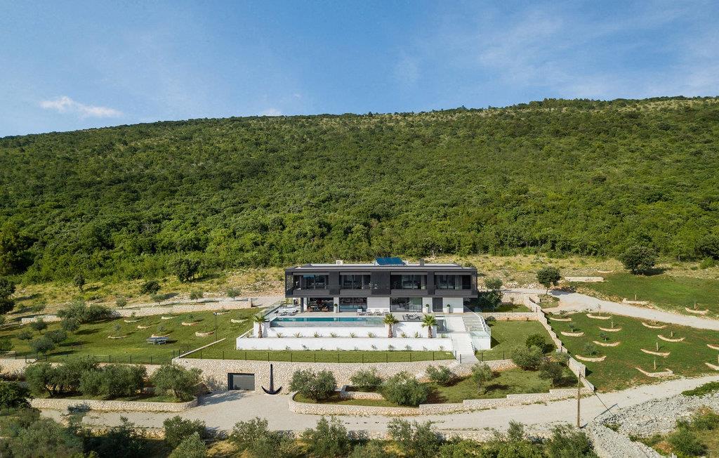 Den elegante Villa Panoramica ligger på en skråning mod sydvest, tæt på havet, med 4 etagers indendørs plads og to etagers udendørsareal, som er harmonisk forbundet med naturen af en have med århundreder gamle oliventræer. Dine dage på ejendommen begynder med naturens lugte og lyde, med den betagende panoramaudsigt lige fra sengen. På den rummelige ejendom finder du en 300 m2 stor terrasse med rummelig pool og jacuzzi, hvor du kan nyde en betagende panoramaudsigt over Kvarner og den sydlige del af Istrien.
