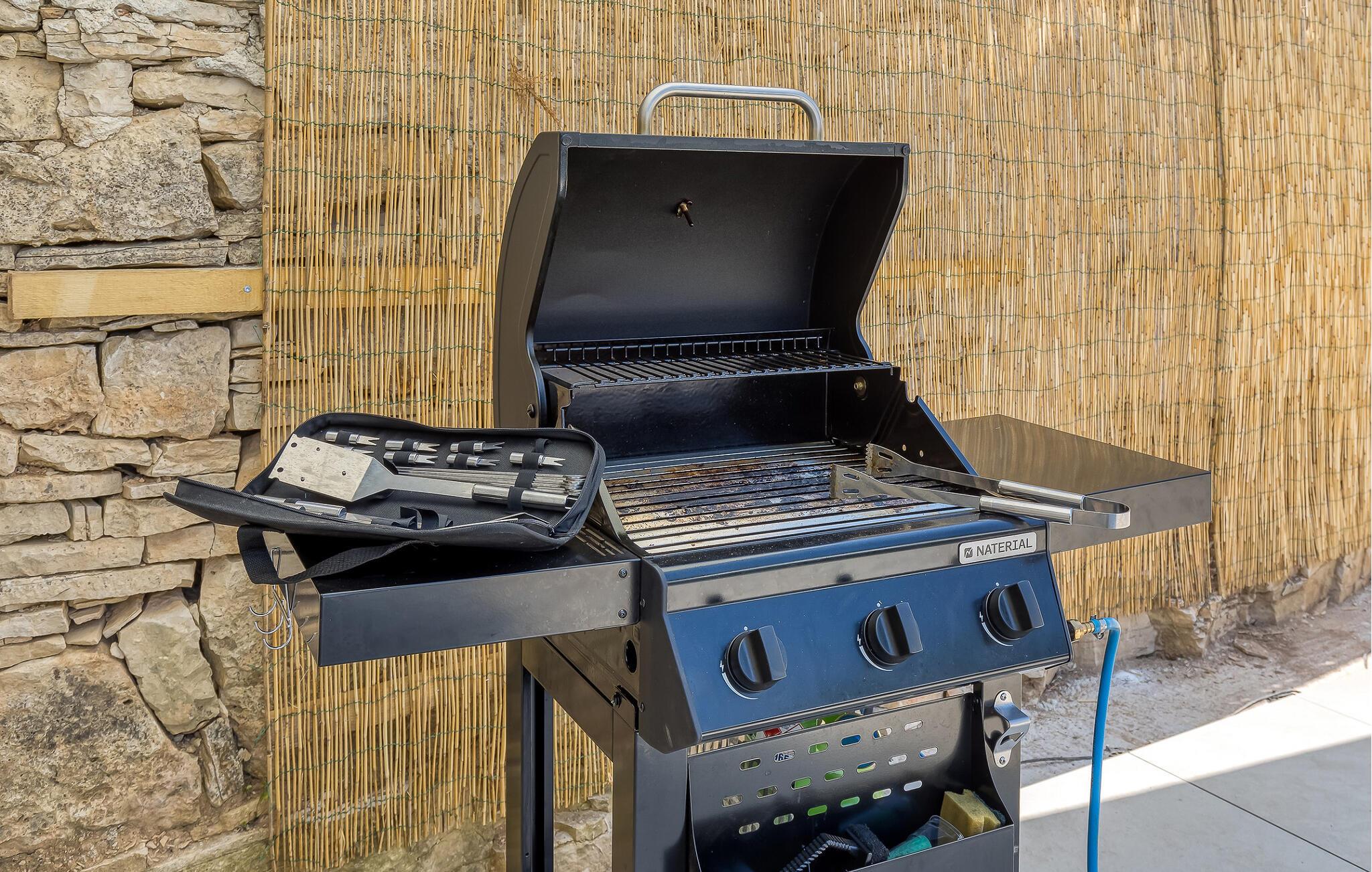 Det idylliske udendørsområde med rummelig terrasse, pool og grillplads lægger op til afslapning. Begynd dagene med en forfriskende svømmetur i poolen og nyd jeres morgenmad under de skyggefulde træer. Solbad på liggestolene, fordyb jer i en god bog eller afslut aftenen med en stemningsfuld grillmiddag.
