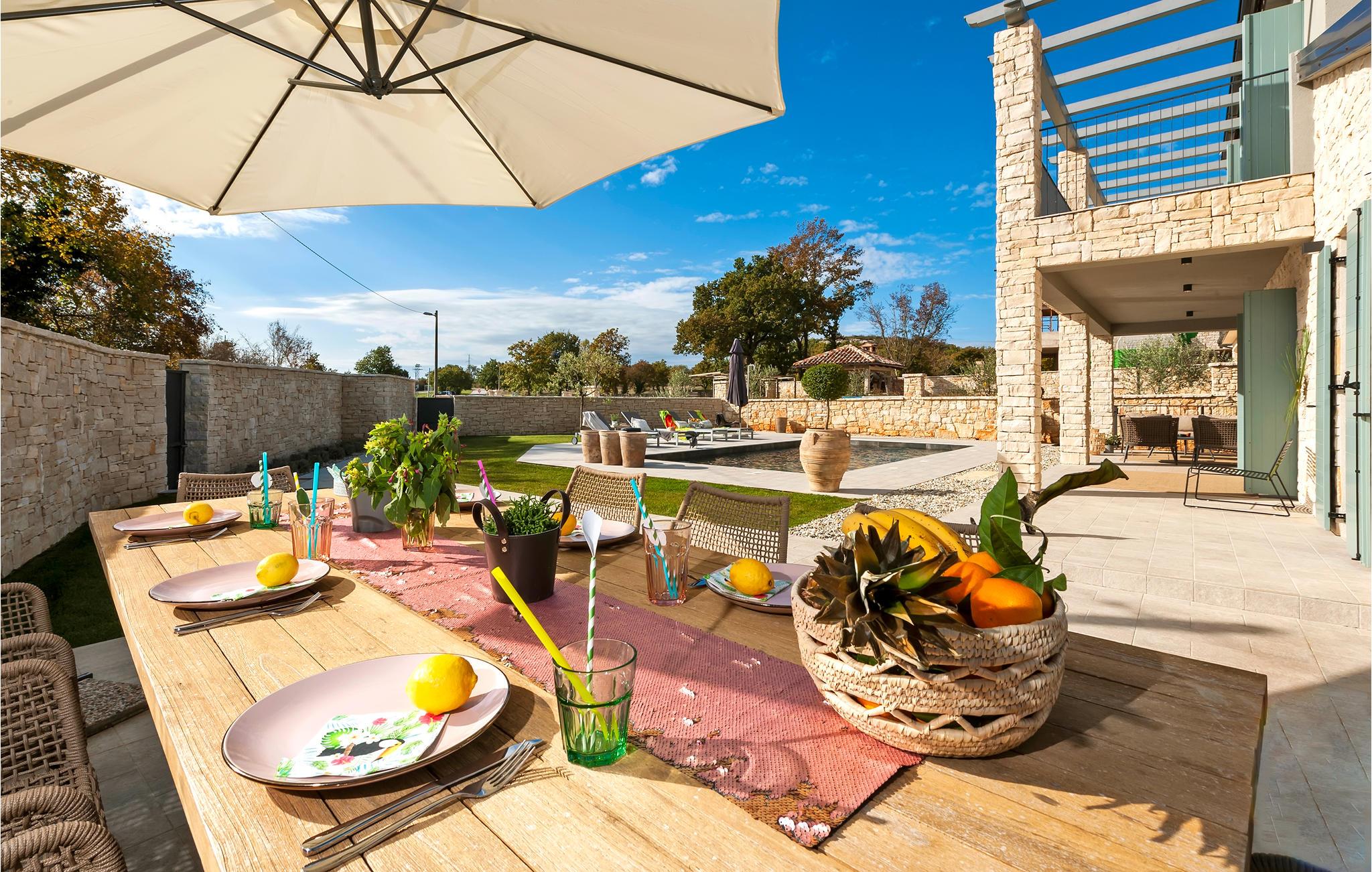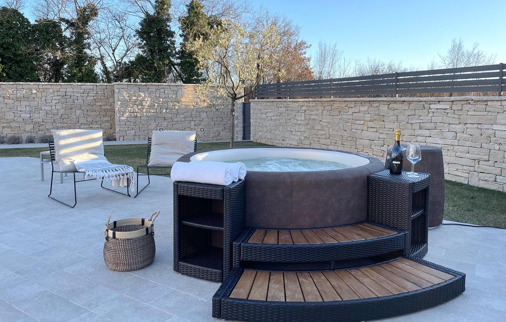 Luksuriøst og moderne stenhus med swimmingpool og spabad, nær Limski Fjord.