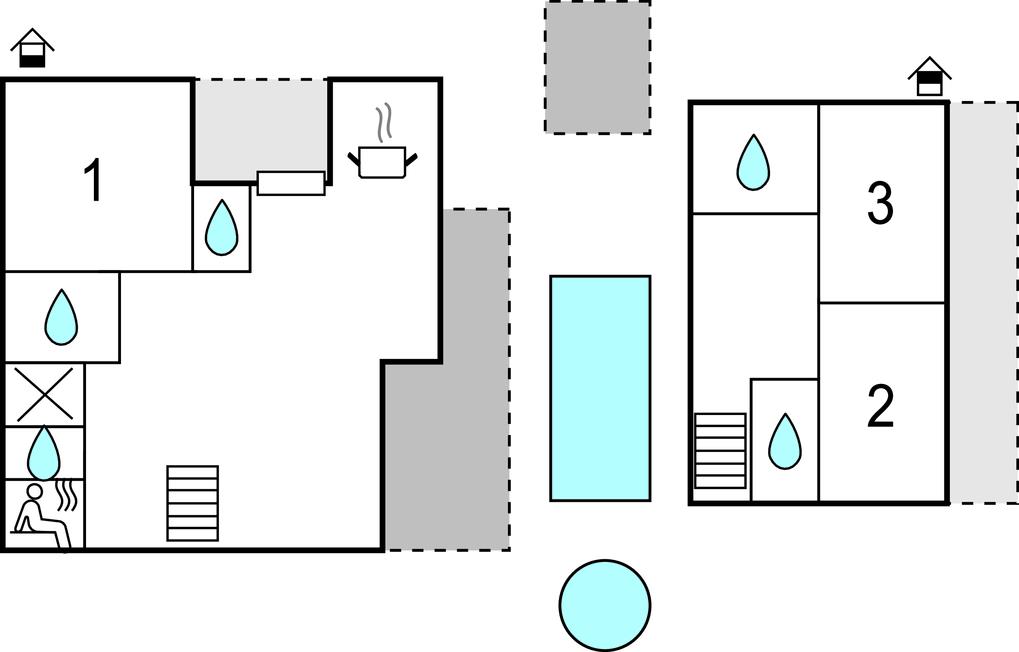 Badeværelse 4m2 (nr. 1) - WC. Varmt og koldt vand. Bruser