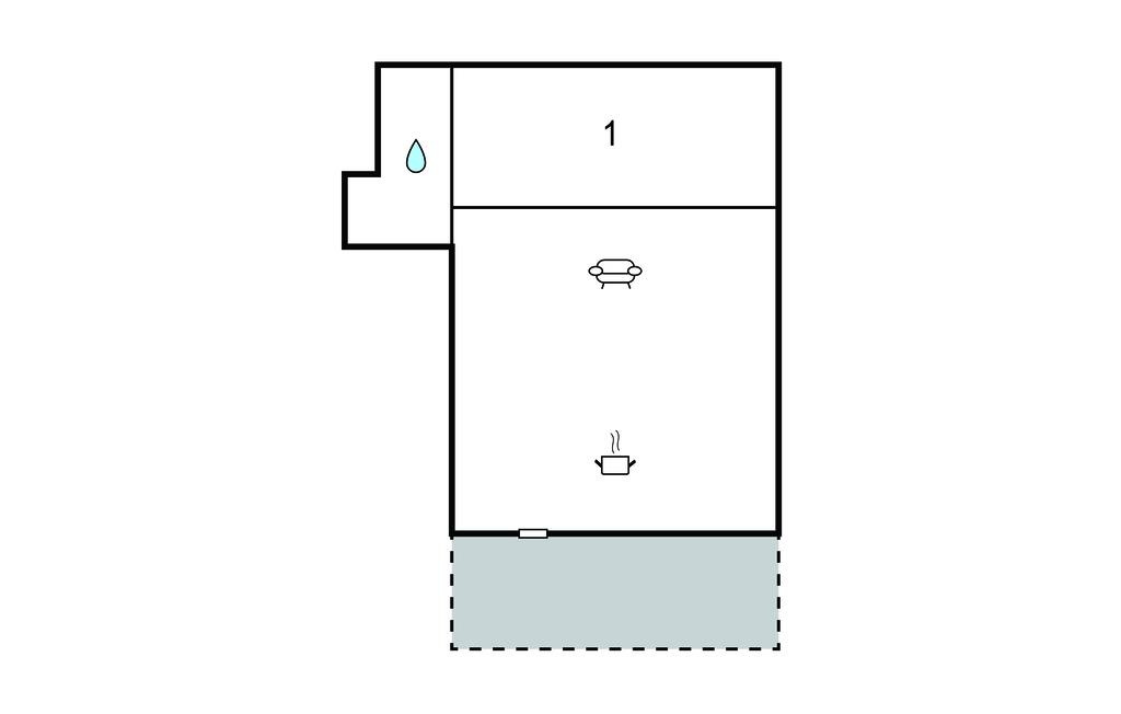 Opholdsstue/køkken 27m2 - 1 Soveplads. (Sofa, madras eller lignende).