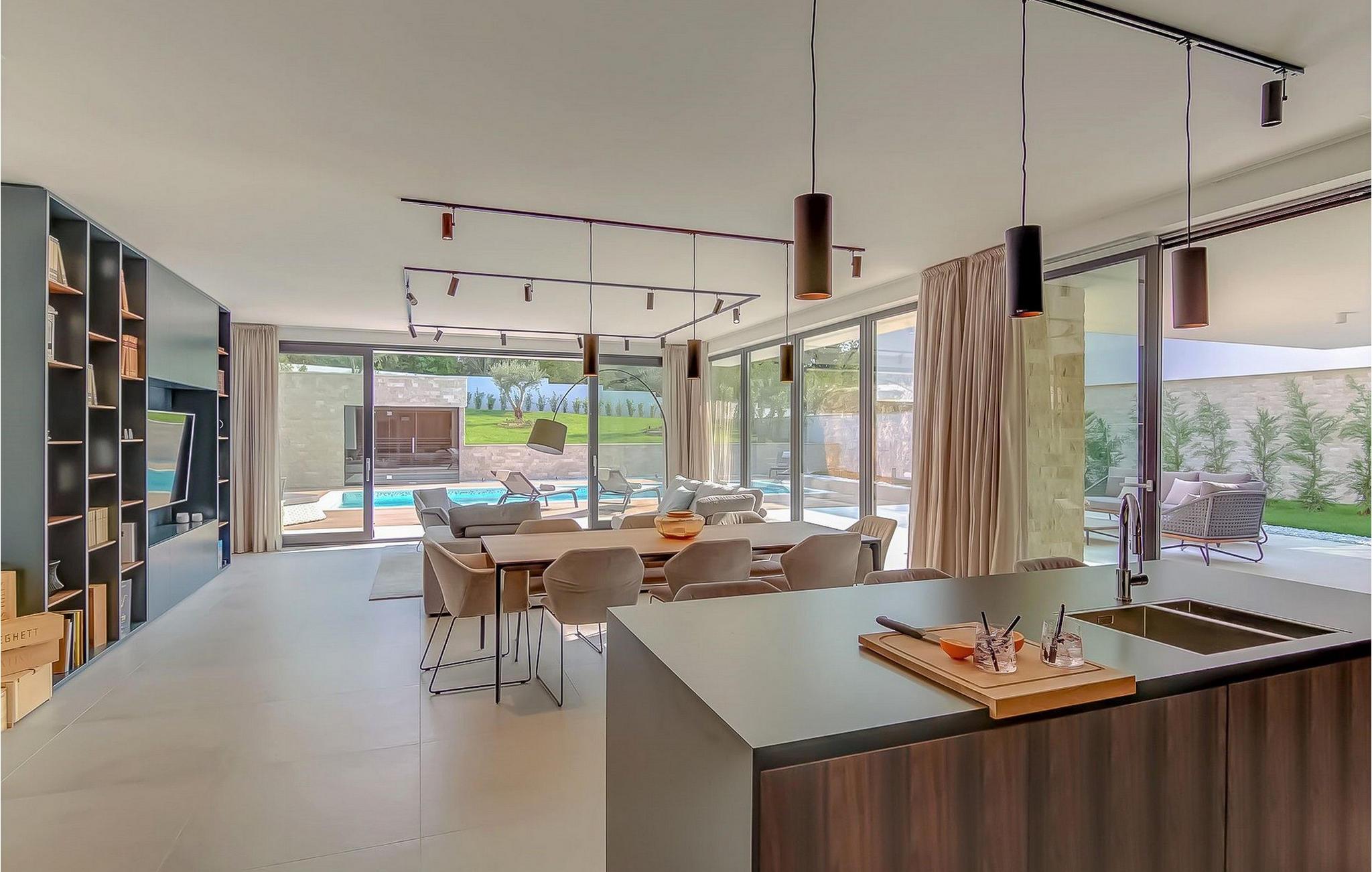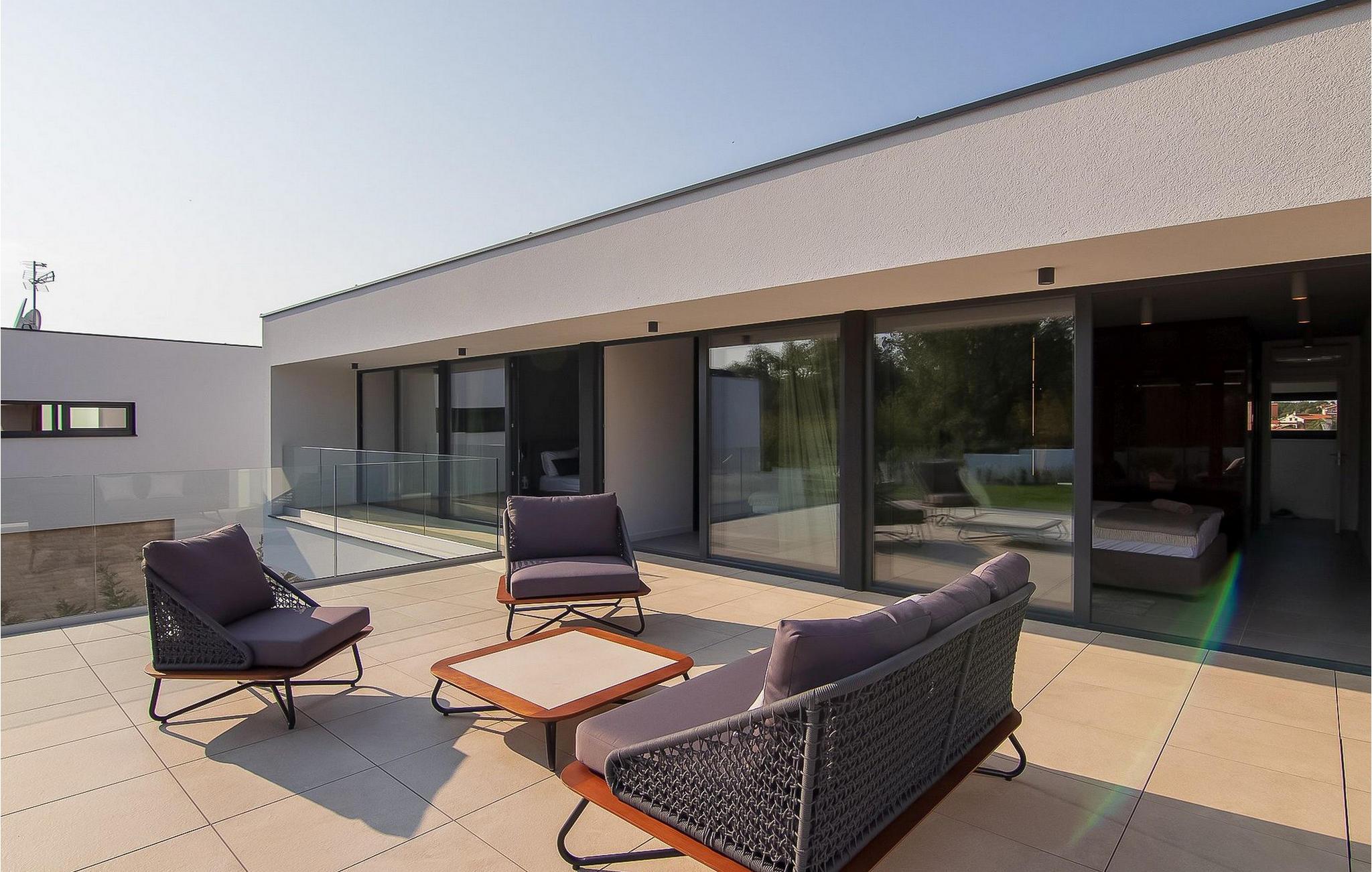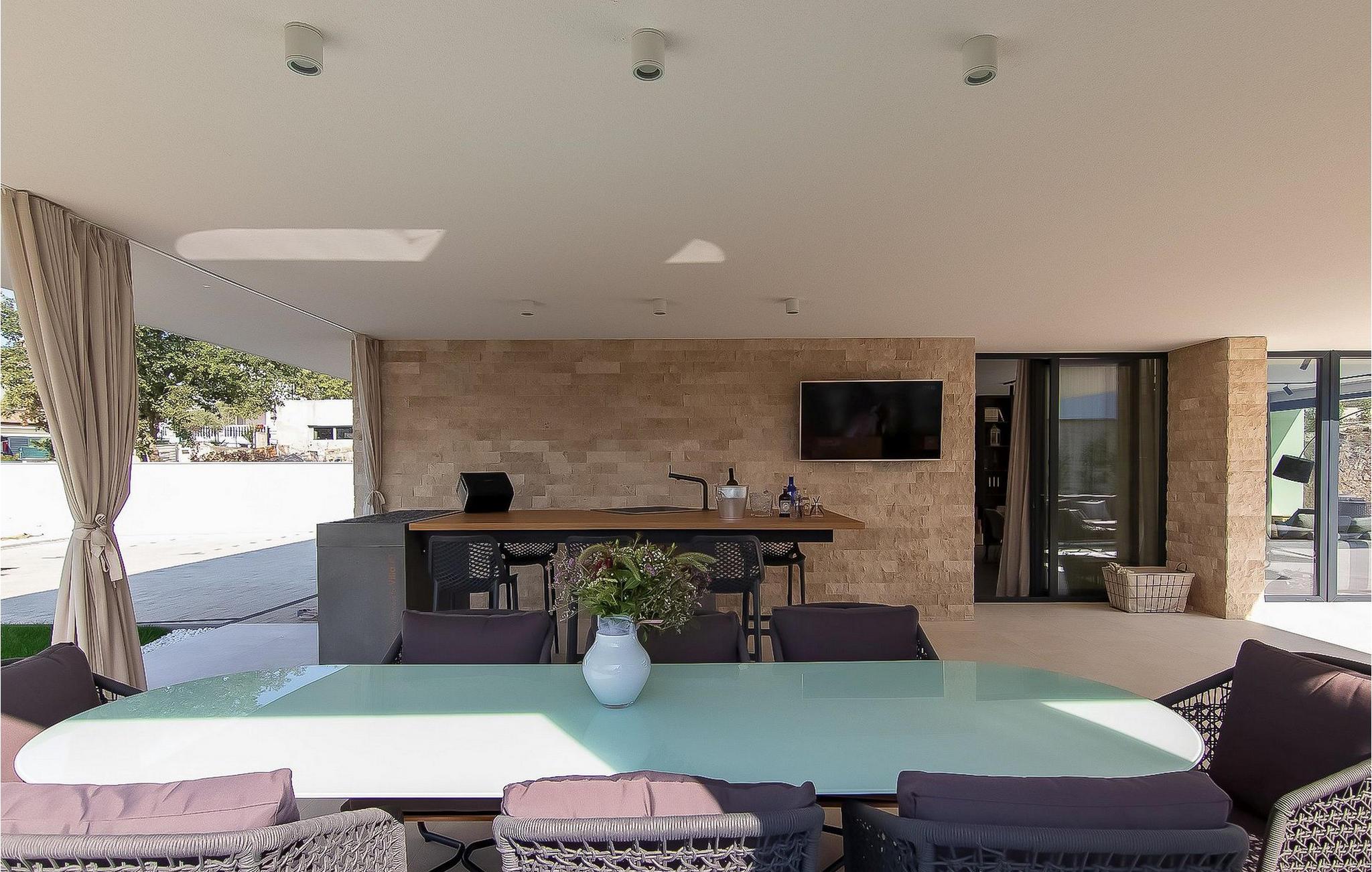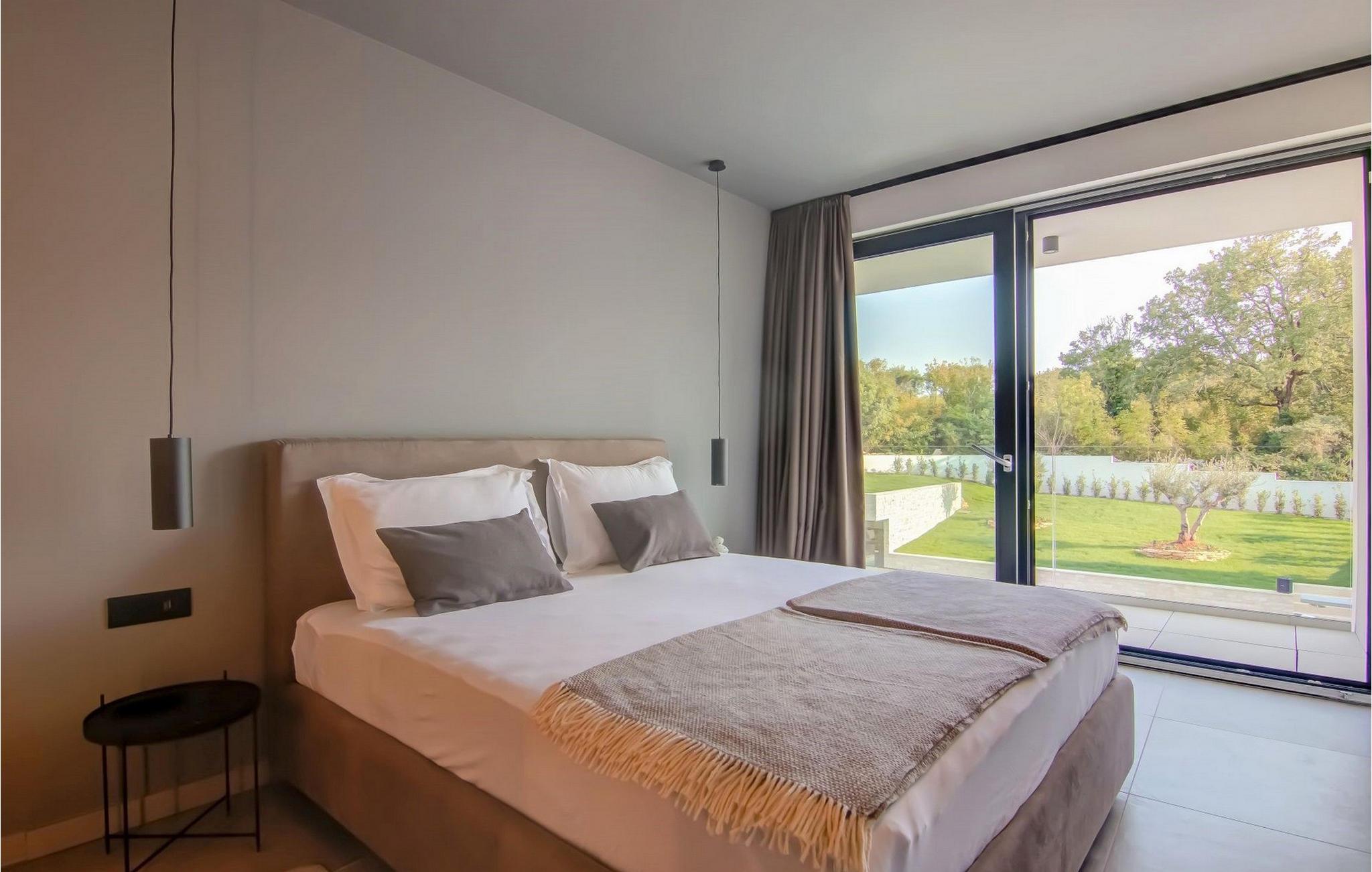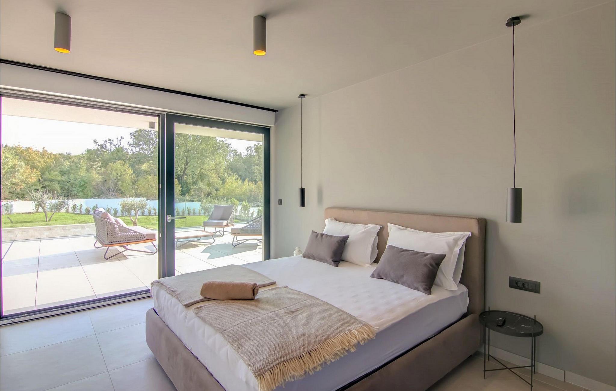 Beliggende i et naturligt miljø med en karakteristisk istrisk charme, vil denne moderne villa tilfredsstille selv de mest krævende ønsker hos elskere af moderne arkitektur. Fire store soveværelser med masser af sollys er udstyret med dobbeltsenge. Mens du sover, vil du føle, at du er i naturen, med al den luksus og komfort, som hvert soveværelse tilbyder. Køkkenet er udstyret med alt hvad du behøver for at tilberede fine måltider i godt selskab. Stuen er udstyret med den nyeste Samsung-skærm og Bose S1 bærbar bluetooth-højttaler og en PlayStation 4, mens en lang række sociale spil kan bruges til afslapning. Selvfølgelig kan du svømme i poolen på solrige dage eller spille volleyball på legepladsen. Om aftenen kan du slappe af i saunaen eller tilberede din middag ved den udendørs pejs. Beliggende ikke langt fra byen Rovinj, er Rovinjsko Selo en perfekt mulighed for at komme væk fra byens stress og jag. Oplev smukke bakker og ægte landferier nær fascinerende istriske byer. Kæledyr er tilladt på denne ejendom efter ejerens skøn eller mod et gebyr.