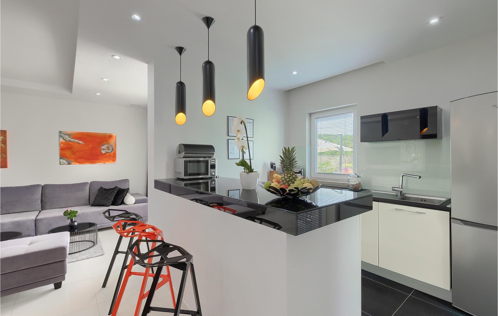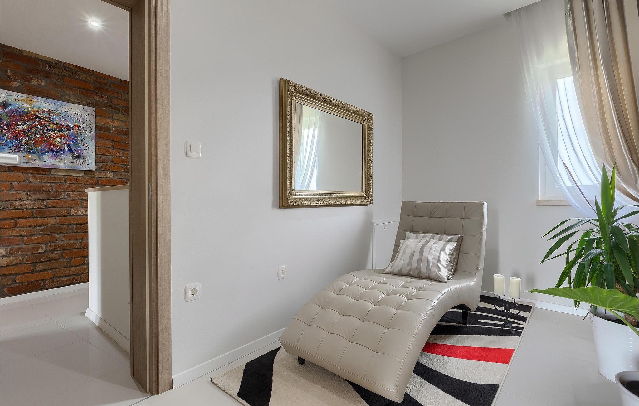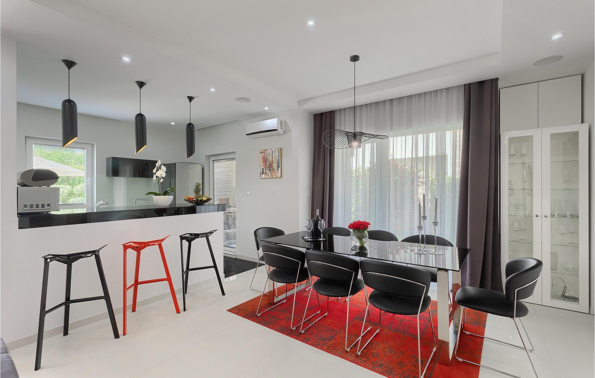 Den moderne Villa White ligger i en lille landsby nær Rovinj. Med 3 soveværelser, 3 badeværelser tilhørende lejligheder, en stue og et fuldt udstyret køkken med spiseplads kan villaen rumme 7 gæster. Der er et wellness-/afslapningsrum med sauna til rådighed. I haven finder I en privat swimmingpool med liggestole – perfekt til afslapning og afslapning! Der er også et grillområde, hvor I kan tilberede lækre måltider til jeres familie. Haven er også ideel til at nyde morgenmad med udsigt over poolen.