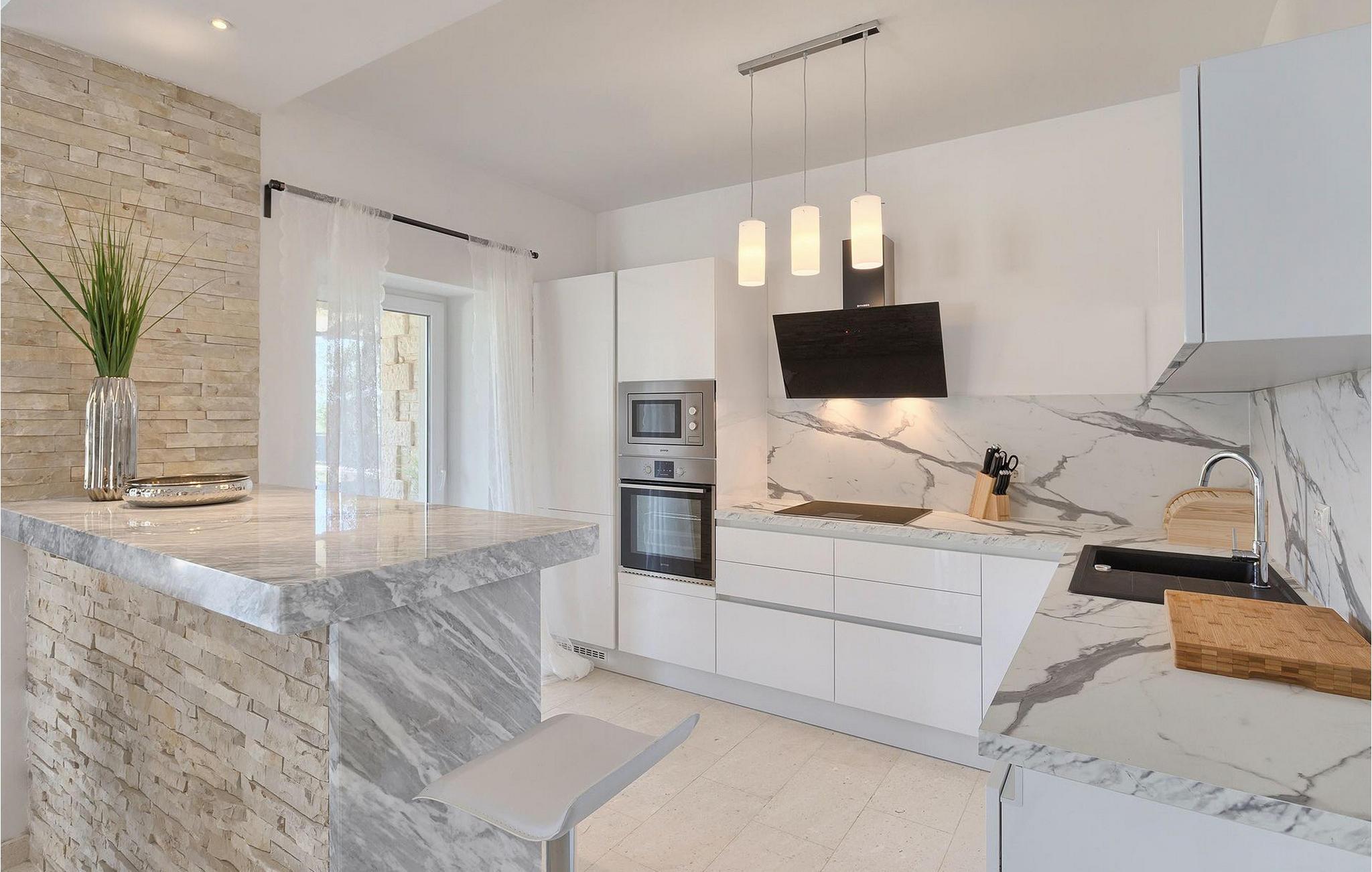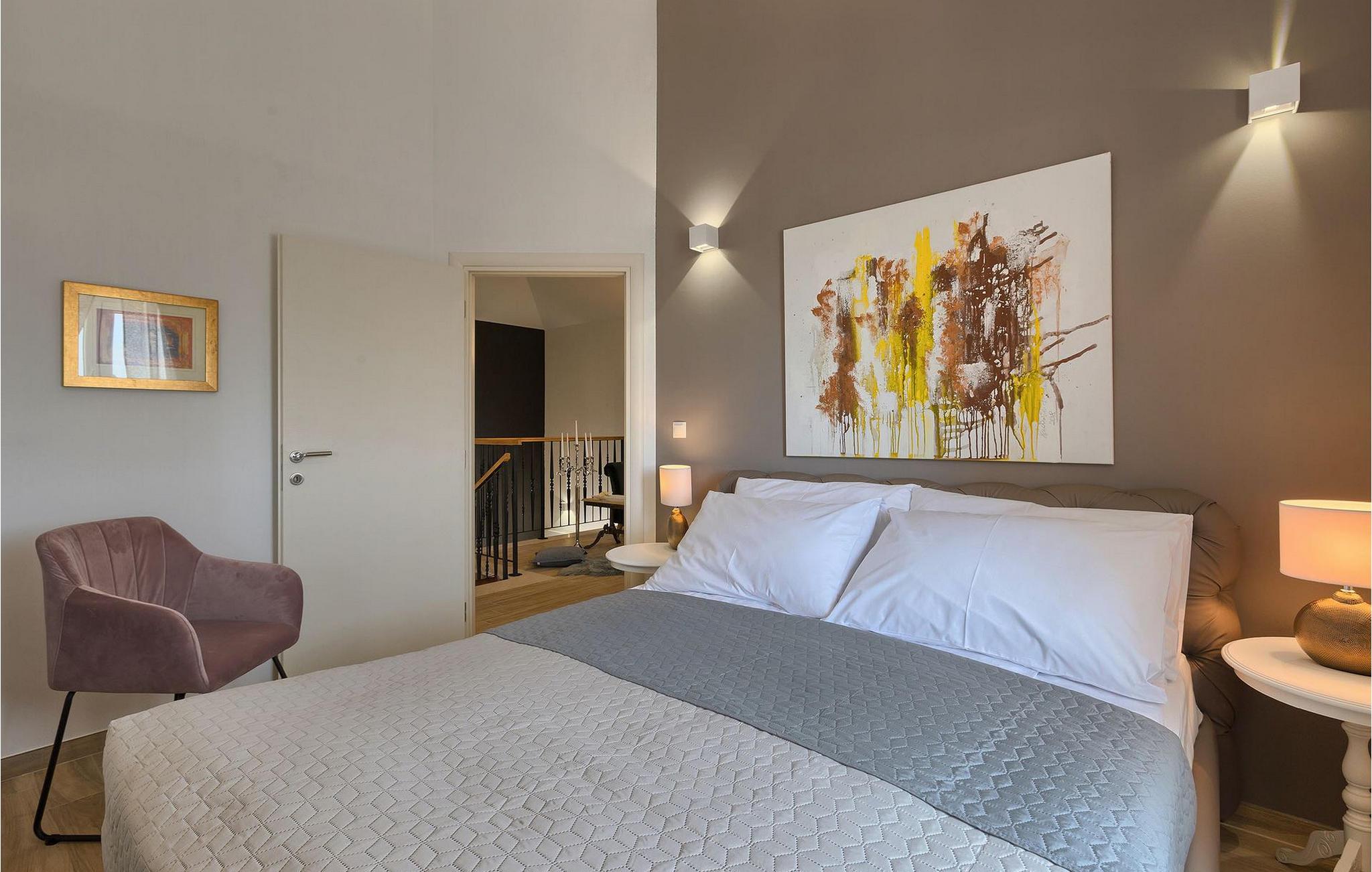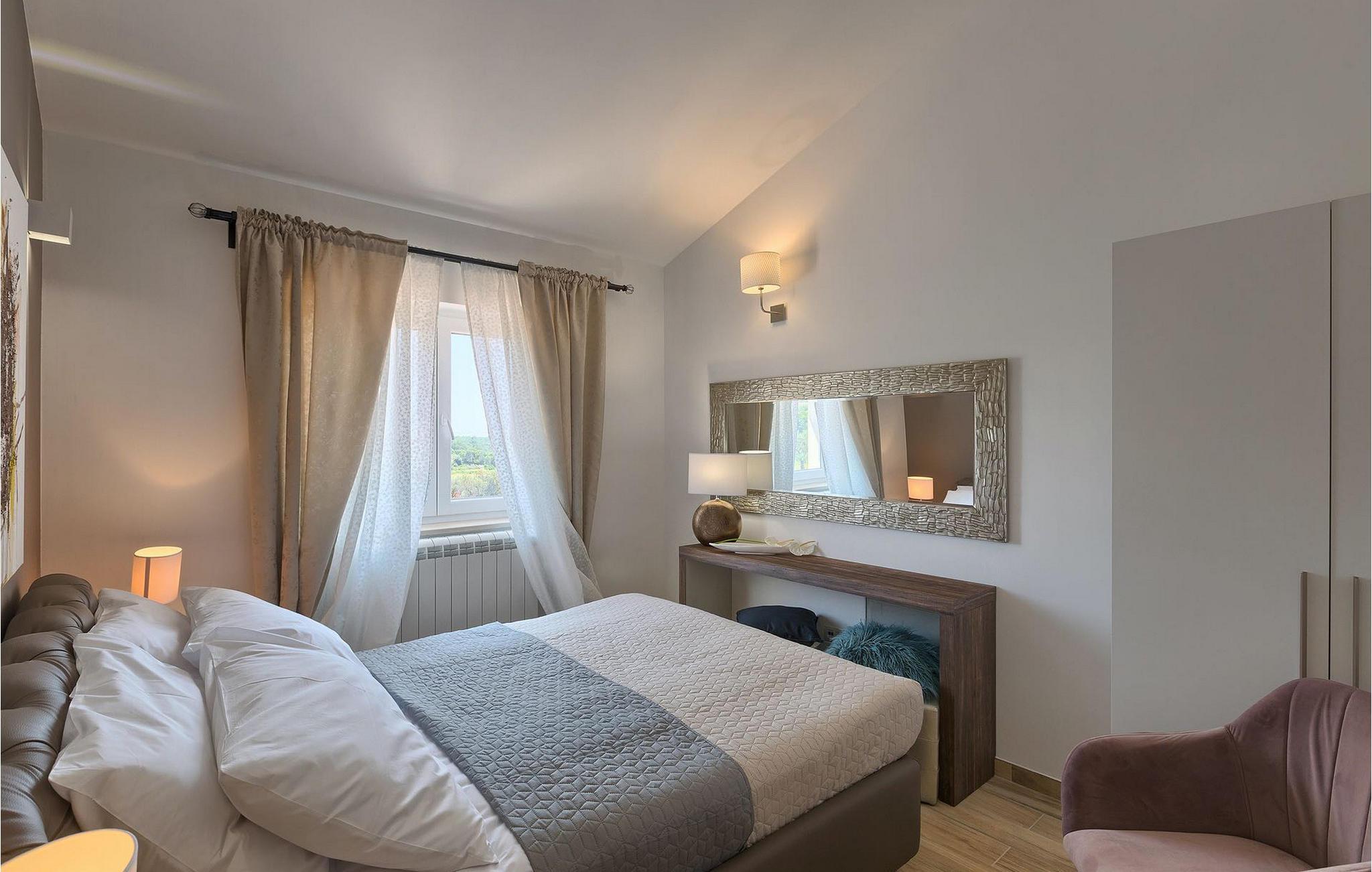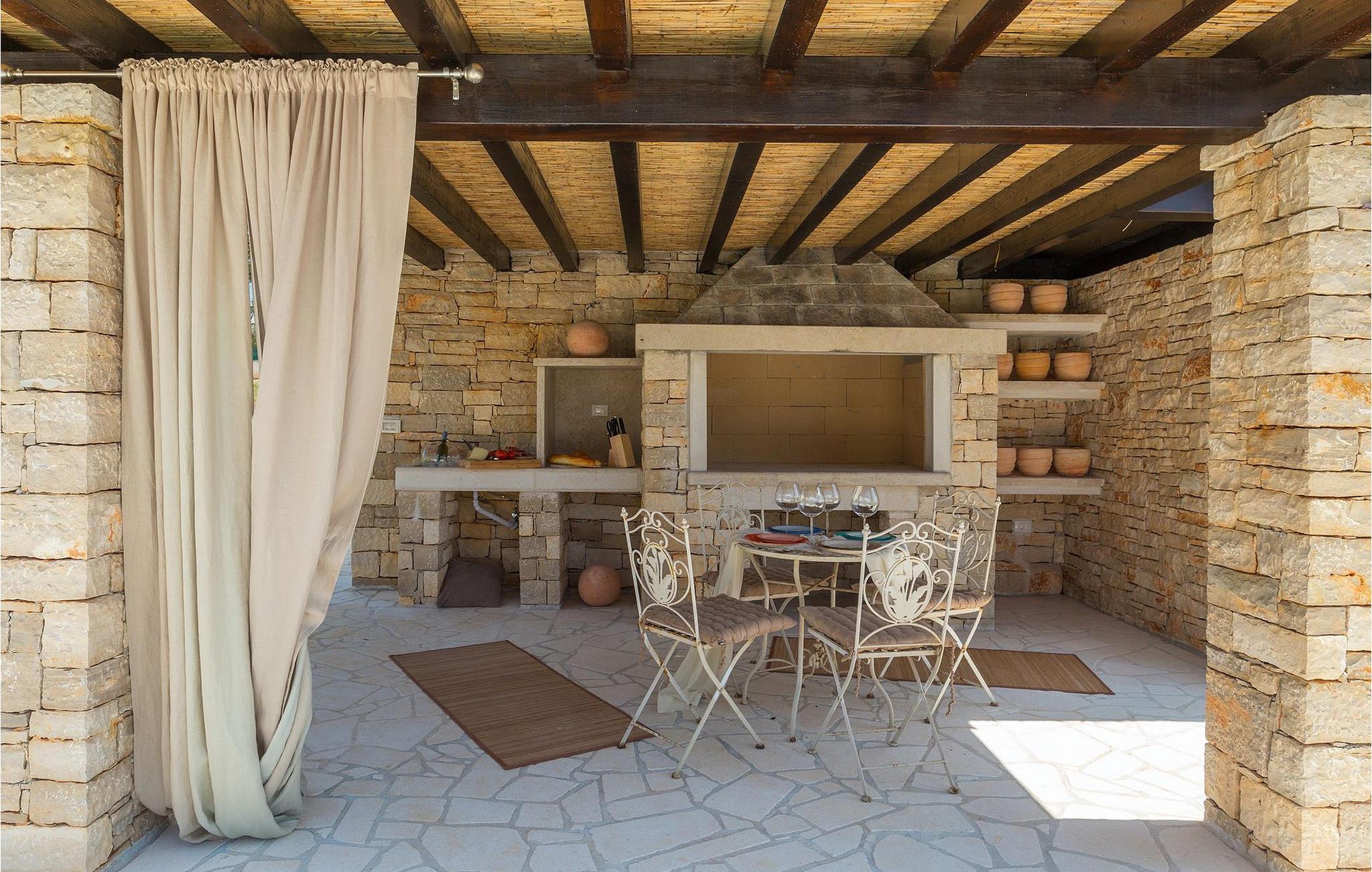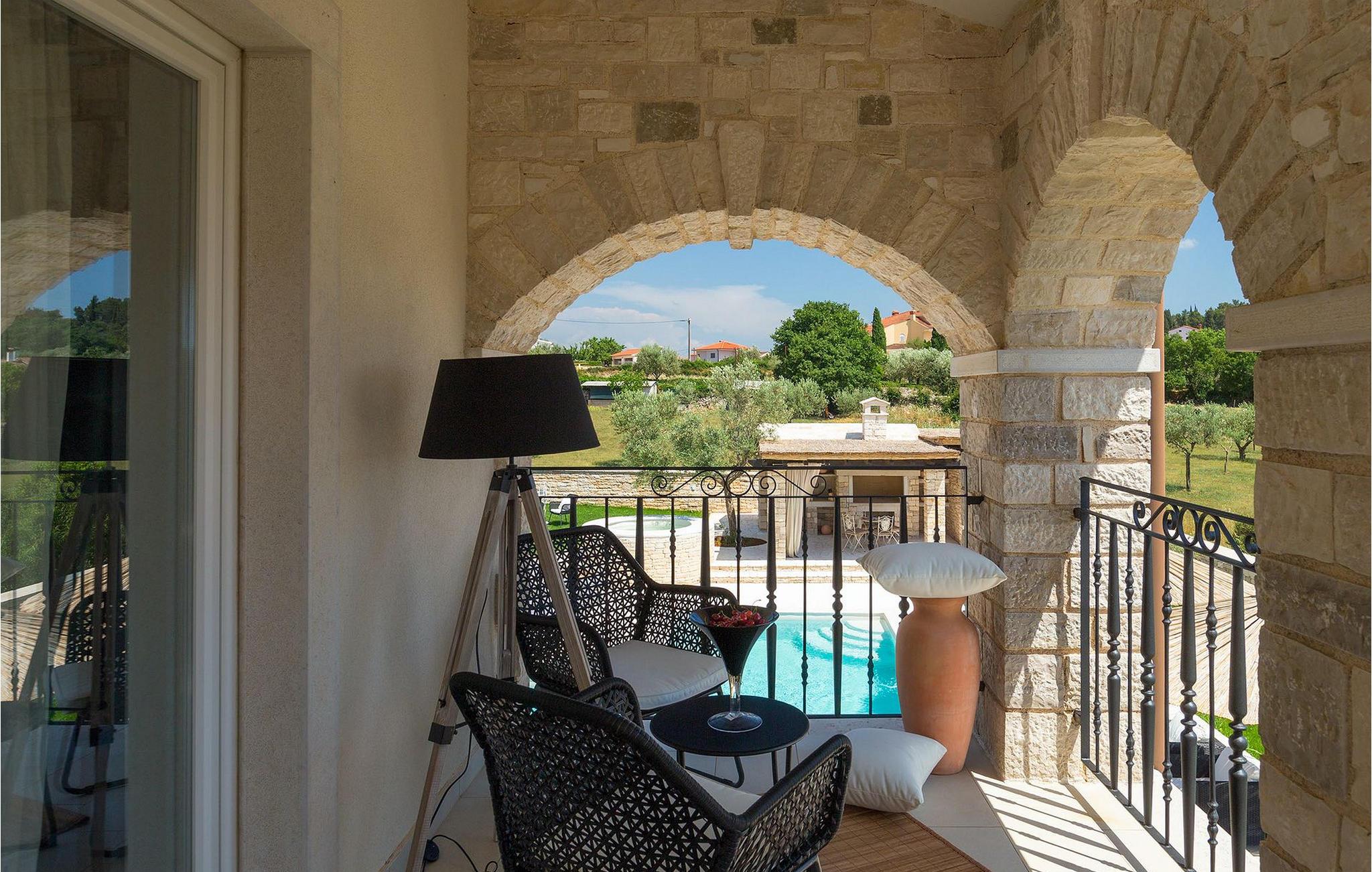 I haven, direkte ved siden af poolen, er der et lille poolhus lavet af sten, hvor det 4. soveværelse er placeret. Det er perfekt til dem, der ønsker ekstra privatliv i et idyllisk lille istrisk stenhus. Også perfekt til dem, der ønsker at hoppe i poolen direkte efter at være vågnet! Poolhuset har også en finsk sauna, et ekstra badeværelse og en udendørs spiseplads med 2 griller.