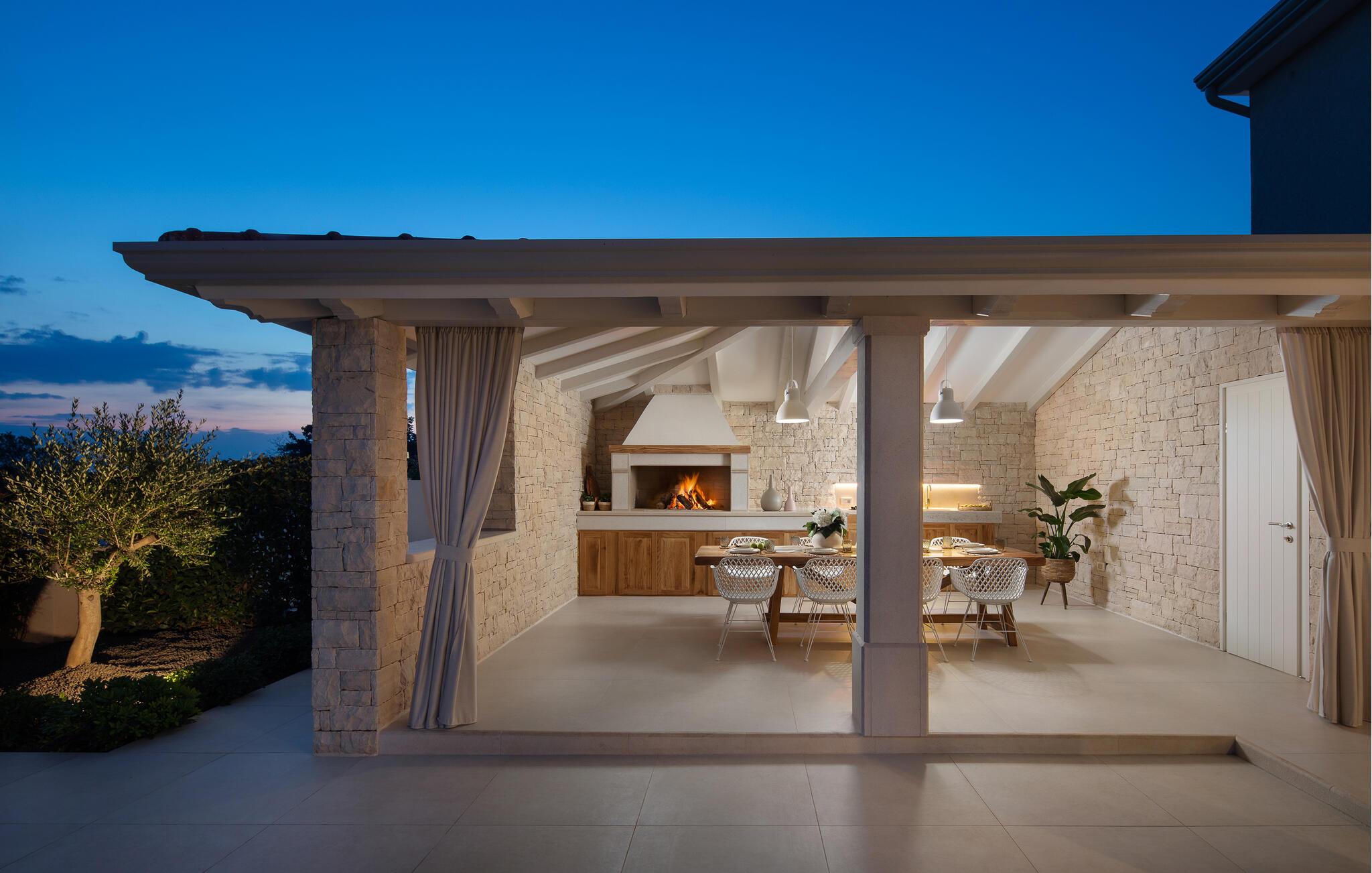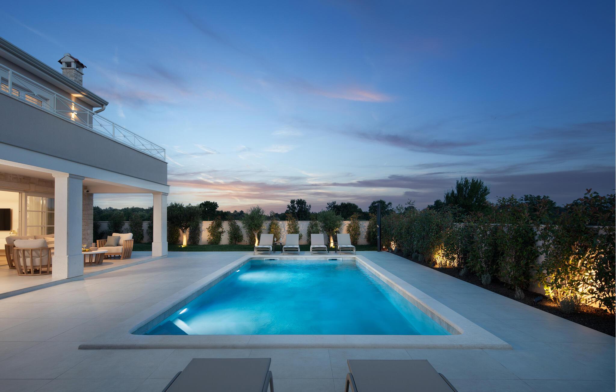 Jeres feriehus ligger ikke langt fra Rovinj og byder på nogle gode muligheder for en afslappende ferie. Husets absolutte højdepunkt er den store, private pool med liggestole, hvor I kan slappe af i den skyggefulde del af terrassen. Lige ved siden af jeres feriehus finder I et overdækket spiseområde med spisebord og et udendørskøkken. Indretningen har et strejf af luksus og byder på en behagelig ferie sammen med familien eller vennerne. Derudover byder huset på en smuk udsigt over det omkringliggende landskab.
