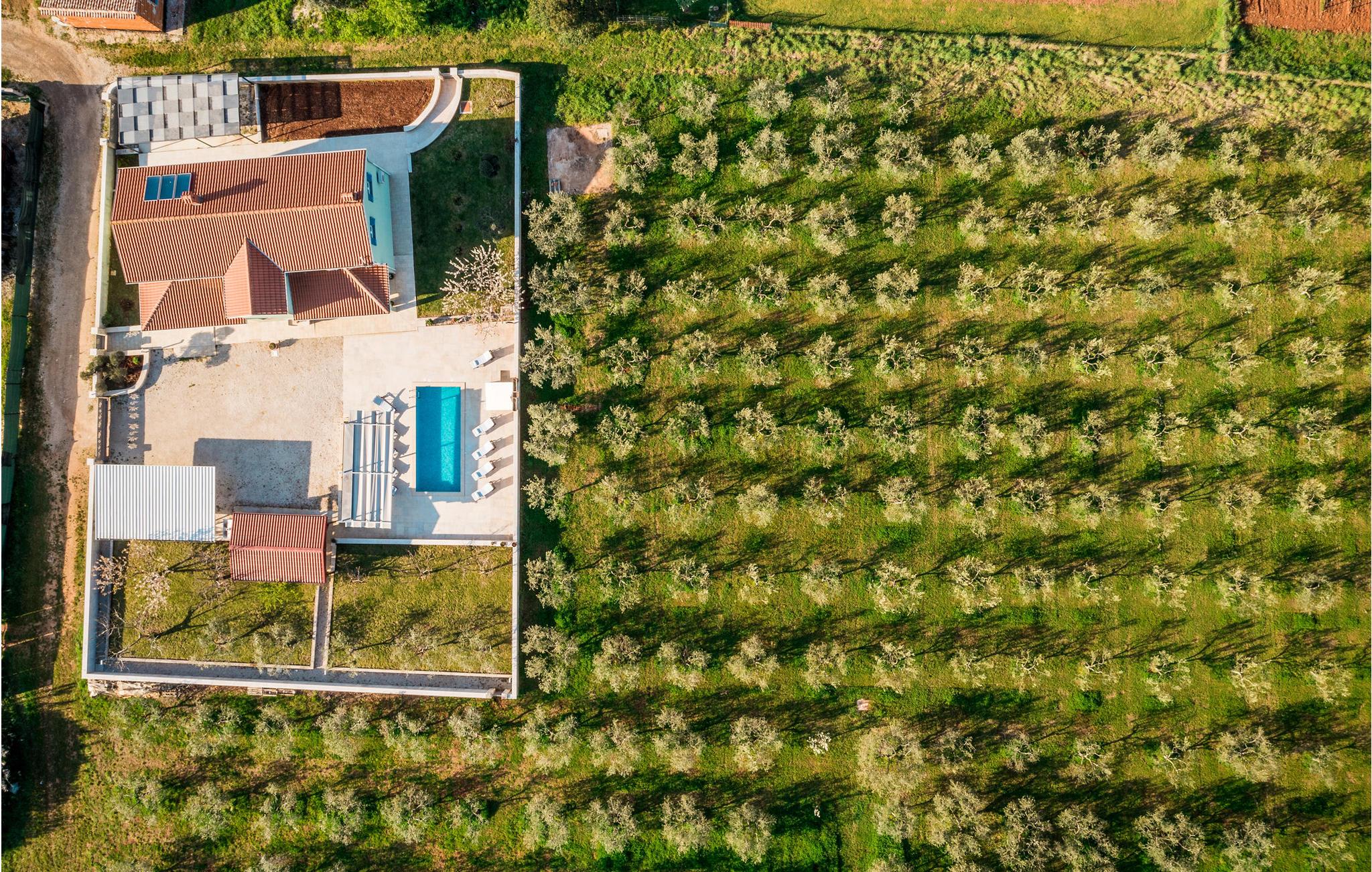 Her bemærker I naturen, for i omgivelserne vokser der oliventræer og vinranker. Huset fordeler sig over tre etager (indendørstrappe). Boligen er rummeligt og moderne indrettet.