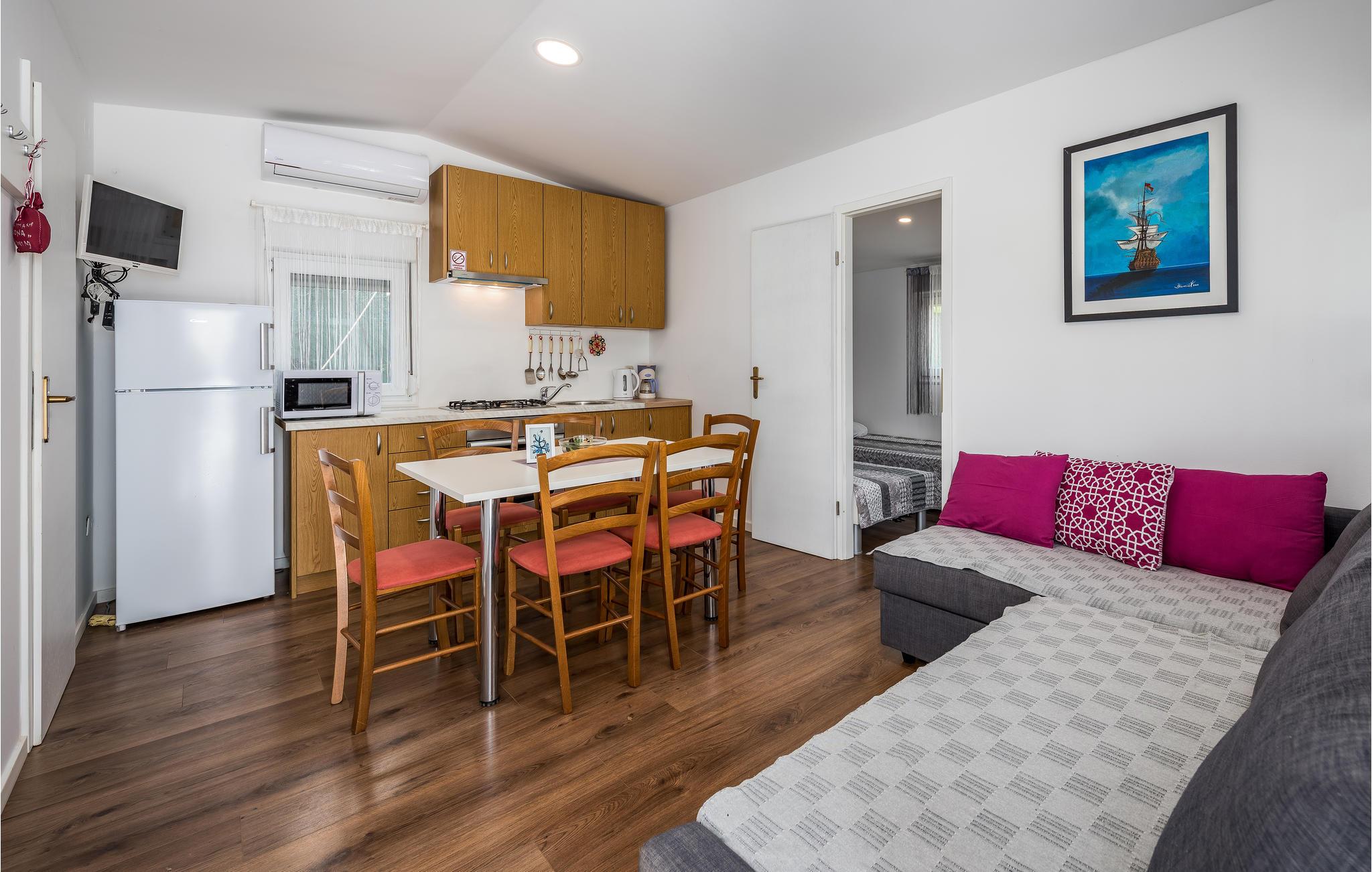 På den indhegnede grund kan I spille badminton, og børnene kan underholde sig med sandkassen og gyngen. I har tre cykler til fri afbenyttelse for dem af jer, der ønsker at udforske området eller har ærinder i byen Rovinja, 5 km fra huset. Kun 1 km adskiller jer fra en dejlig stenstrand, hvor I kan bade i Adriaterhavets glitrende vand. Der er en restaurant kun 250 m fra huset.