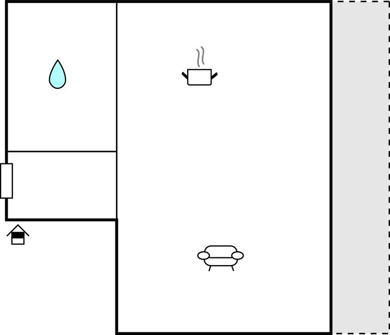 Opholdsstue/køkken 20m2 - 2 Sovepladser. (Dobbeltseng(e)).