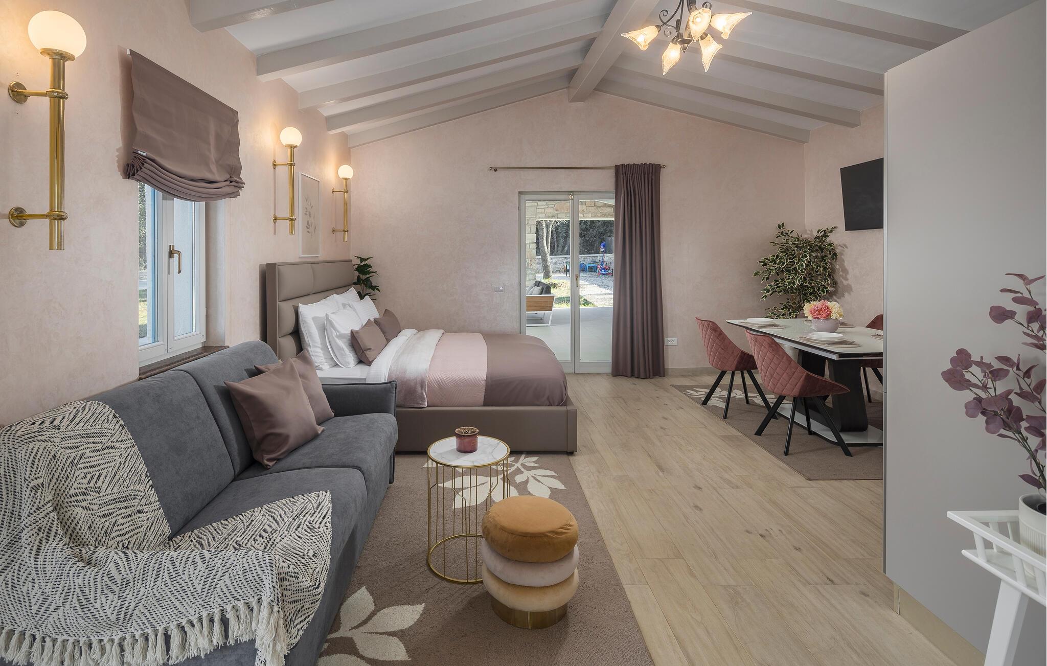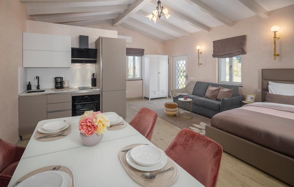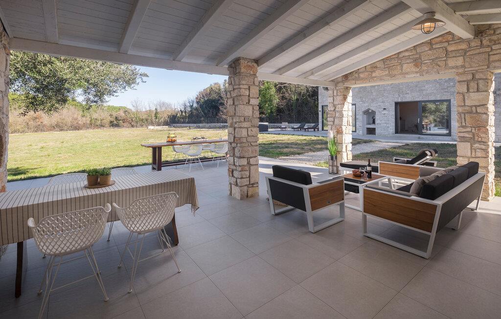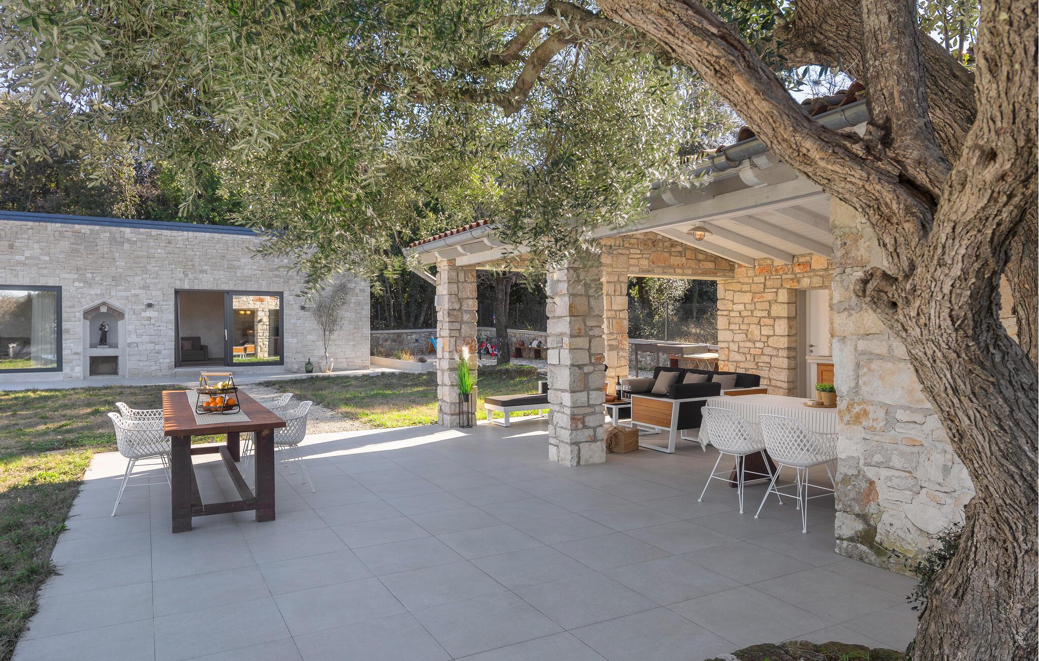 Tæt på kysten og lidt syd for Rovinj ligger denne bolig, der består af to elegante stenbygninger, hvor der venter jer en herlig ferie i det kroatiske.