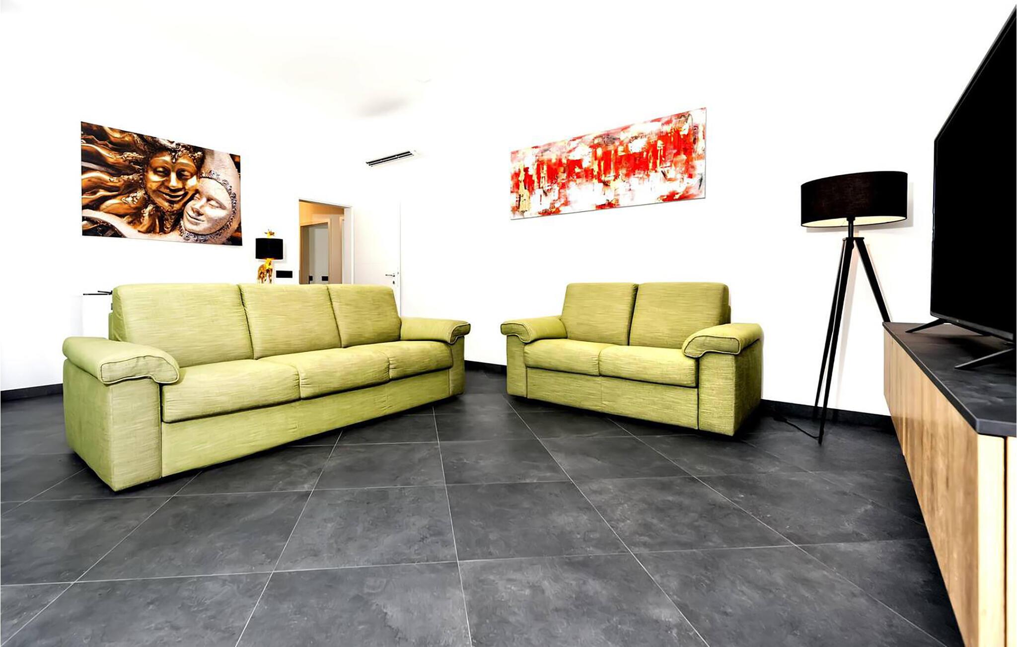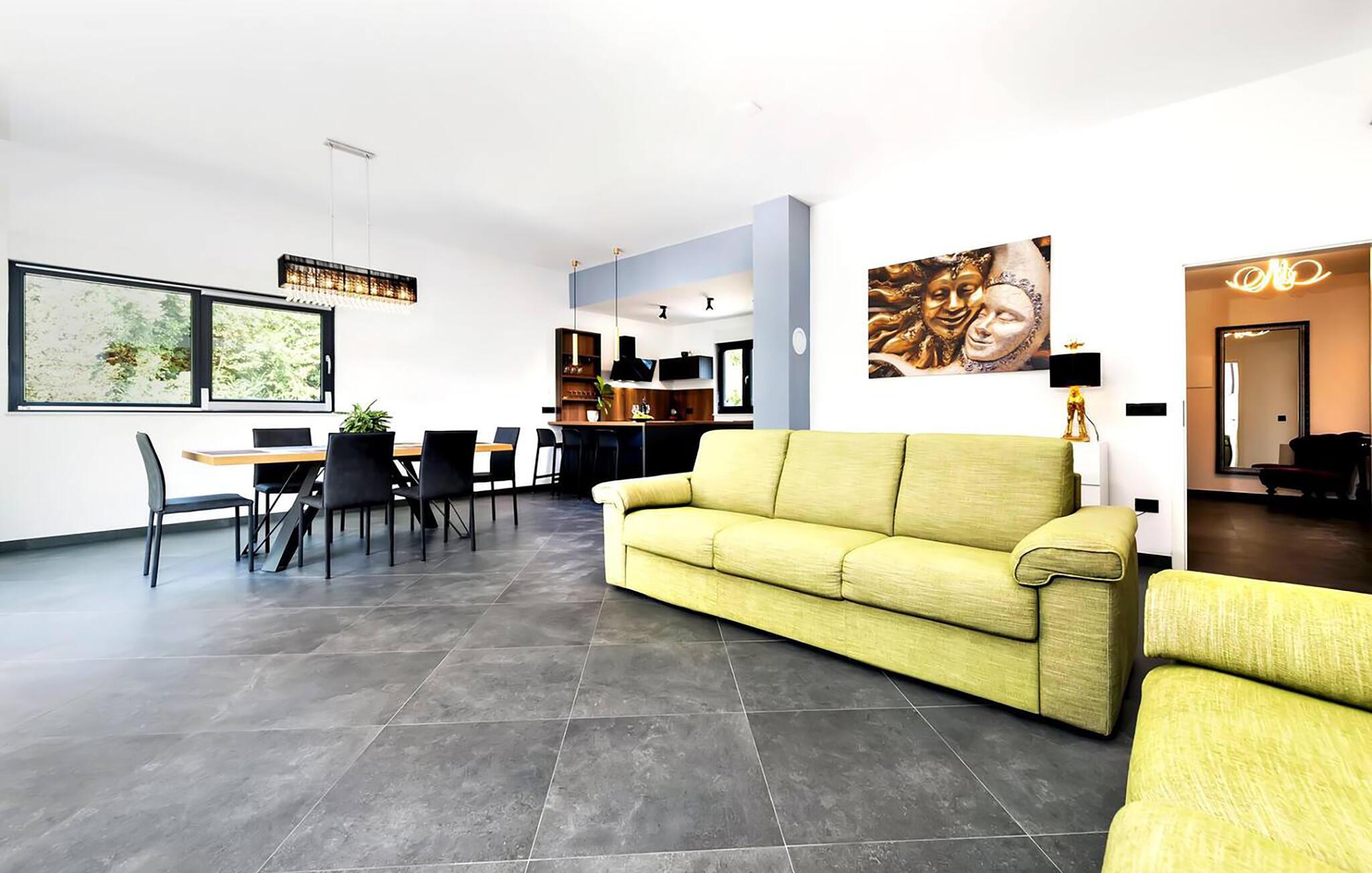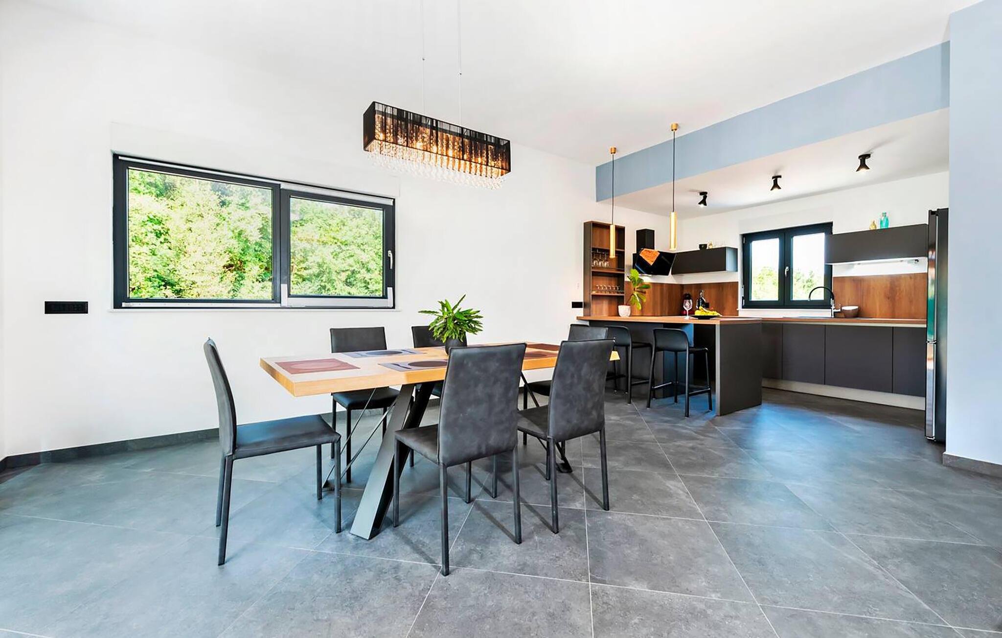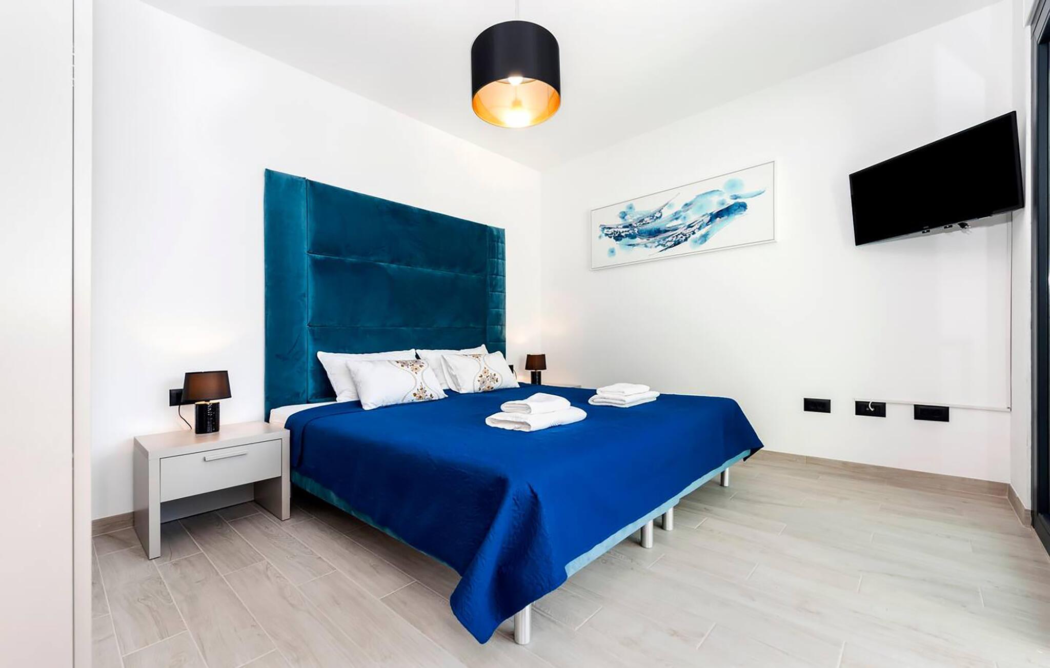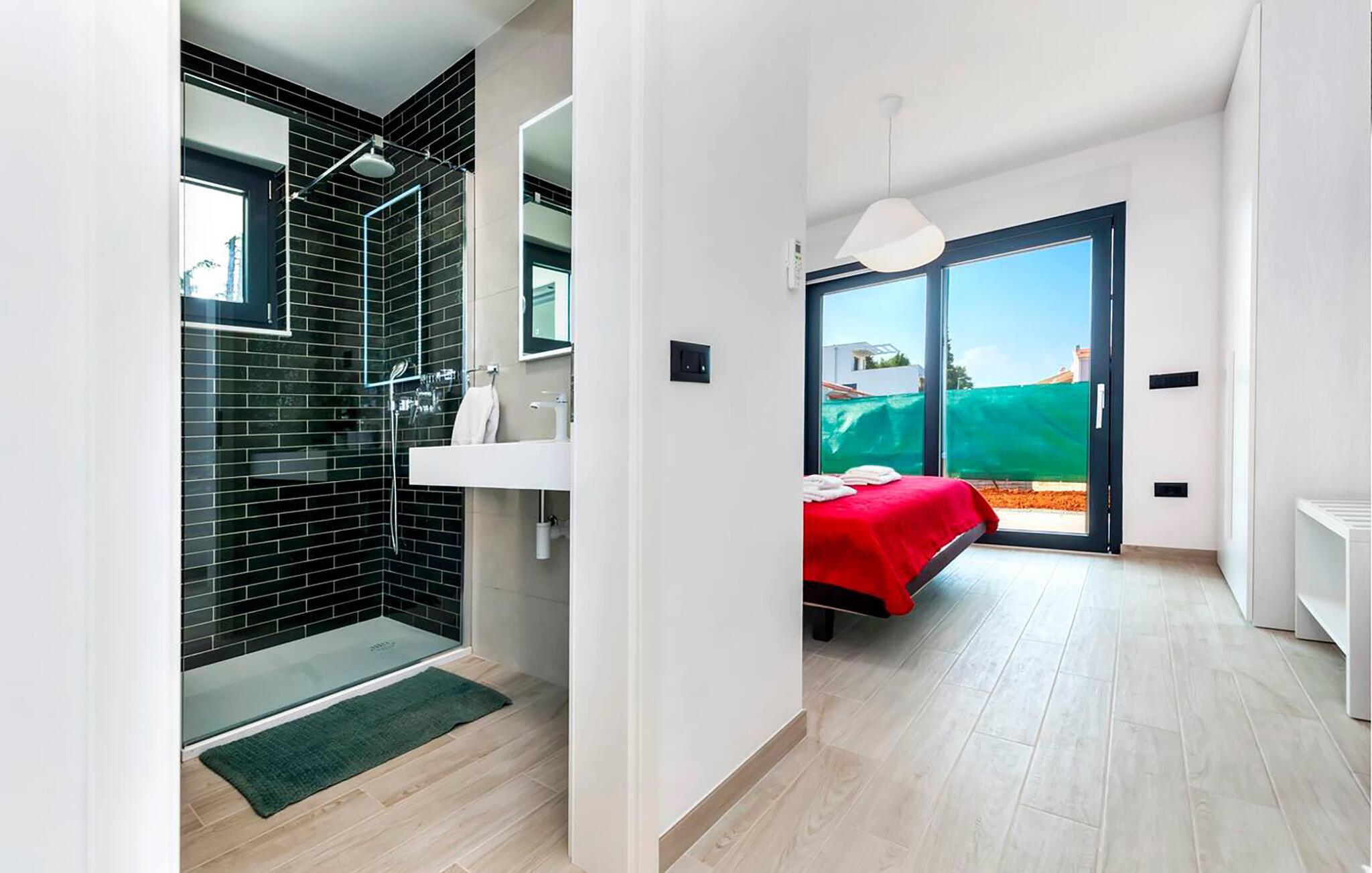 Kun et stenkast fra smukke strande inviterer dette komfortable feriehus til en uforglemmelig pause. Træd ind i den lysfyldte atmosfære og gør jer godt tilpas. Tilbered middelhavsdelikatesser i det åbne, veludstyrede køkken og server dem ved det elegante spisebord. Afslut dagen med at slappe af, mens I streamer en film på de komfortable sofaer eller griner sammen, mens I spiller brætspil.