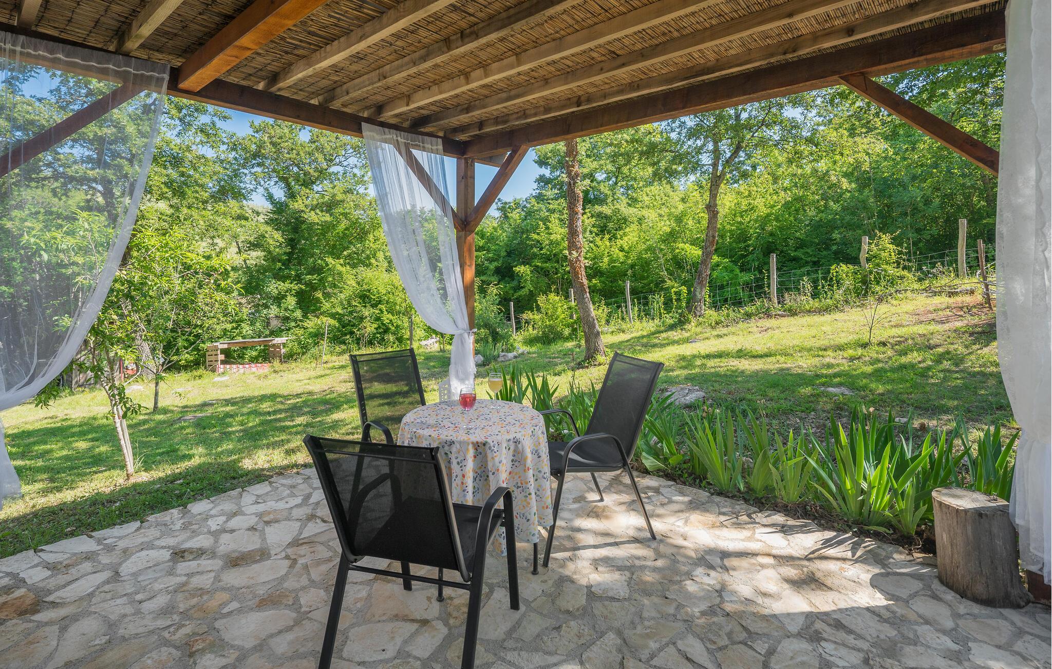 Den rummelige, indhegnede grund er en sand oase. Glæd jer til at slappe af i spabadet, lade batterierne op på liggestolen og blive fortryllet af den fredfyldte atmosfære med et glas vin udendørs om aftenen.