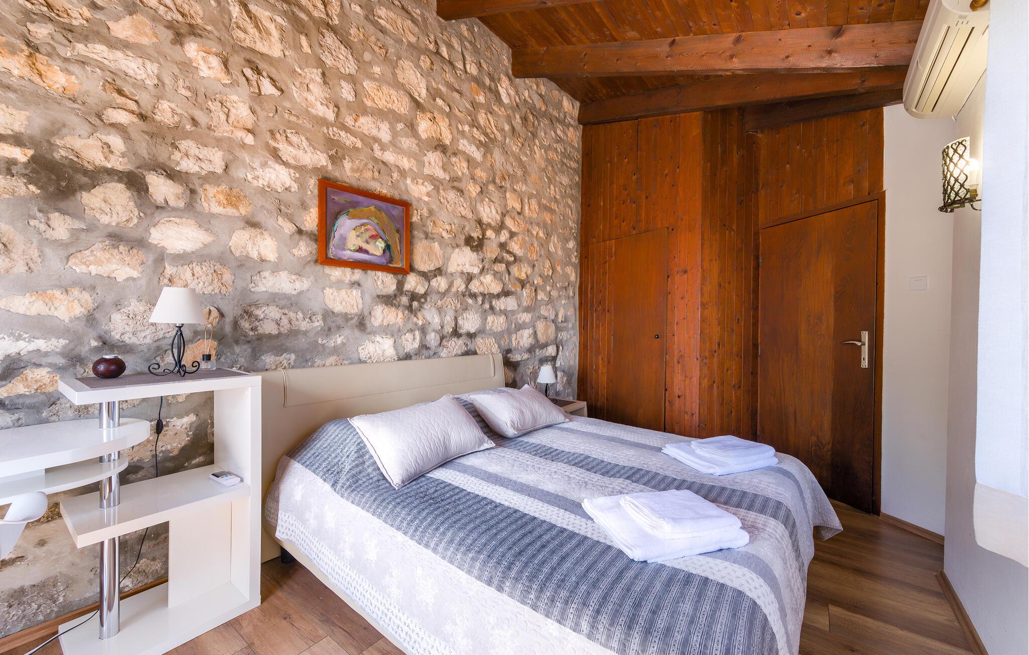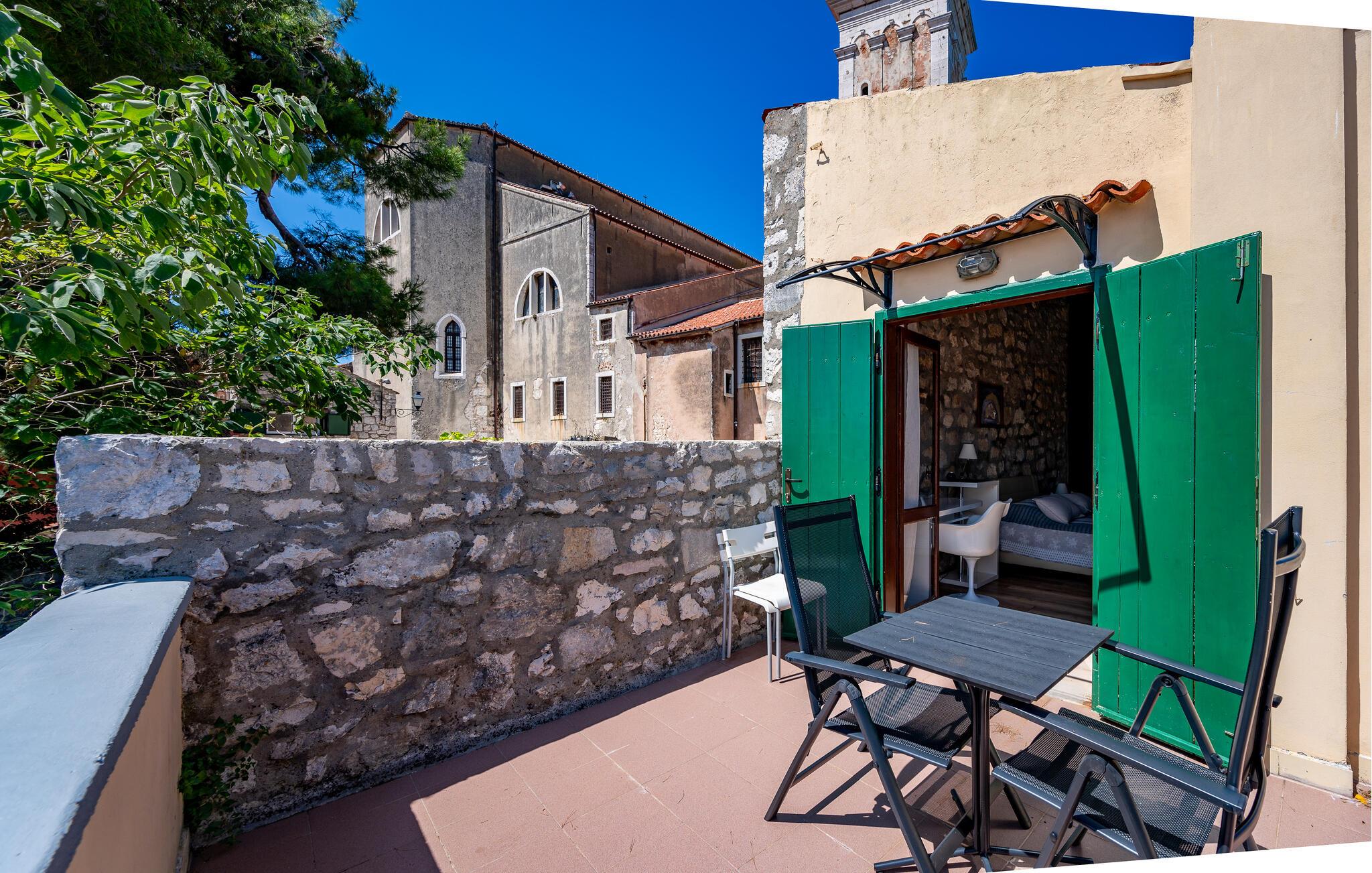 Dette kærligt restaurerede feriehus byder jer velkommen i Rovinjs historiske bymidte, nogle få skridt fra kysten. En velholdt, rustik atmosfære venter jer med trælofter og naturstensvægge. Forkæl hinanden med lækre måltider lavet med friske råvarer fra markedet, planlæg jeres aktiviteter i fred og ro, nyd afslappende siestaer og fordyb jer i ferienlæsning efter en lang dag.