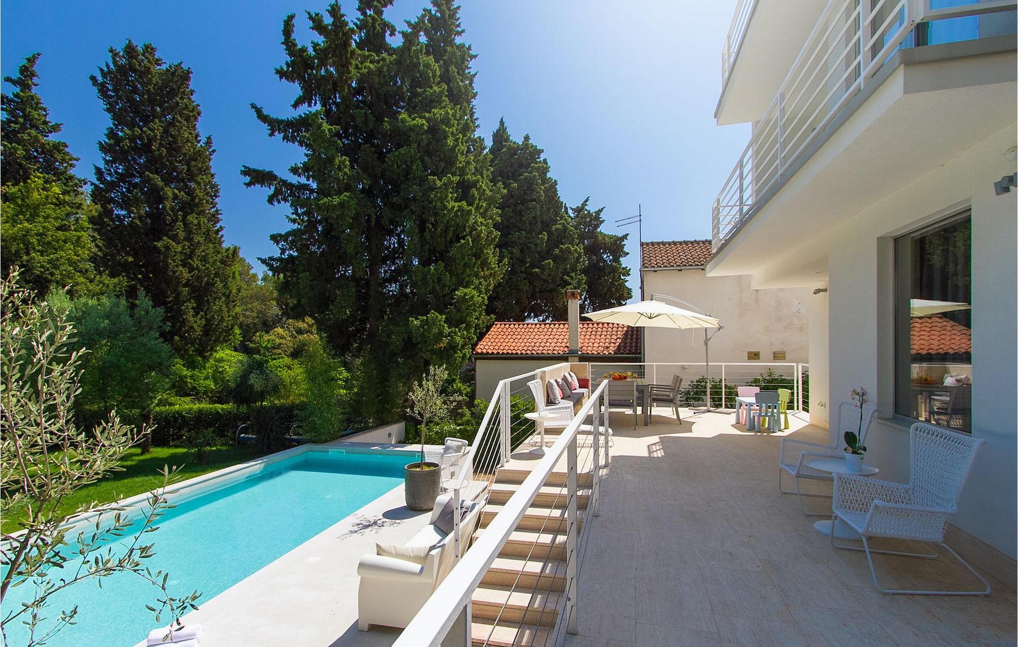 Smukke Villa Borik Terra Rossa ligger i den mest romantiske by i Istrien - Rovinj. Det tilbyder en ideel ferie for venner eller familier, der ønsker at tilbringe den på stranden i nærheden og nyde det smukke blå Adriaterhav. Villa Borik Terra Rossa kan rumme op til 8 gæster. Til din rådighed er 5 soveværelser, 2 badeværelser, en stue og et fuldt udstyret køkken med spiseplads. Udendørsområdet omfatter en fuldstændig lukket grøn have med en swimmingpool, hvor du kan slappe af og nyde den istriske sol i fuldstændig privatliv. På terrassen er en udendørs spiseplads med en kulgrill til din rådighed. Her kan du tilberede lækre måltider eller blot nyde et glas god istrisk vin. Villa Borik Terra Rossa har aircondition, har Wi-Fi, privat parkering til 3 biler og giver alt for en fornøjelig ferie i privatlivets fred, men alligevel i gåafstand til stranden og byens centrum. Smukke Villa Borik Terra Rossa ligger i den mest romantiske by i Istrien - Rovinj. Engang en fiskerby, i dag er det et velkendt turiststed. Nyd det smukke krystalklare blå Adriaterhav, 22 øer og holme, uberørt natur, rig kulturarv og kulturelle begivenheder, især i sommermånederne. Rovinjs gamle bydel er kendt for sin venetianske arkitektur, kulturarv, arkæologiske steder, museer, smalle middelaldergader og varme middelhavsomgivelser. Hvis du er mere interesseret i aktiv ferie, er der i Rovinj og omegn mange udflugtsmuligheder (bådture rundt på Rovinj-øerne, sportsfisketure, cykelture..). Rovinj og dens omgivelser byder på vandre- og cykelruter, paintball, gratis klatring, paragliding, moderne tennisbaner, fodboldbaner, beachvolleybaner, håndboldbaner og mange flere. Du kan enten nyde på den første strand, svømme og snorkle eller prøve forskellige vandsportsgrene (f.eks. vandski, windsurfing). Og sidst men ikke mindst, her kan du nyde lækre middelhavs- og istriske specialiteter. Temperaturen i den opvarmede swimmingpool er afhængig af eksterne faktorer, herunder vejrforhold, og som sådan kan temperaturen på vandet ikke garanteres.