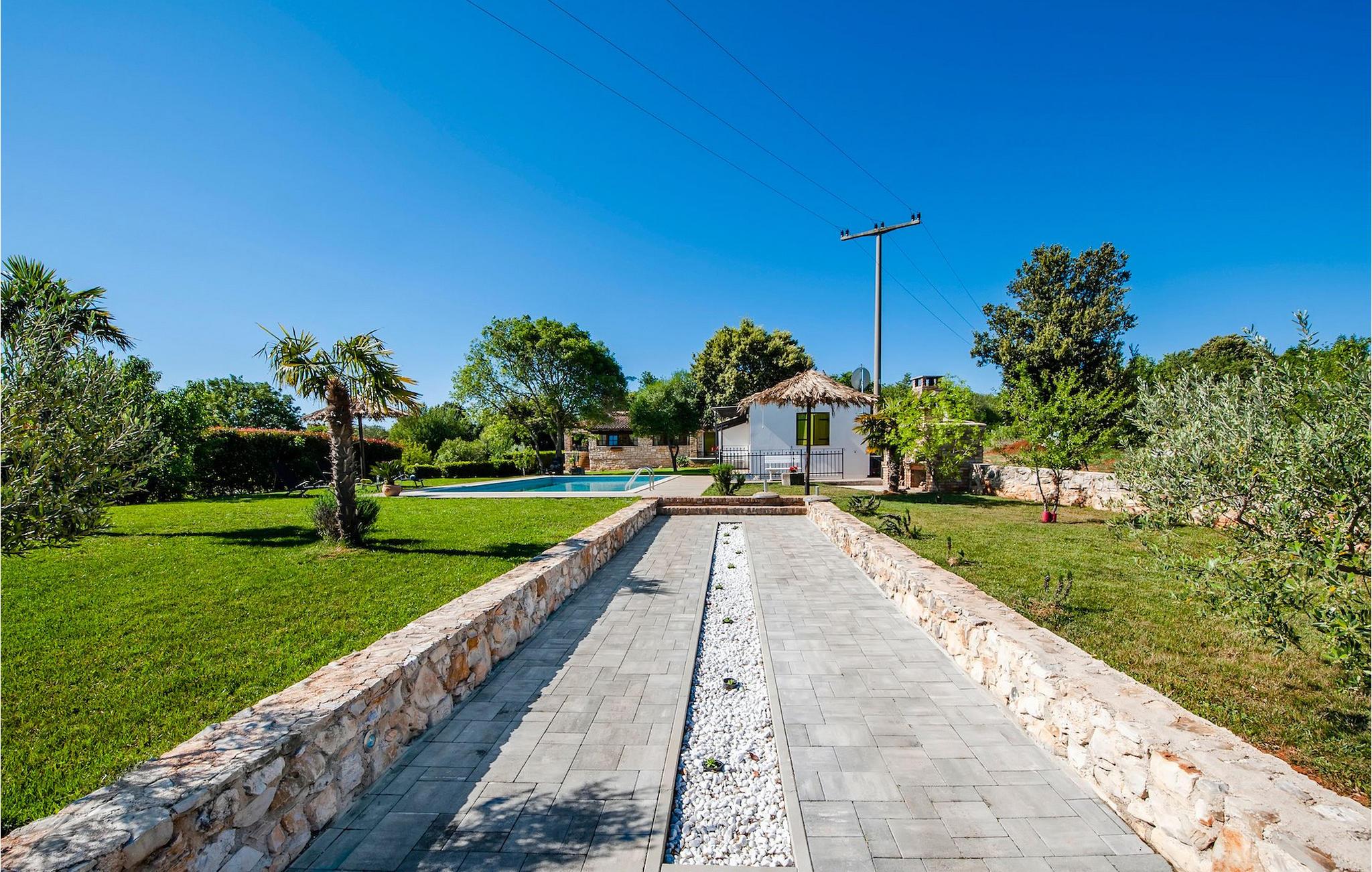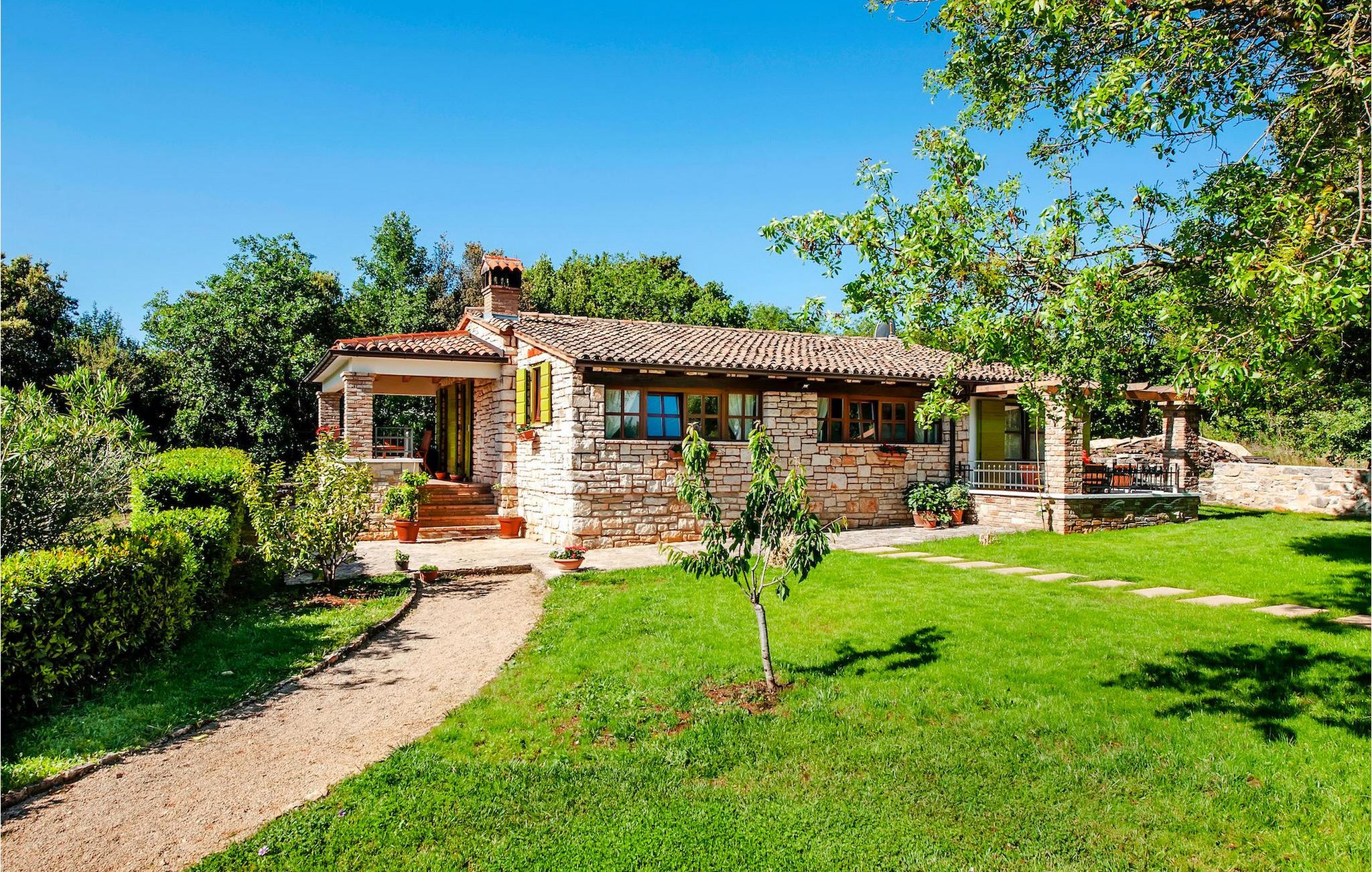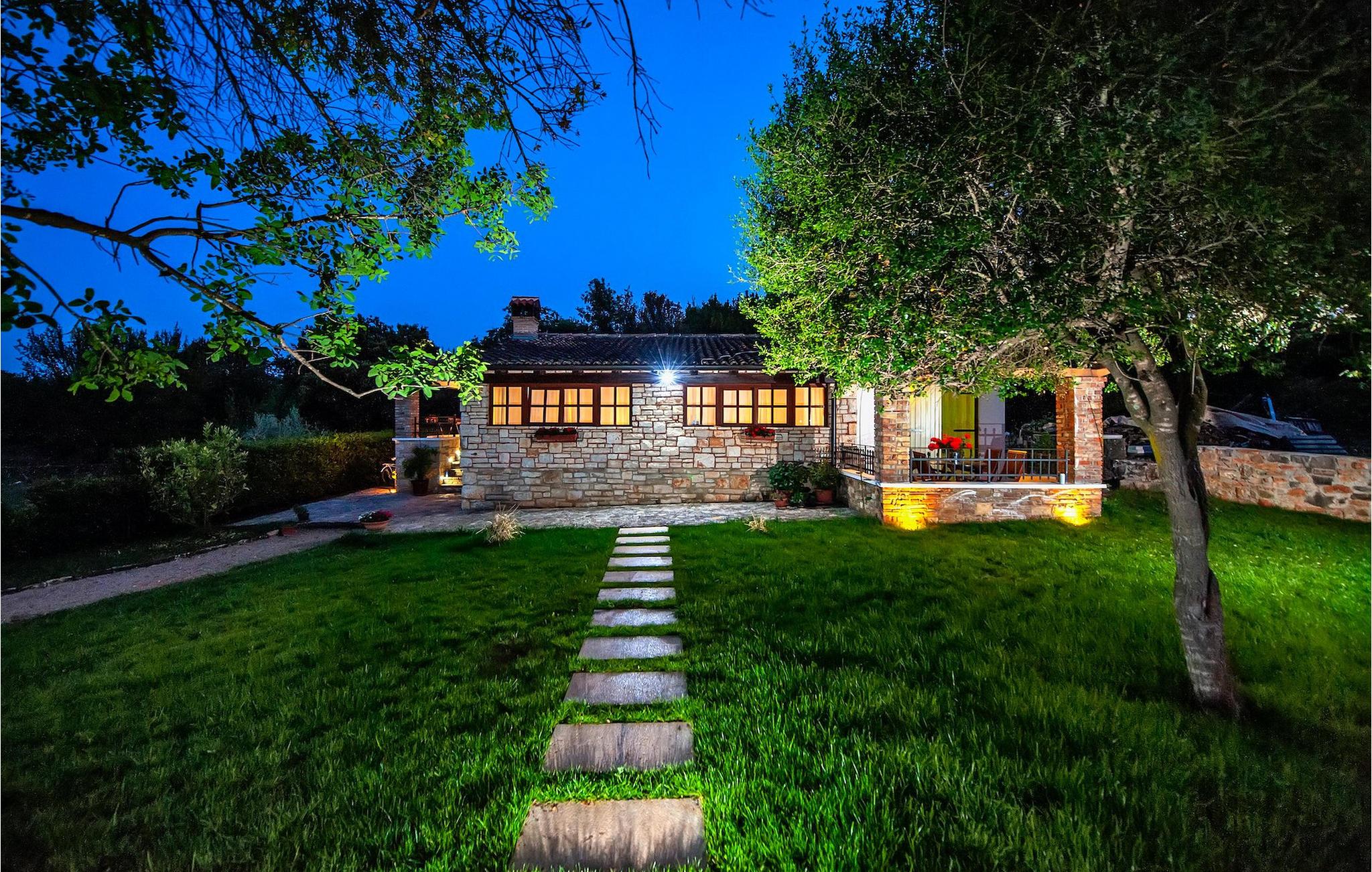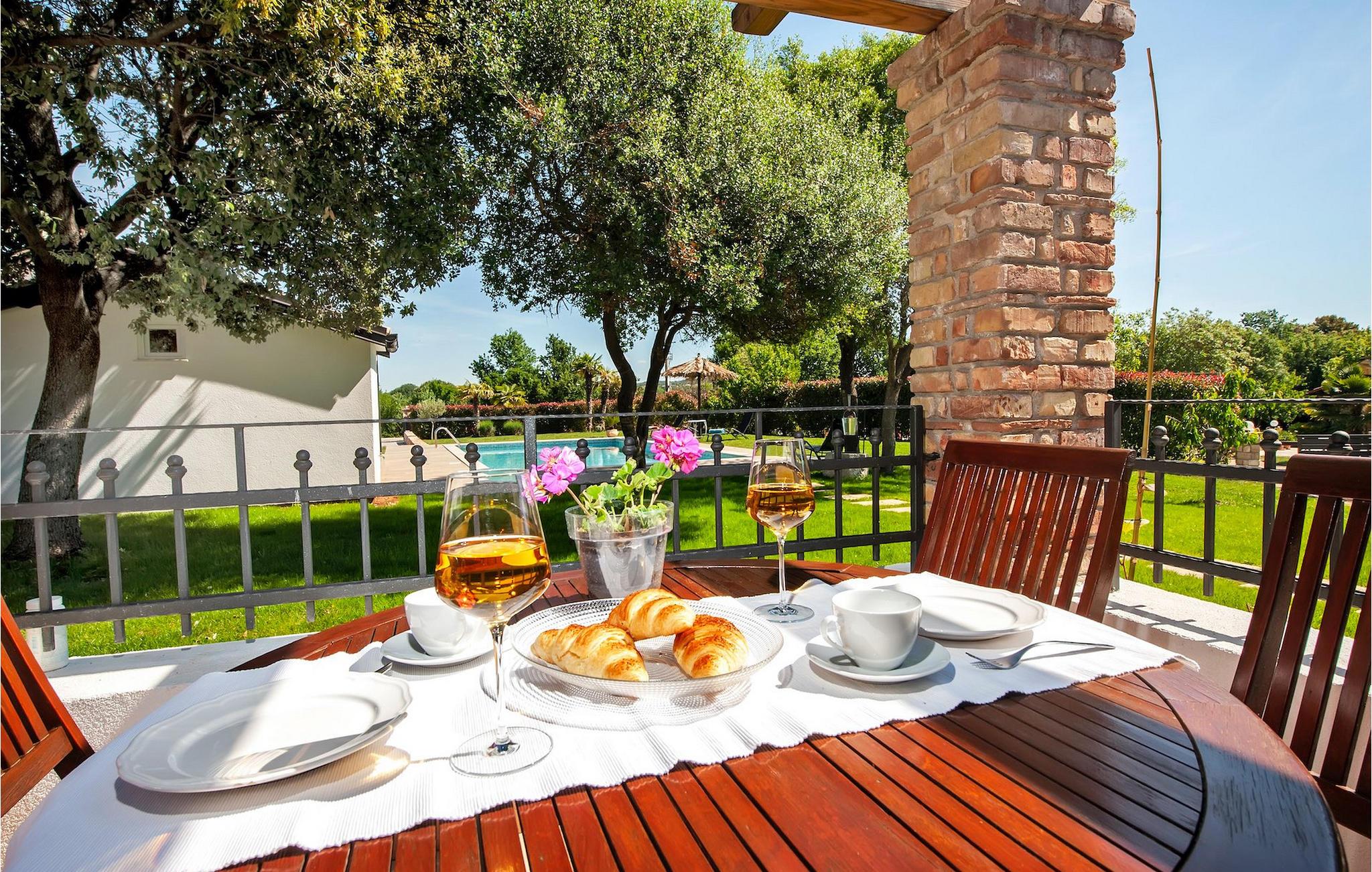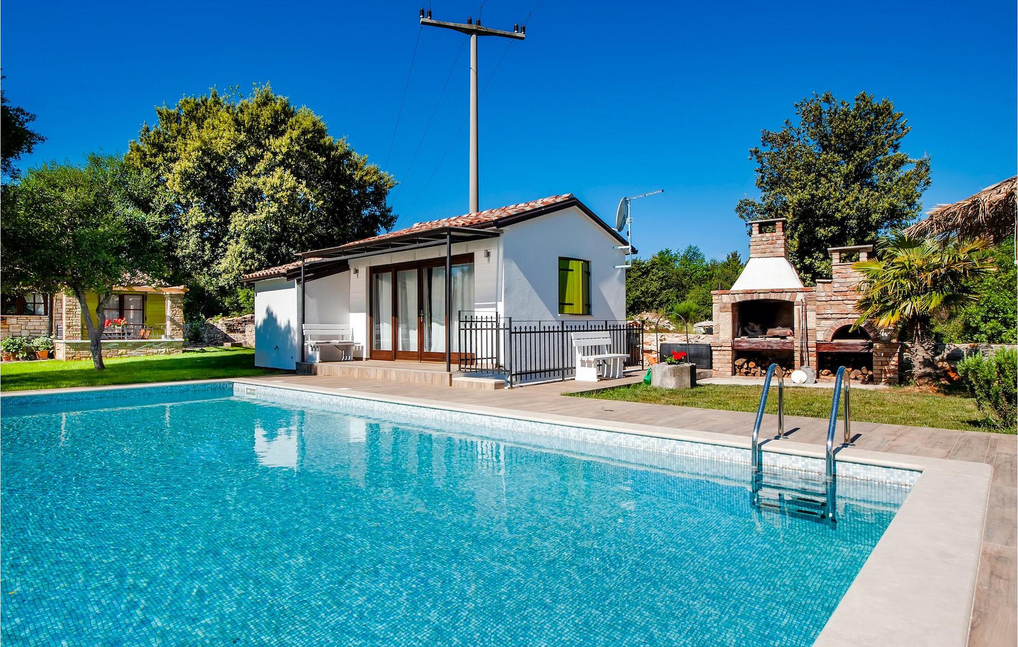 Smukke moderne Villa Antica er beliggende nær havet, i udkanten af den antikke by Rovinj. En af hendes mest fantastiske funktioner er en stor swimmingpool i haven. Den kan rumme op til syv gæster. Det består af to huse, hovedhuset og en studielejlighed. Hovedhuset har en åben stue og spisestue samt tre soveværelser. Et soveværelse har en dobbeltseng, og to soveværelser er udstyret med enkeltsenge. Det giver også et rummeligt badeværelse med badekar, hvor du nemt kan slappe af. Udenfor kan du slappe af med en kold drink på terrassen eller på liggestolene ved poolen, eller tage en svømmetur i en stor 72m2 pool. Du kan også fyre op i grillen til et godt måltid. Studielejligheden tilbyder lidt mere privatliv end hovedhuset. Den har en stue med en dobbeltseng, der kan rumme to gæster og et badeværelse med bruser. Book Villa Antica til din afslappende ferie!Villa Antica er beliggende i en forstad til den antikke by Rovinj, en af de smukkeste og mest romantiske byer i Kroatien. Det er kun få minutters gang fra Polari-stranden og få minutters kørsel fra byens centrum. I centrum kan du udforske det gamle netværk af stengader, der fører til toppen af bakken, hvor den smukke gamle kirke St. Euphemia ligger. Fra toppen af kirketårnet kan du nyde udsigten, der strækker sig over hele byen og ikke efterlader nogen ligeglade. Fra centrum kan du gå mod parkskoven Zlatni Rt, et af de smukkeste landskaber i det vestlige Istrien. Gå ikke glip af turen til Lim-kanalen, en af de mest attraktive naturressourcer i det vestlige Istrien, som ligger kun 15 kilometer uden for Rovinj.