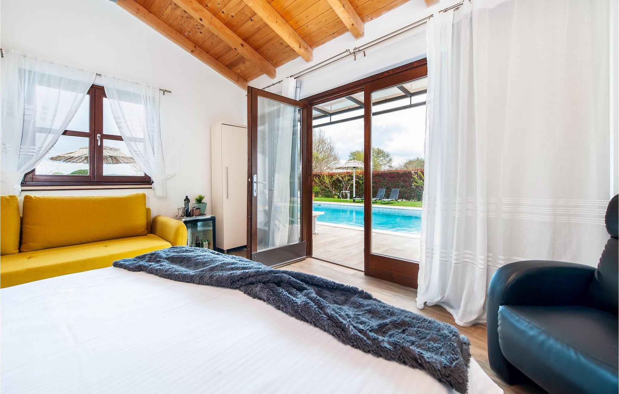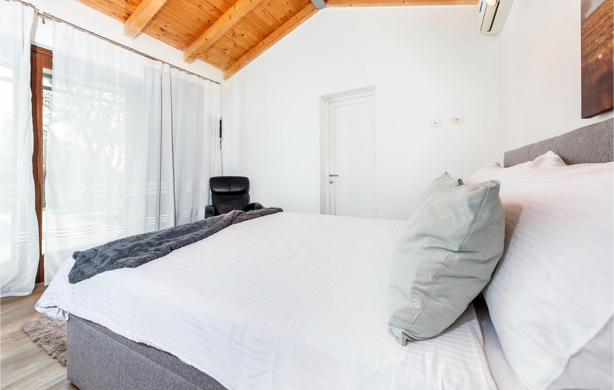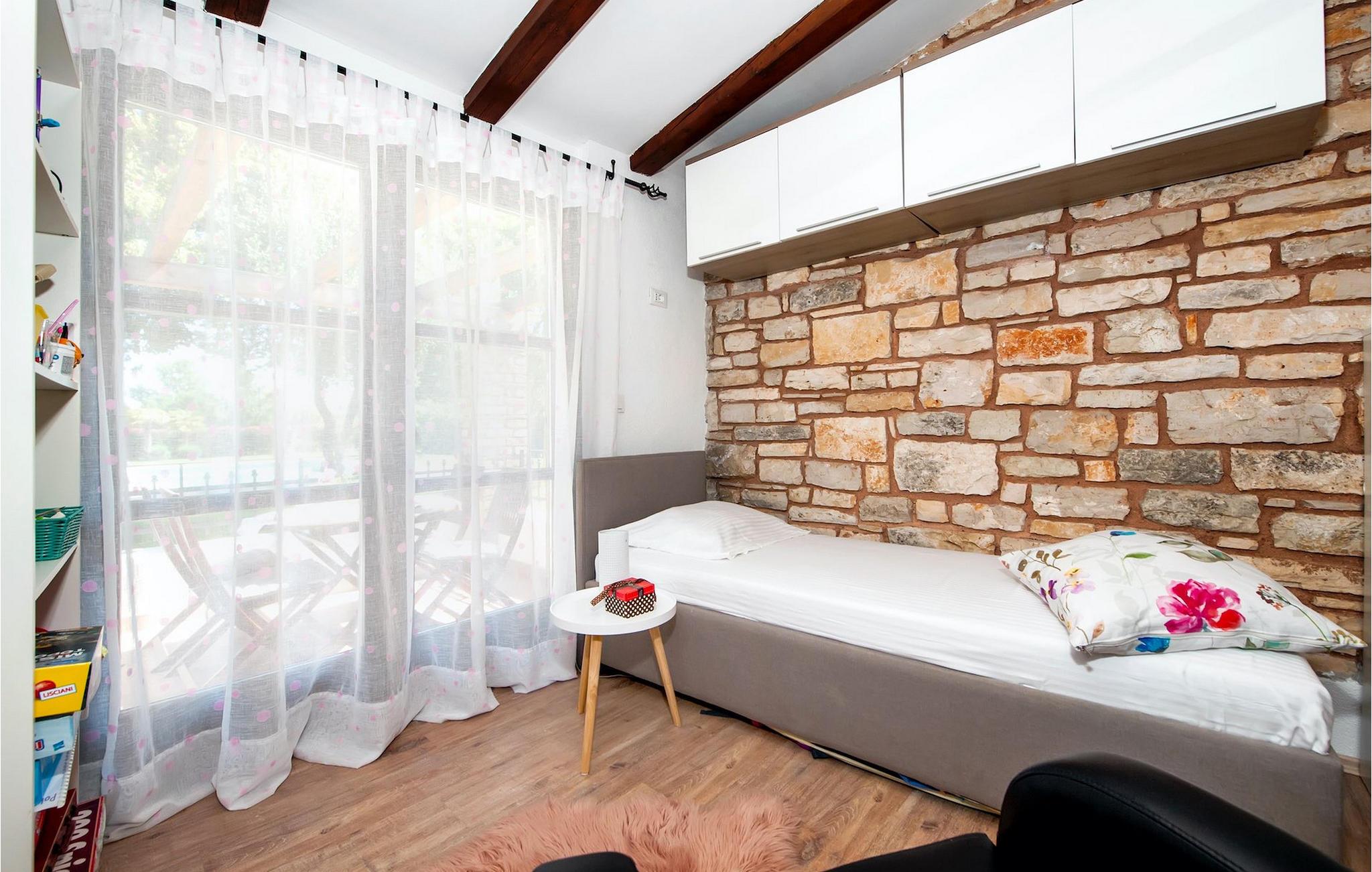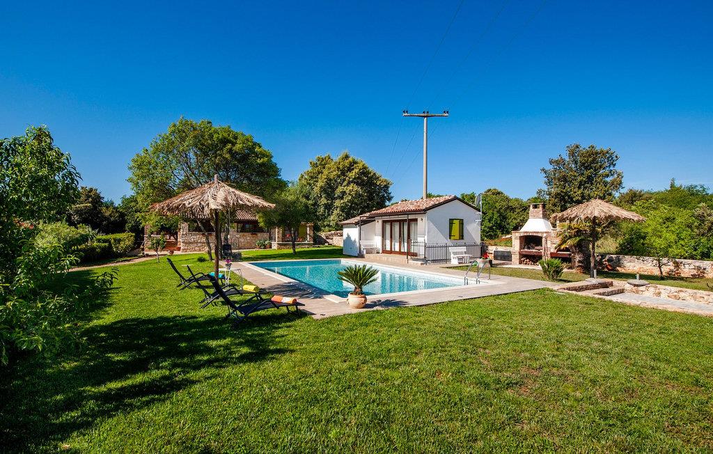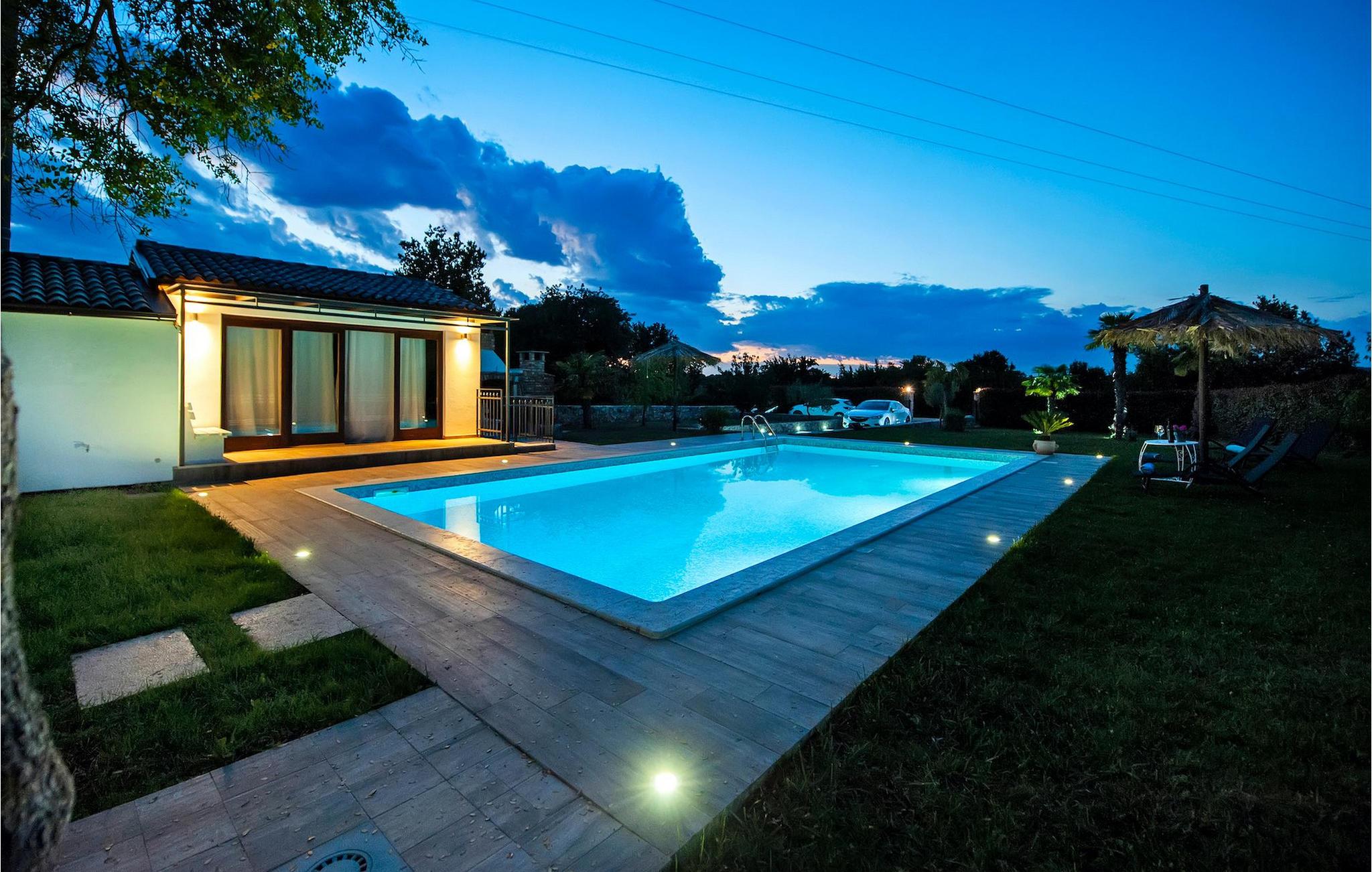 Smukke moderne Villa Antica er beliggende nær havet, i udkanten af den antikke by Rovinj. En af hendes mest fantastiske funktioner er en stor swimmingpool i haven. Den kan rumme op til syv gæster. Det består af to huse, hovedhuset og en studielejlighed. Hovedhuset har en åben stue og spisestue samt tre soveværelser. Et soveværelse har en dobbeltseng, og to soveværelser er udstyret med enkeltsenge. Det giver også et rummeligt badeværelse med badekar, hvor du nemt kan slappe af. Udenfor kan du slappe af med en kold drink på terrassen eller på liggestolene ved poolen, eller tage en svømmetur i en stor 72m2 pool. Du kan også fyre op i grillen til et godt måltid. Studielejligheden tilbyder lidt mere privatliv end hovedhuset. Den har en stue med en dobbeltseng, der kan rumme to gæster og et badeværelse med bruser. Book Villa Antica til din afslappende ferie!Villa Antica er beliggende i en forstad til den antikke by Rovinj, en af de smukkeste og mest romantiske byer i Kroatien. Det er kun få minutters gang fra Polari-stranden og få minutters kørsel fra byens centrum. I centrum kan du udforske det gamle netværk af stengader, der fører til toppen af bakken, hvor den smukke gamle kirke St. Euphemia ligger. Fra toppen af kirketårnet kan du nyde udsigten, der strækker sig over hele byen og ikke efterlader nogen ligeglade. Fra centrum kan du gå mod parkskoven Zlatni Rt, et af de smukkeste landskaber i det vestlige Istrien. Gå ikke glip af turen til Lim-kanalen, en af de mest attraktive naturressourcer i det vestlige Istrien, som ligger kun 15 kilometer uden for Rovinj.