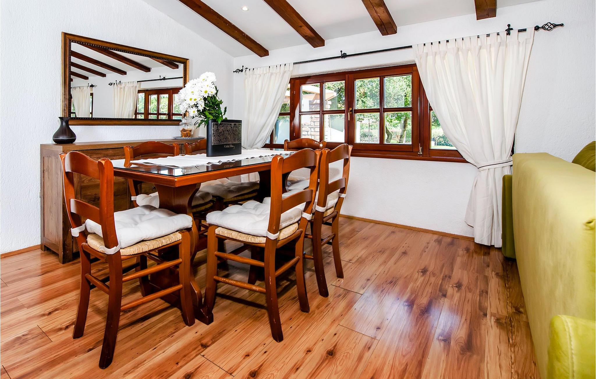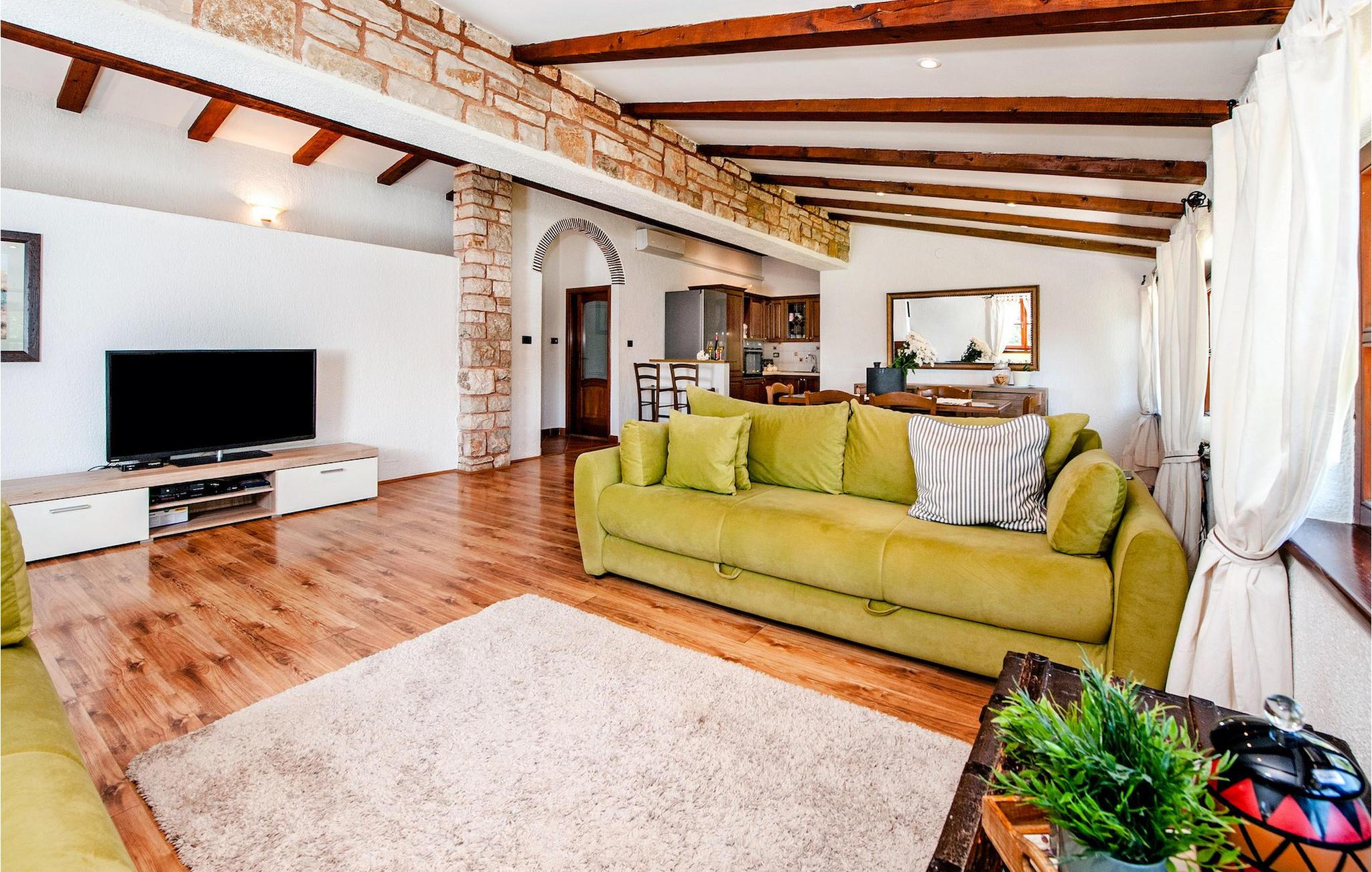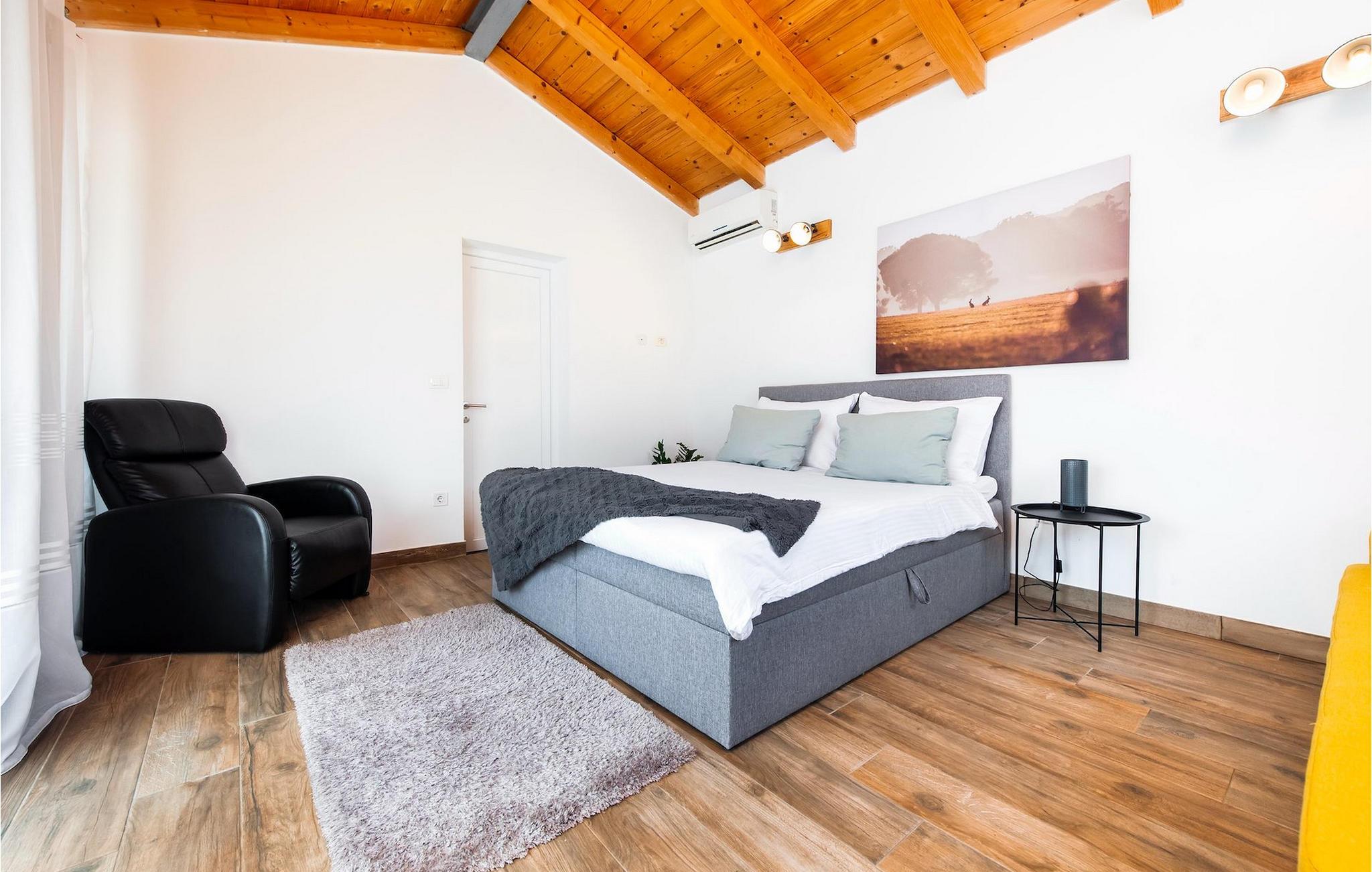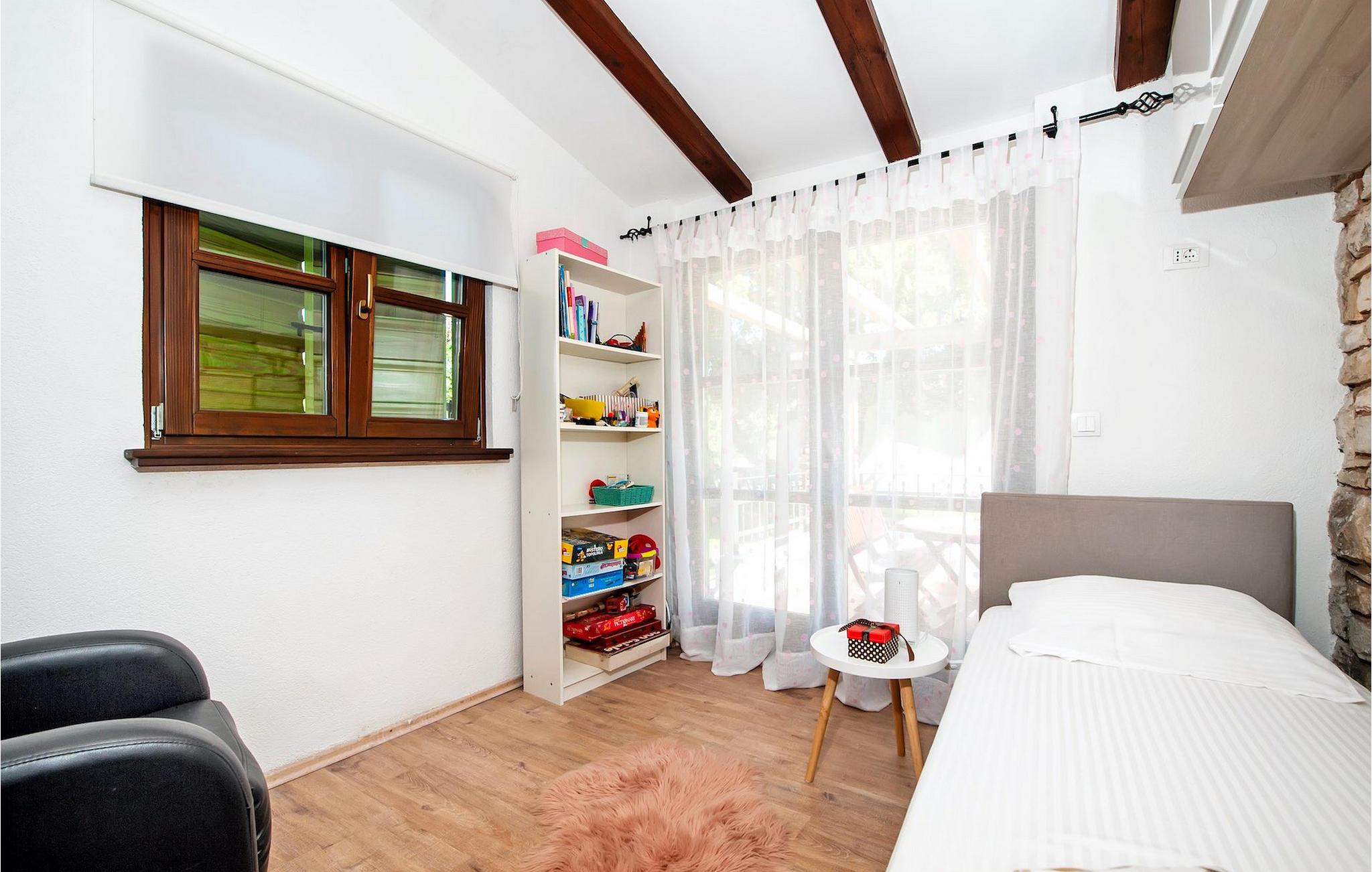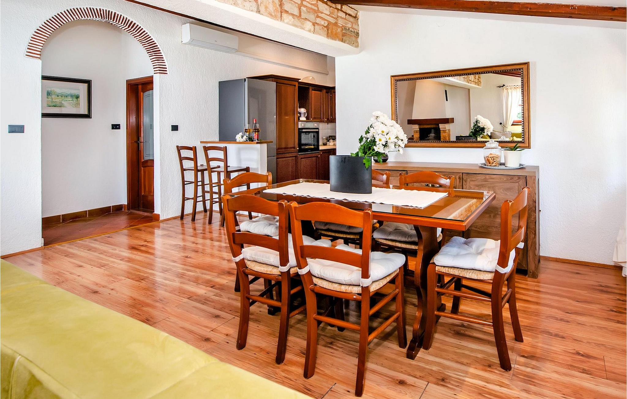 Smukke moderne Villa Antica er beliggende nær havet, i udkanten af den antikke by Rovinj. En af hendes mest fantastiske funktioner er en stor swimmingpool i haven. Den kan rumme op til syv gæster. Det består af to huse, hovedhuset og en studielejlighed. Hovedhuset har en åben stue og spisestue samt tre soveværelser. Et soveværelse har en dobbeltseng, og to soveværelser er udstyret med enkeltsenge. Det giver også et rummeligt badeværelse med badekar, hvor du nemt kan slappe af. Udenfor kan du slappe af med en kold drink på terrassen eller på liggestolene ved poolen, eller tage en svømmetur i en stor 72m2 pool. Du kan også fyre op i grillen til et godt måltid. Studielejligheden tilbyder lidt mere privatliv end hovedhuset. Den har en stue med en dobbeltseng, der kan rumme to gæster og et badeværelse med bruser. Book Villa Antica til din afslappende ferie!Villa Antica er beliggende i en forstad til den antikke by Rovinj, en af de smukkeste og mest romantiske byer i Kroatien. Det er kun få minutters gang fra Polari-stranden og få minutters kørsel fra byens centrum. I centrum kan du udforske det gamle netværk af stengader, der fører til toppen af bakken, hvor den smukke gamle kirke St. Euphemia ligger. Fra toppen af kirketårnet kan du nyde udsigten, der strækker sig over hele byen og ikke efterlader nogen ligeglade. Fra centrum kan du gå mod parkskoven Zlatni Rt, et af de smukkeste landskaber i det vestlige Istrien. Gå ikke glip af turen til Lim-kanalen, en af de mest attraktive naturressourcer i det vestlige Istrien, som ligger kun 15 kilometer uden for Rovinj.