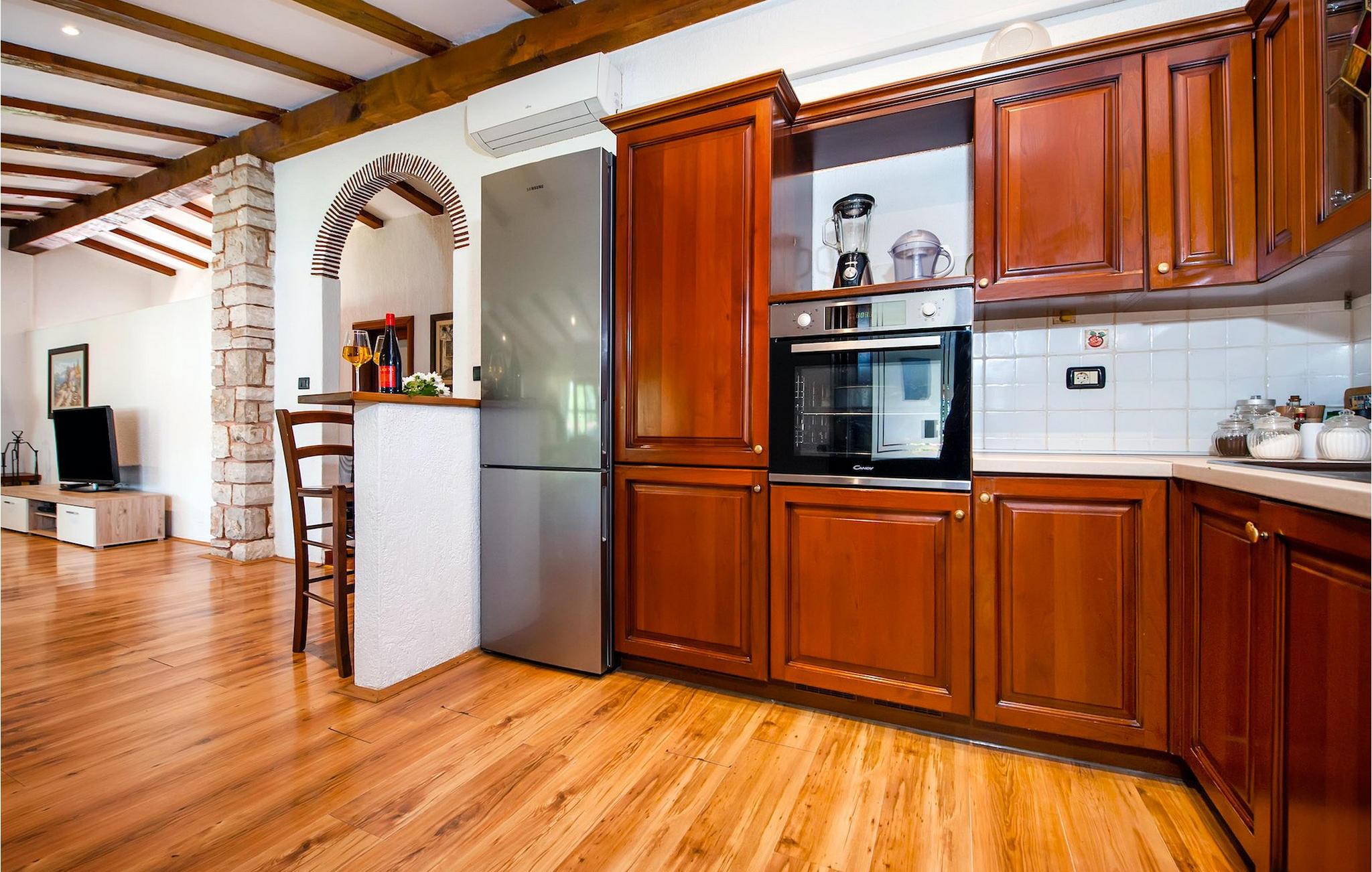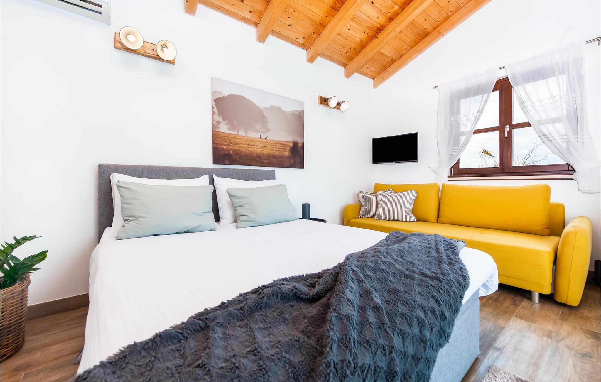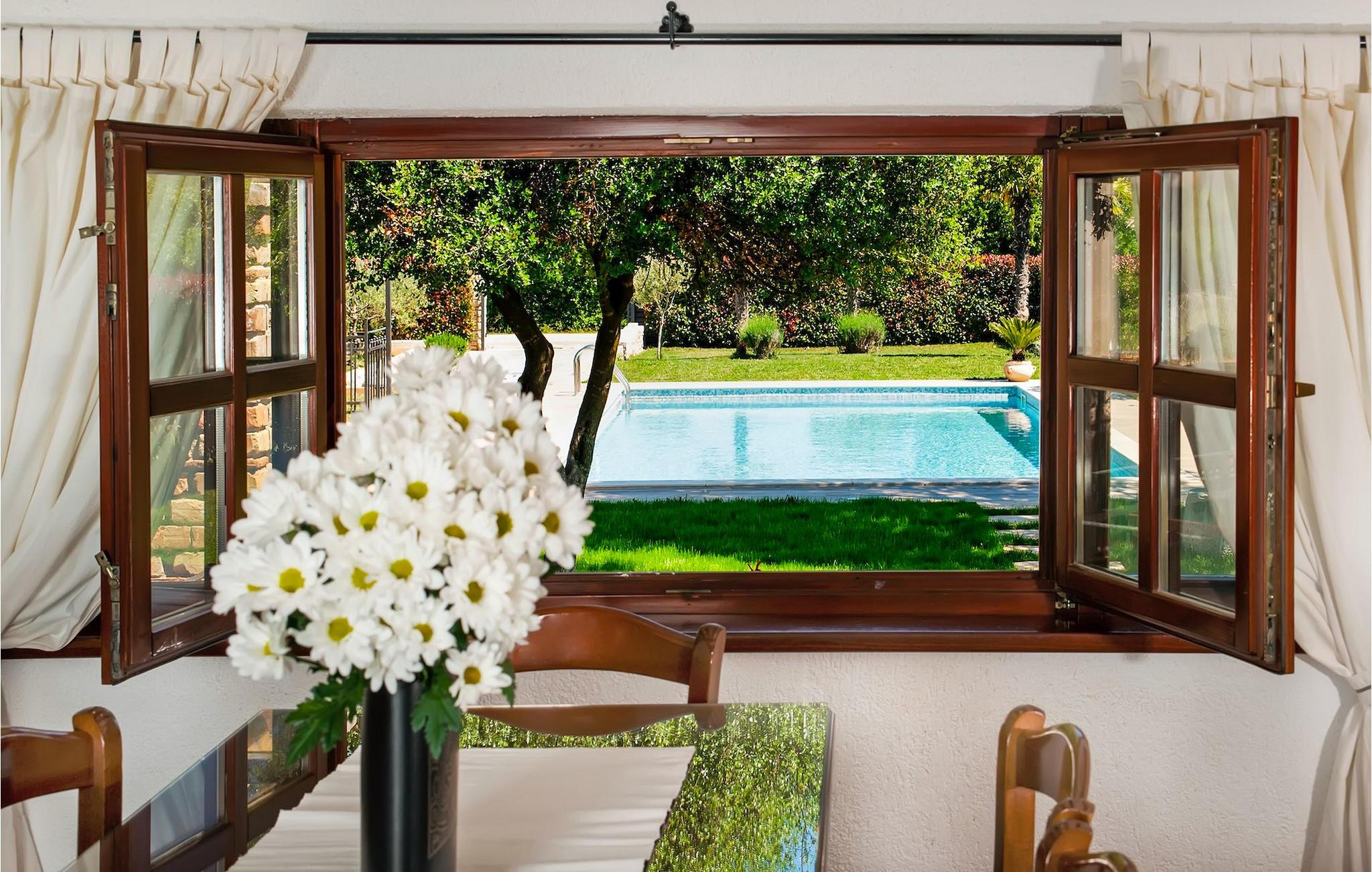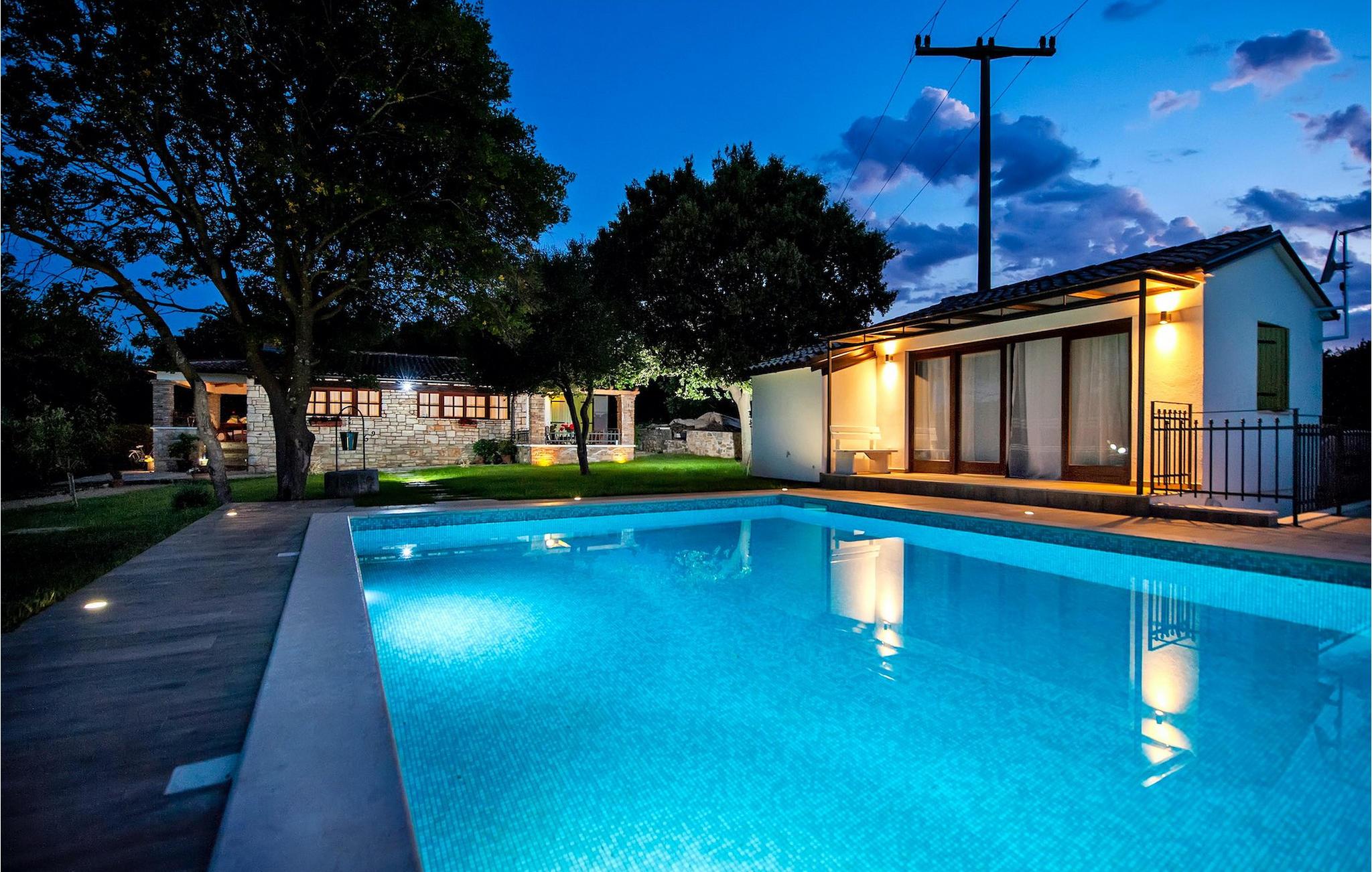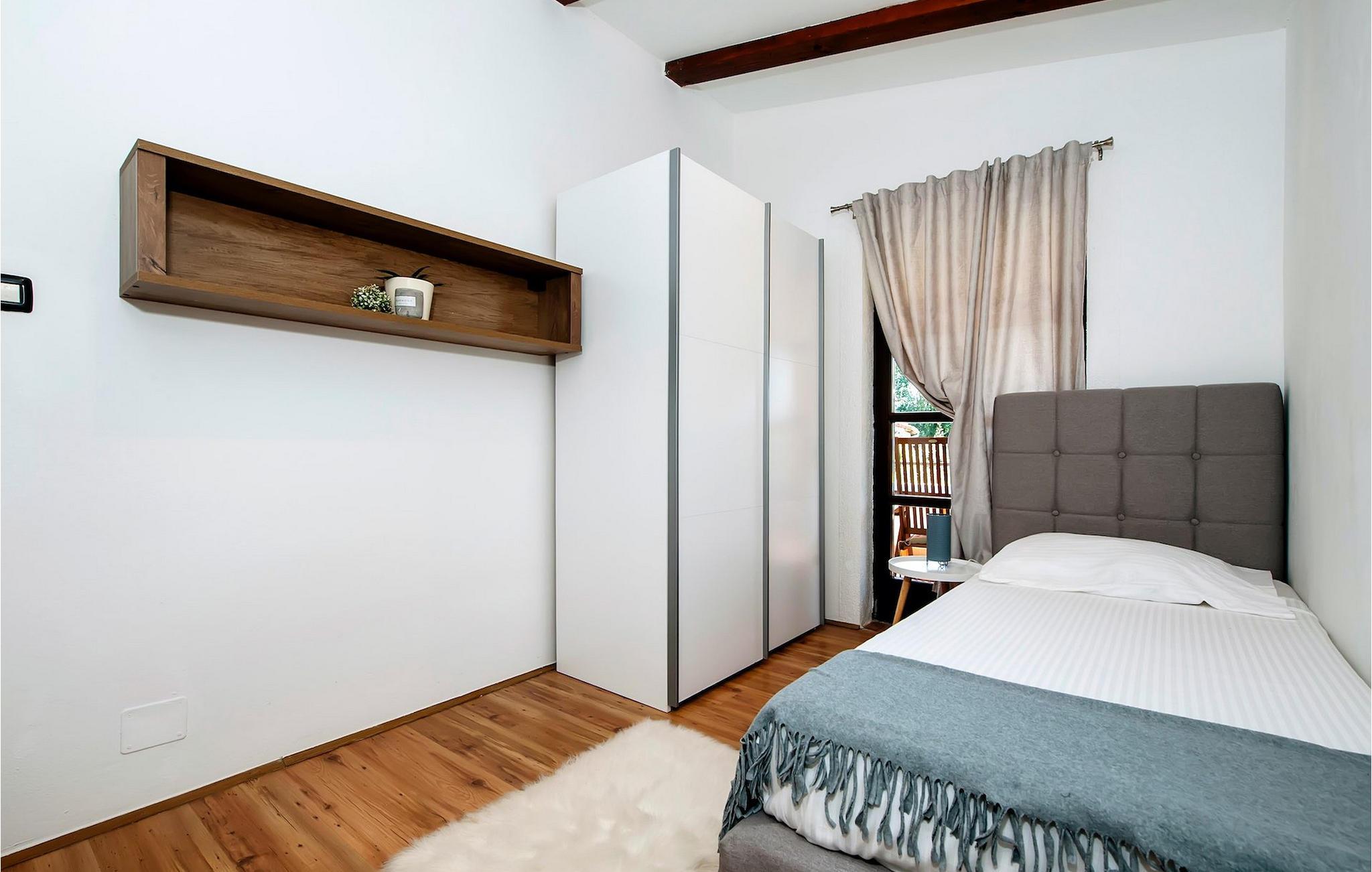 Smukke moderne Villa Antica er beliggende nær havet, i udkanten af den antikke by Rovinj. En af hendes mest fantastiske funktioner er en stor swimmingpool i haven. Den kan rumme op til syv gæster. Det består af to huse, hovedhuset og en studielejlighed. Hovedhuset har en åben stue og spisestue samt tre soveværelser. Et soveværelse har en dobbeltseng, og to soveværelser er udstyret med enkeltsenge. Det giver også et rummeligt badeværelse med badekar, hvor du nemt kan slappe af. Udenfor kan du slappe af med en kold drink på terrassen eller på liggestolene ved poolen, eller tage en svømmetur i en stor 72m2 pool. Du kan også fyre op i grillen til et godt måltid. Studielejligheden tilbyder lidt mere privatliv end hovedhuset. Den har en stue med en dobbeltseng, der kan rumme to gæster og et badeværelse med bruser. Book Villa Antica til din afslappende ferie!Villa Antica er beliggende i en forstad til den antikke by Rovinj, en af de smukkeste og mest romantiske byer i Kroatien. Det er kun få minutters gang fra Polari-stranden og få minutters kørsel fra byens centrum. I centrum kan du udforske det gamle netværk af stengader, der fører til toppen af bakken, hvor den smukke gamle kirke St. Euphemia ligger. Fra toppen af kirketårnet kan du nyde udsigten, der strækker sig over hele byen og ikke efterlader nogen ligeglade. Fra centrum kan du gå mod parkskoven Zlatni Rt, et af de smukkeste landskaber i det vestlige Istrien. Gå ikke glip af turen til Lim-kanalen, en af de mest attraktive naturressourcer i det vestlige Istrien, som ligger kun 15 kilometer uden for Rovinj.