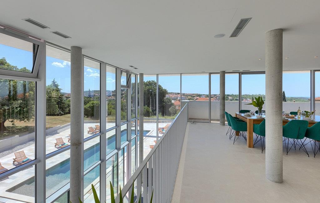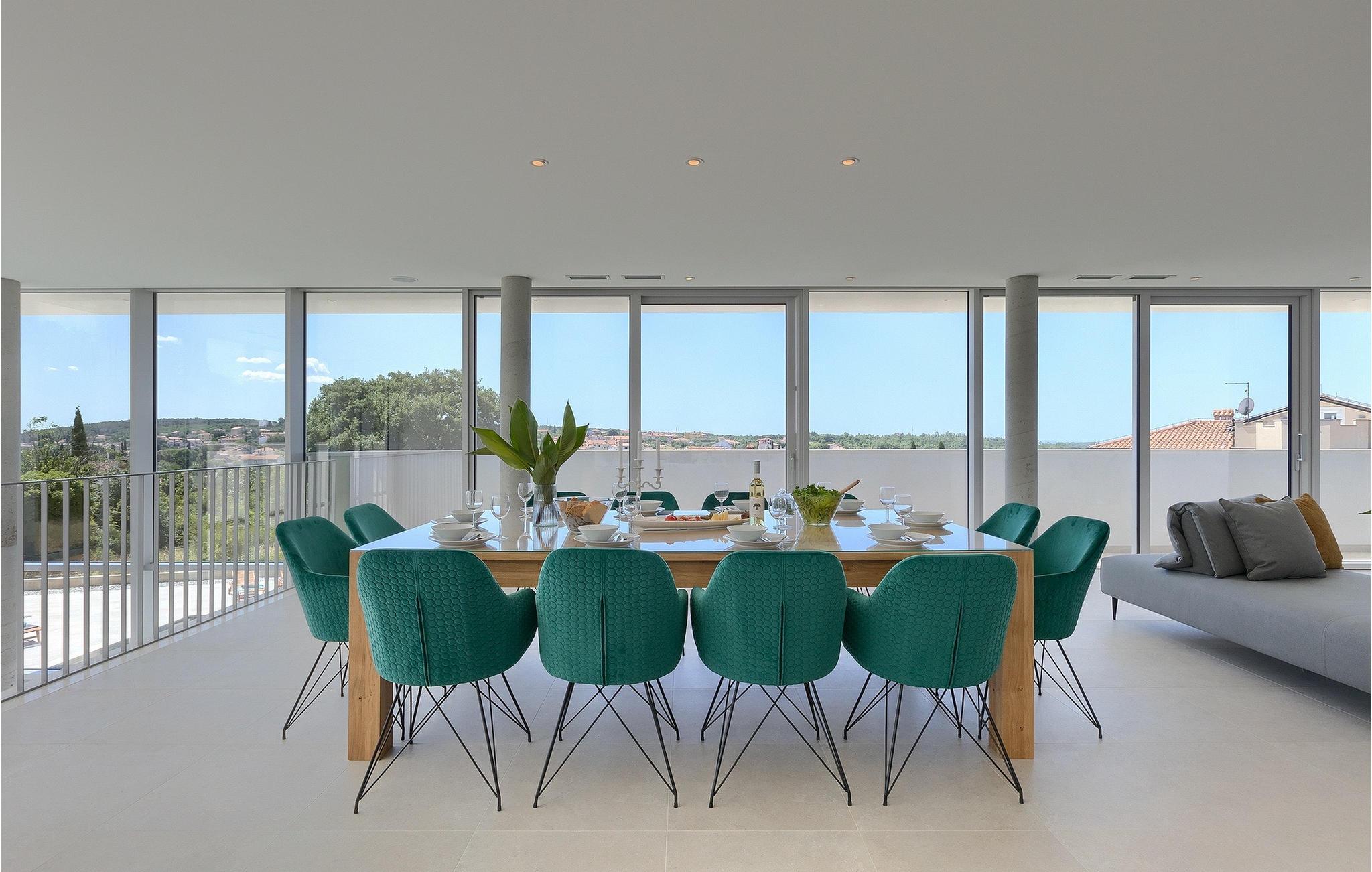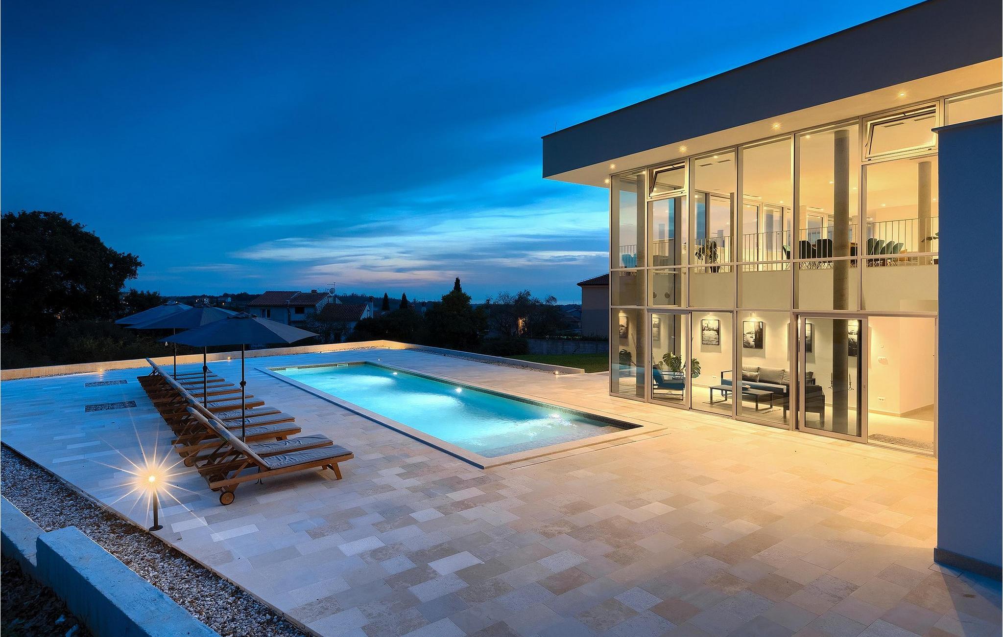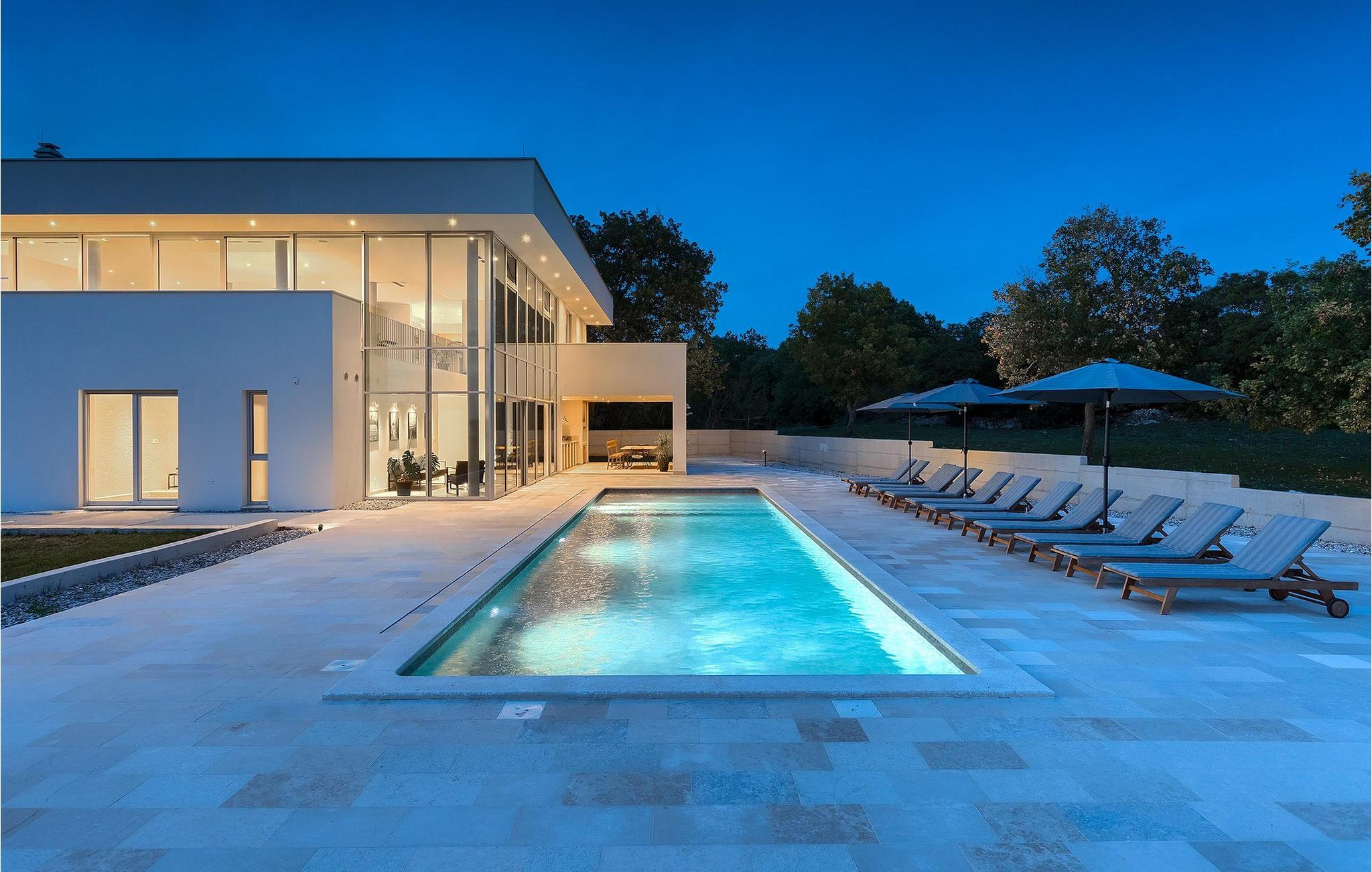 Amazing Villa Koko, beliggende i udkanten af Rovinjsko Selo, en lille by nær Rovinj, er det ideelle feriehus for op til 12 gæster, der søger efter ren afslapning og komfort. Villaen har en stor have med en stor privat pool, 12 hyggelige liggestole og en overdækket spiseplads med kulgrill, ideel til al fresco spisning på solrige dage. Interiøret, fordelt på 600 m2 og opdelt i to etager, består af i alt 6 soveværelser, hver med eget badeværelse og aircondition. 5 soveværelser er placeret i stueetagen, og et på øverste etage. Det fuldt udstyrede køkken med spiseplads og stuen ligger på øverste etage, hvilket giver en fantastisk udsigt over omgivelserne og havet. Masser af glasoverflader giver naturligt lys i interiøret, som er enkelt, men alligevel luksuriøst indrettet. For nogle mere afslappende øjeblikke står en stor indendørs jacuzzi og en sauna til din rådighed. For yderligere underholdning har villaen en biografsal udstyret med aircondition, stor rummelig sofa med ligge- og siddeområder. 75'' Smart TV med billedkvalitet og surroundhøjttalere vil forbedre det realistiske indtryk af hver film. Sammen med de varme popcorn fra maskinen i biografen er underholdning garanteret. Villa Koko giver alt for en skødesløs ferie i privatlivets fred i dit eget stykke paradis, mens alle faciliteter såsom restauranter og supermarkeder er inden for gåafstand. Lim-bugten er kun en kort køretur væk, såvel som den romantiske by Rovinj og dens omkringliggende strande. Denne villa er beliggende i Rovinjsko Selo, en rolig forstad til Rovinj. Karakteristisk for dette sted er de traditionelt byggede stenhuse og den smukke grønne marker, vinmarker og omkringliggende skove. Forstadens fantastiske beliggenhed er ideel til daglig udforskning af den antikke by Rovinj og dens unikke charme. Mærk byens fortryllelse i dens smalle middelaldergader og varme middelhavsomgivelser. Fra plateauet i hovedkirken St. Euphemia er der en vidunderlig udsigt over det åbne hav og talrige holme i det fjerne. Besøg andre seværdigheder såsom slottet på øen St. Andrija, franciskanerklosteret og bymurene. Rovinj er en af de mest romantiske byer i Kroatien med smukke solnedgange, der vil tage pusten fra dig. De bredere omgivelser byder på adskillige muligheder for rekreation: cykling, ridning, jogging...